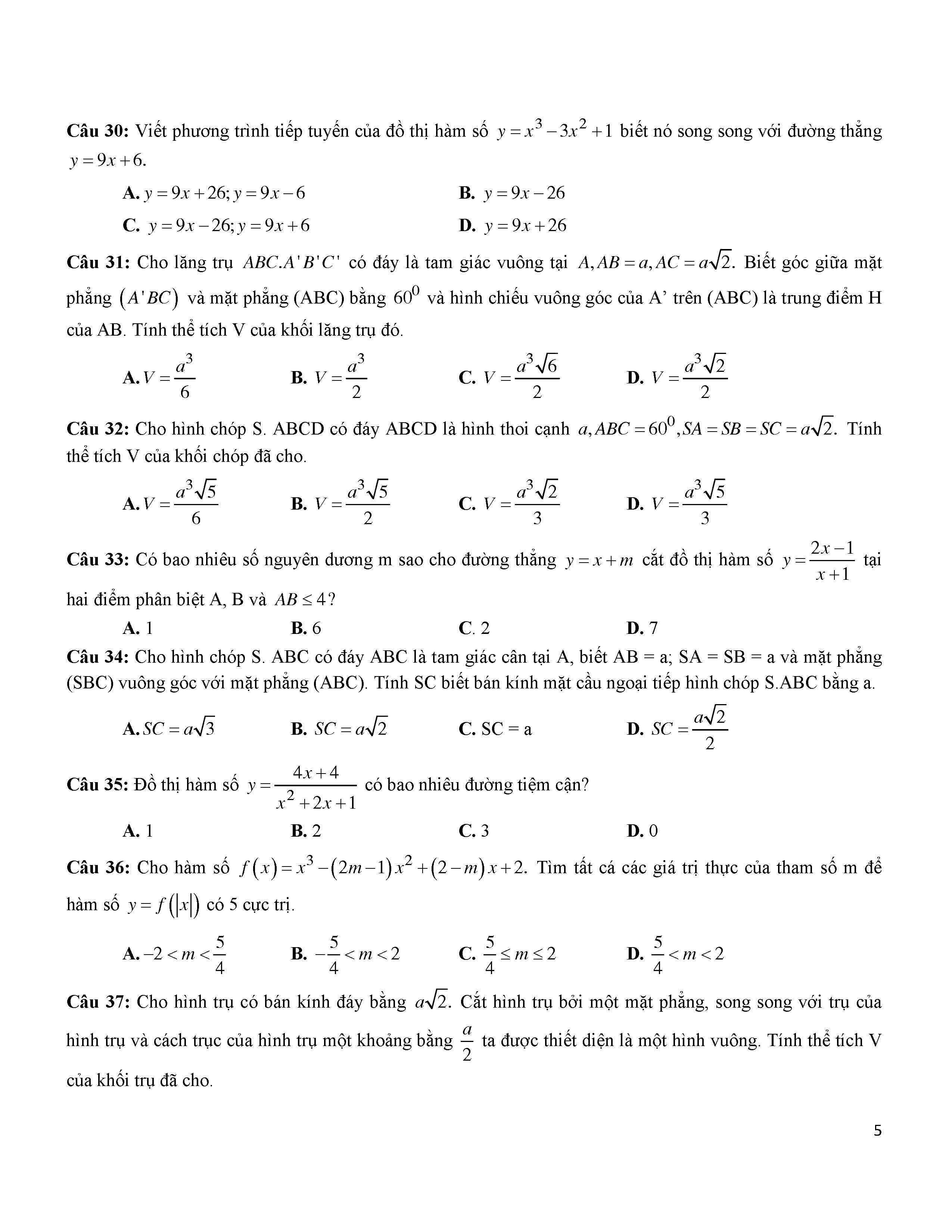 74. Đề thi thử THPT năm 2019 môn Toán trường Trần Nguyên Hãn - Hải Phòng - Lần 1
