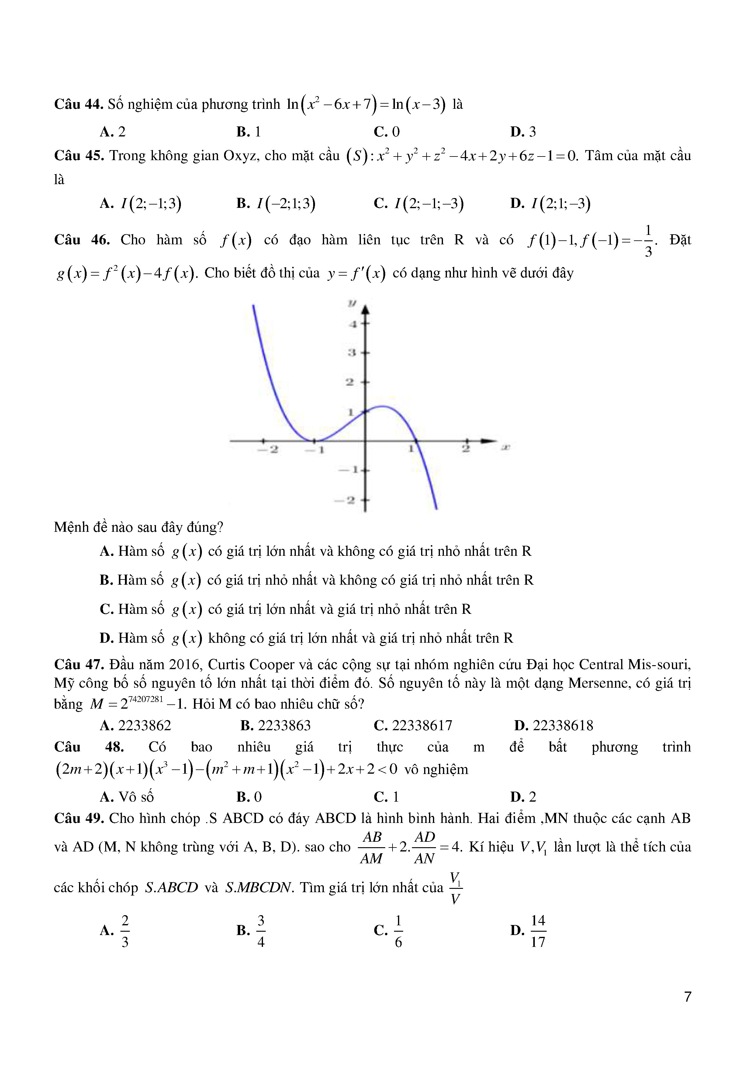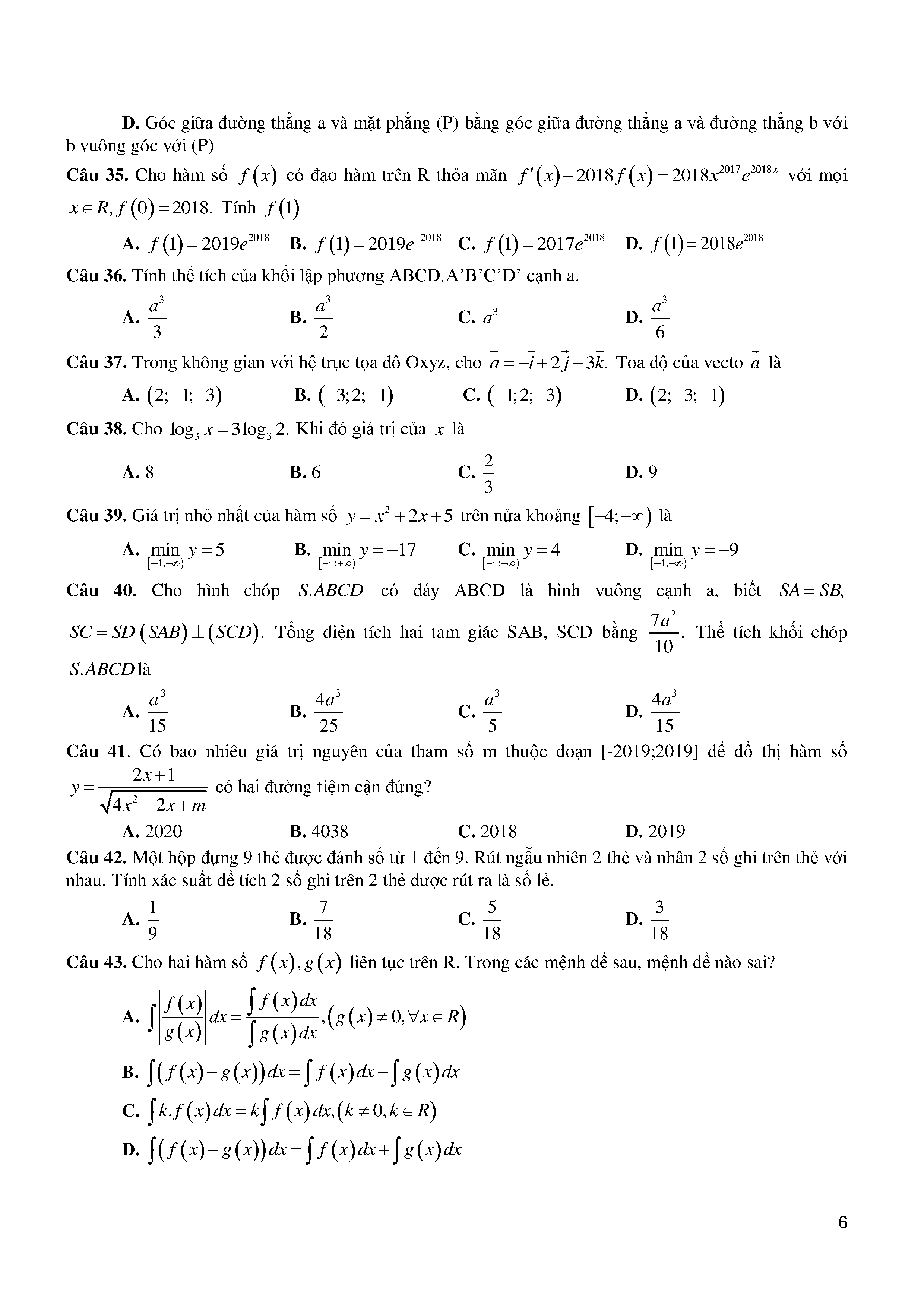 78. Đề thi thử THPT năm 2019 môn Toán trường Chuyên Hưng Yên - Lần 2