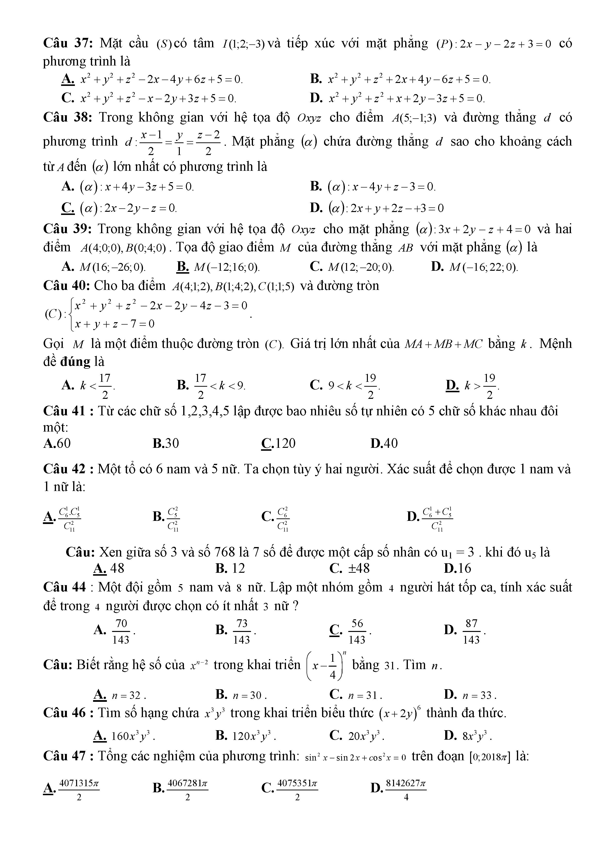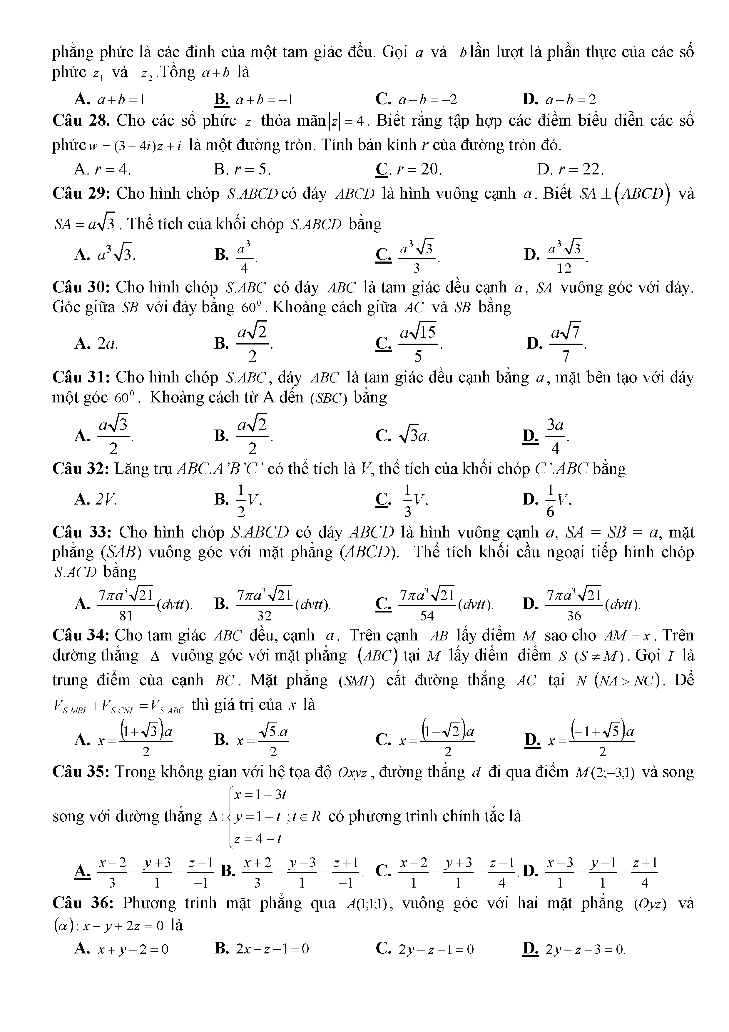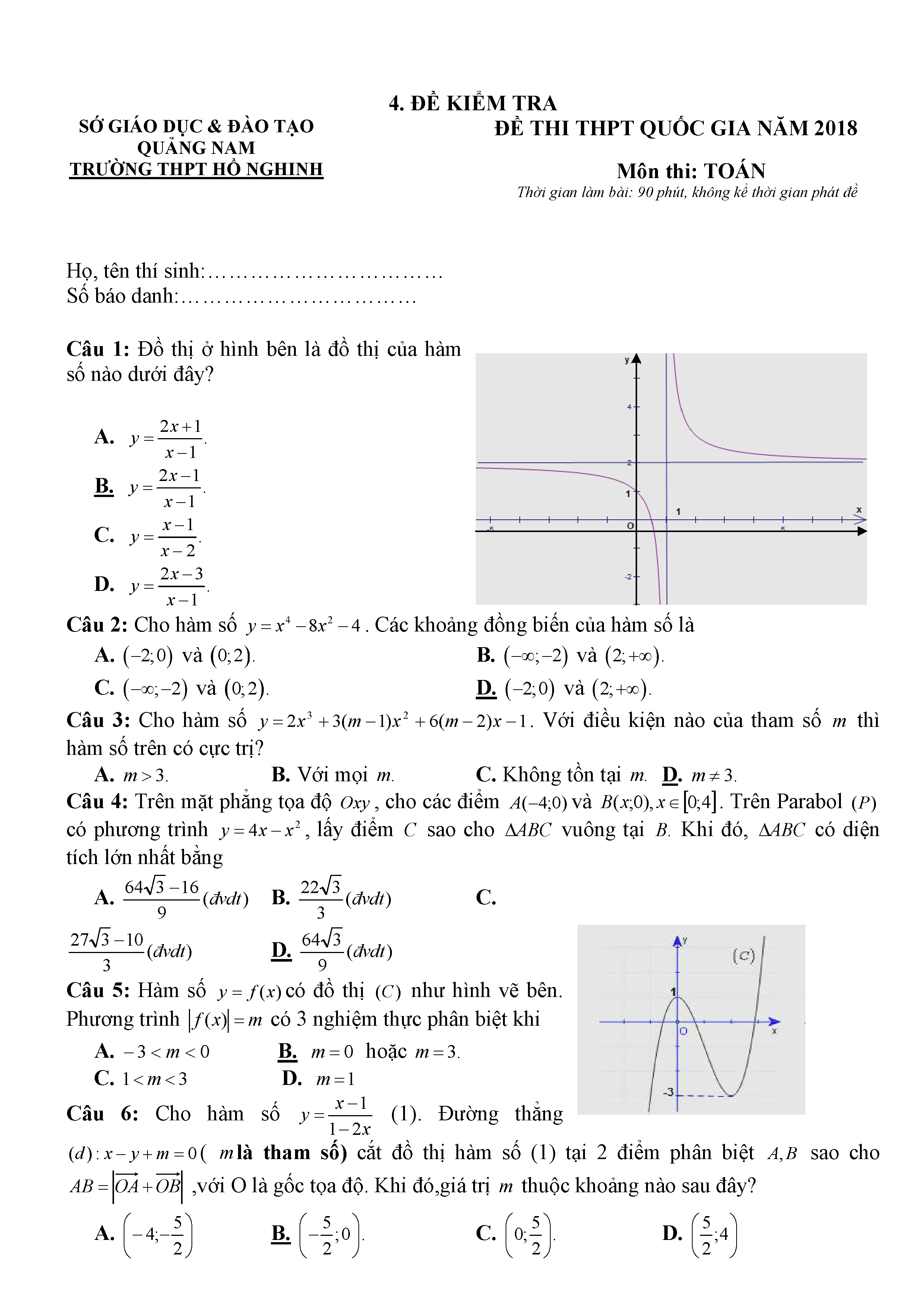 29 Đề thi thử THPTQG năm 2018 môn Toán trường Hồ Nghinh