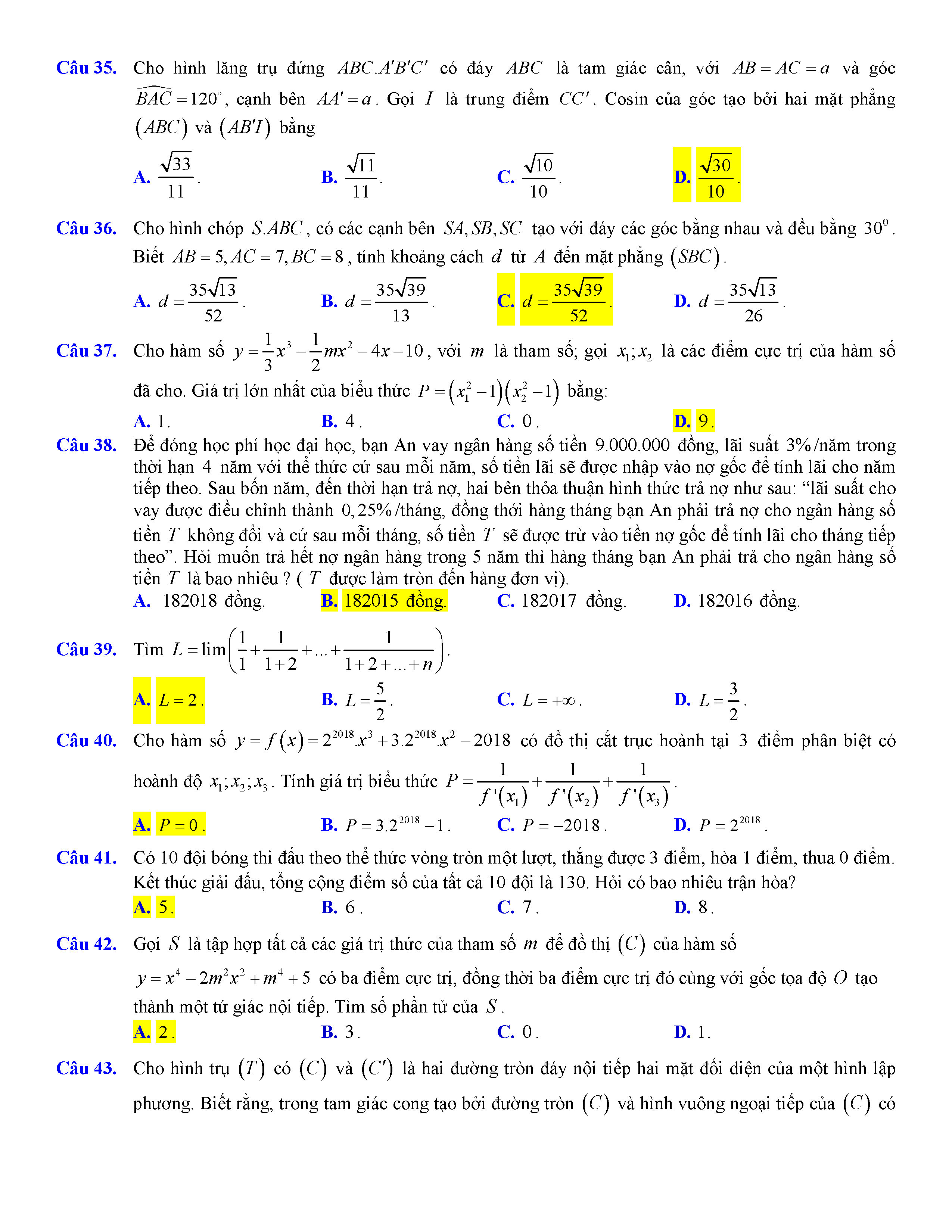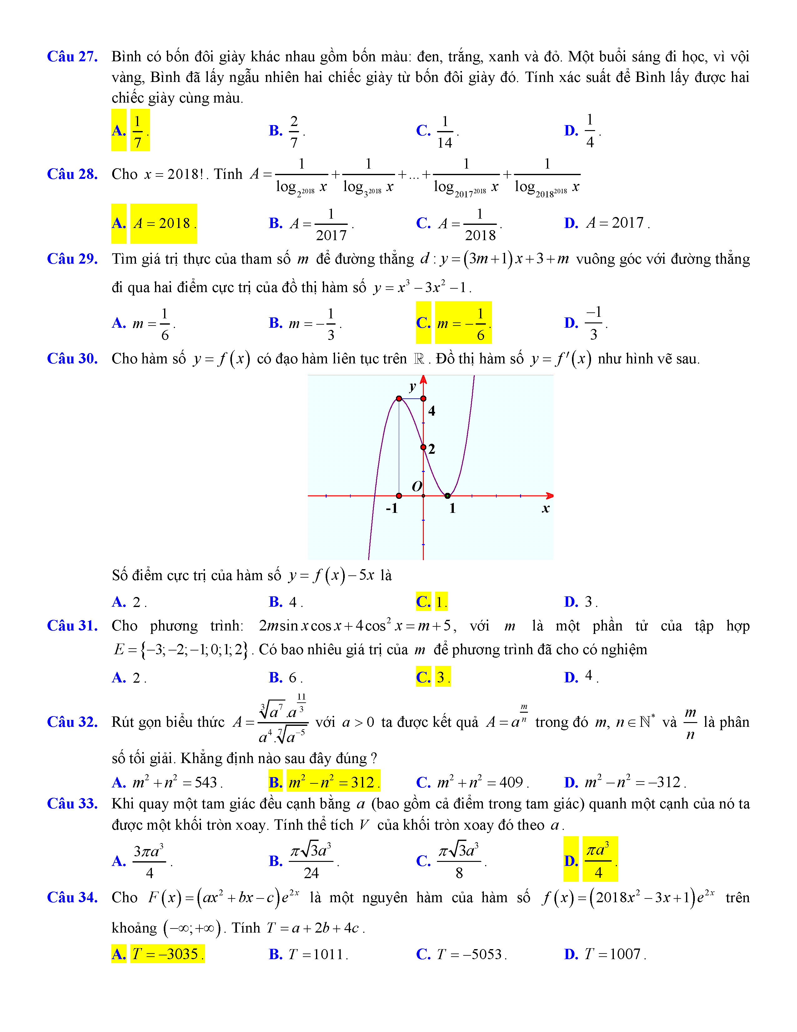 34. Đề thi thử THPTQG năm 2018 môn Toán trường Lương Văn Chánh