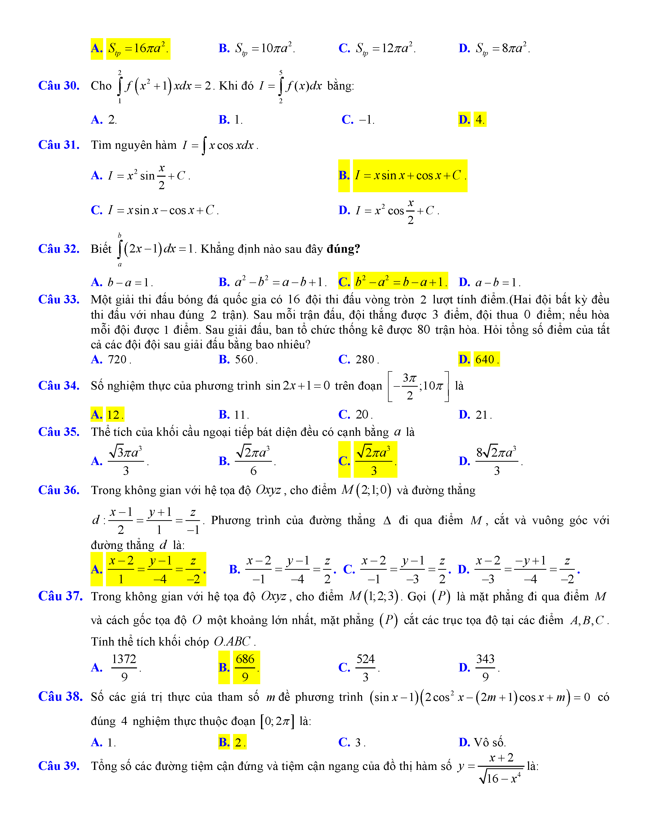 35Đề thi thử THPTQG năm 2018 môn Toán trường Chuyên Thái Bình
