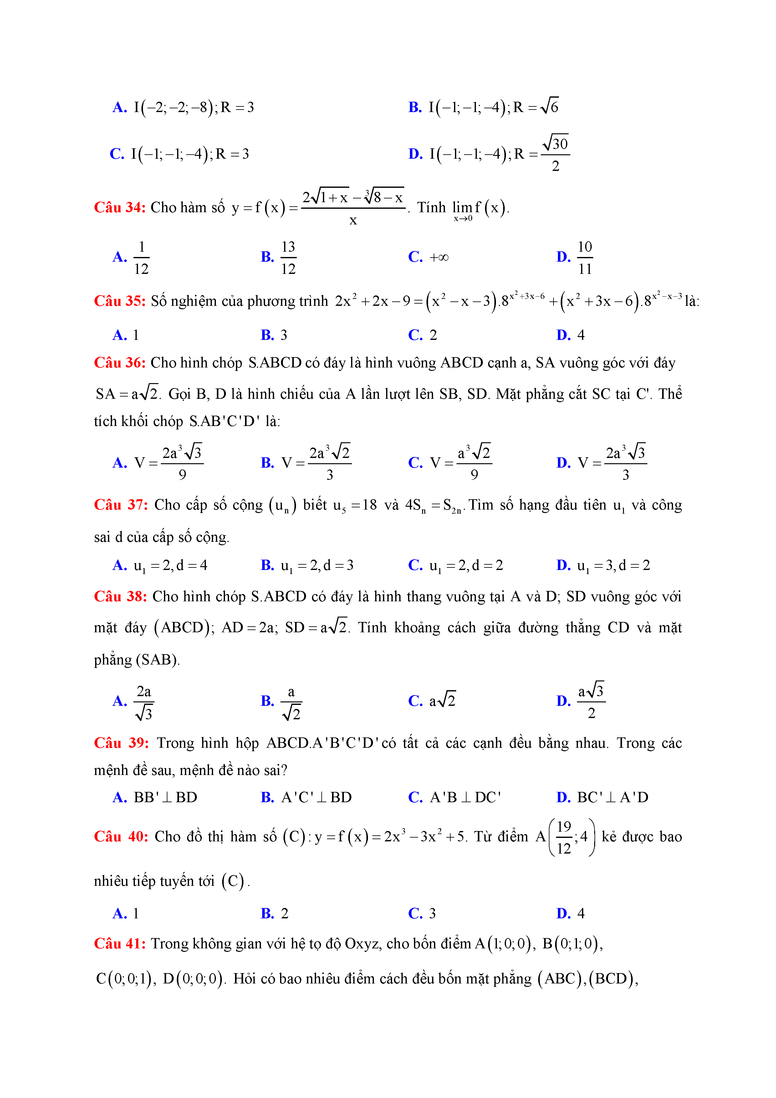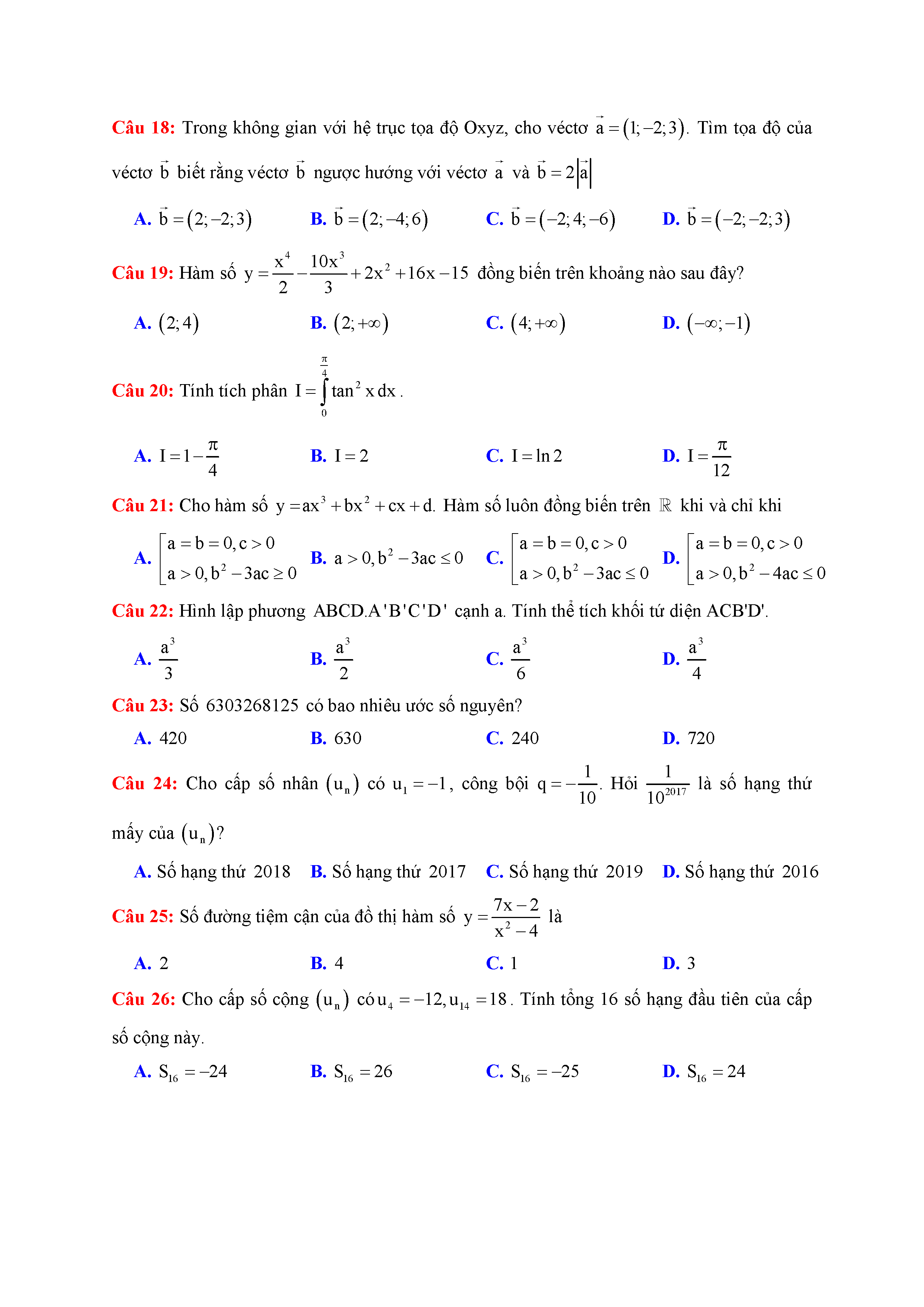 39. Đề thi thử THPTQG năm 2018 môn Toán trường Chuyên Vĩnh Phúc lần 3