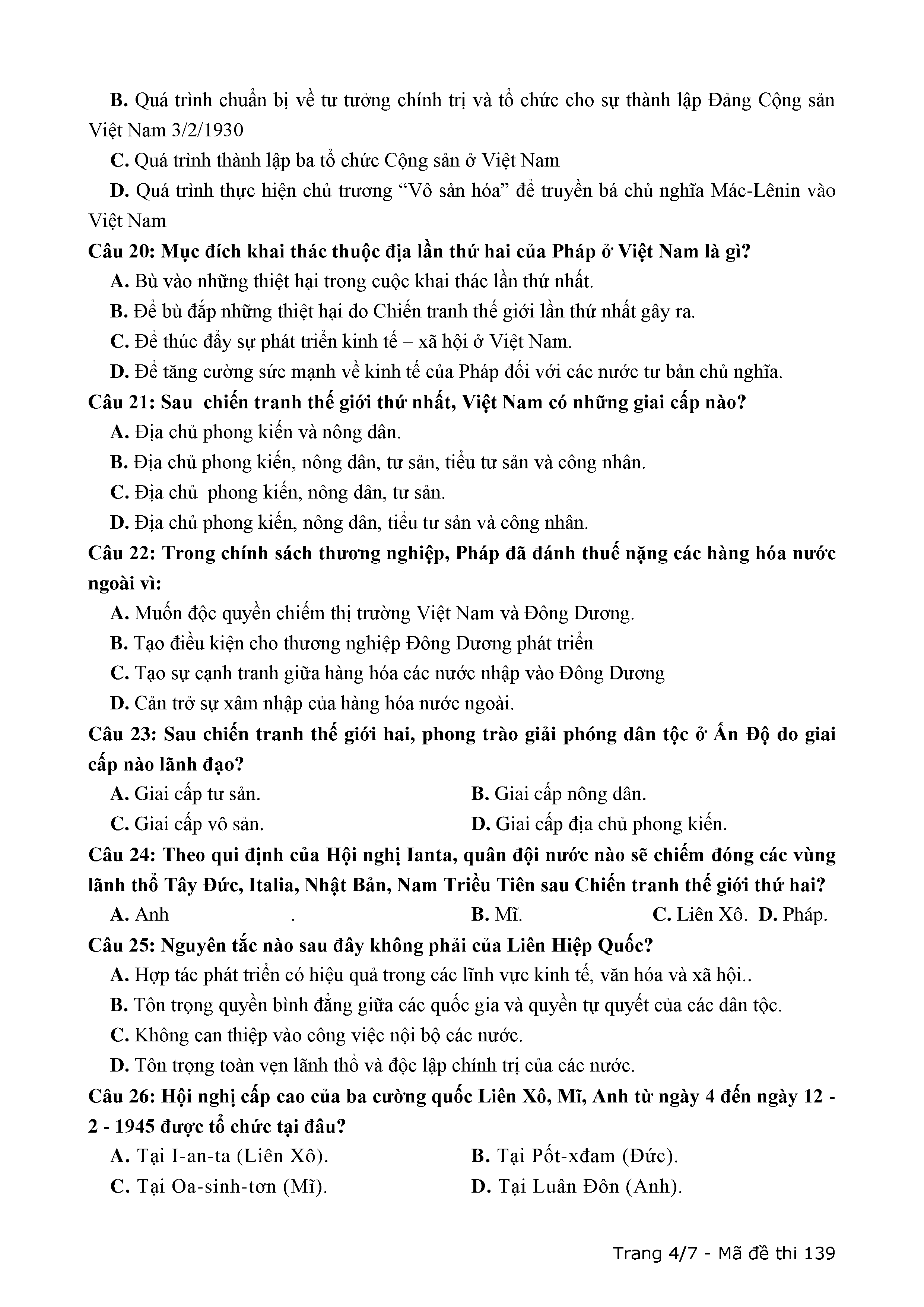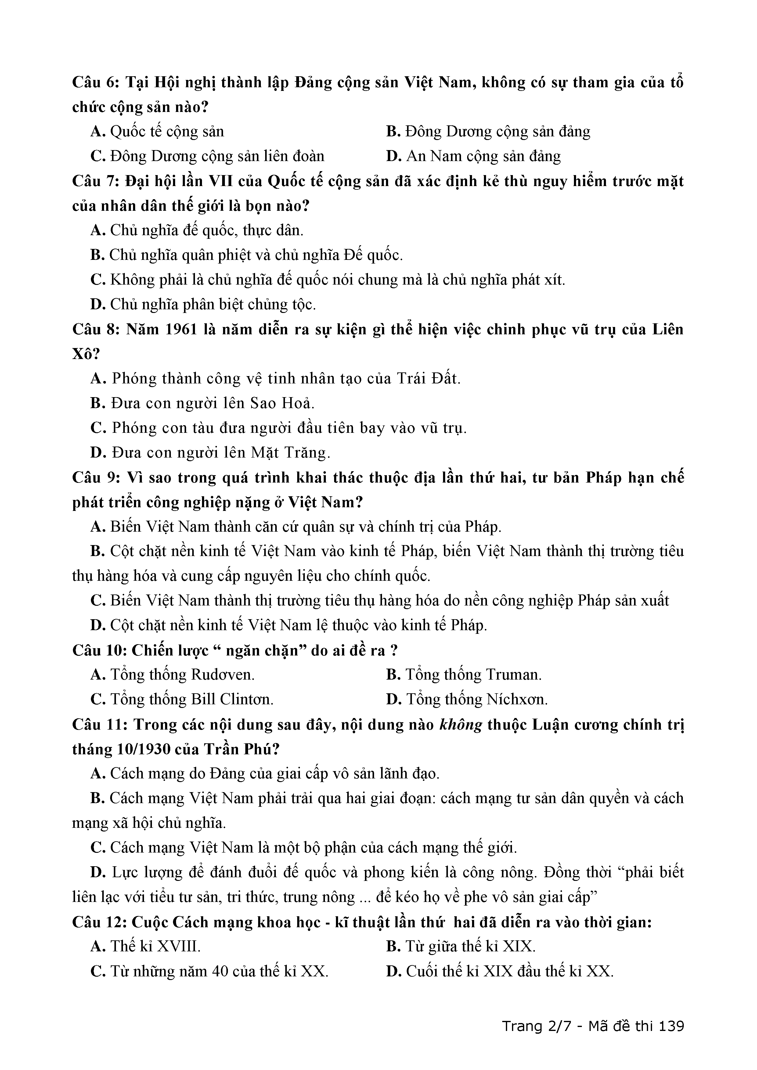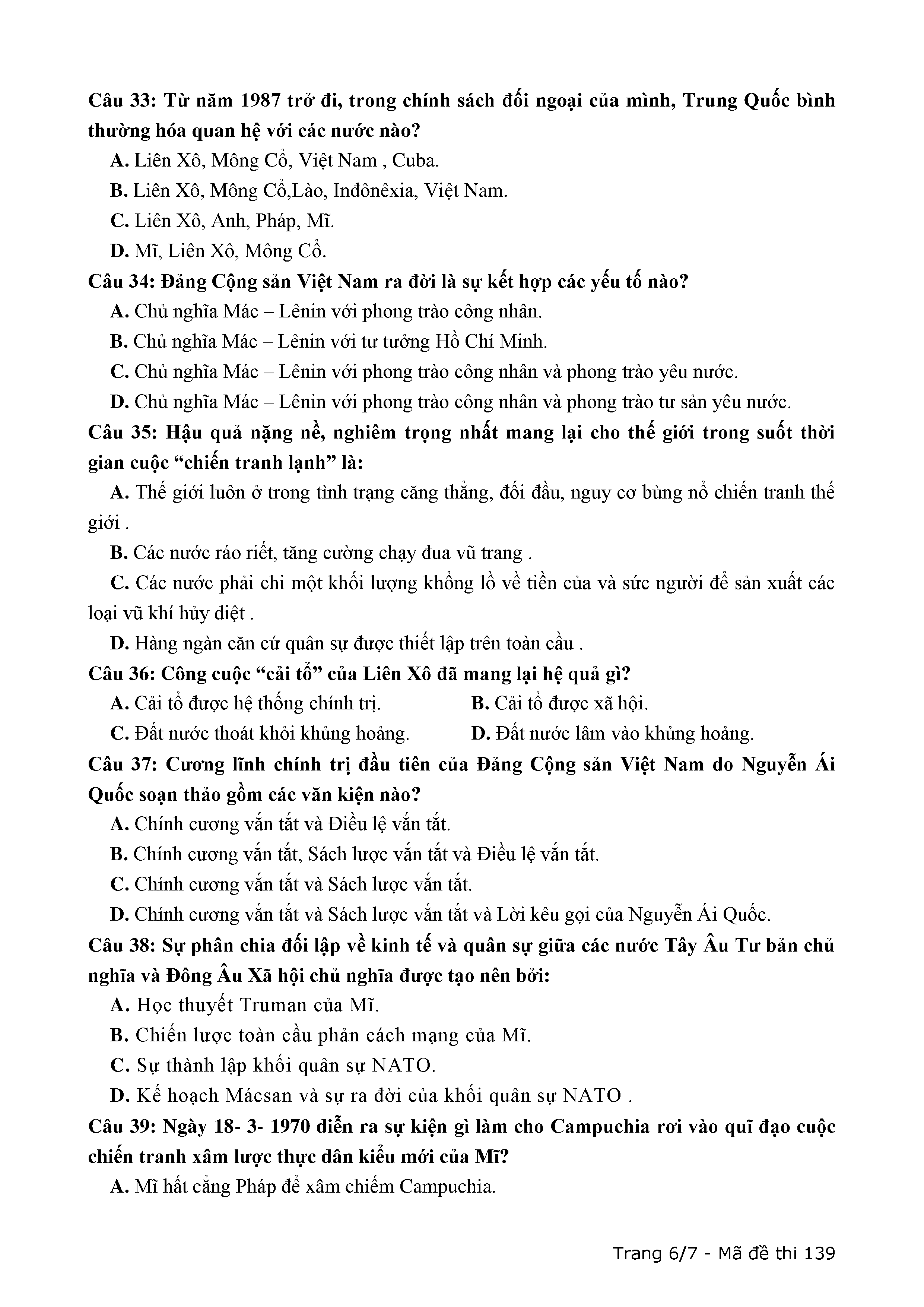 Đề thi thử THPTQG-2017-Lịch sử-THPT Trần Hưng Đạo - TPHCM lần 2