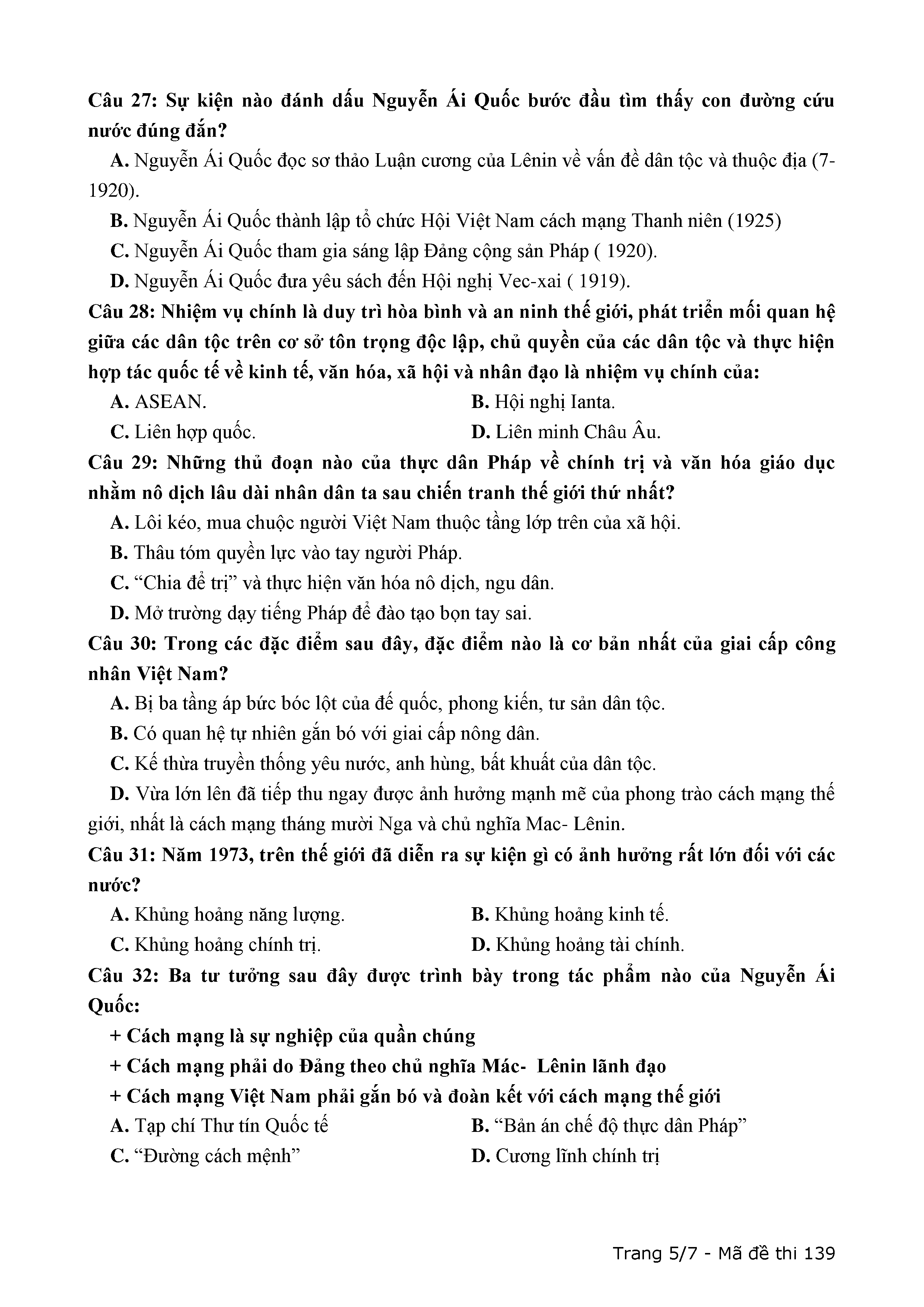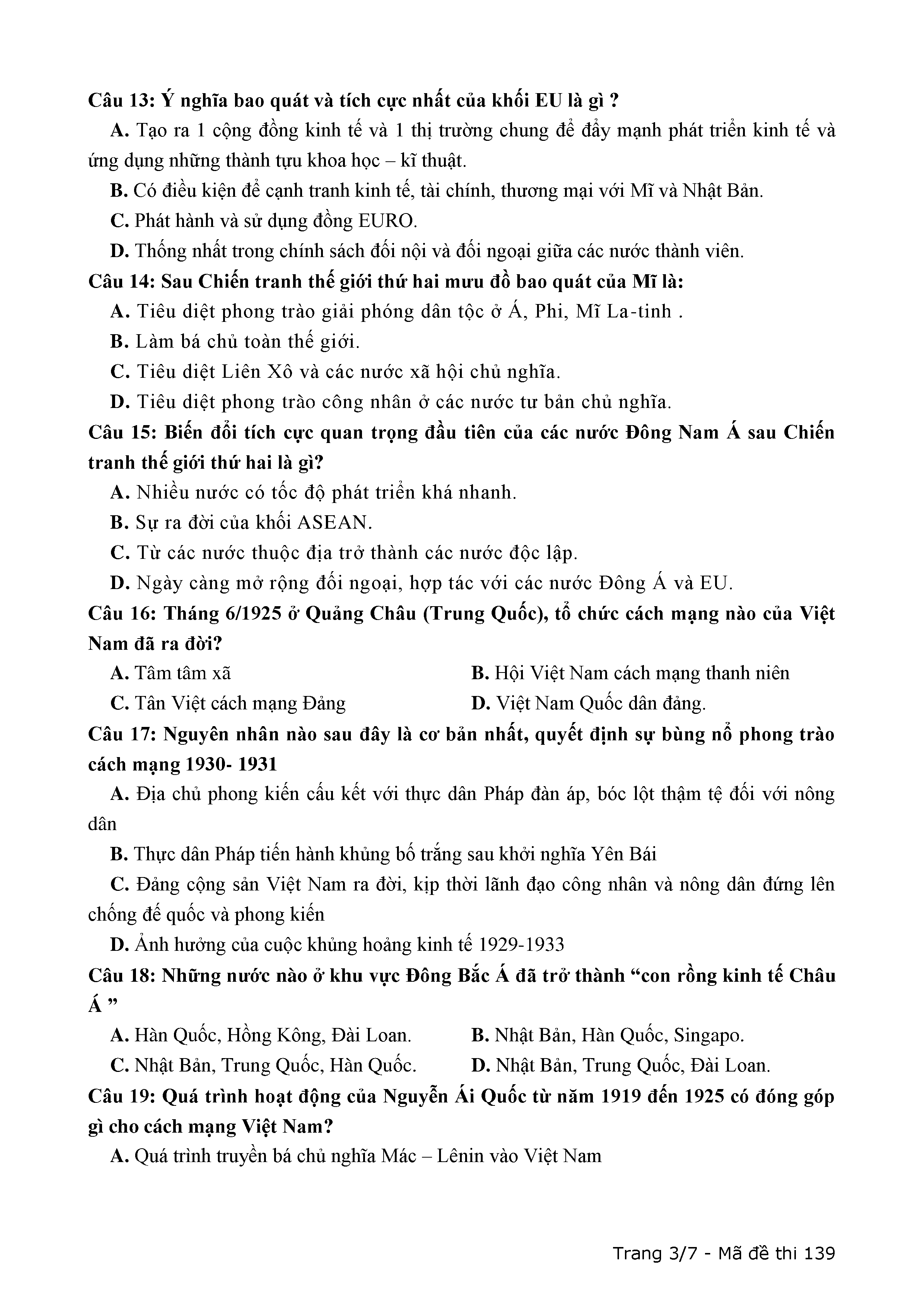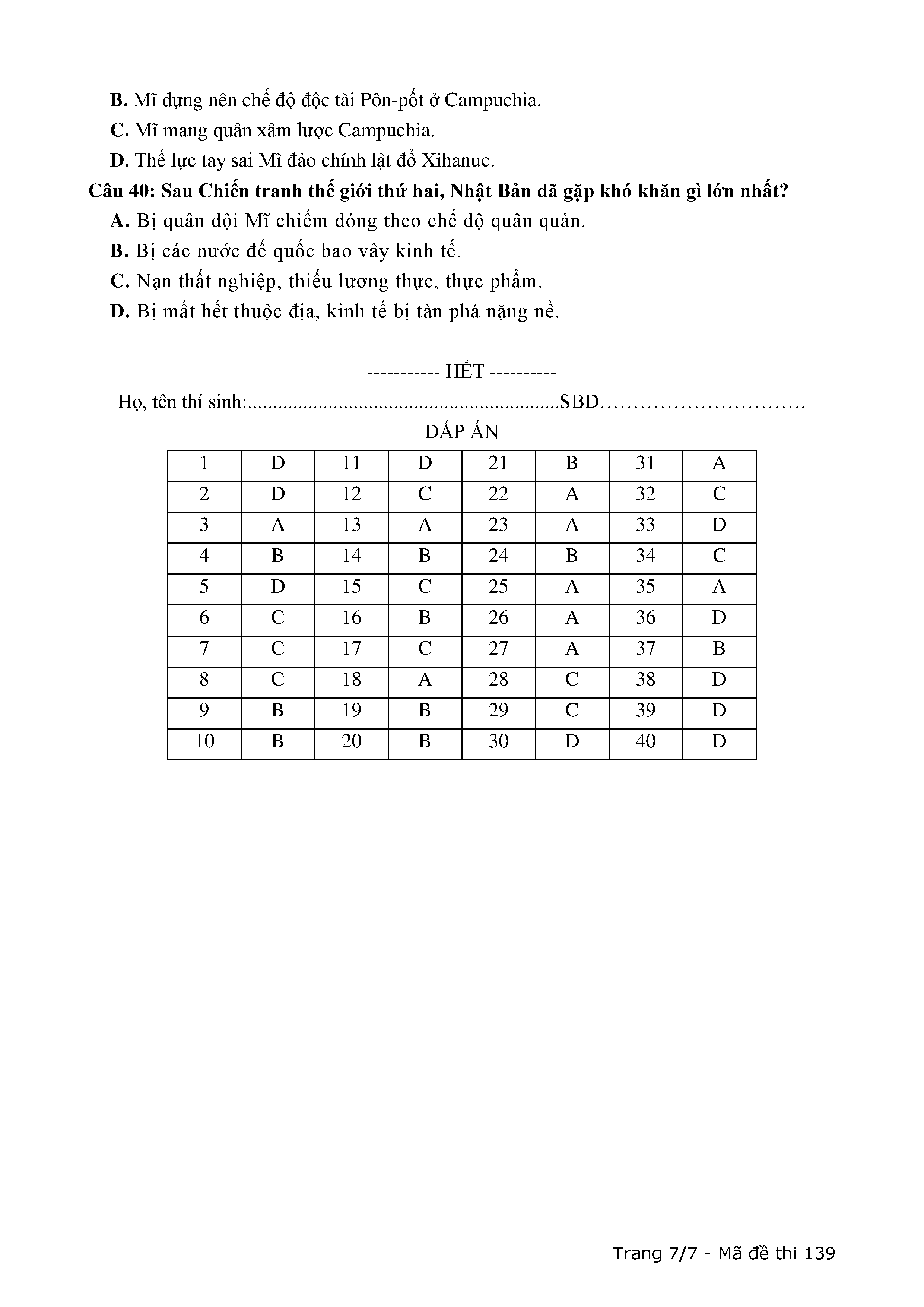 Đề thi thử THPTQG-2017-Lịch sử-THPT Trần Hưng Đạo - TPHCM lần 2