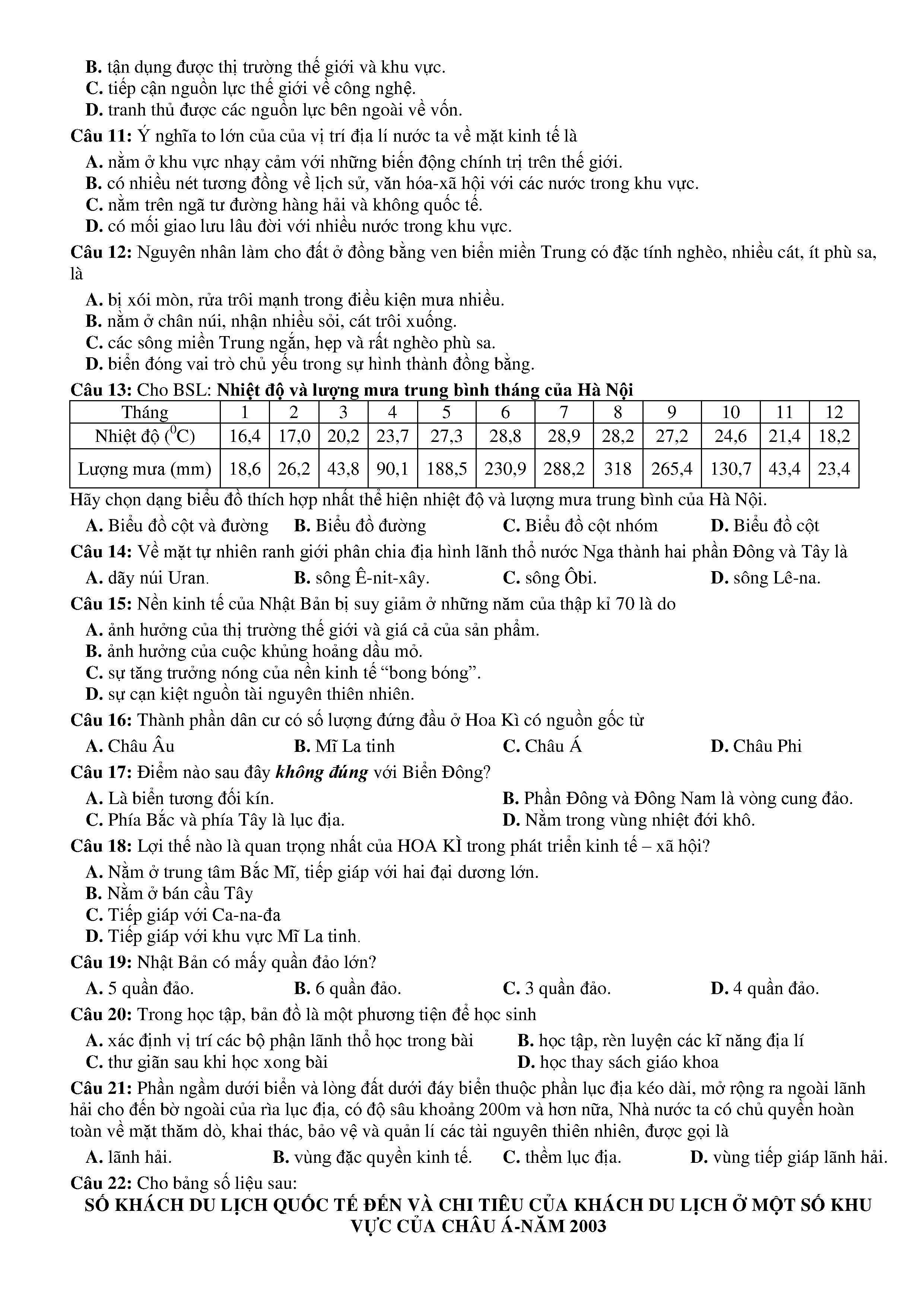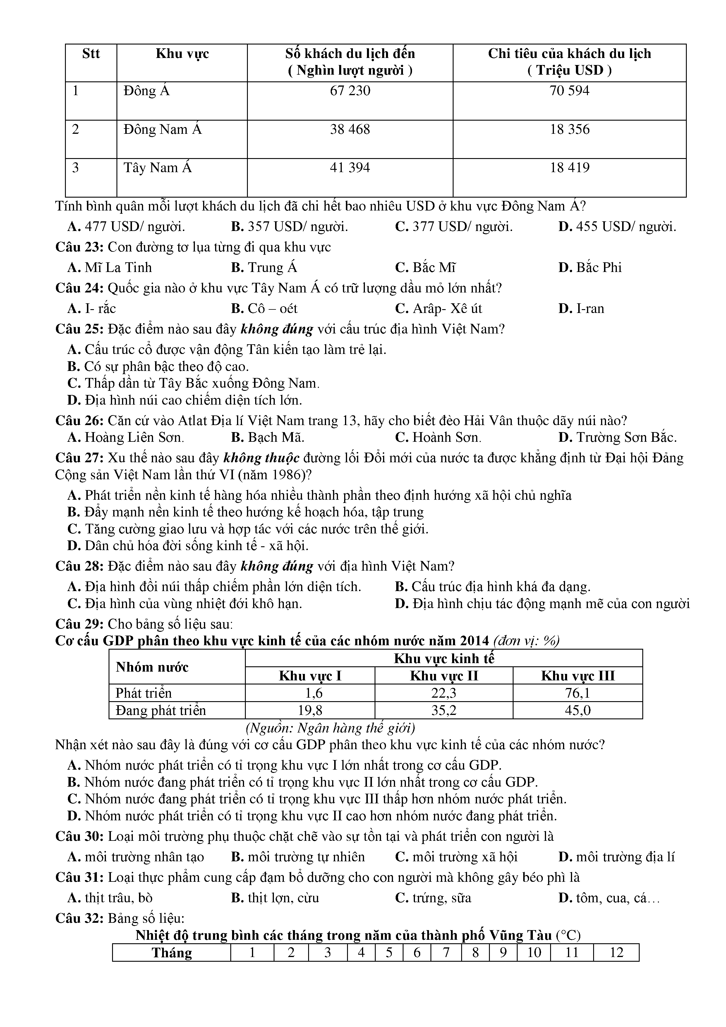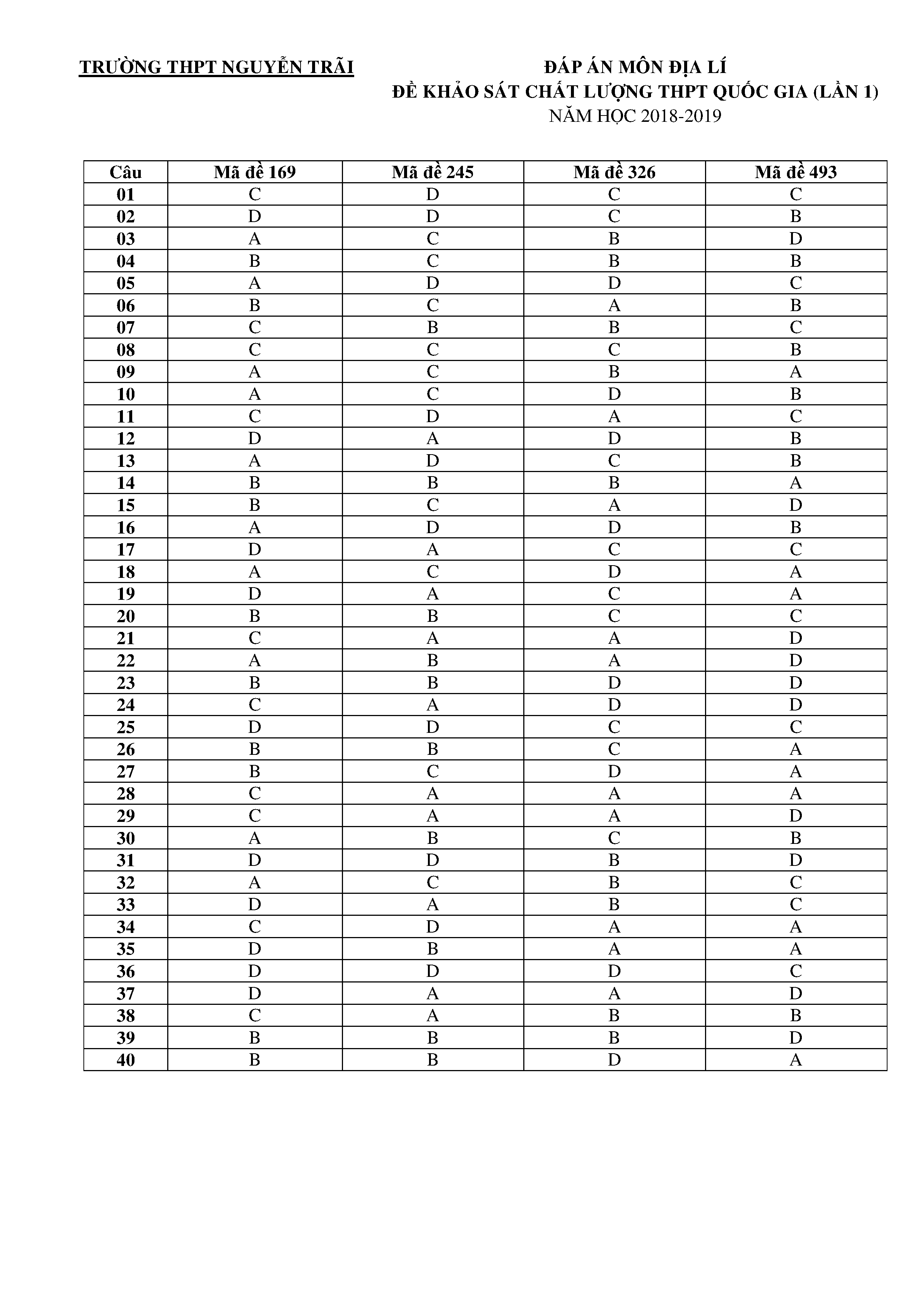 Đề thi thử THPTQG - 2018 - Địa lý -trường THPT Nguyễn Trãi - Thanh Hóa lần 1
