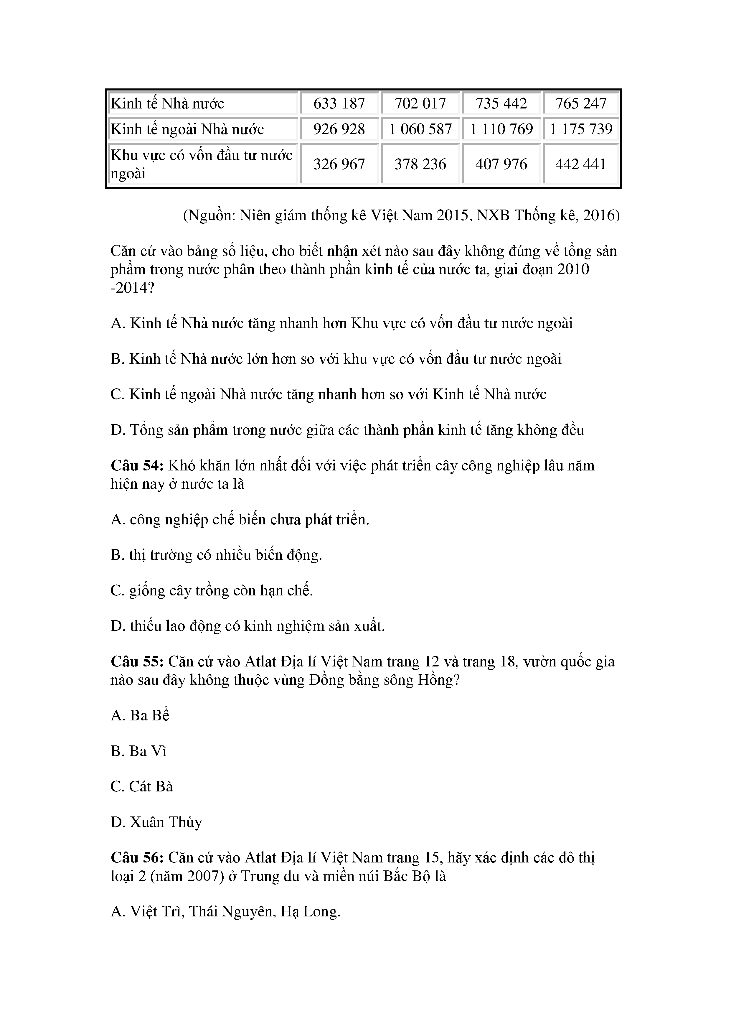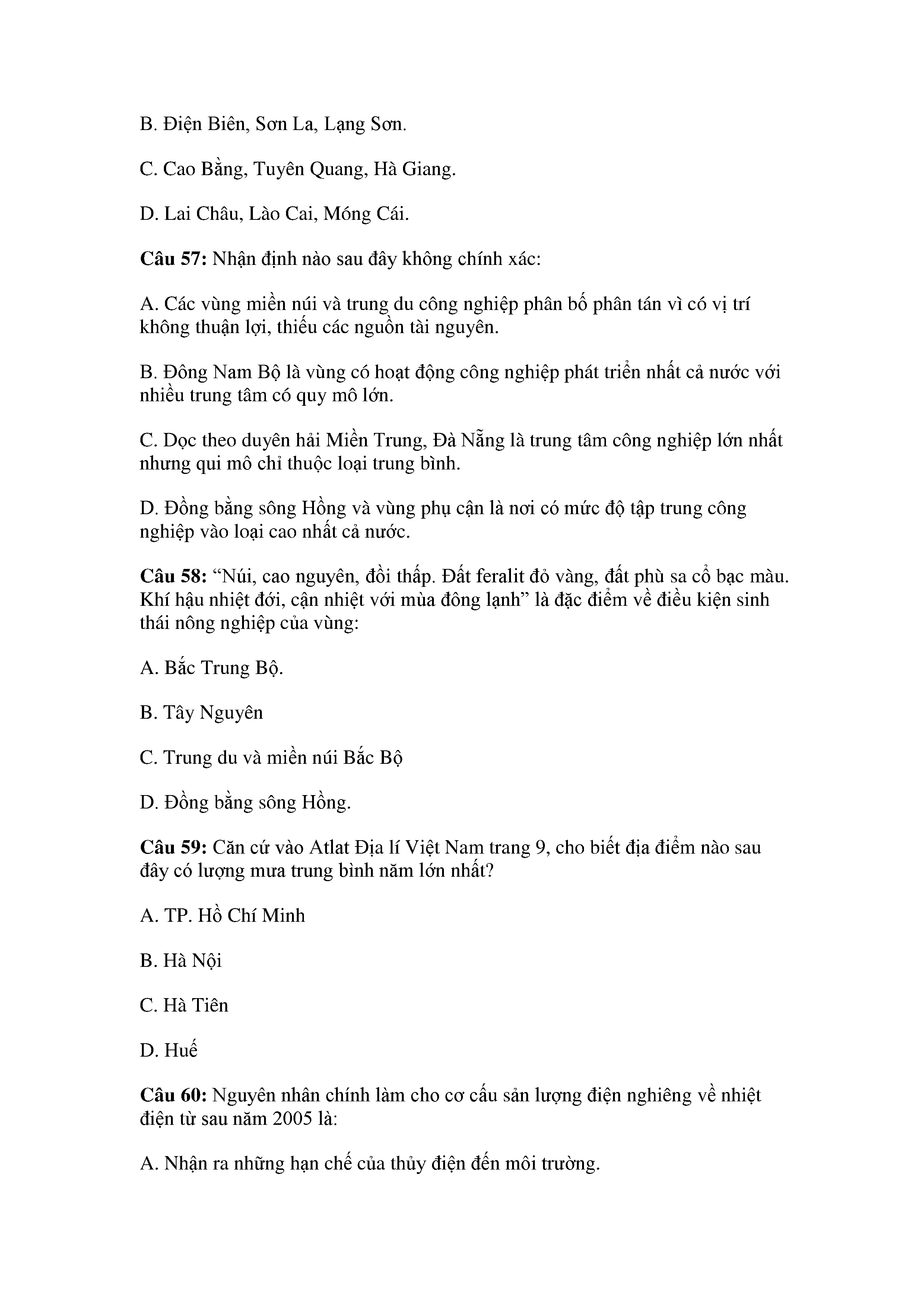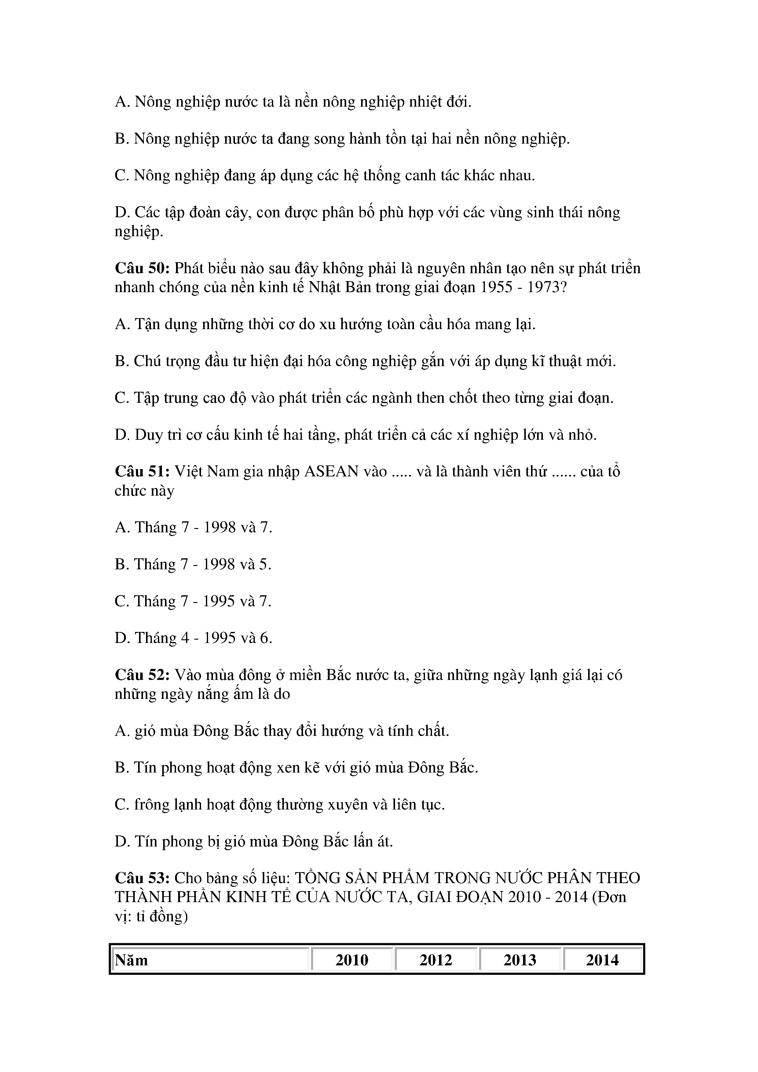 Đề thi thử THPTQG - 2018 - Địa lý -trường THPT Nguyễn Viết Xuân - Vĩnh Phúc lần 3