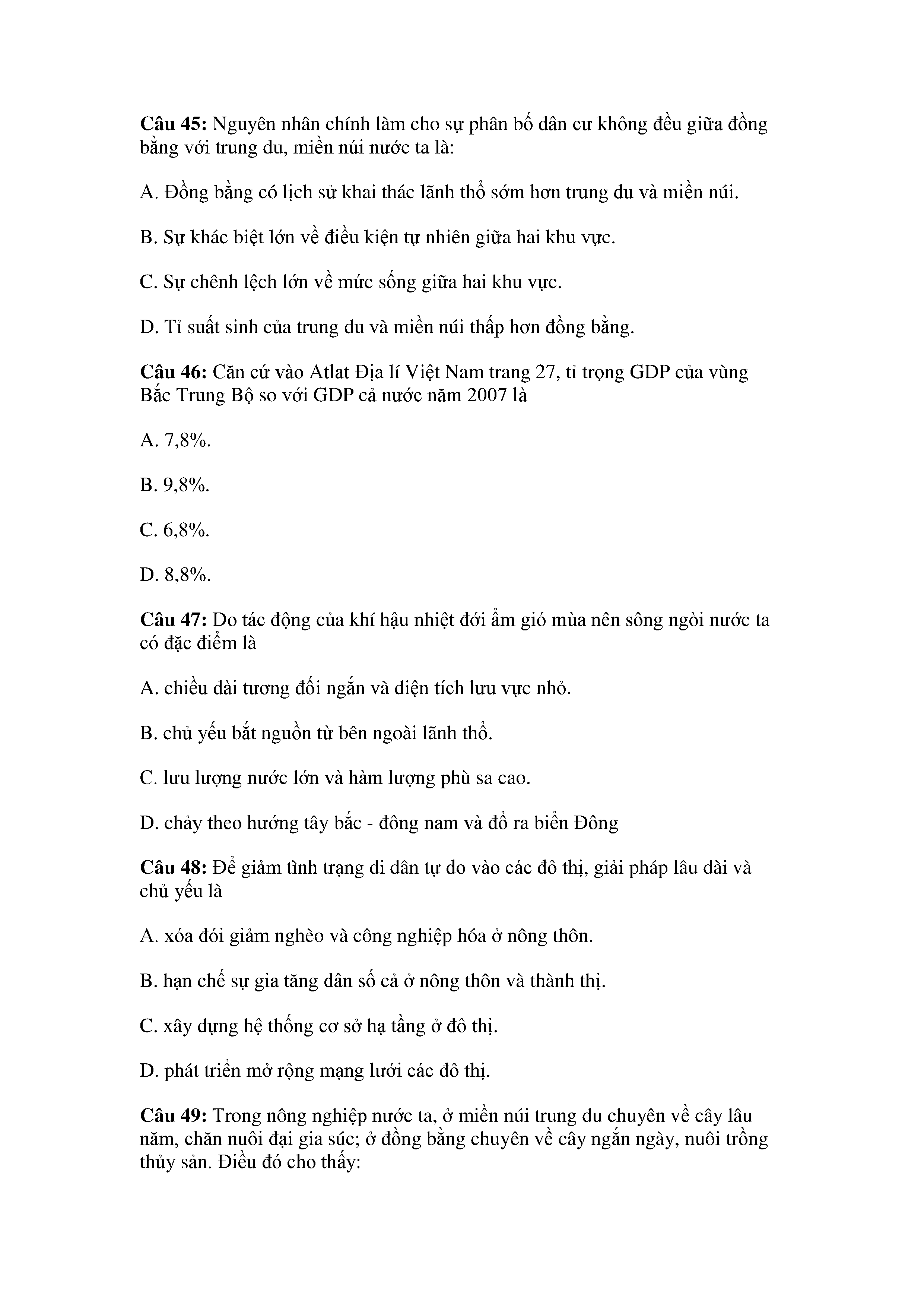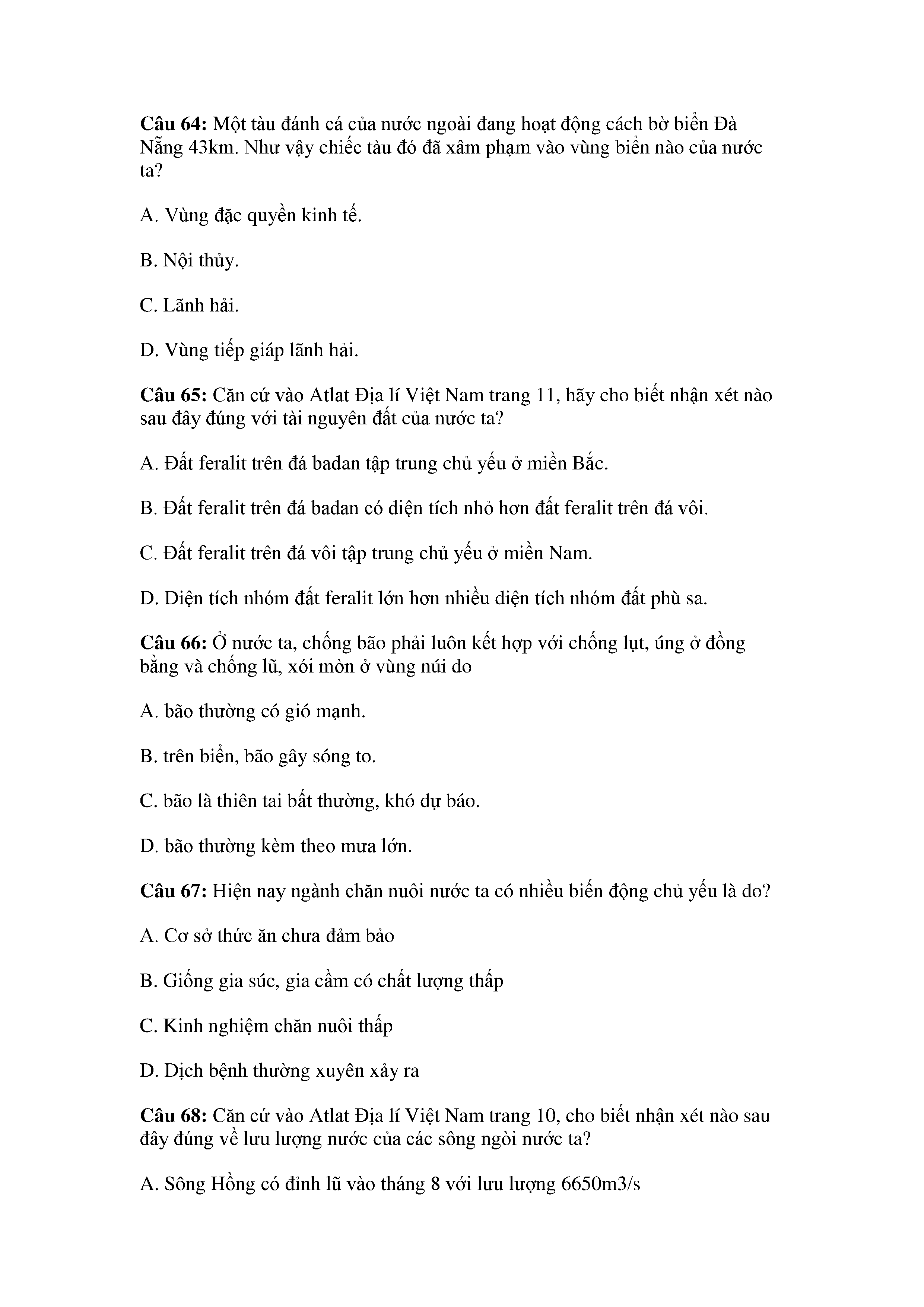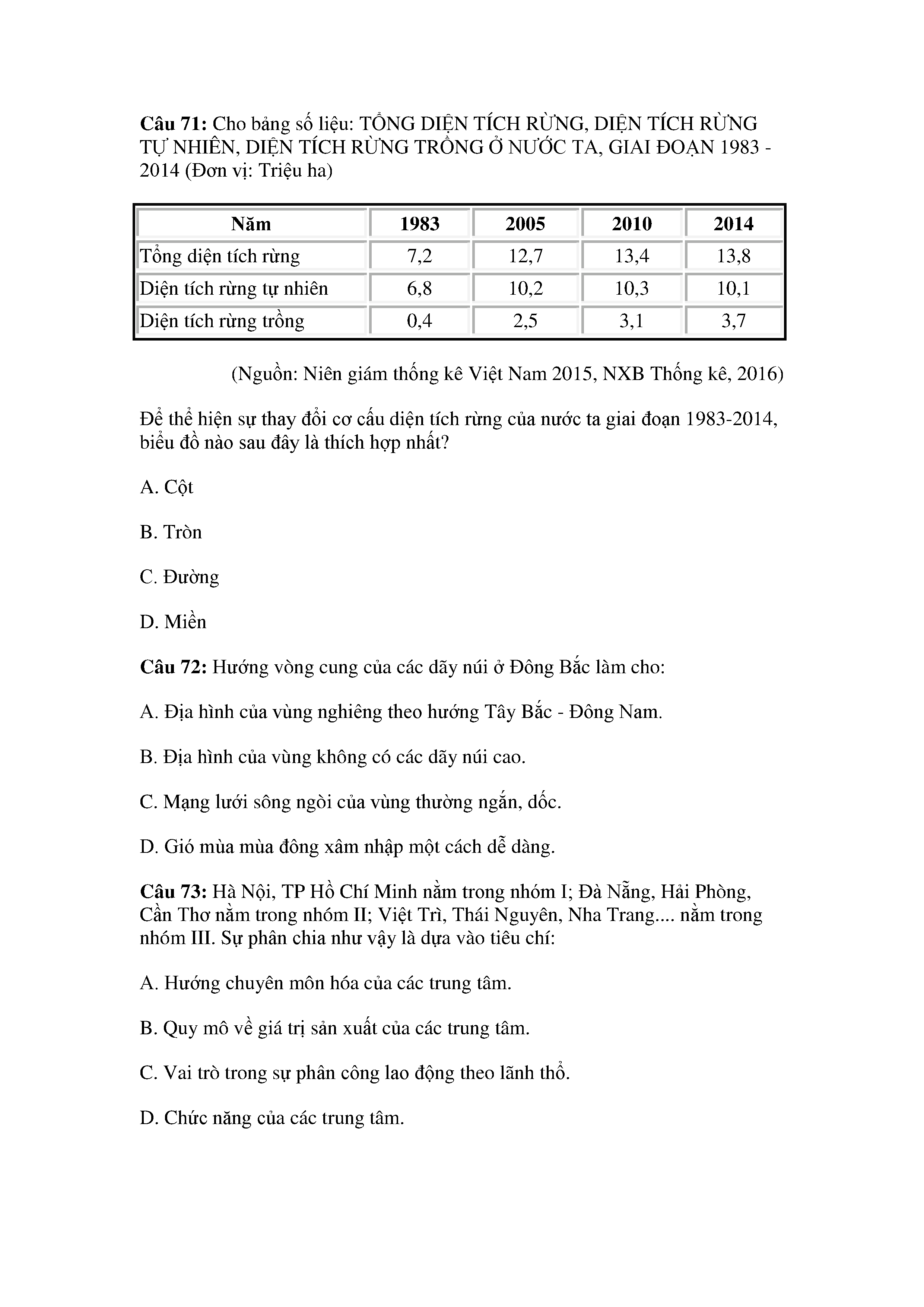 Đề thi thử THPTQG - 2018 - Địa lý -trường THPT Nguyễn Viết Xuân - Vĩnh Phúc lần 3