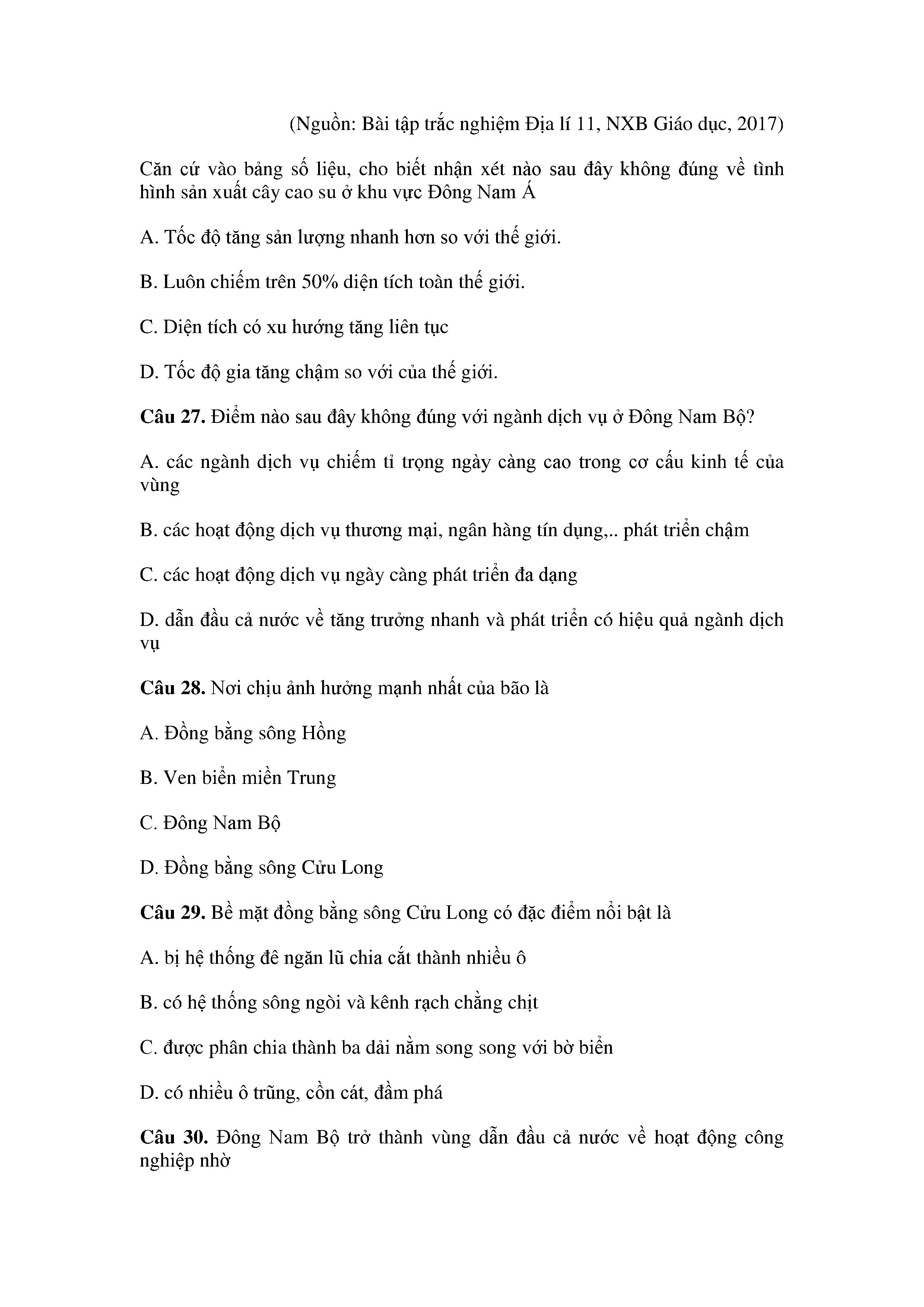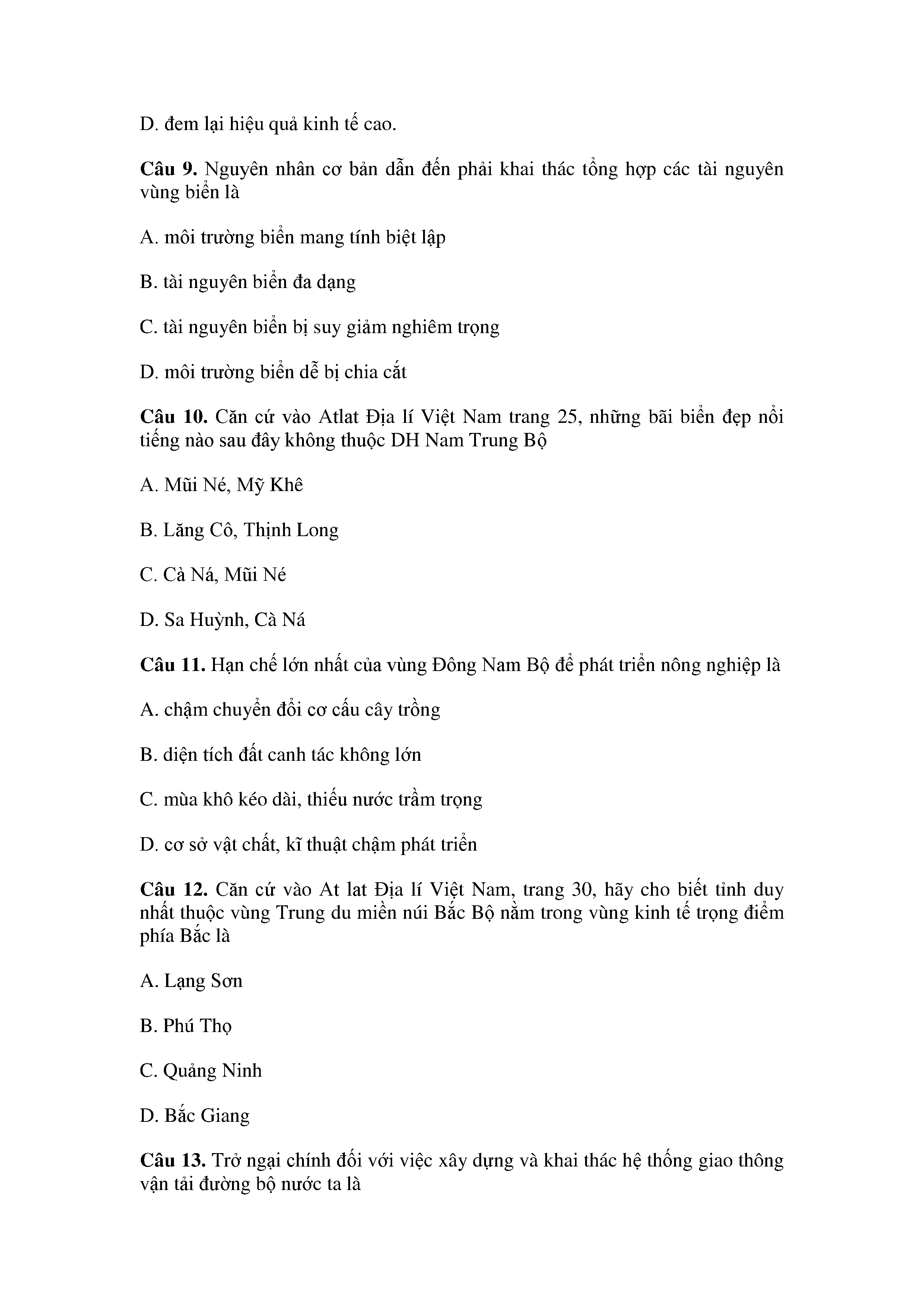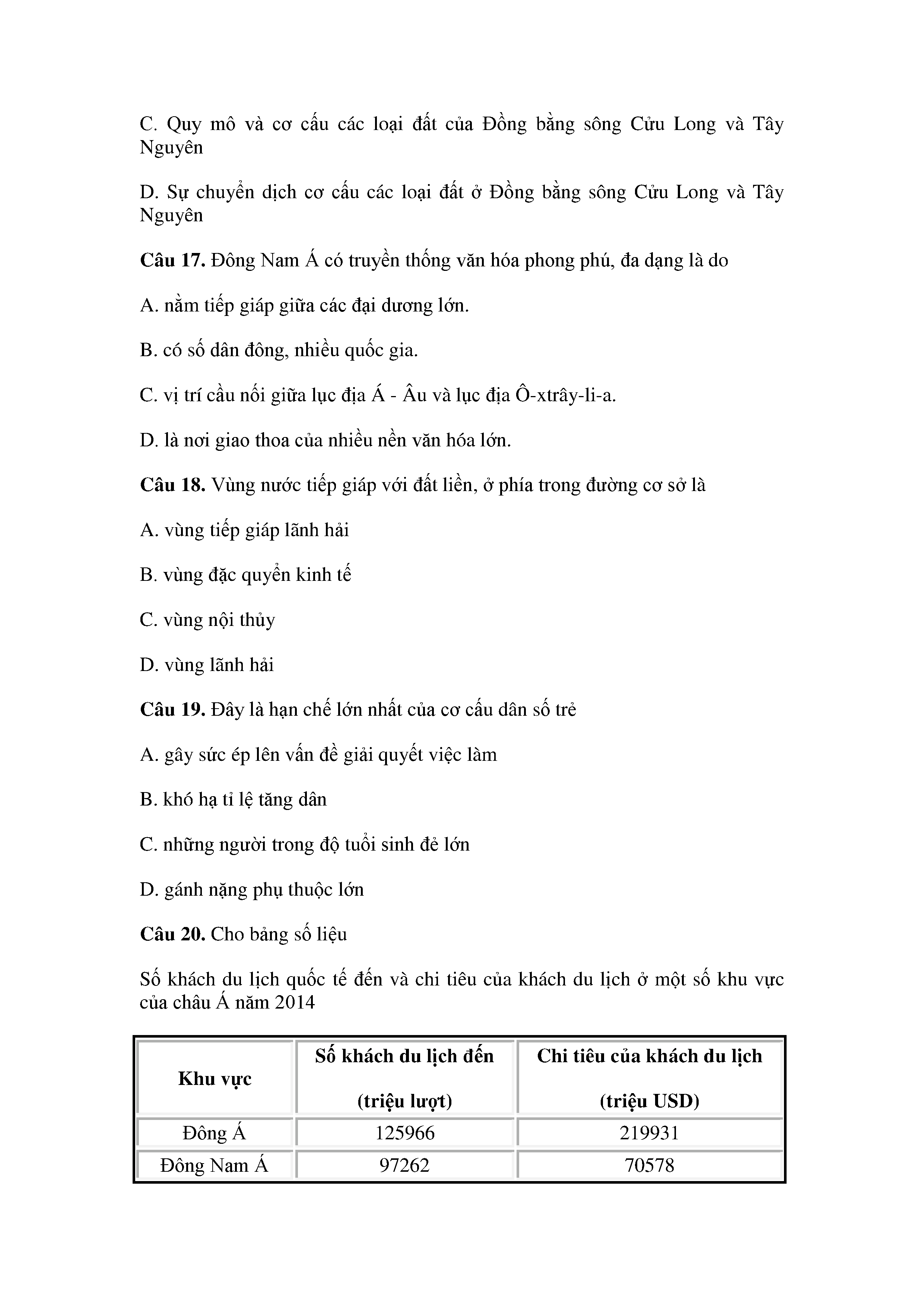 Đề thi thử THPTQG - 2019 - Địa lý -trường THPT Số 3 An Nhơn - Bình Định