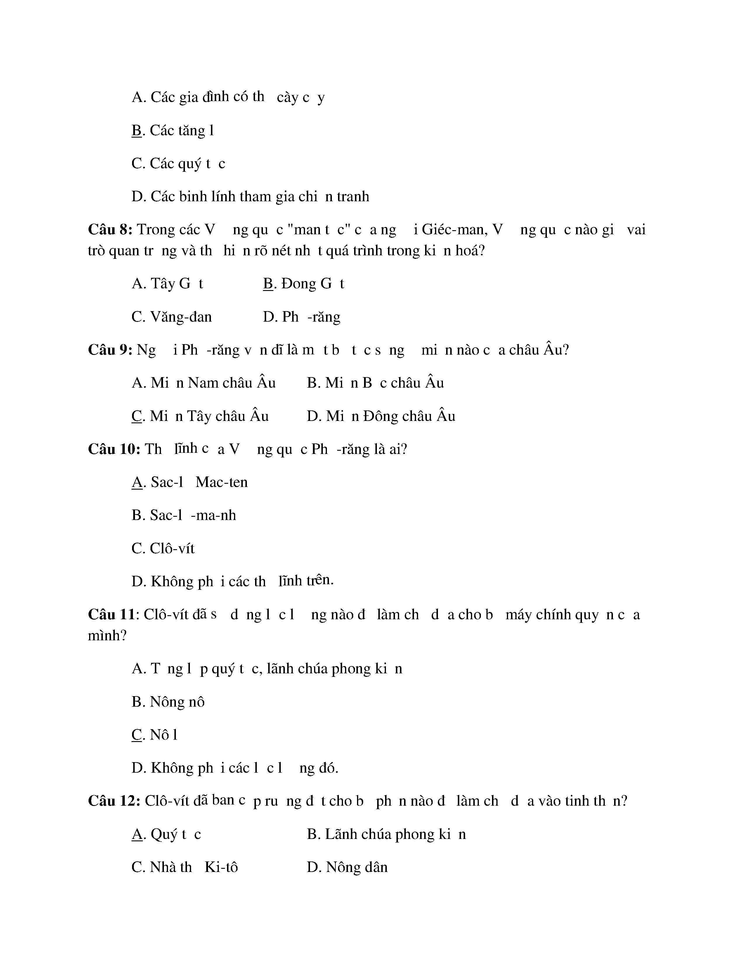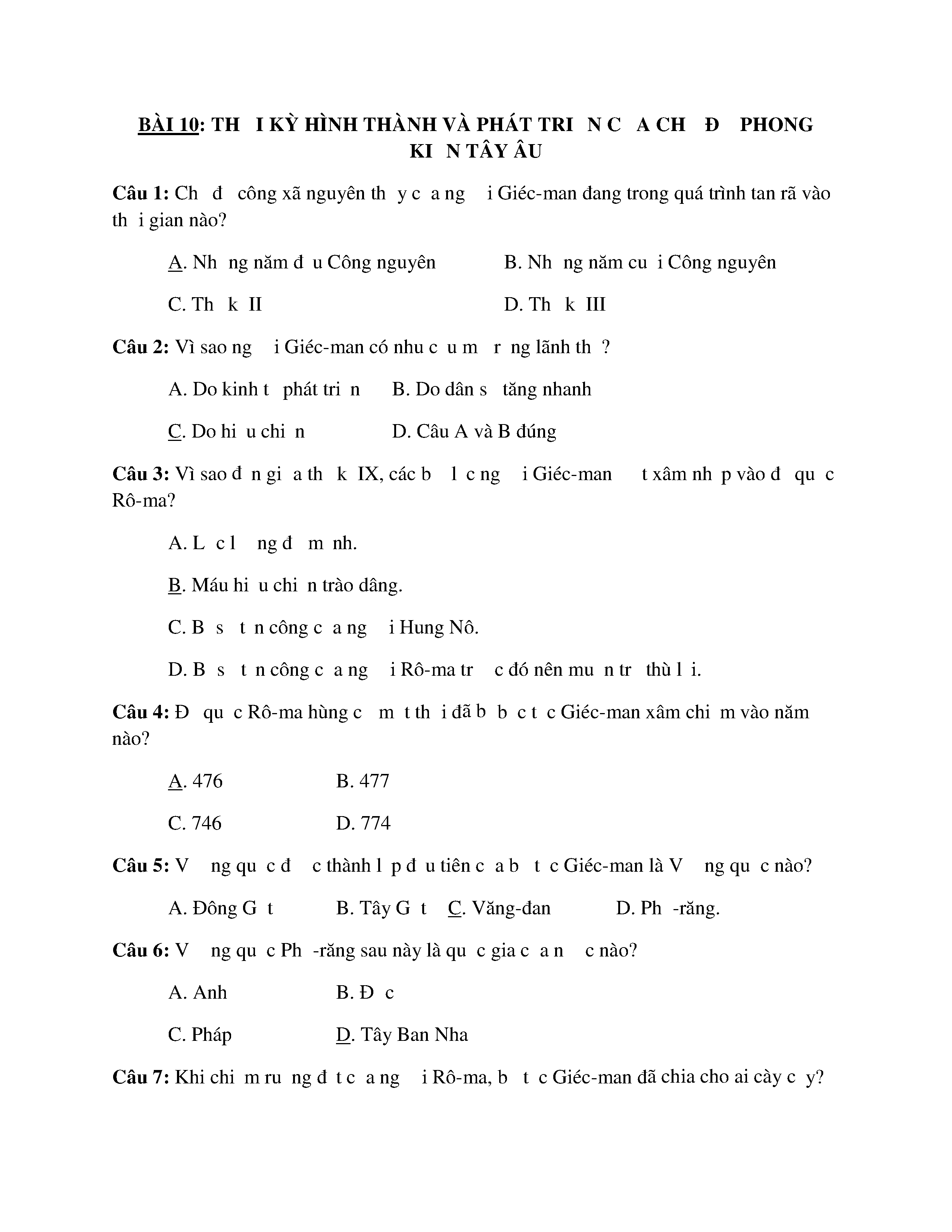 Thời kì hình thành và phát triển các chế độ phong kiến ở Tây Âu - Lịch sử - Lớp 10