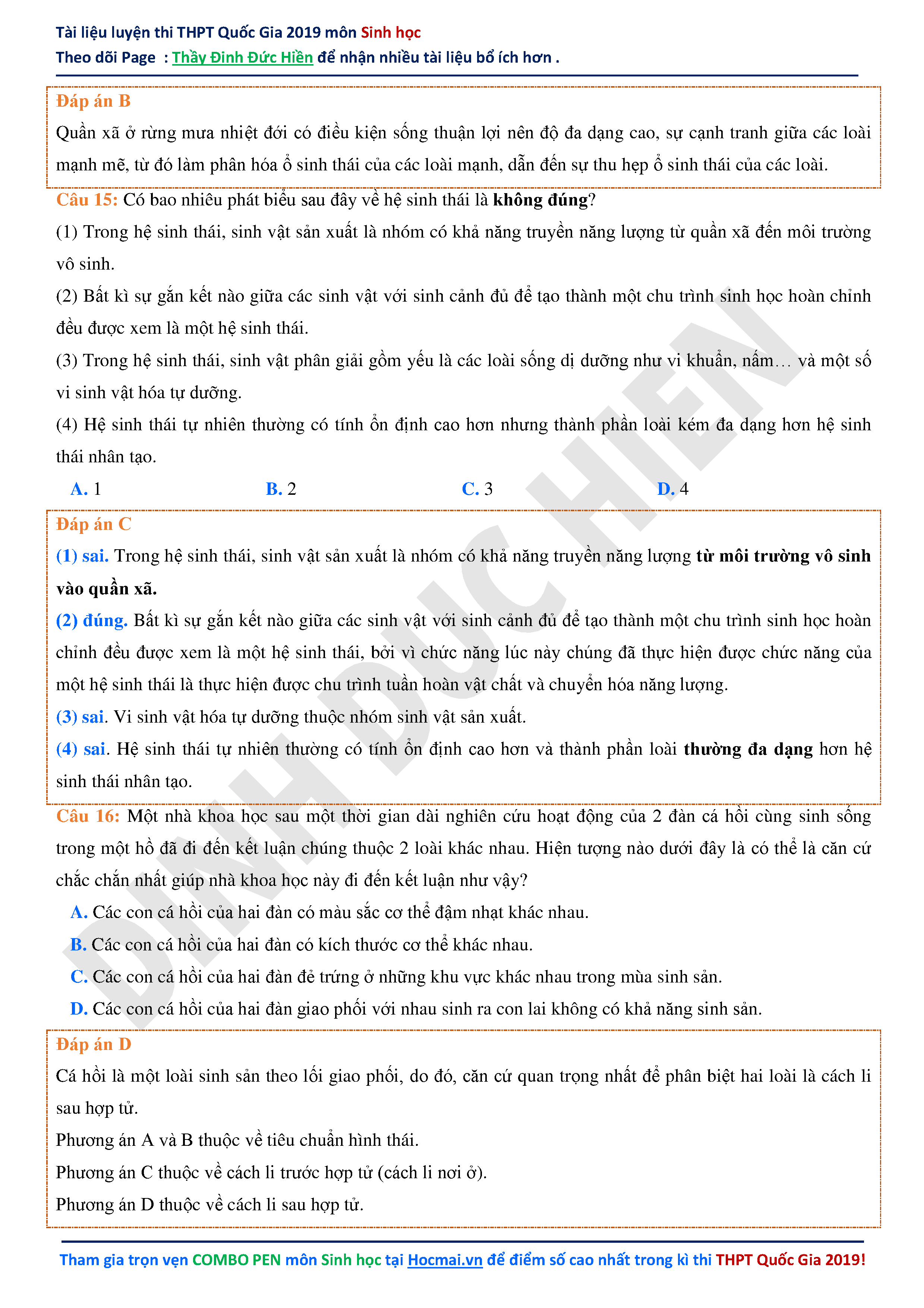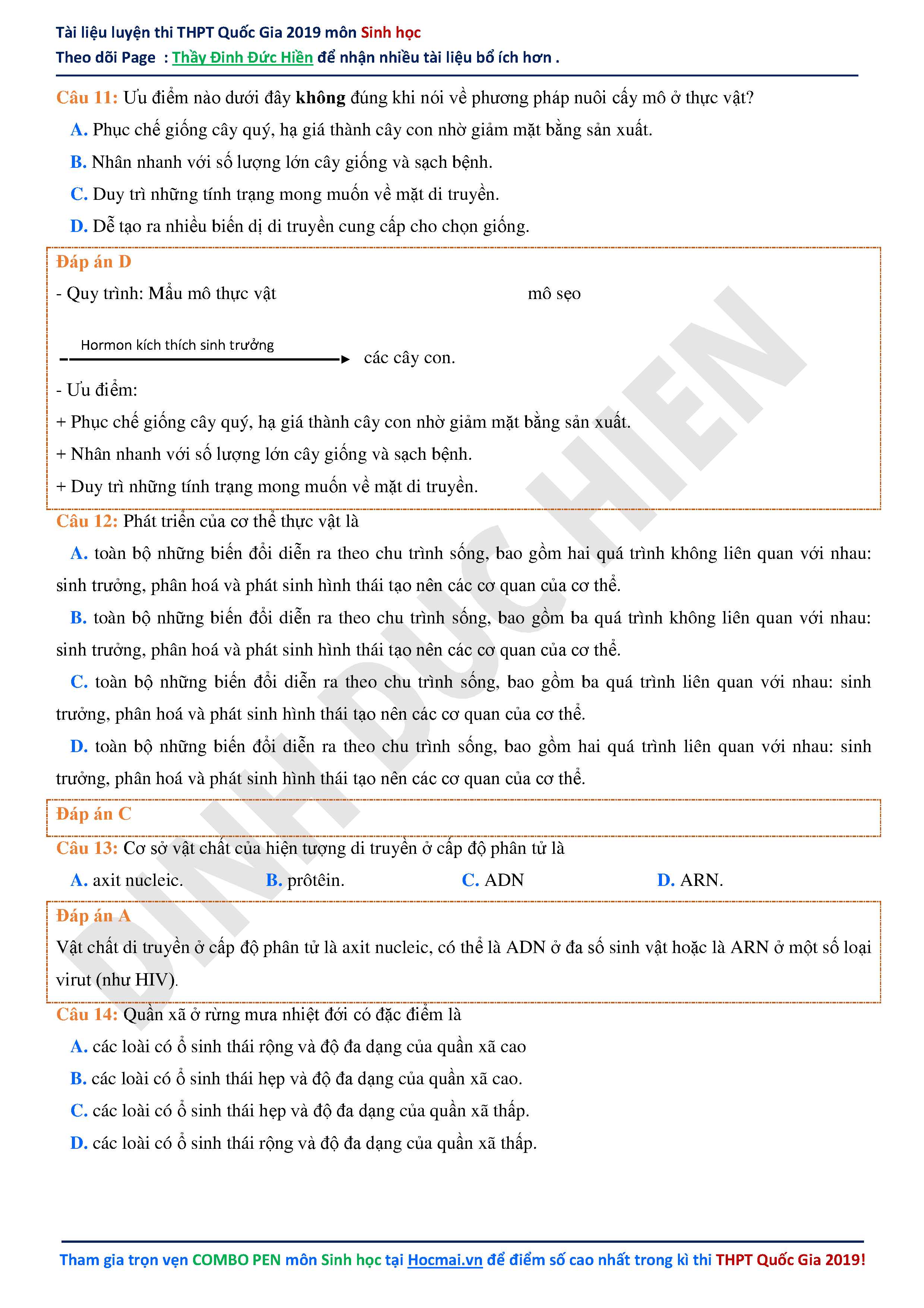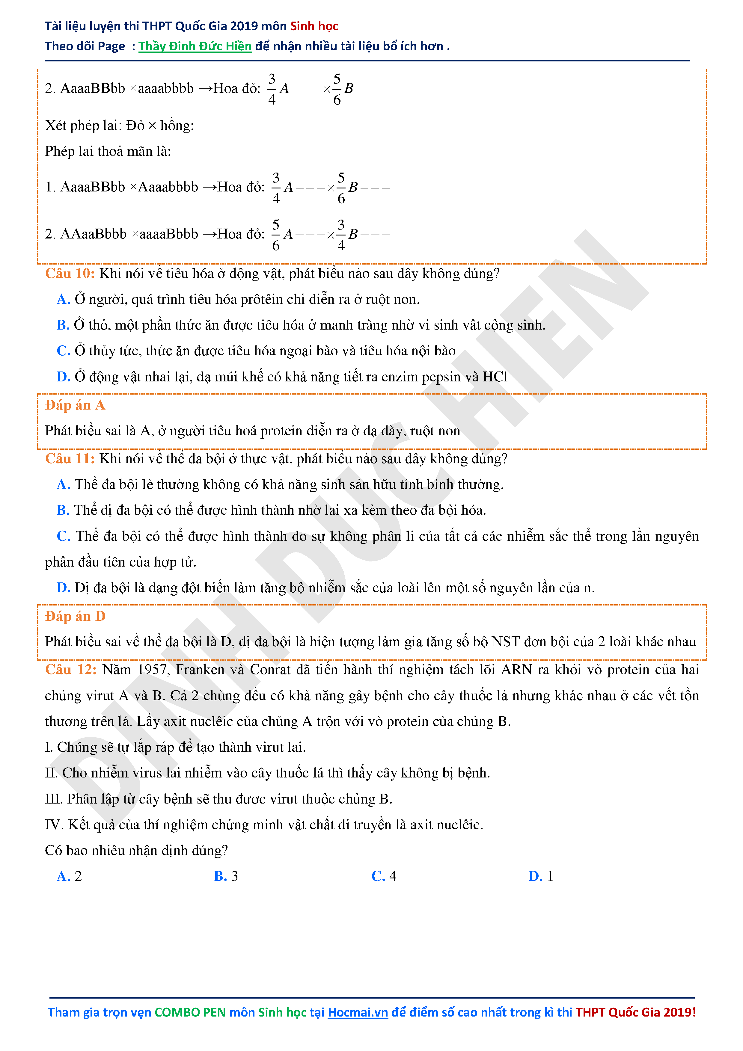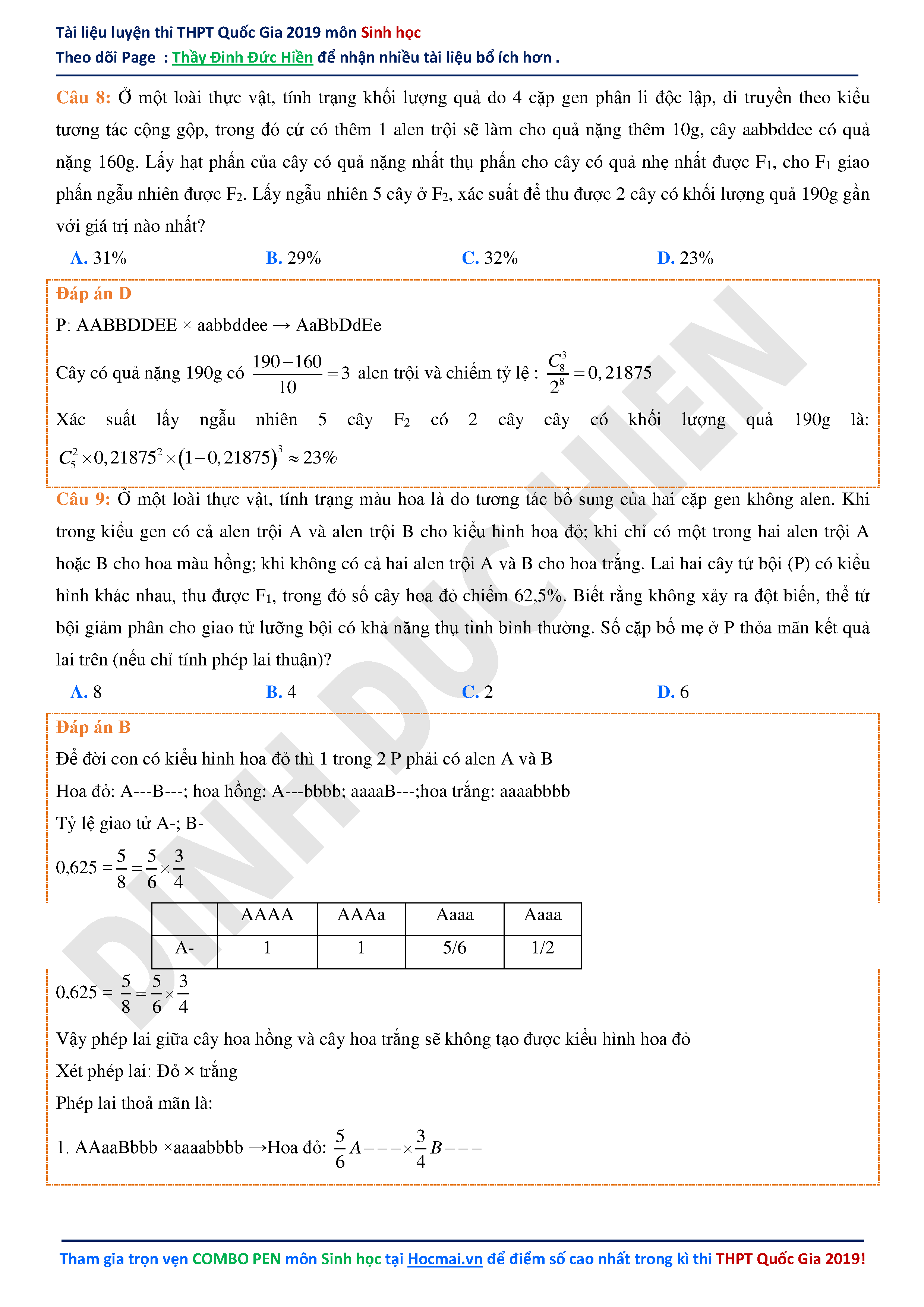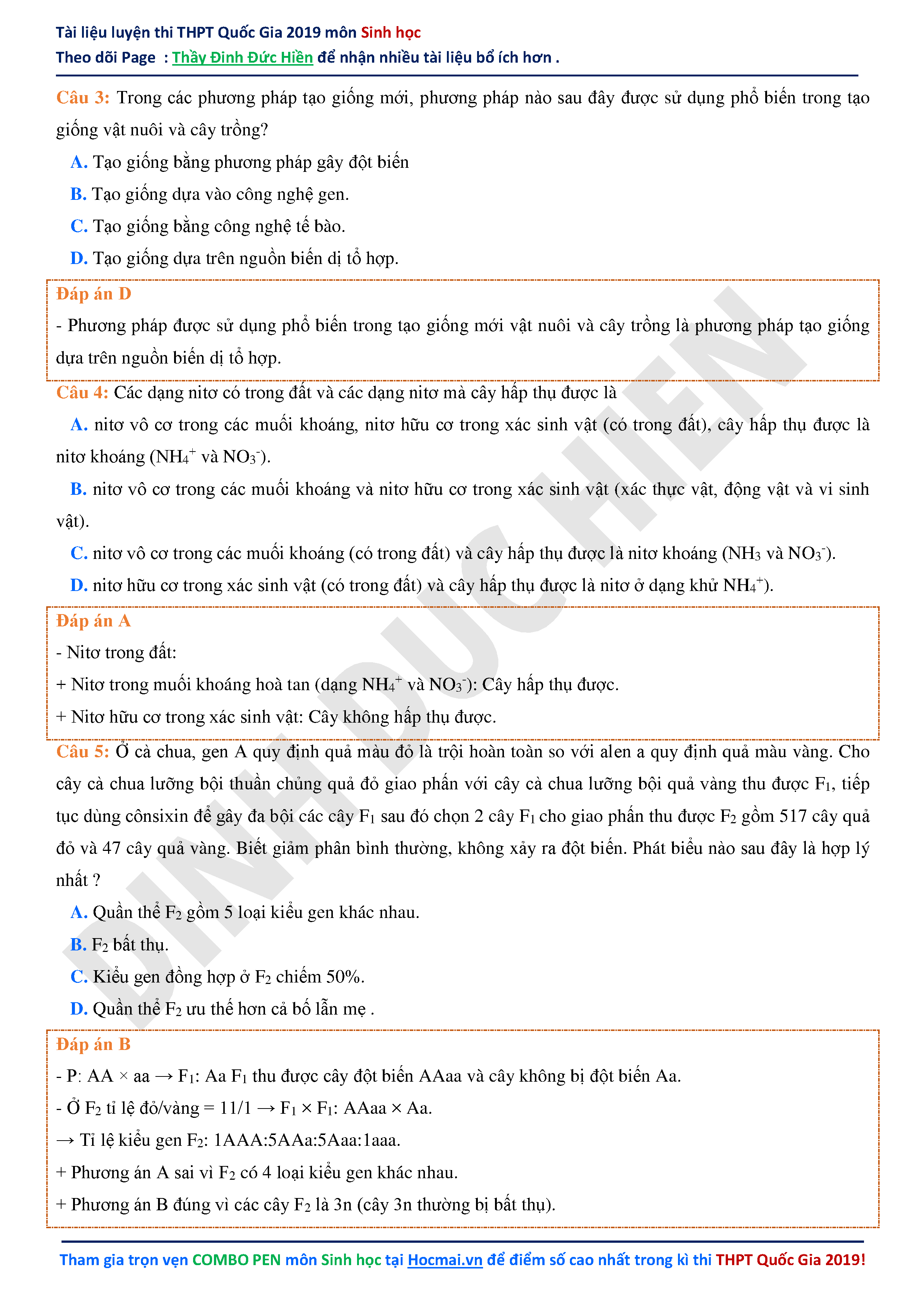 Bộ đề thi chinh phục điểm 9-10 môn Sinh học (Phần 1)