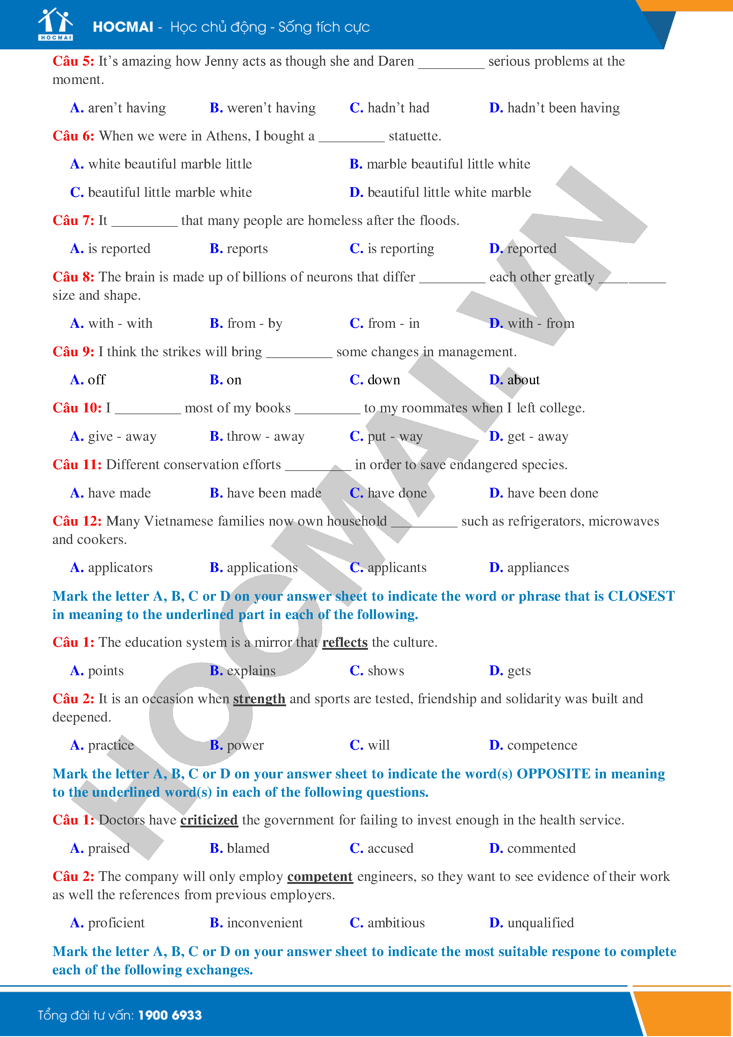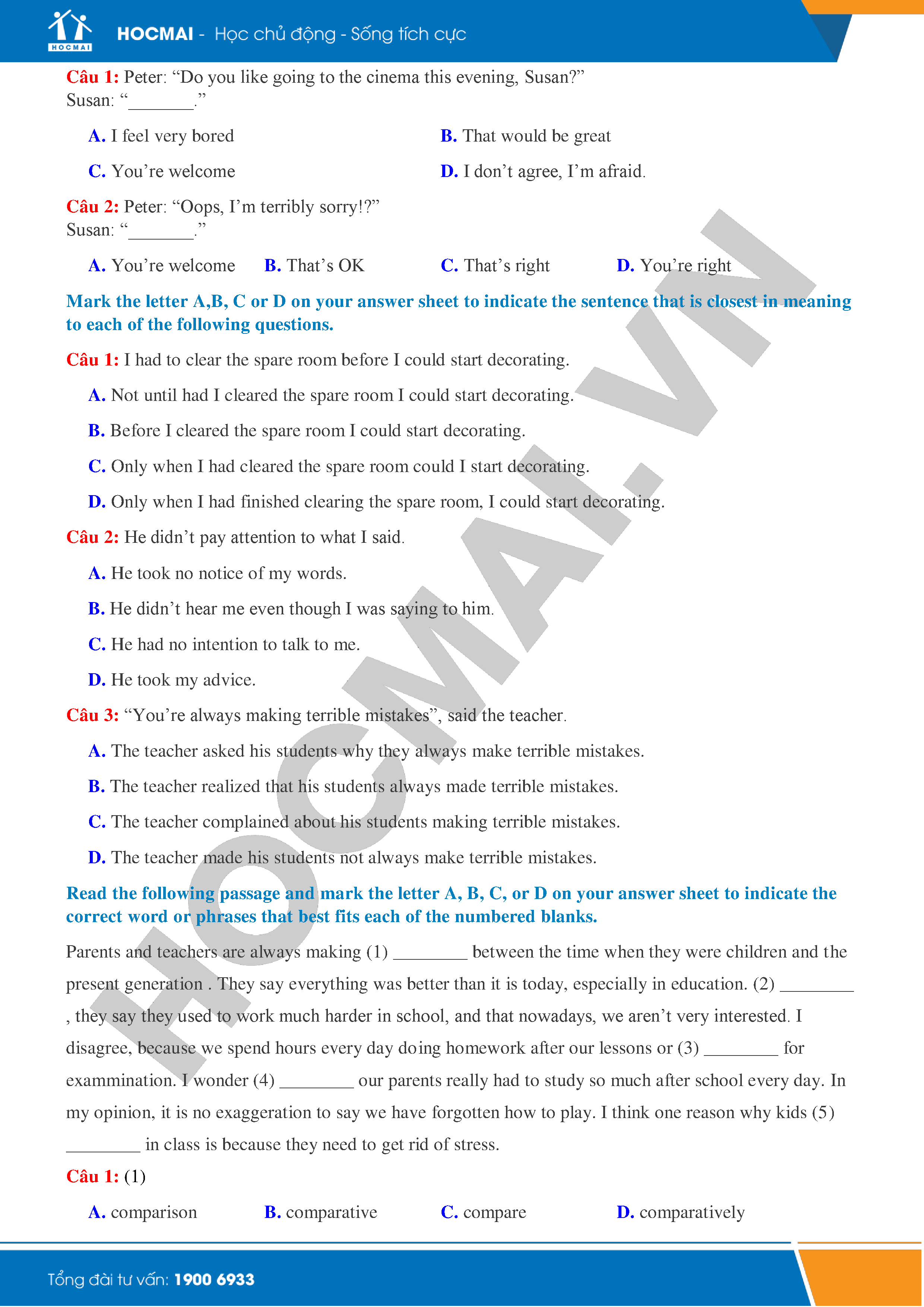 Đề thi thử THPTQG năm 2018 - Môn Tiếng Anh - THPT Thoại Ngọc Hầu - An Giang - Lần 1 là bộ đề do HOCMAI sưu tầm. Đề gồm các câu hỏi trắc nghiệm, nội dung kiến thức chủ yếu xoay quanh những phần ôn thi THPTQG. Cùng tham khảo đề và học tập thật tốt các bạn n