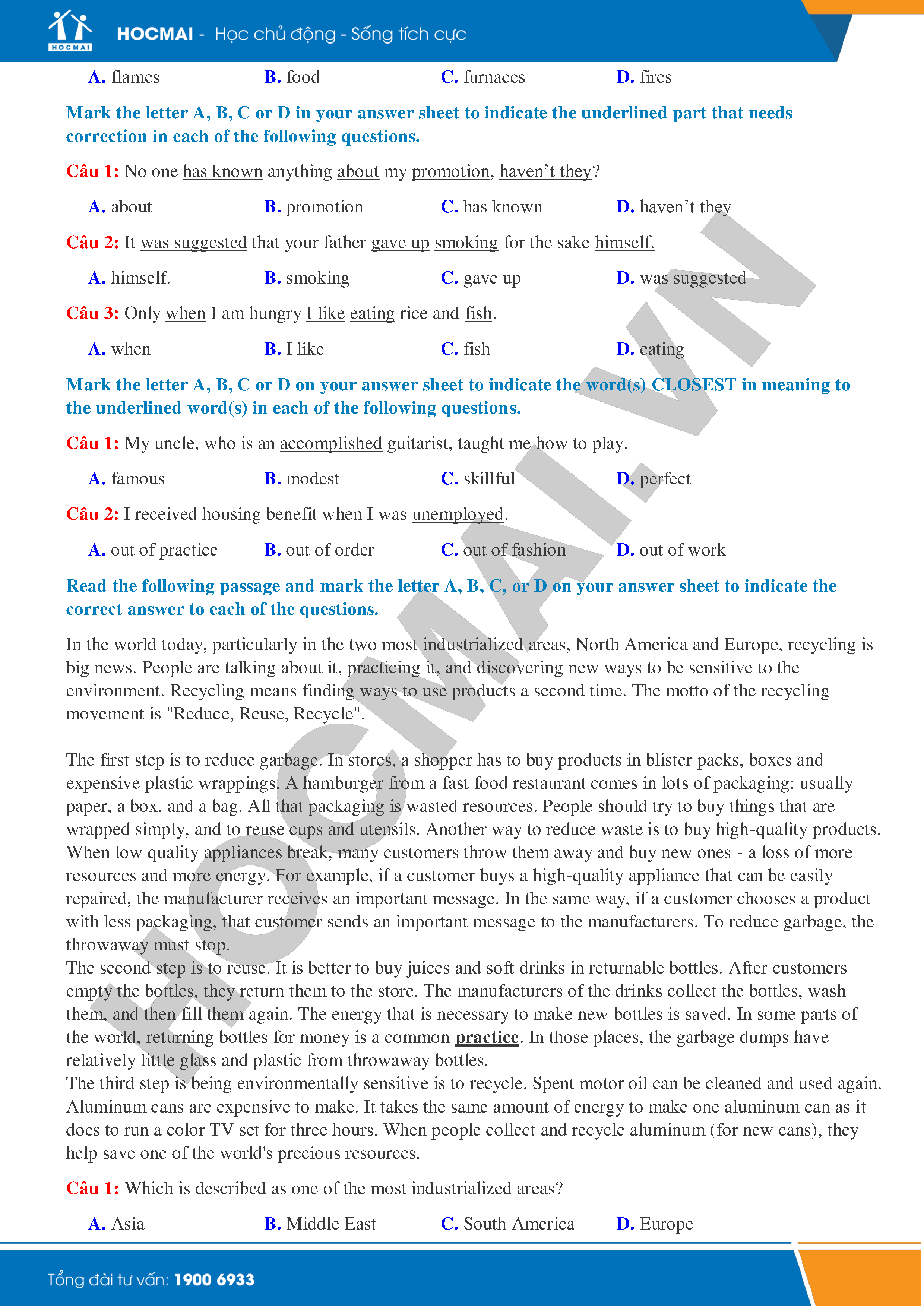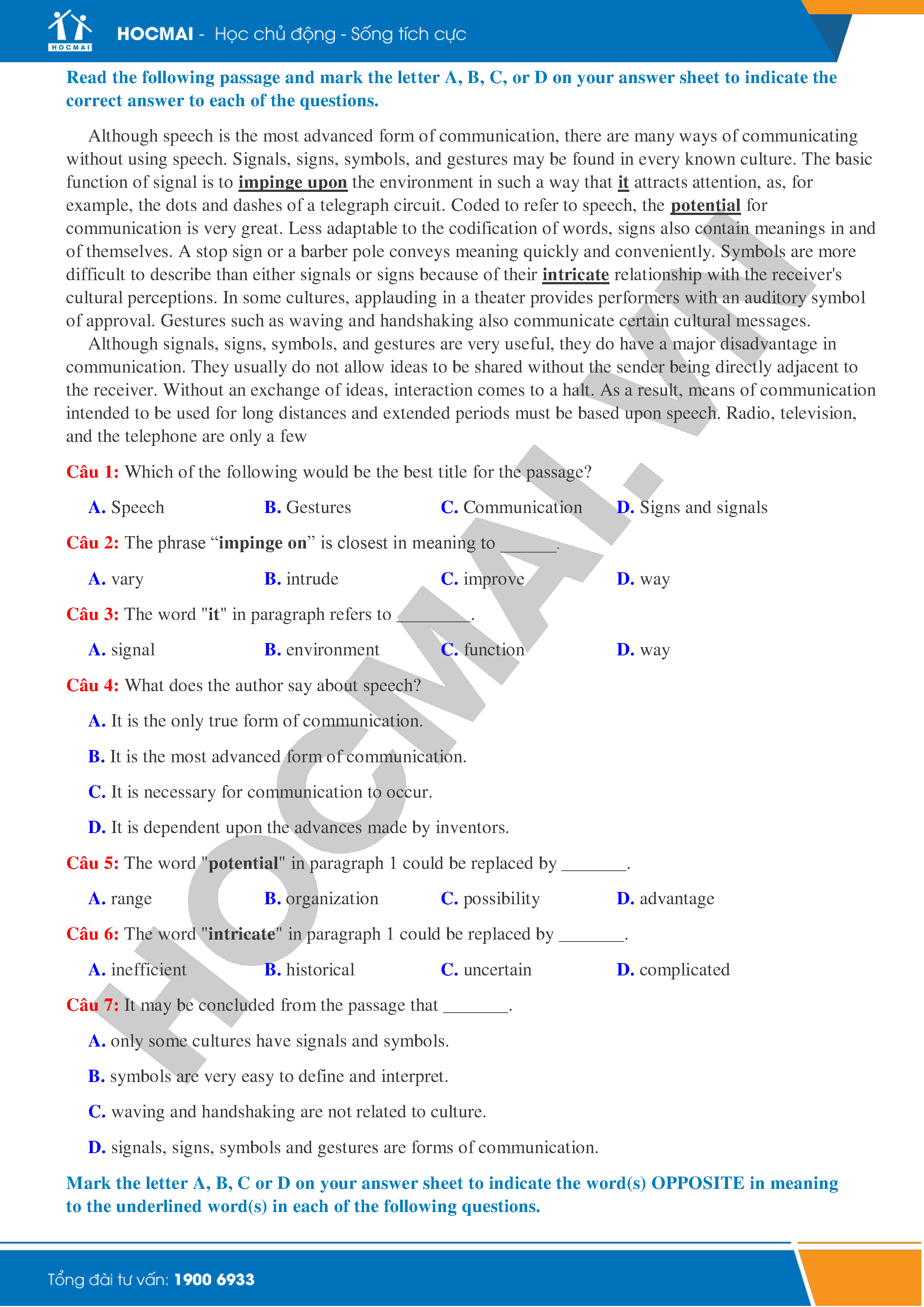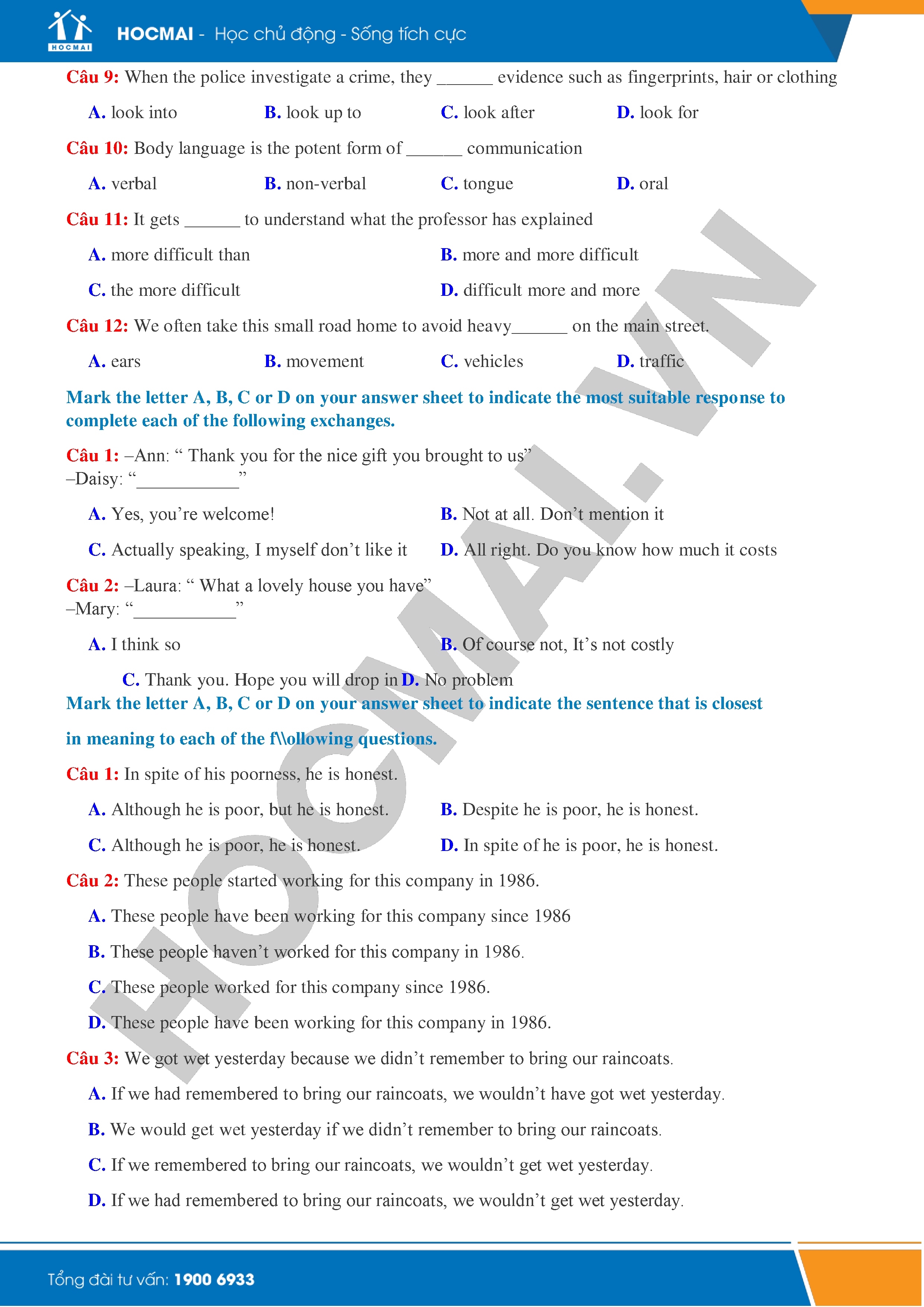 Đề thi thử THPTQG năm 2018 - Môn Tiếng Anh - THPT Quốc Oai - Hà Nội - Lần 1 là bộ đề do HOCMAI sưu tầm, đề gồm các câu hỏi trắc nghiệm, nội dung chủ yếu xoay quanh những kiến thức ôn thi THPTQG. Chúc các bạn ôn thi vui vẻ!