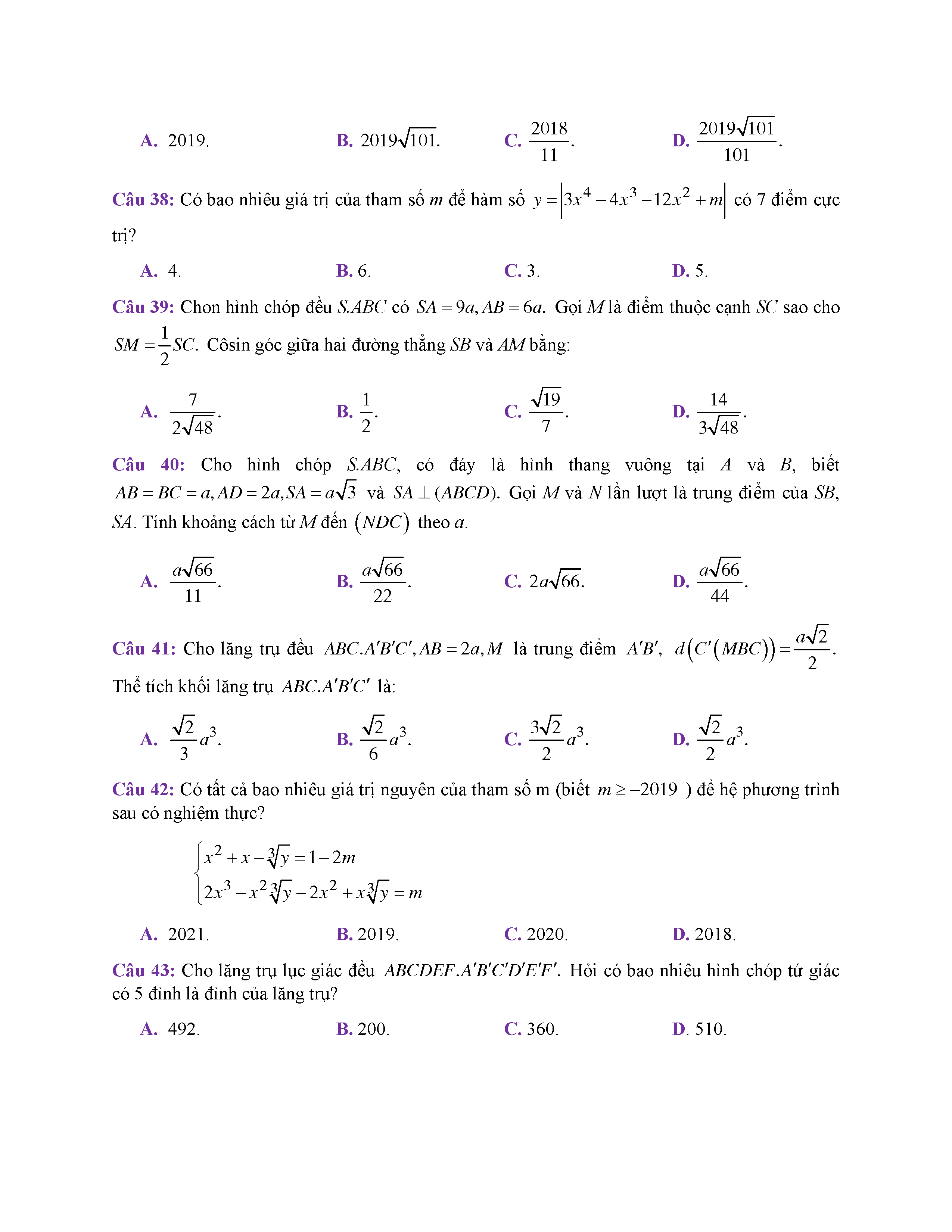 13. Đề thi thử THPT năm 2019 môn Toán trường Chuyên Quang Trung – Bình Phước - Lần 1