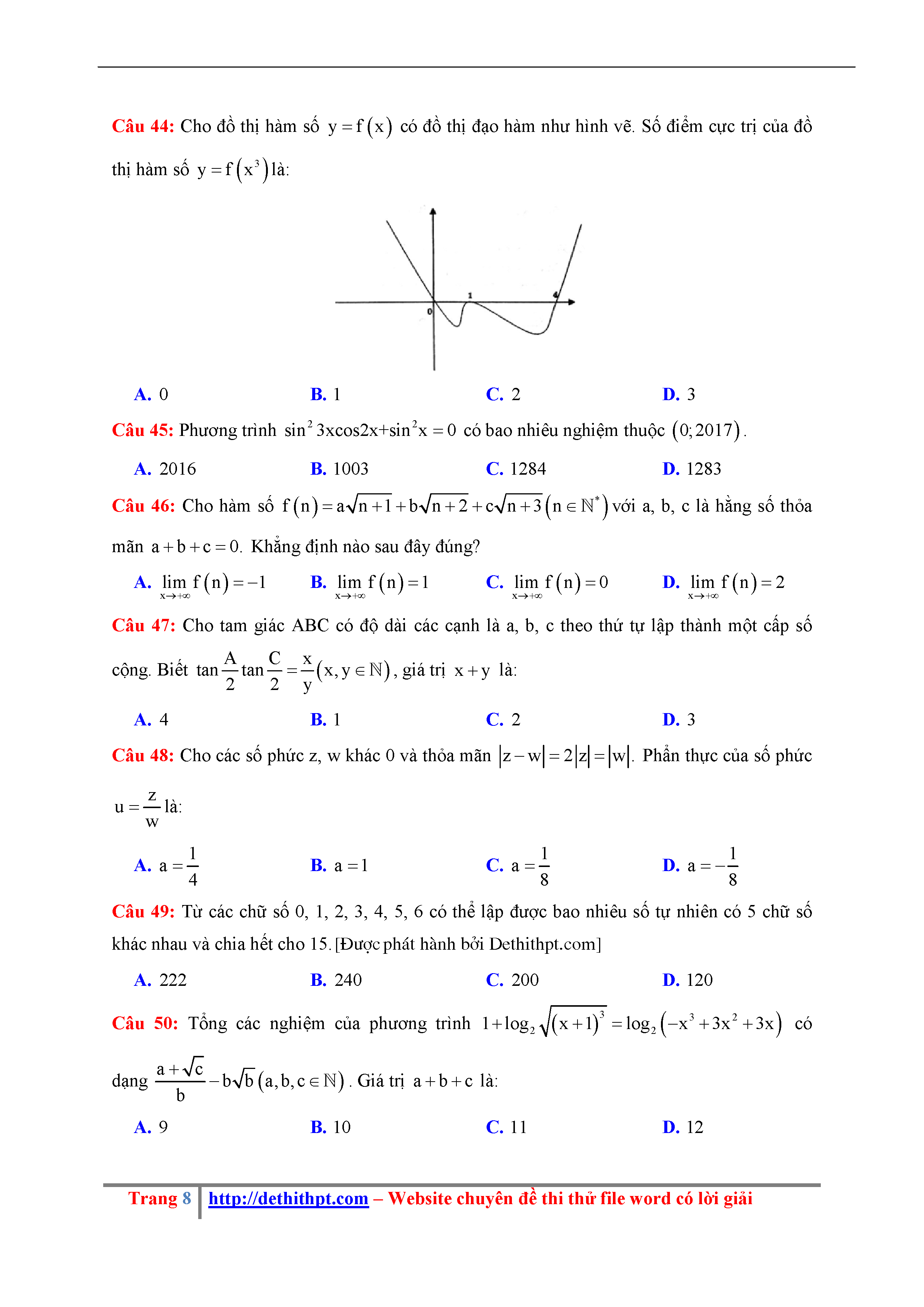 44Đề thi thử THPTQG 2018 môn Toán