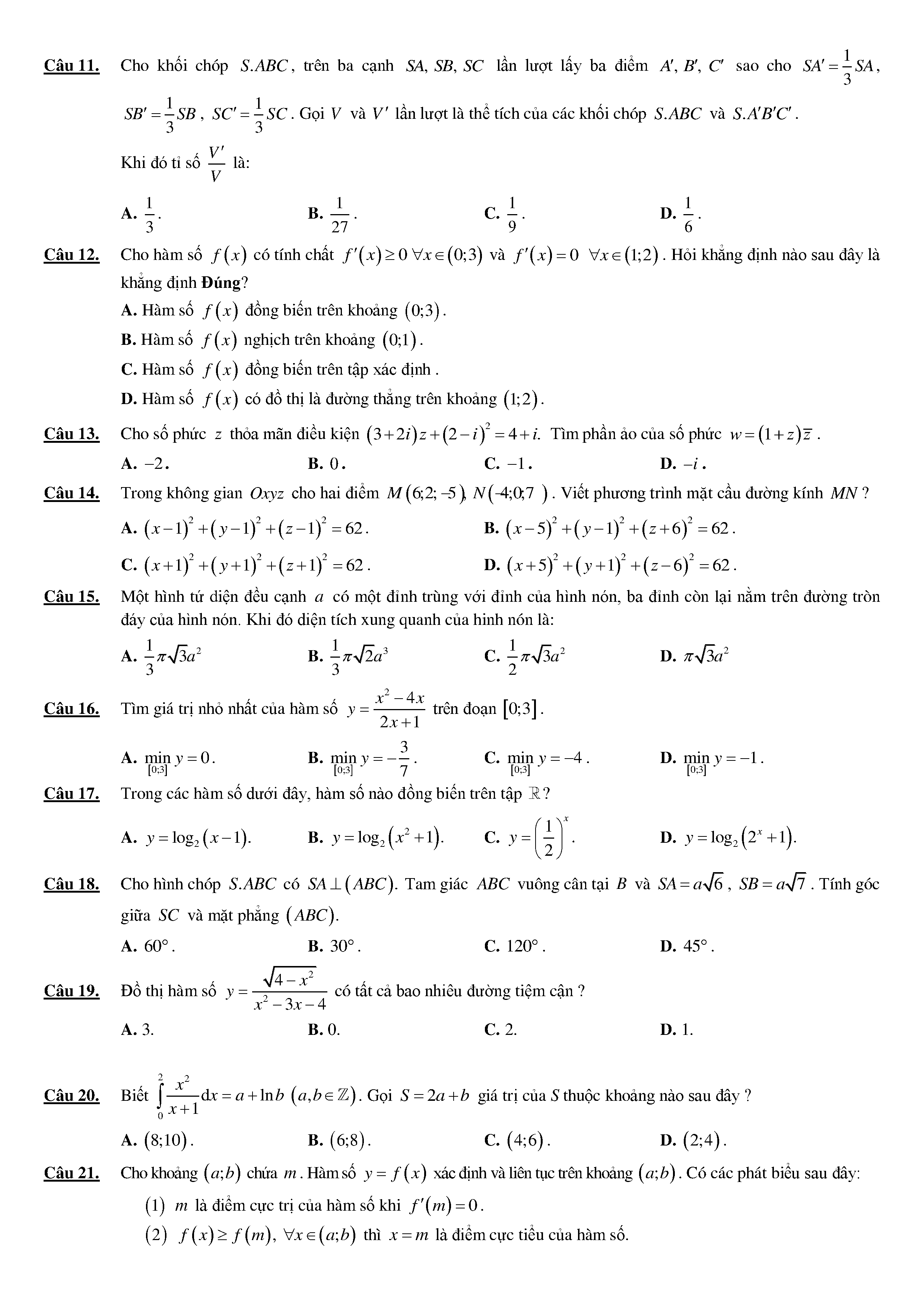 50. Đề thi thử THPTQG 2018 môn Toán