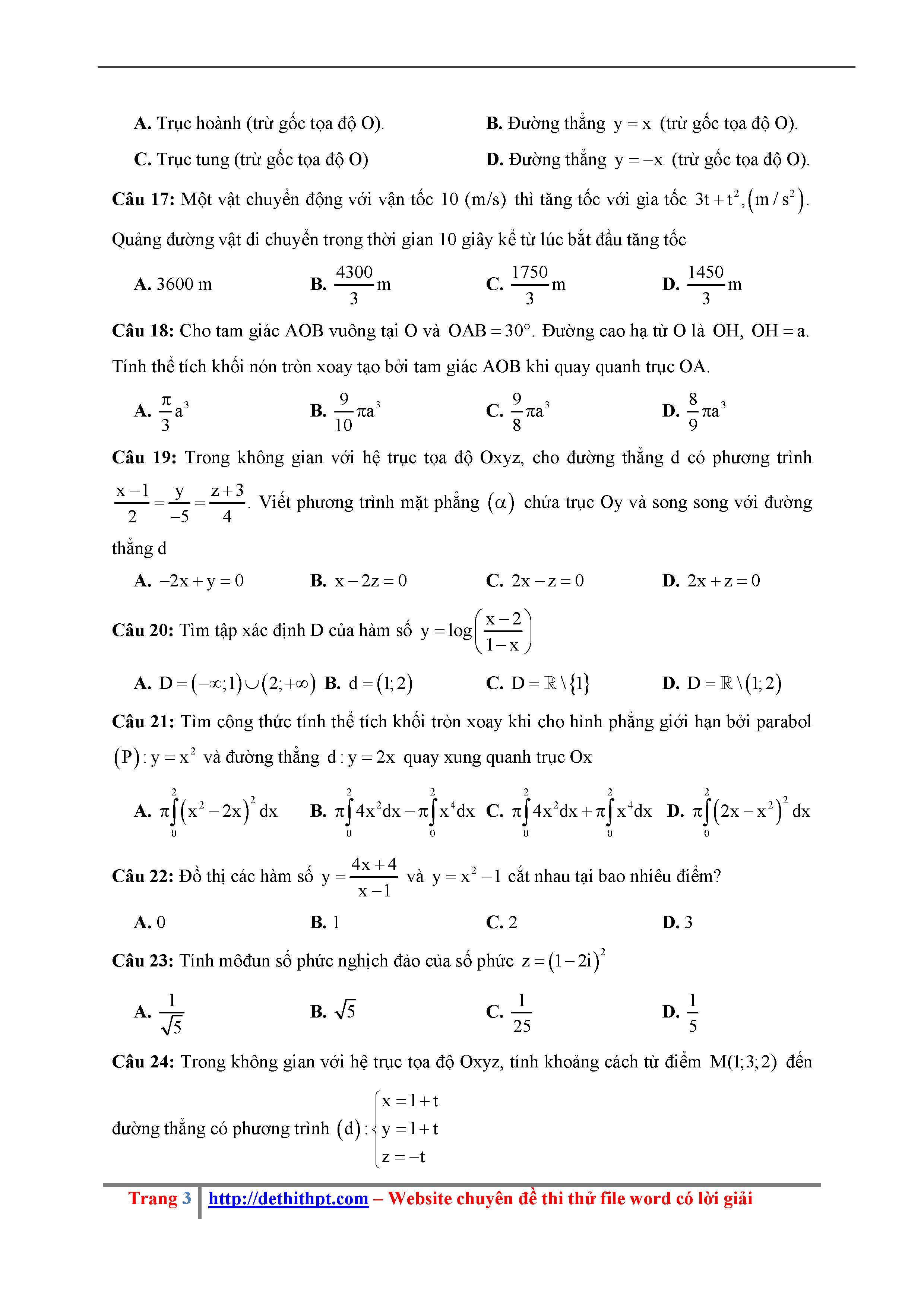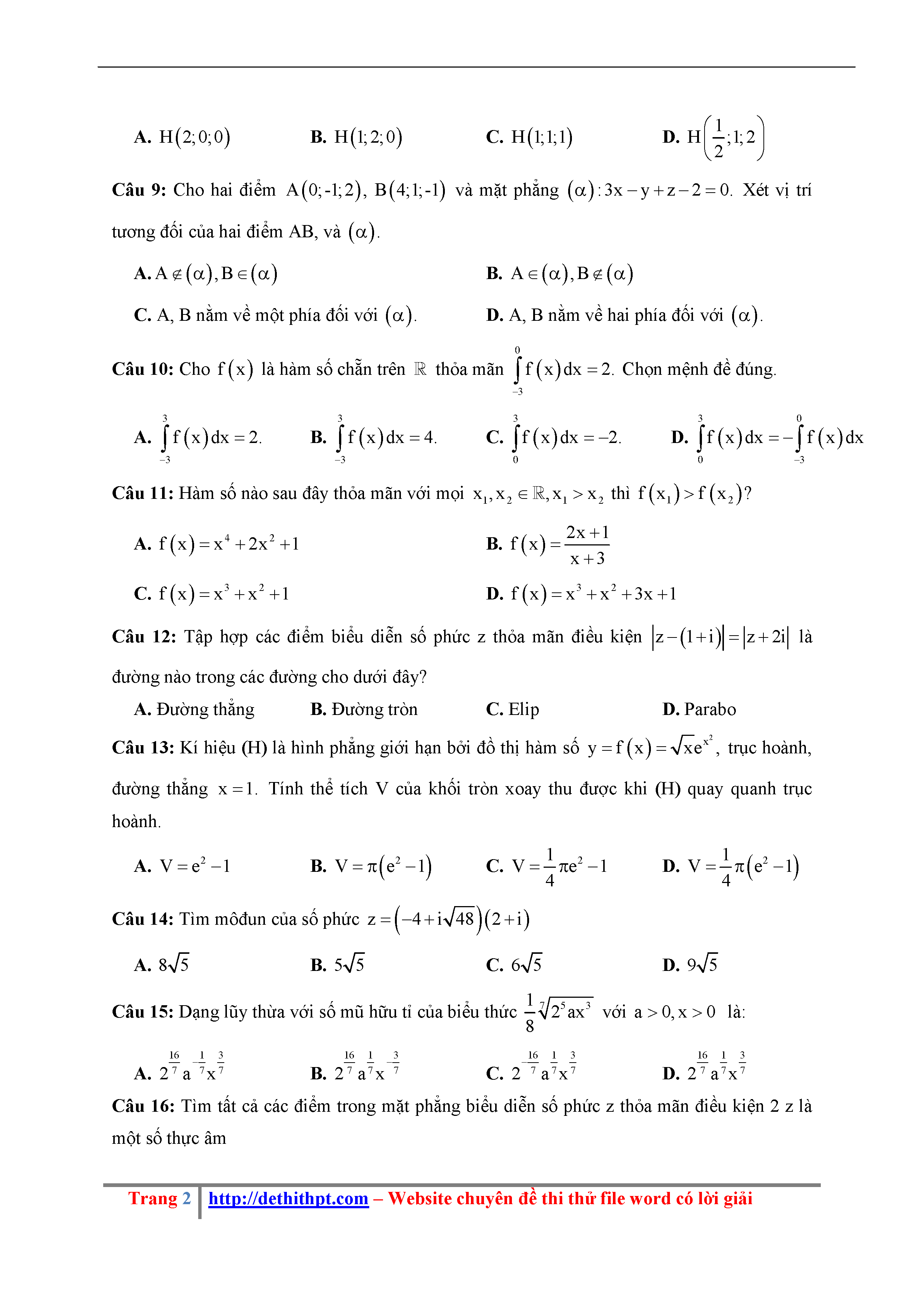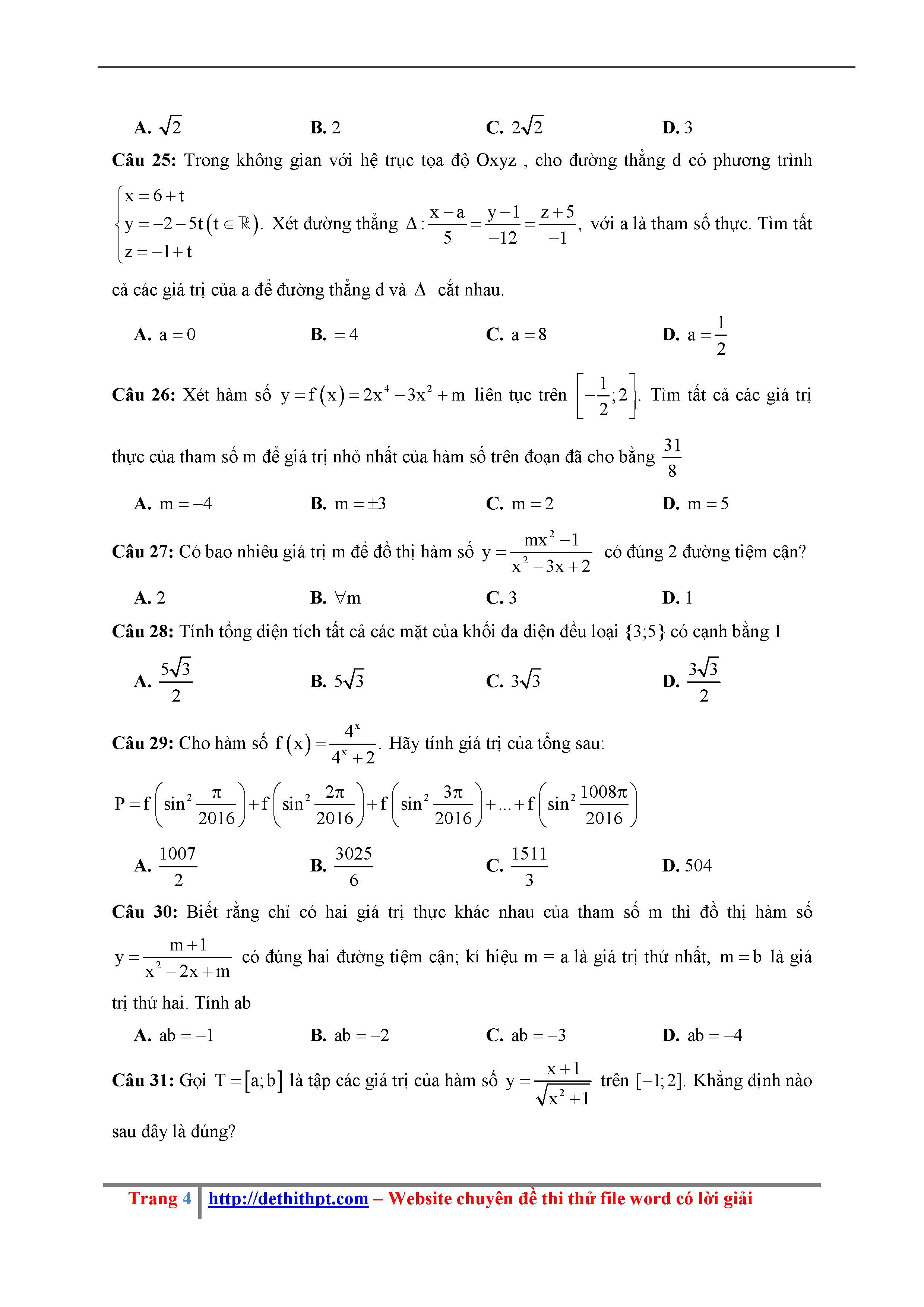 192. Đề thi thử THPTQG Năm 2018 Môn Toán