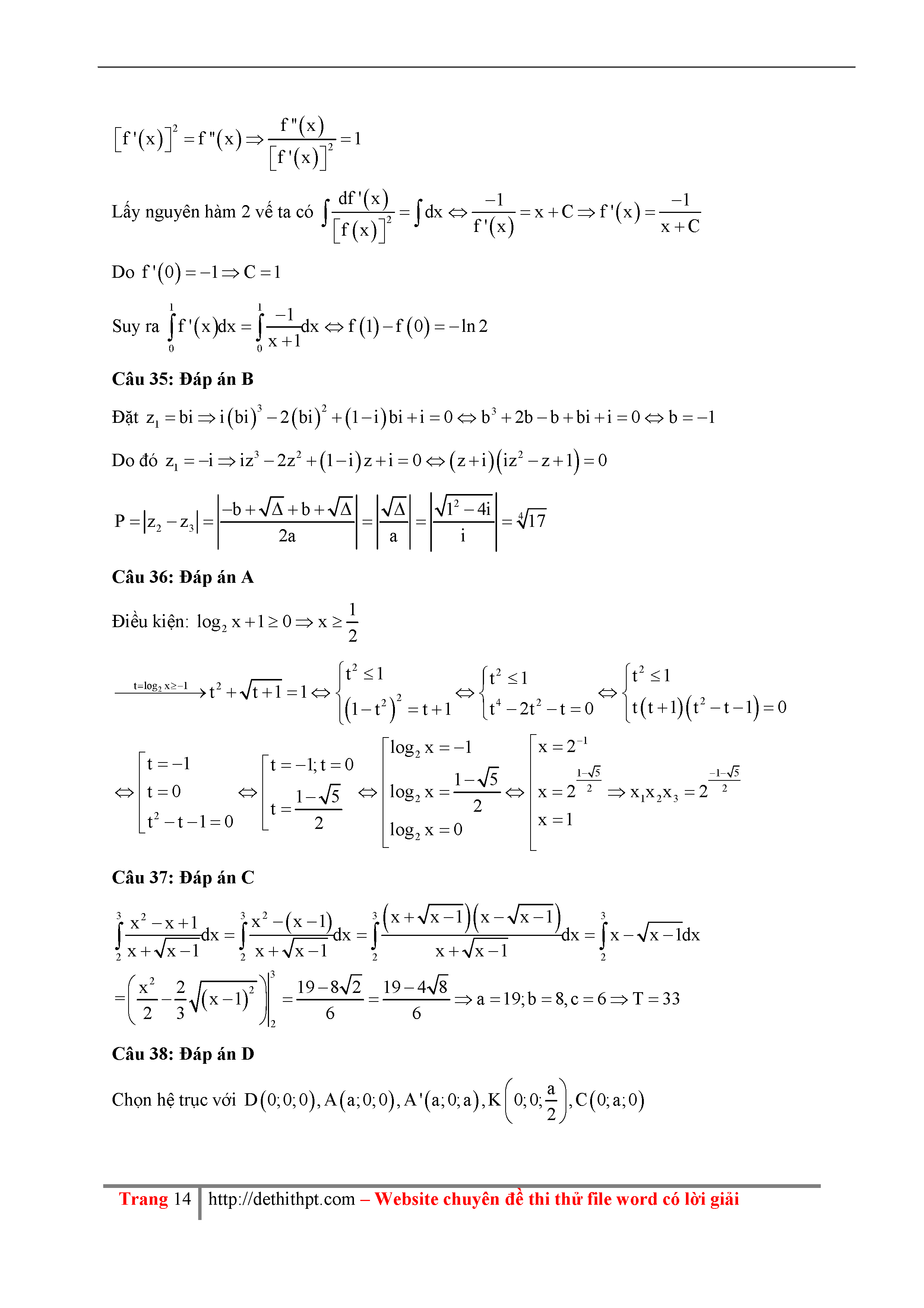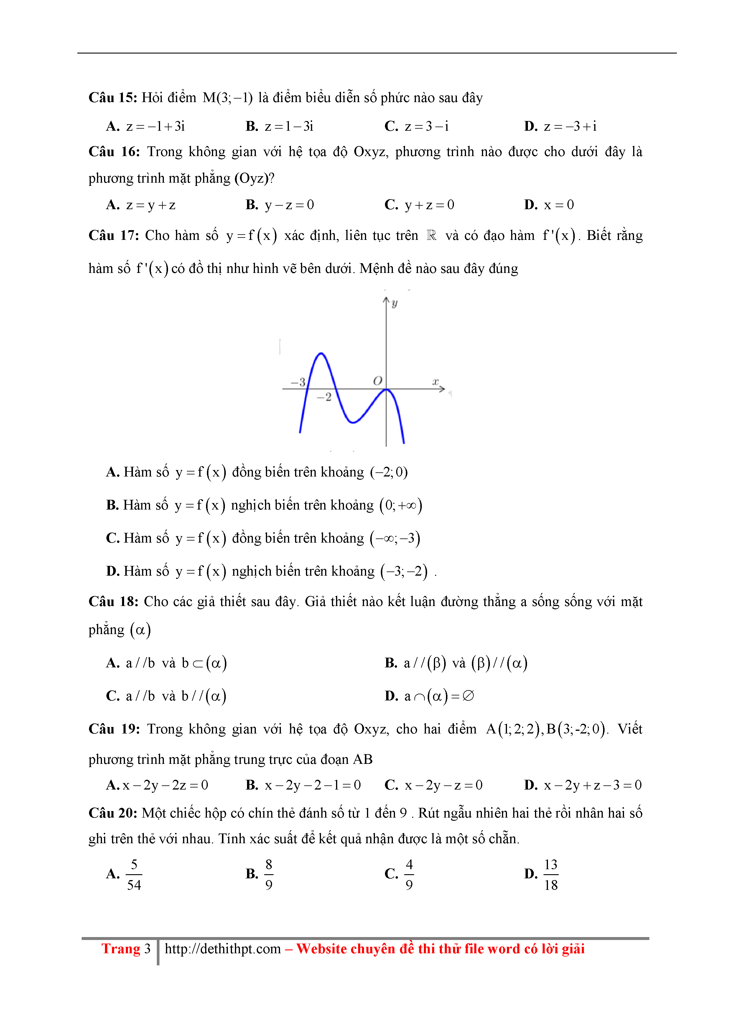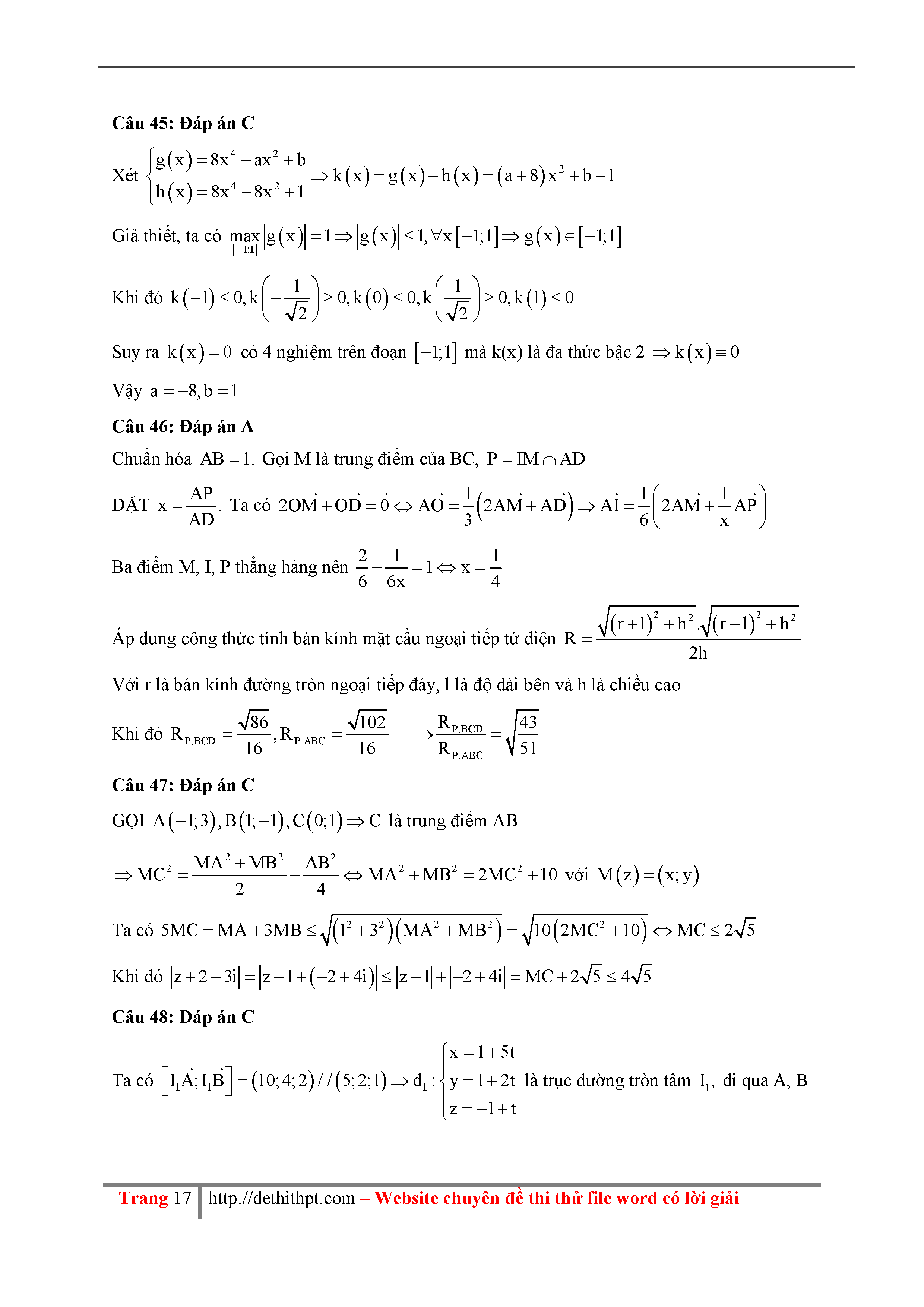 195 Đề thi thử THPTQG Năm 2018 Môn Toán THPT Đặng Thúc Hứa Lần 1