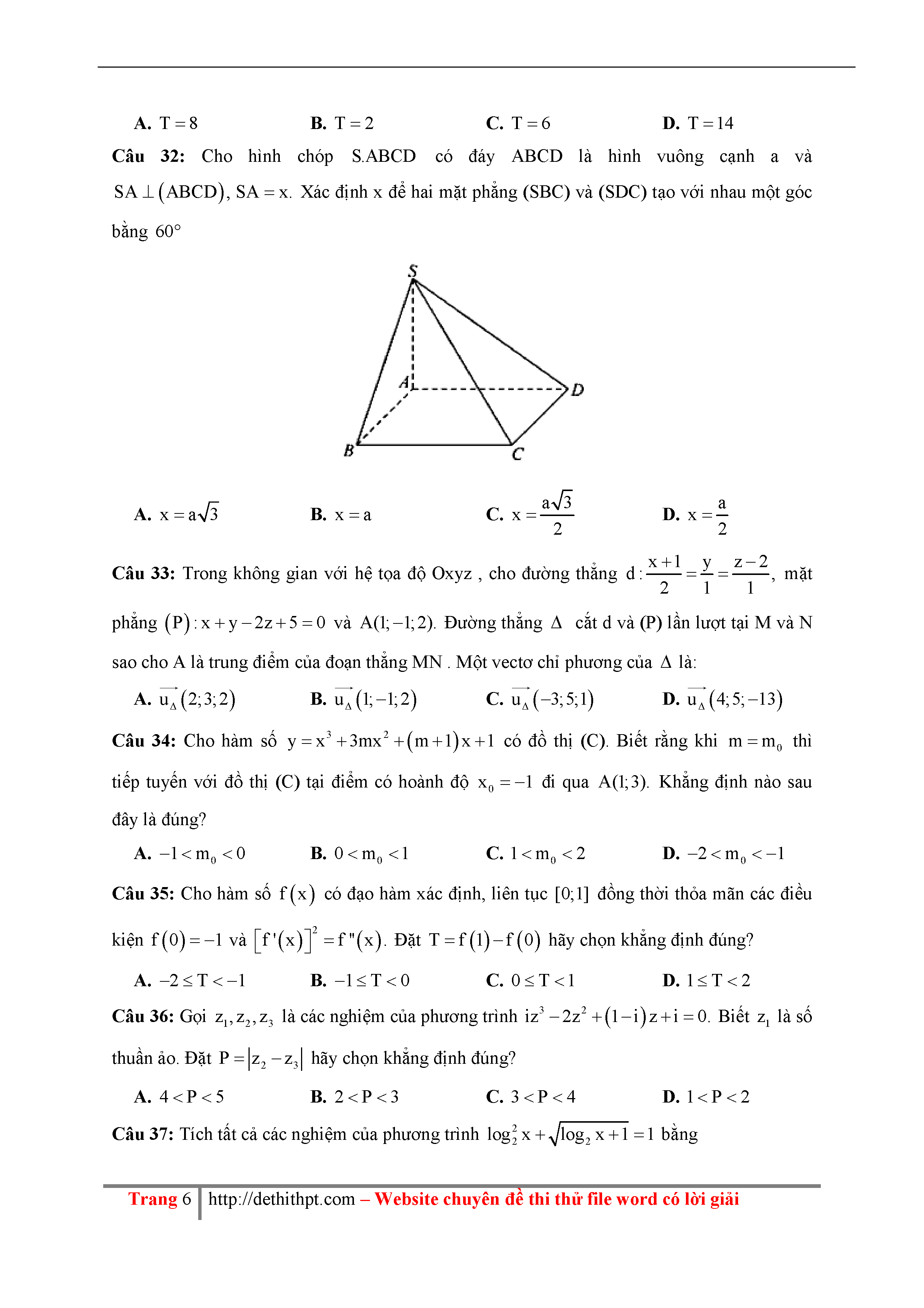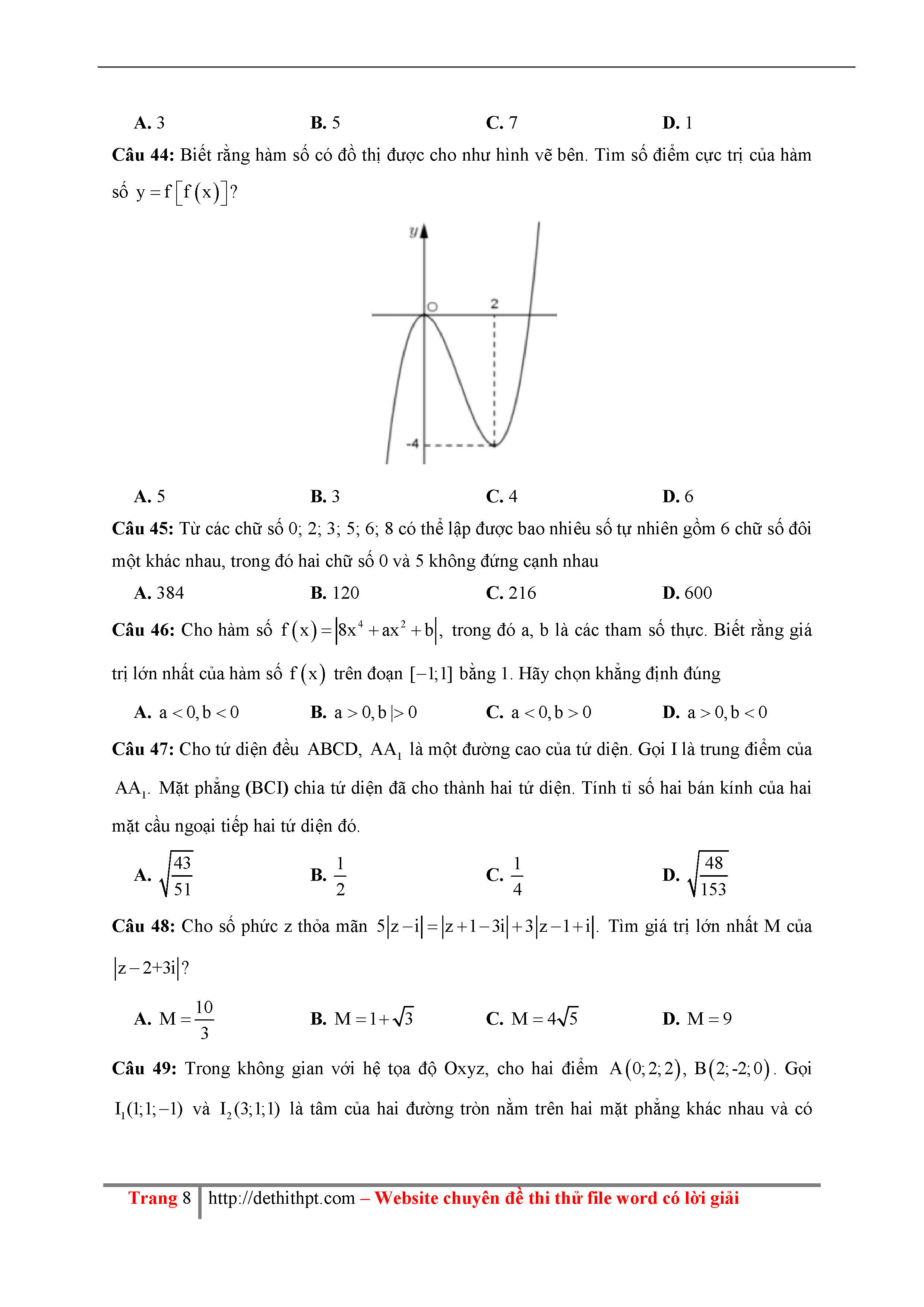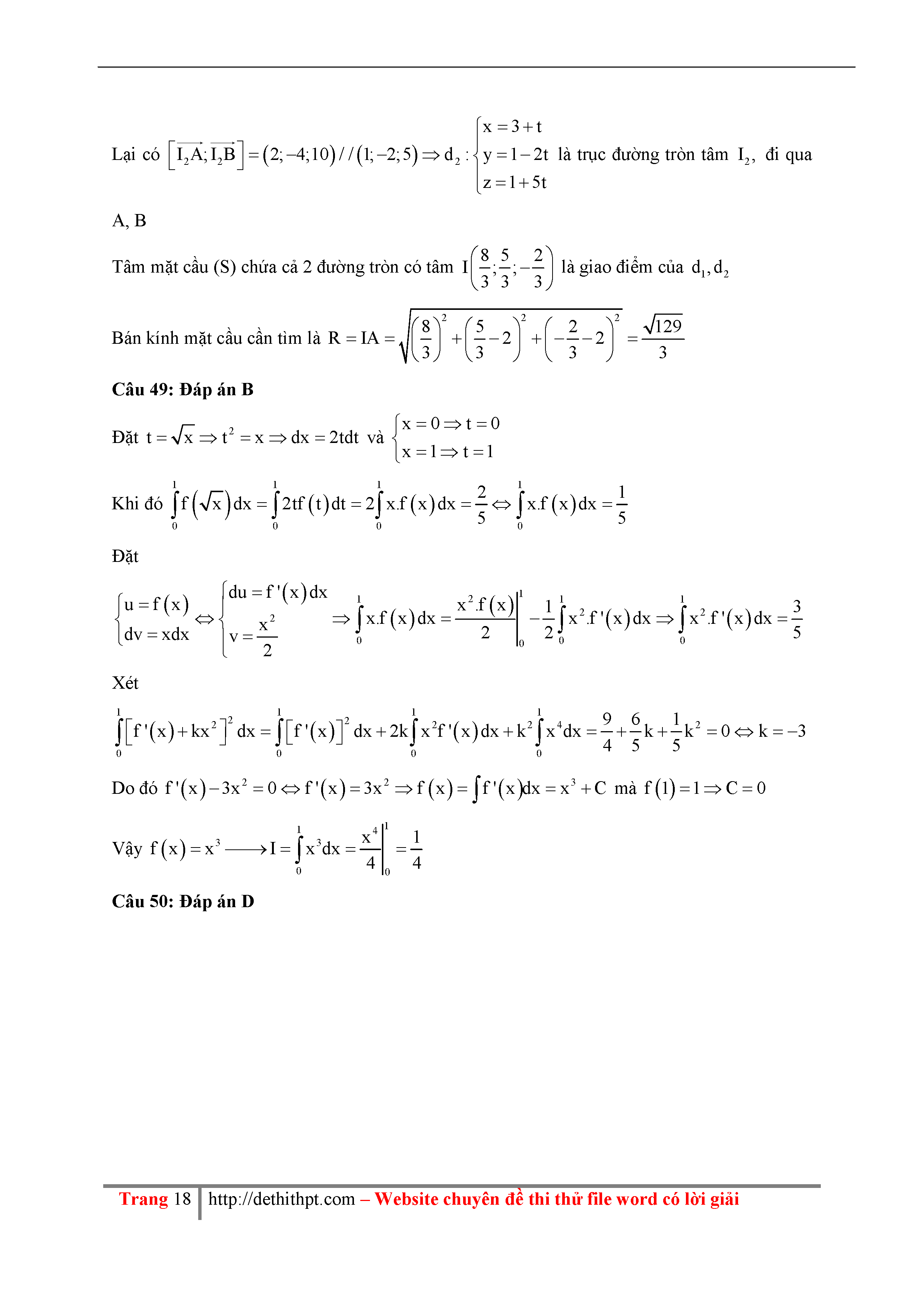 195 Đề thi thử THPTQG Năm 2018 Môn Toán THPT Đặng Thúc Hứa Lần 1