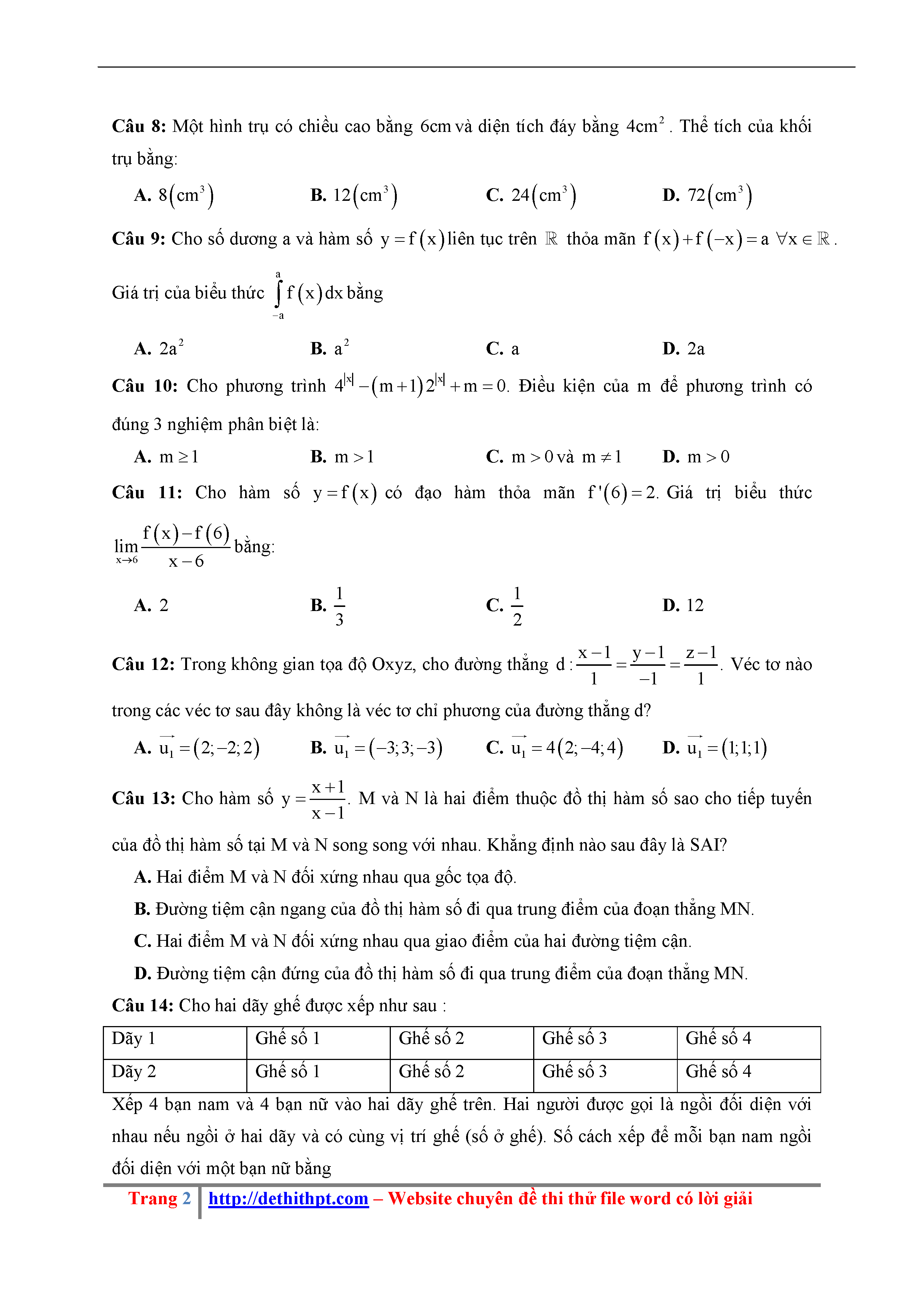 199. Đề thi thử THPTQG Năm 2018 - Môn Toán Chuyên Sư Phạm Hà Nội Lần 2