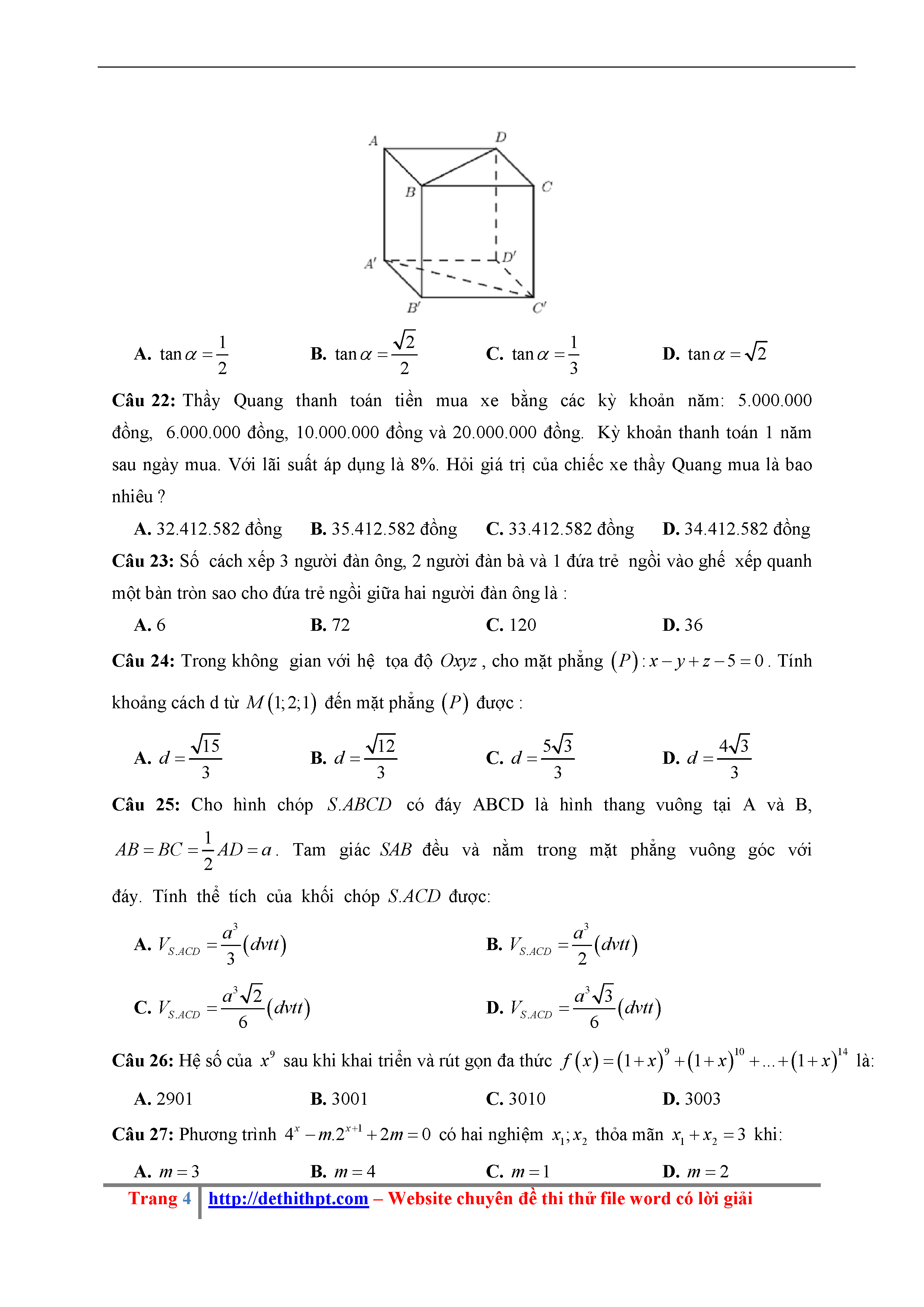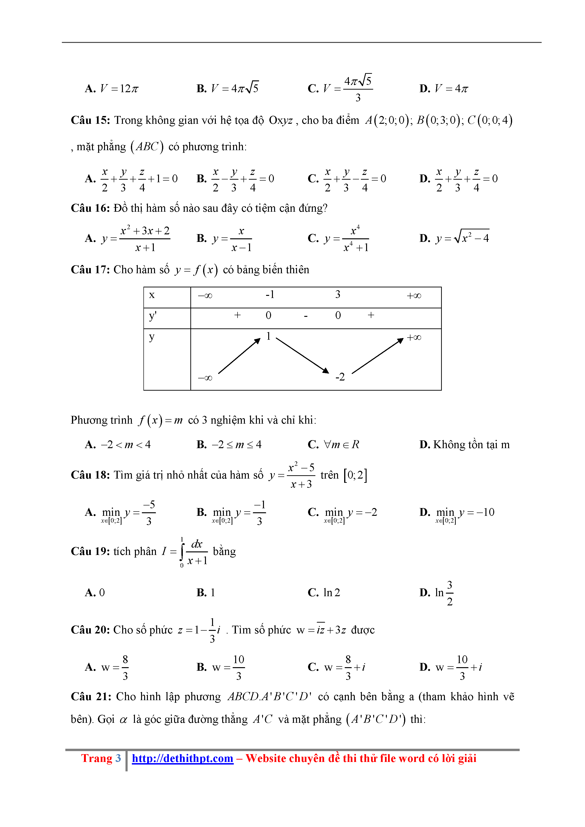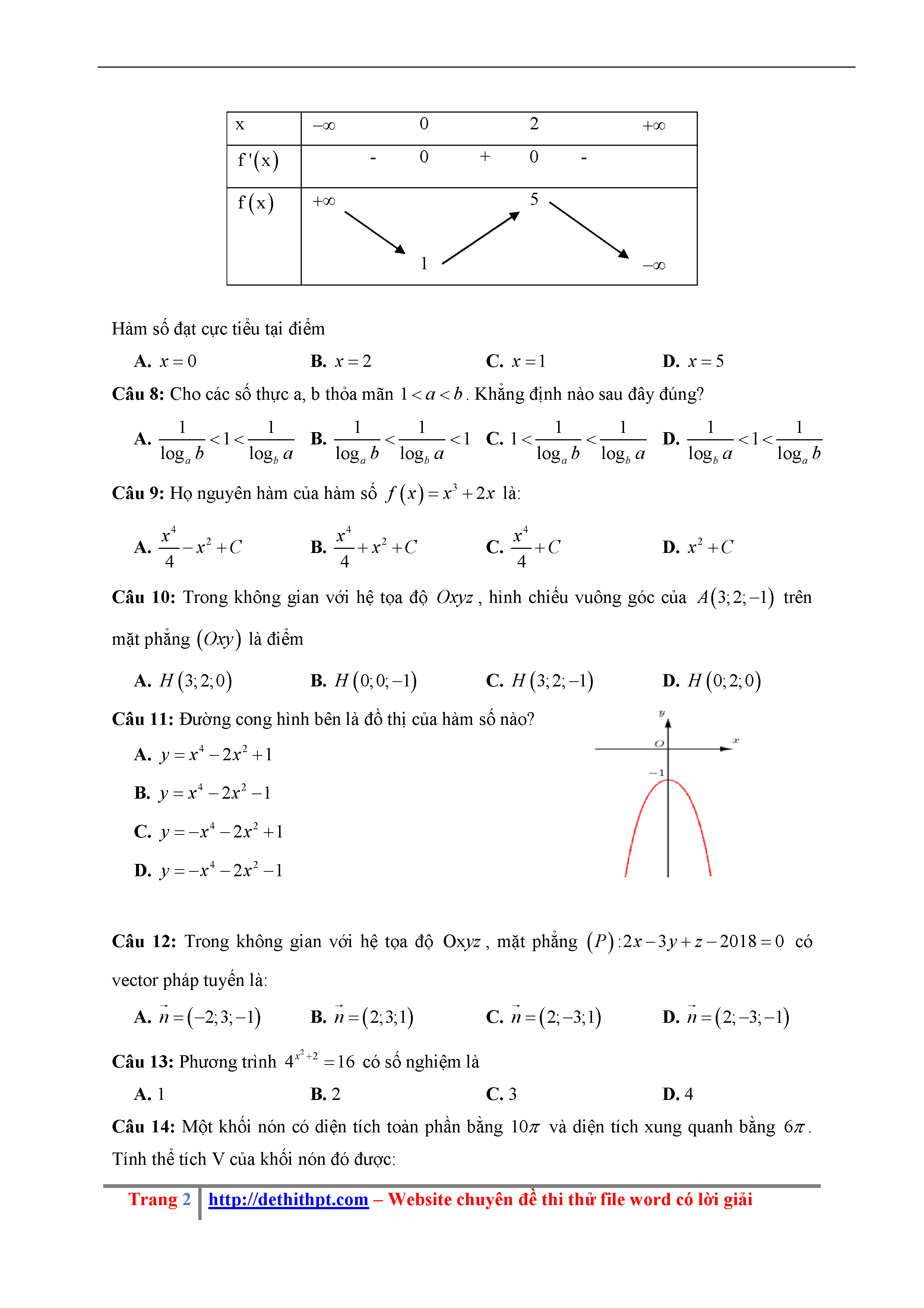 200. Đề thi thử THPTQG Năm 2018 Môn Toán Viện Kinh tế và Thương mai Quốc tế ĐH Ngoại Thương Lần 1