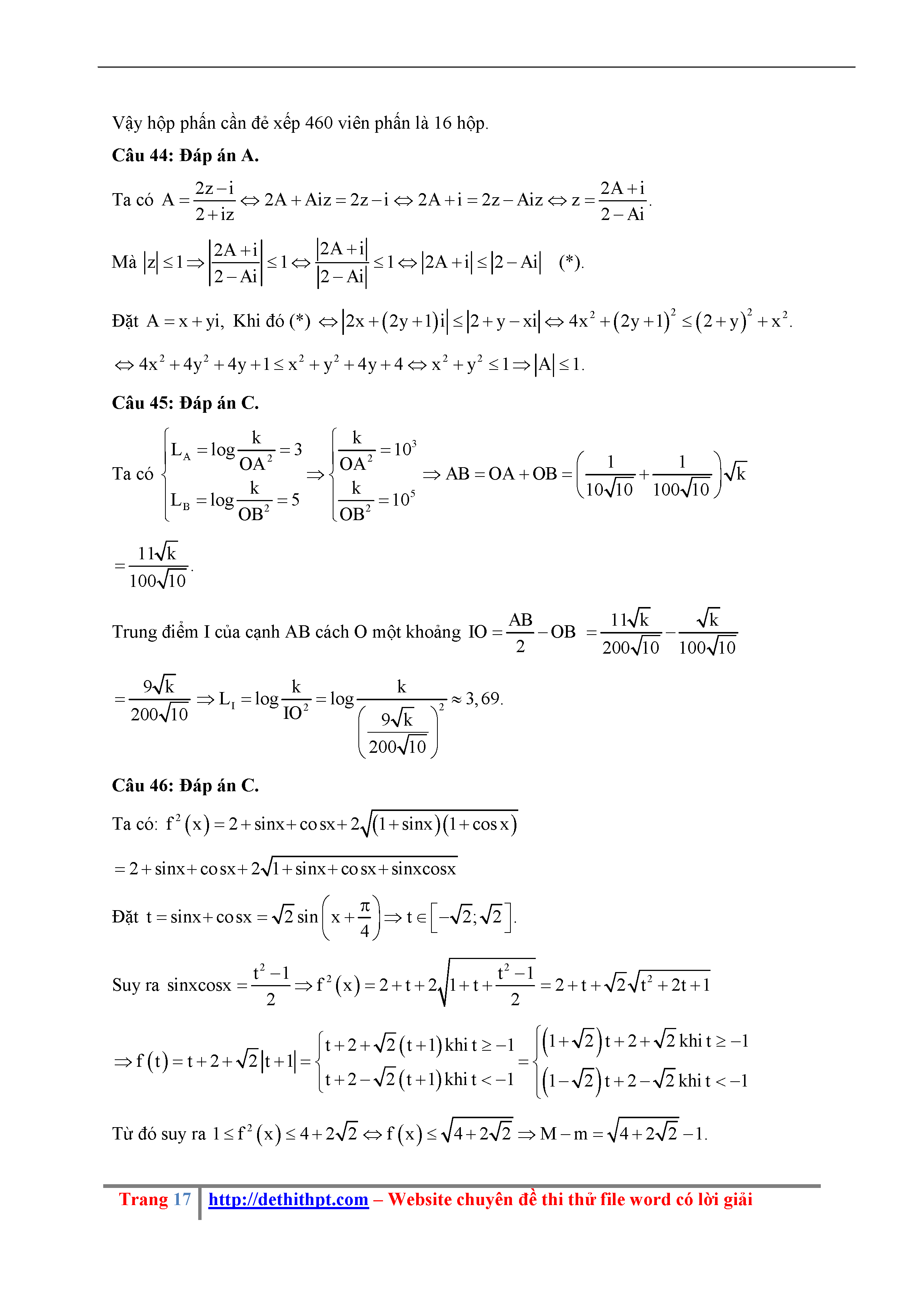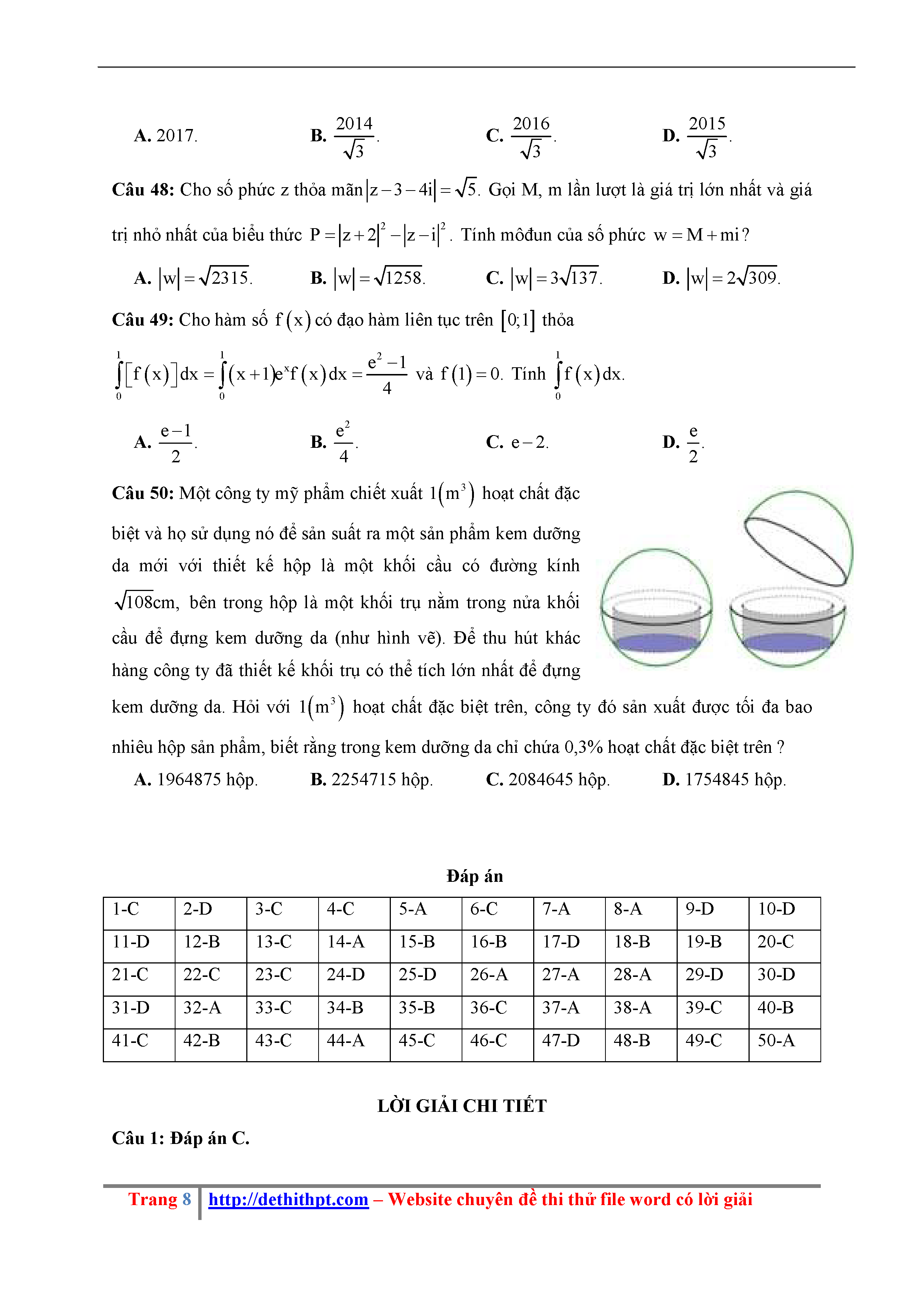 202. Đề thi thử THPTQG Năm 2018 Môn Toán