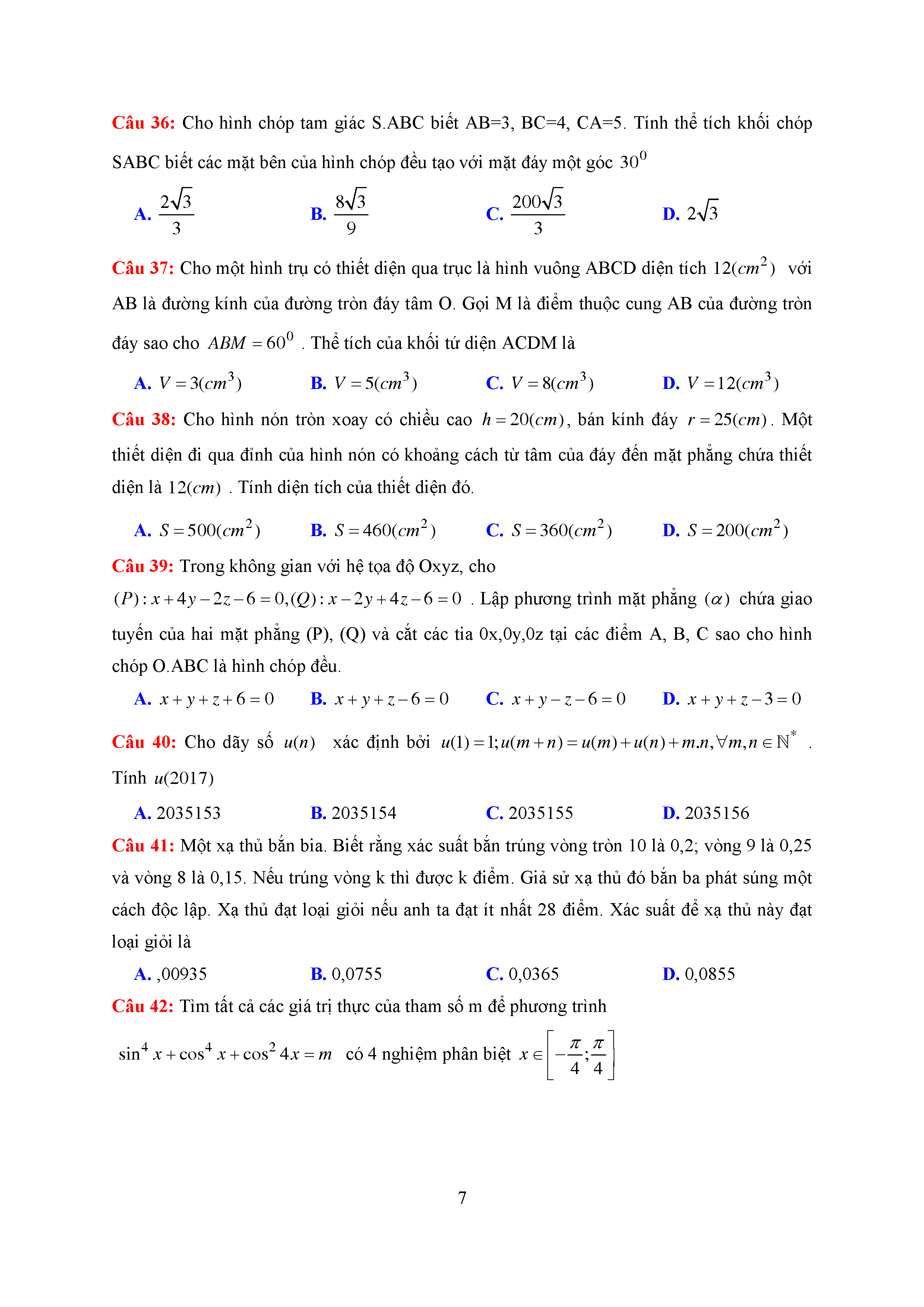 205. Đề thi thử THPTQG Năm 2018 Môn Toán