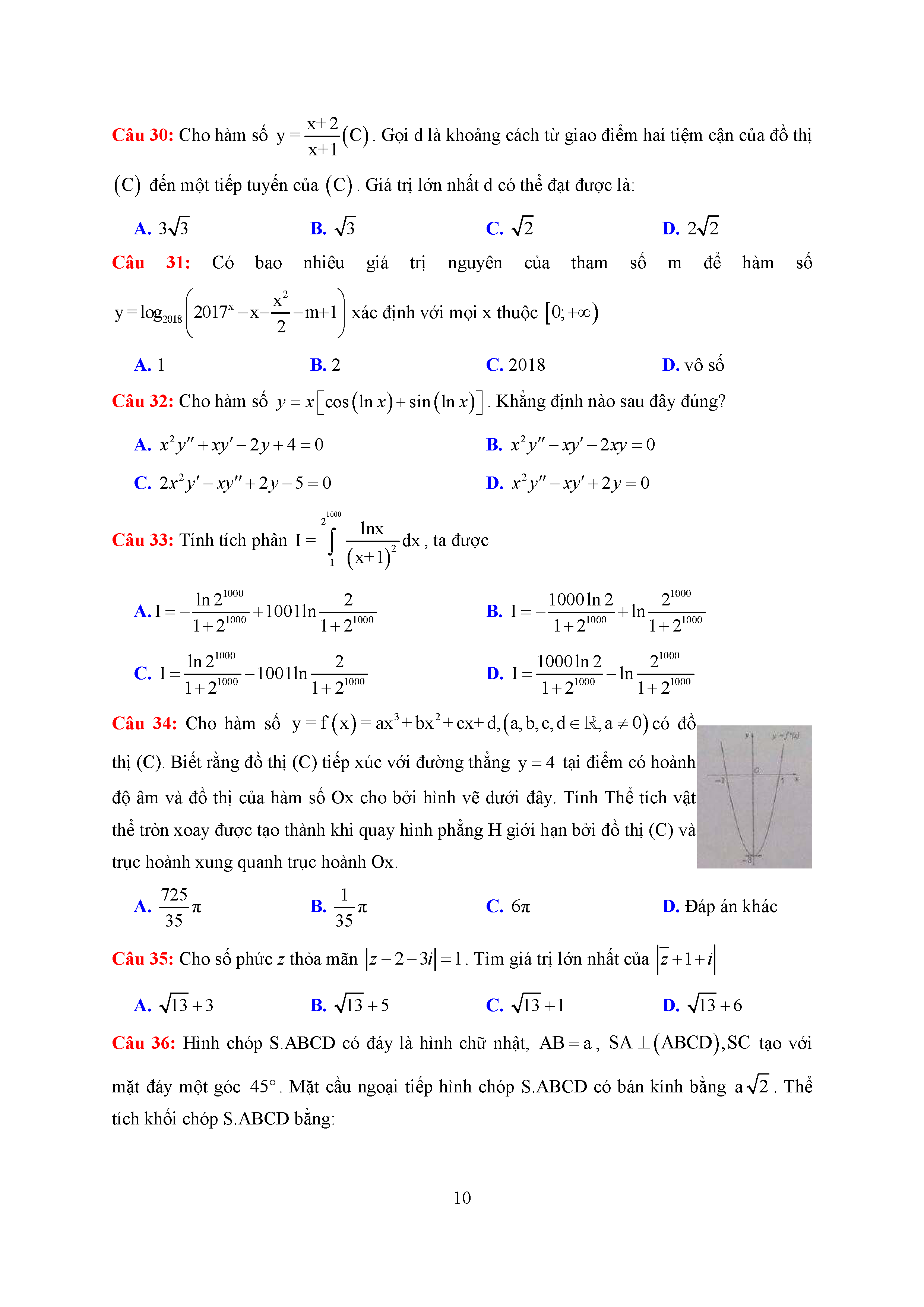 207. Đề thi thử THPTQG Năm 2018 Môn Toán