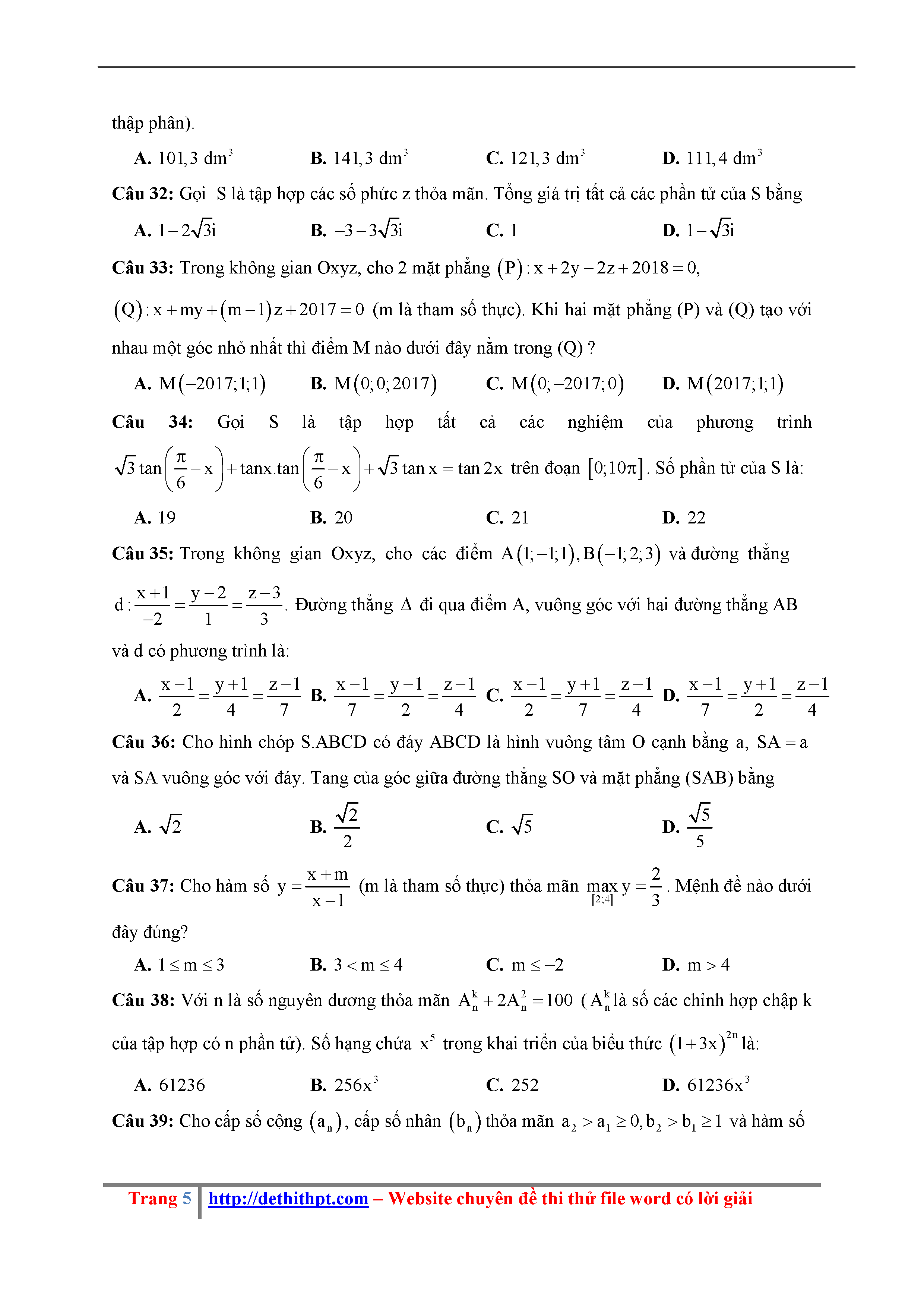225. Đề thi thử THPTQG Năm 2018 Môn Toán Chuyên Sơn La Lần 1