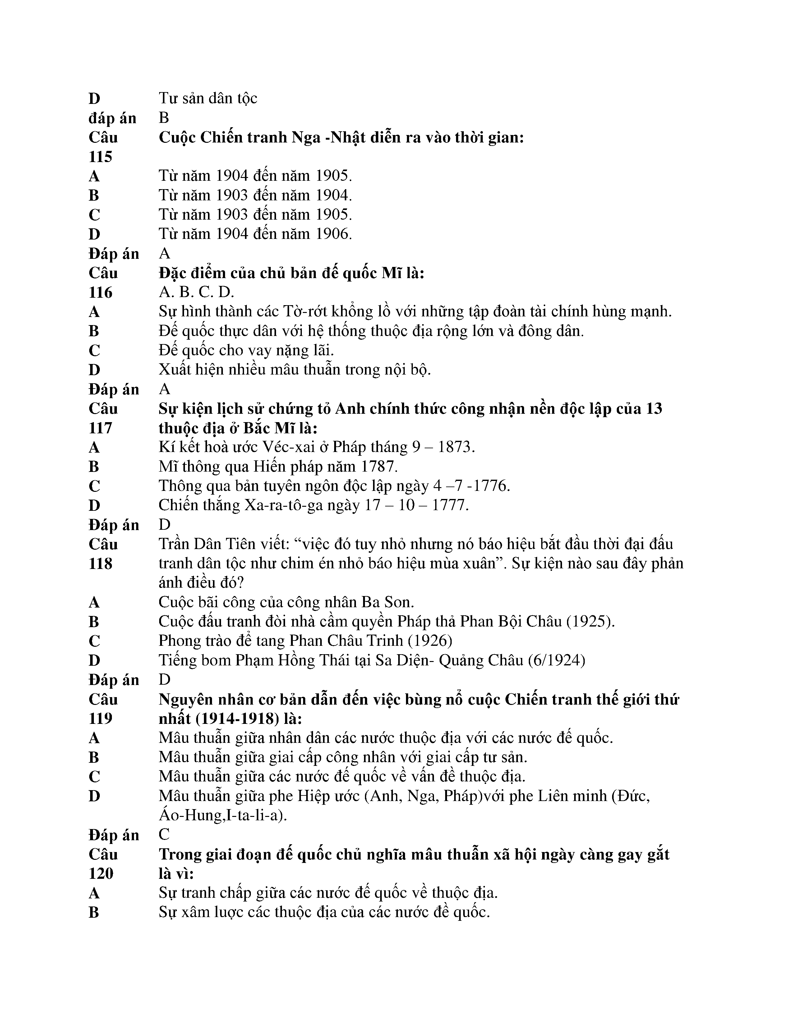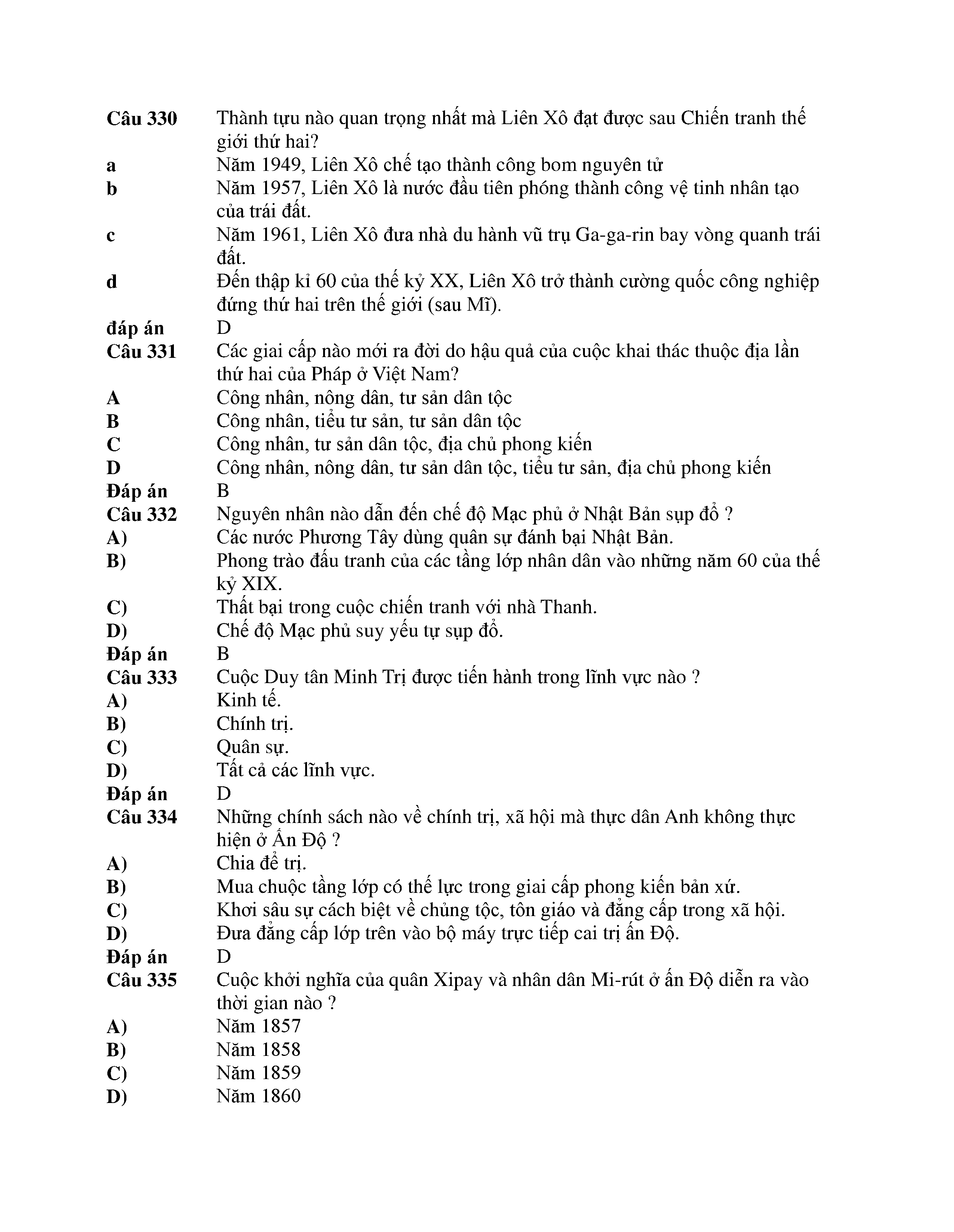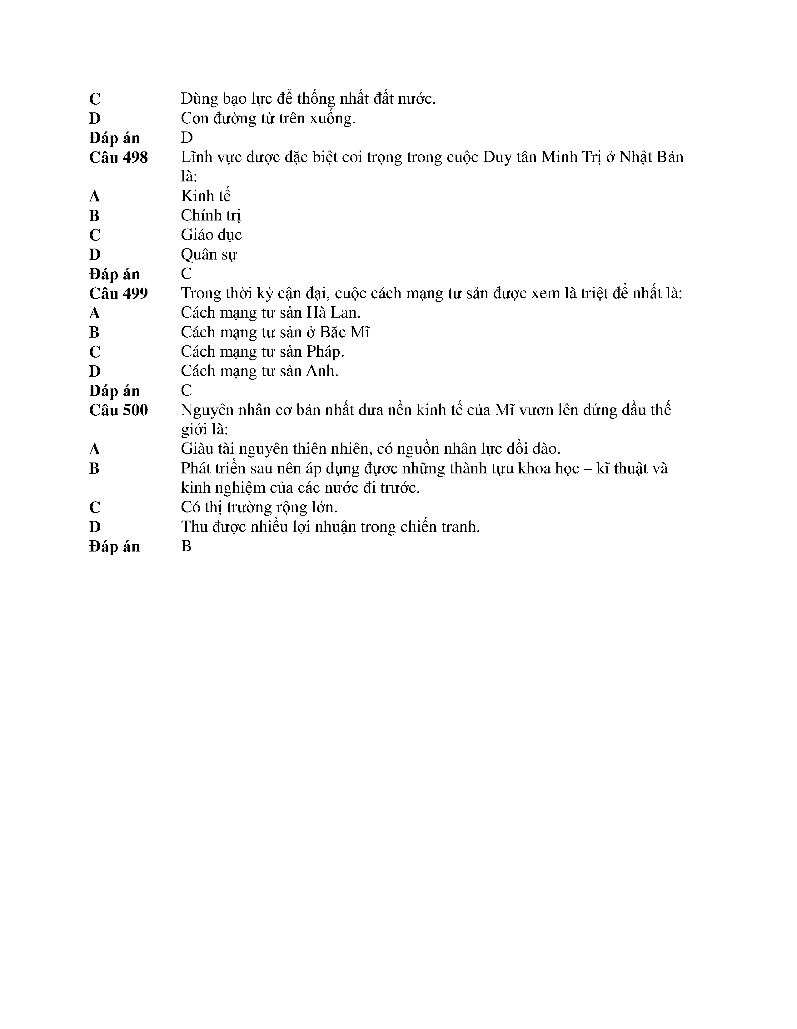 500 câu hỏi trắc nghiệm - Lịch sử - Lớp 11