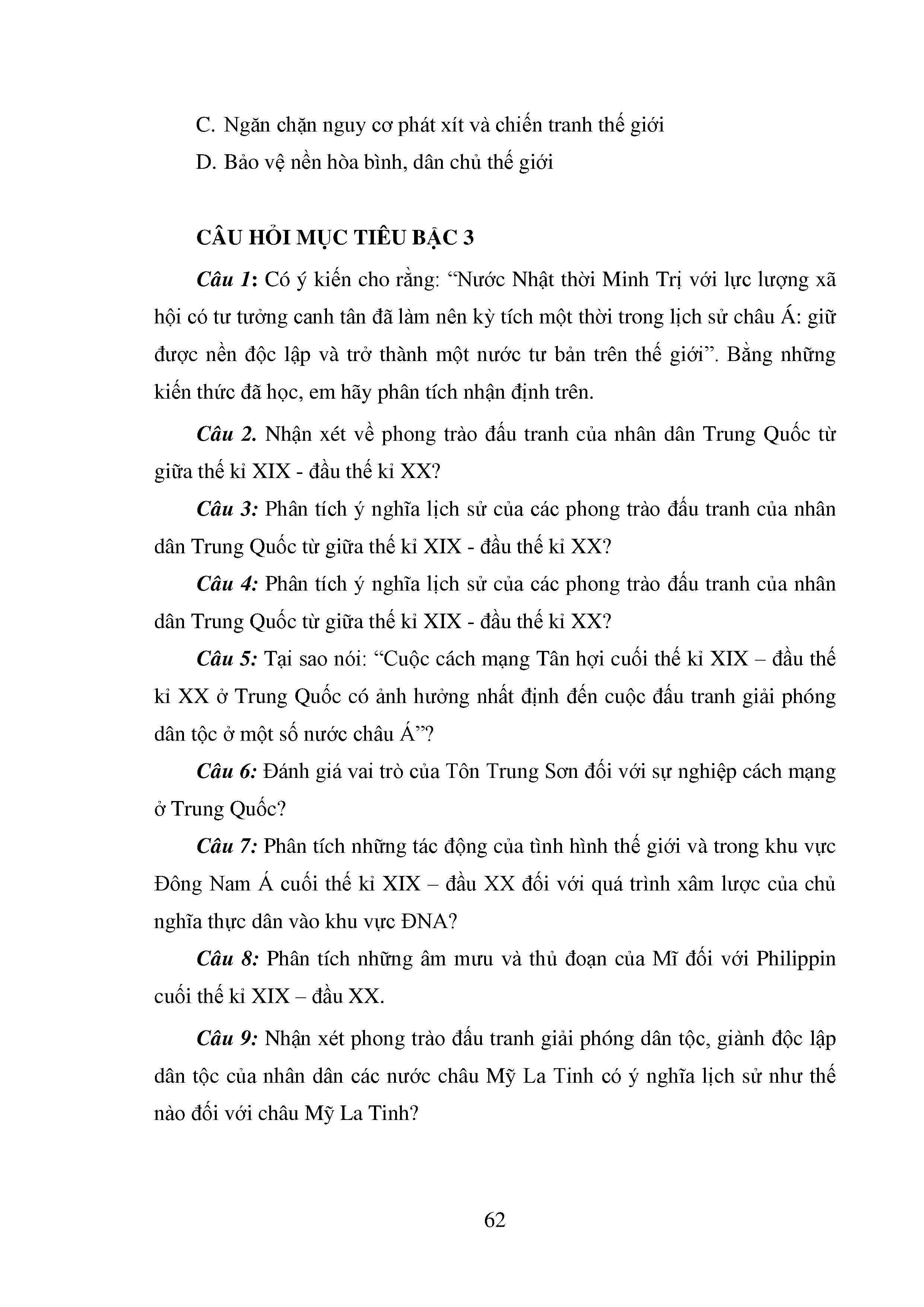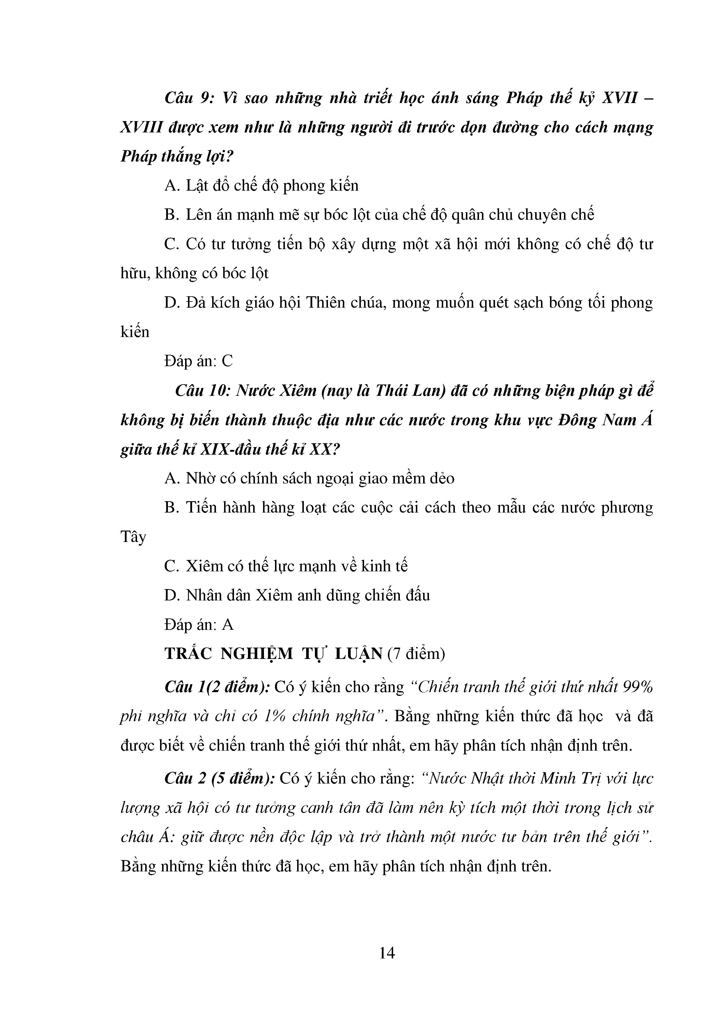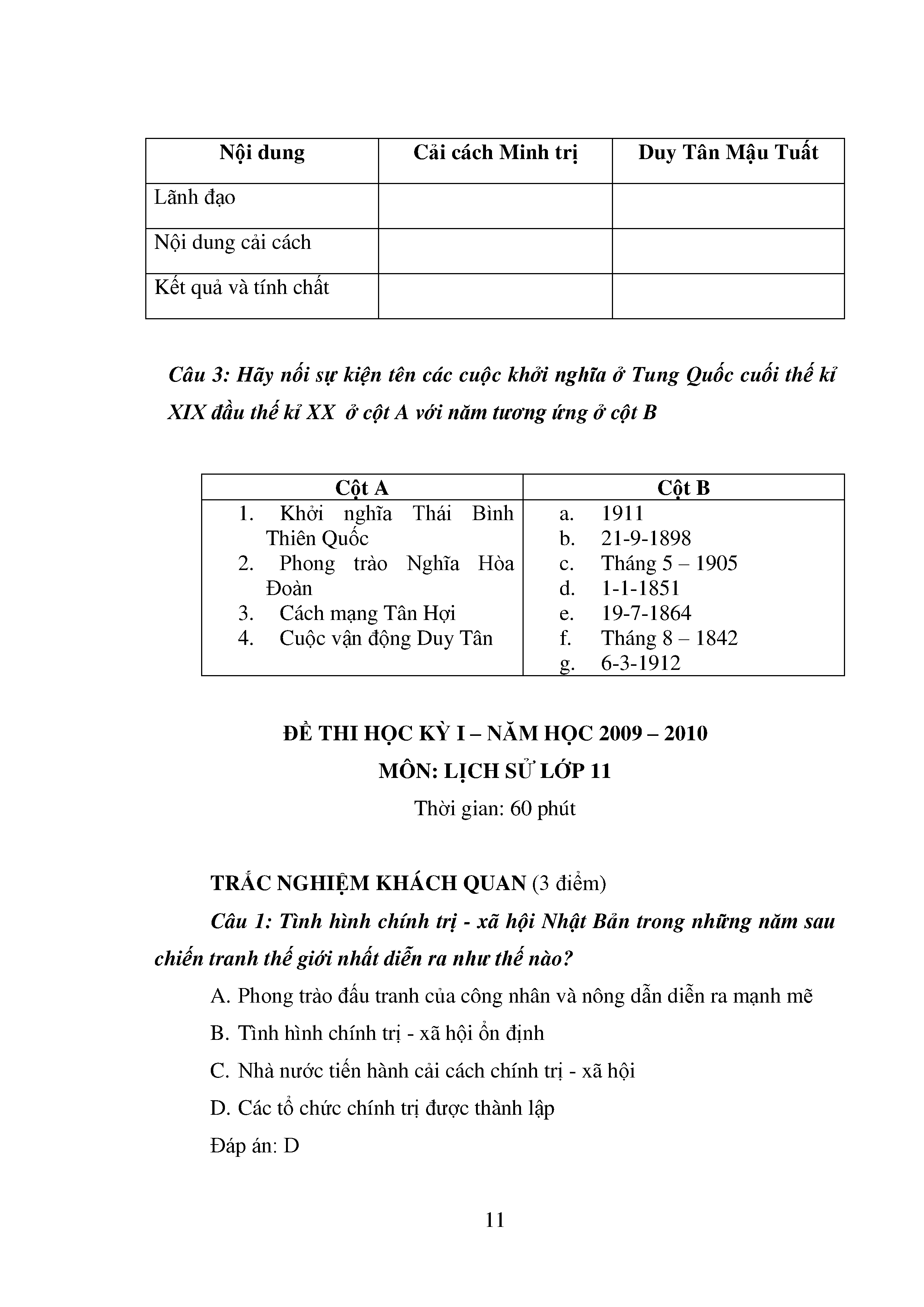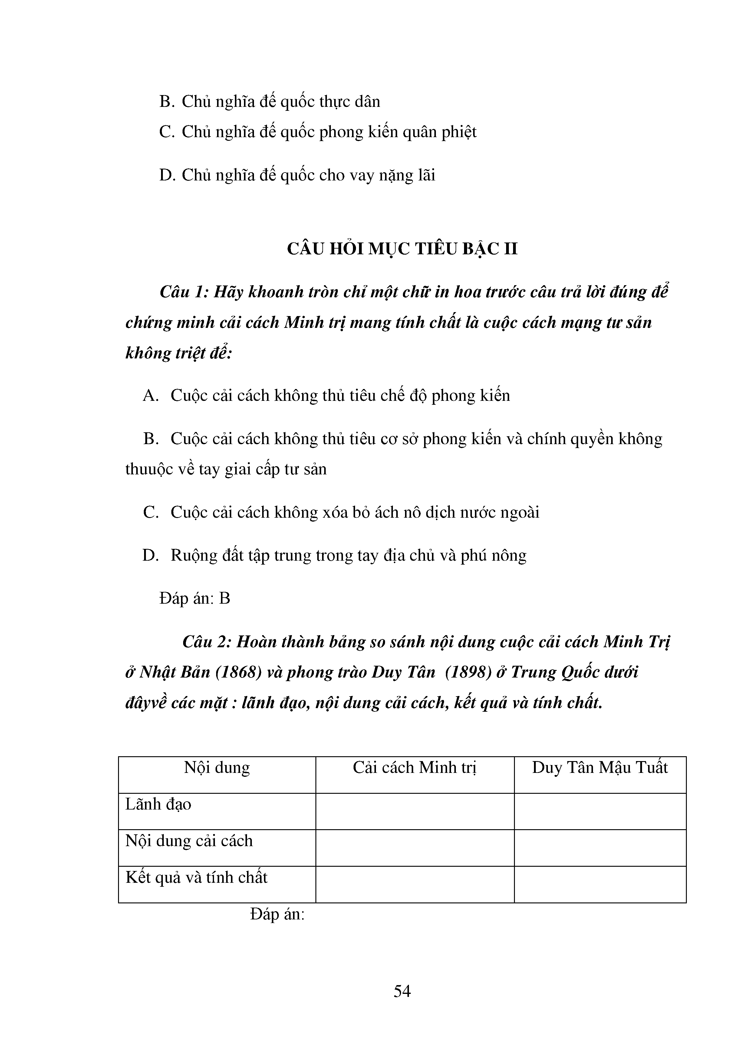Bộ câu hỏi trắc nghiệm 3 cấp độ - Lịch sử - Lớp 11