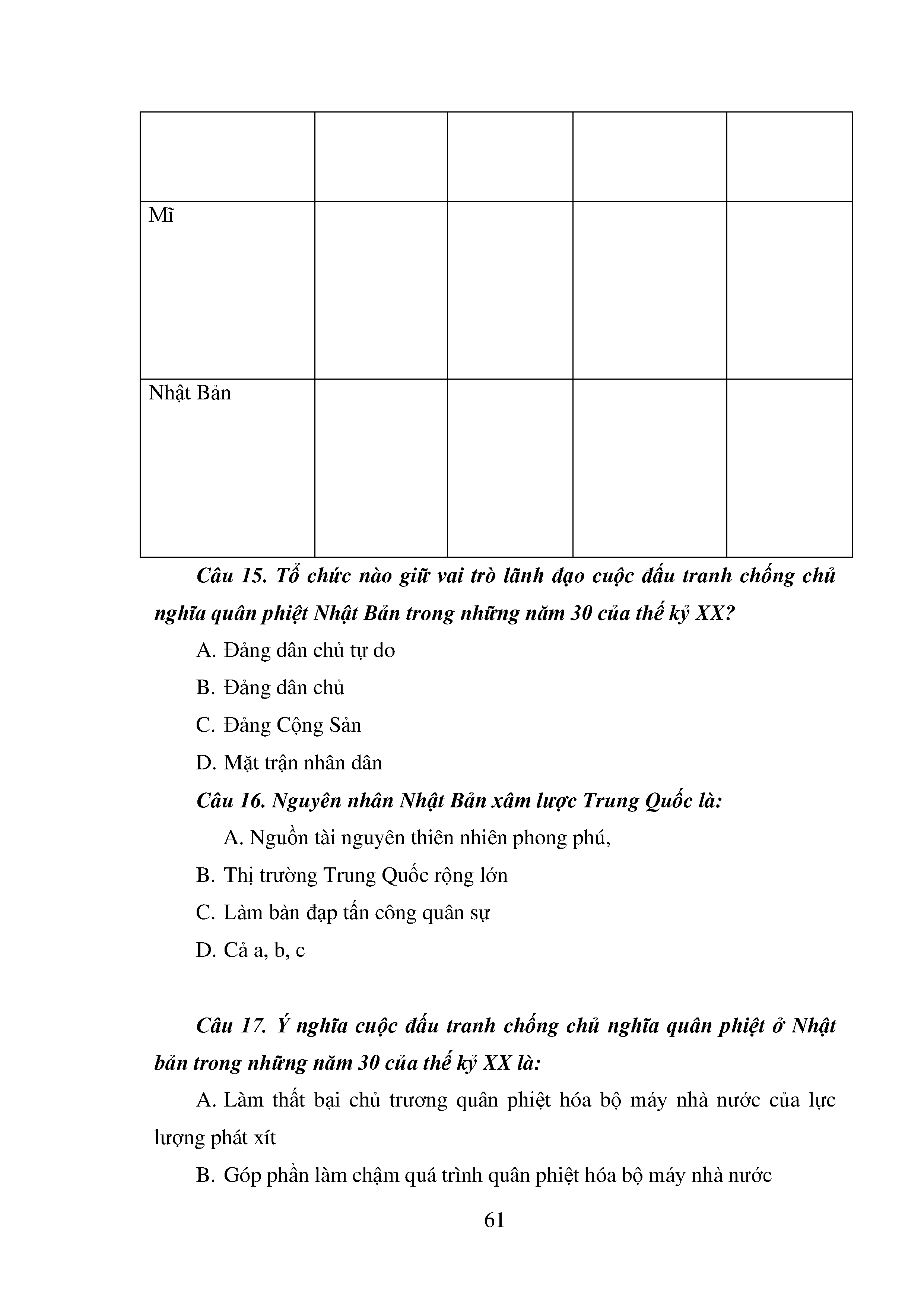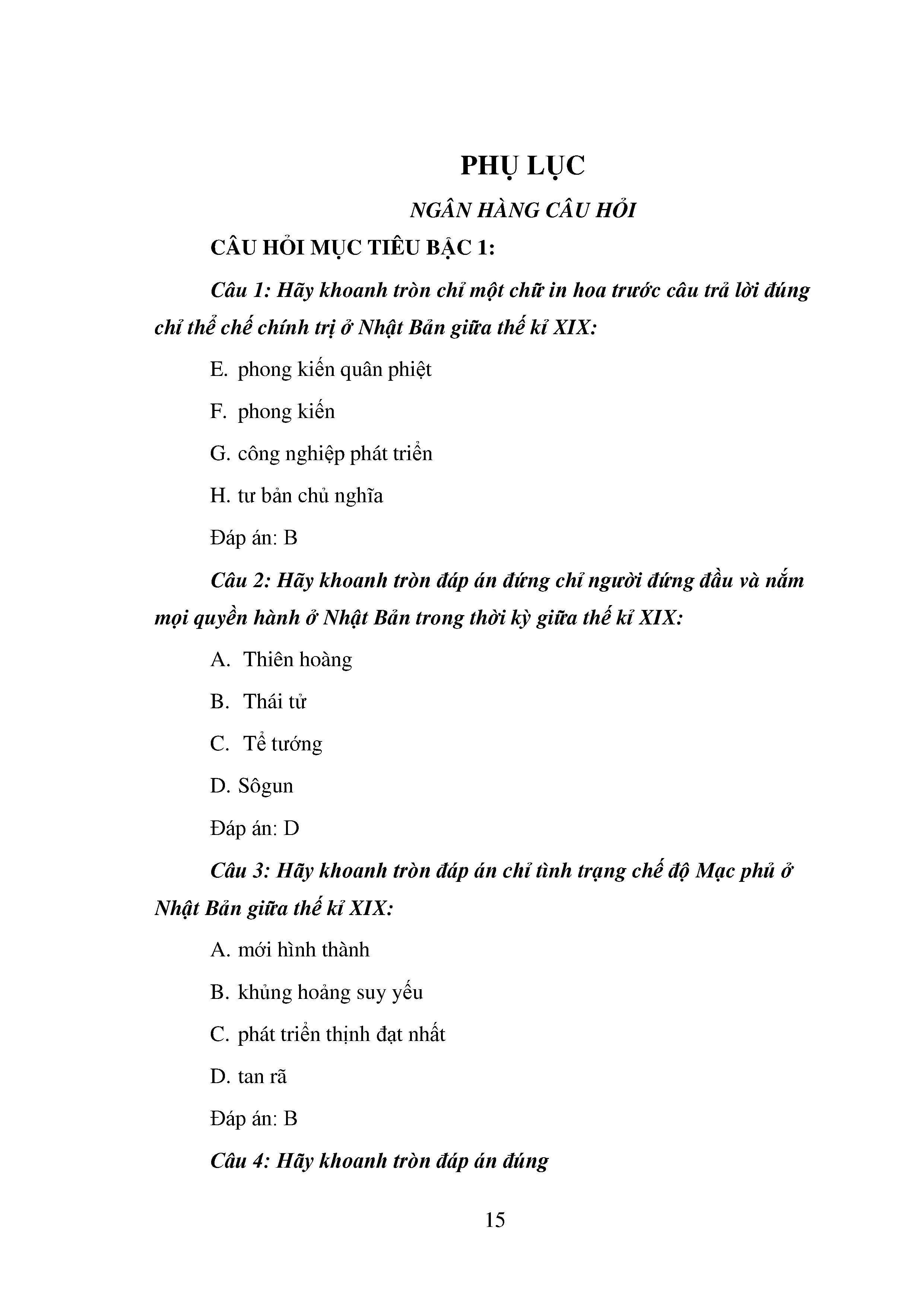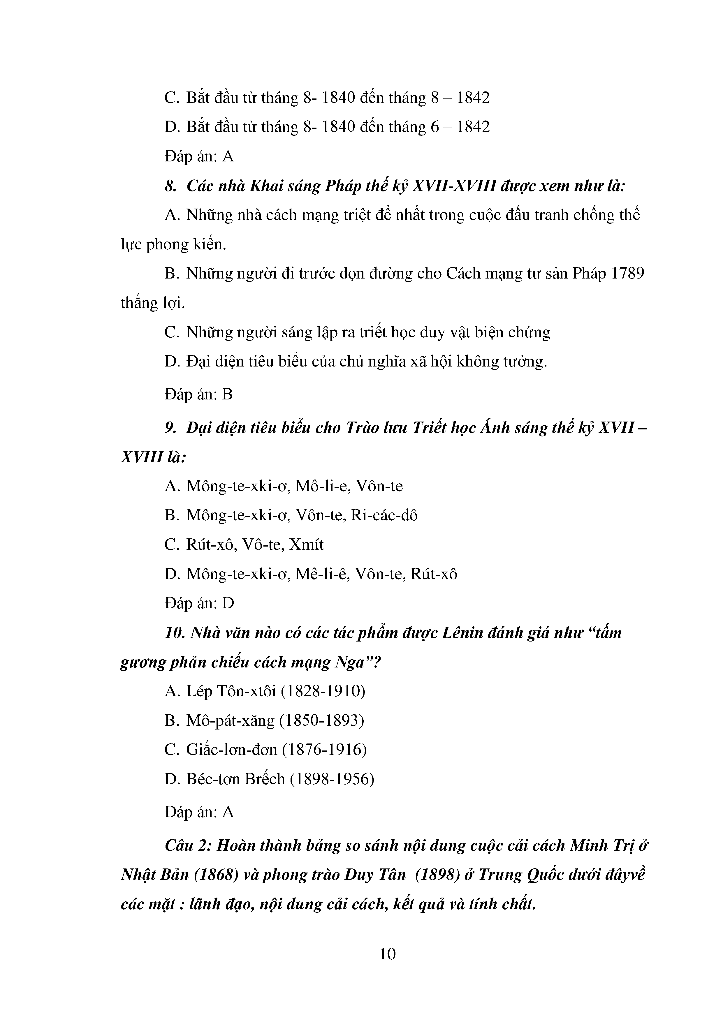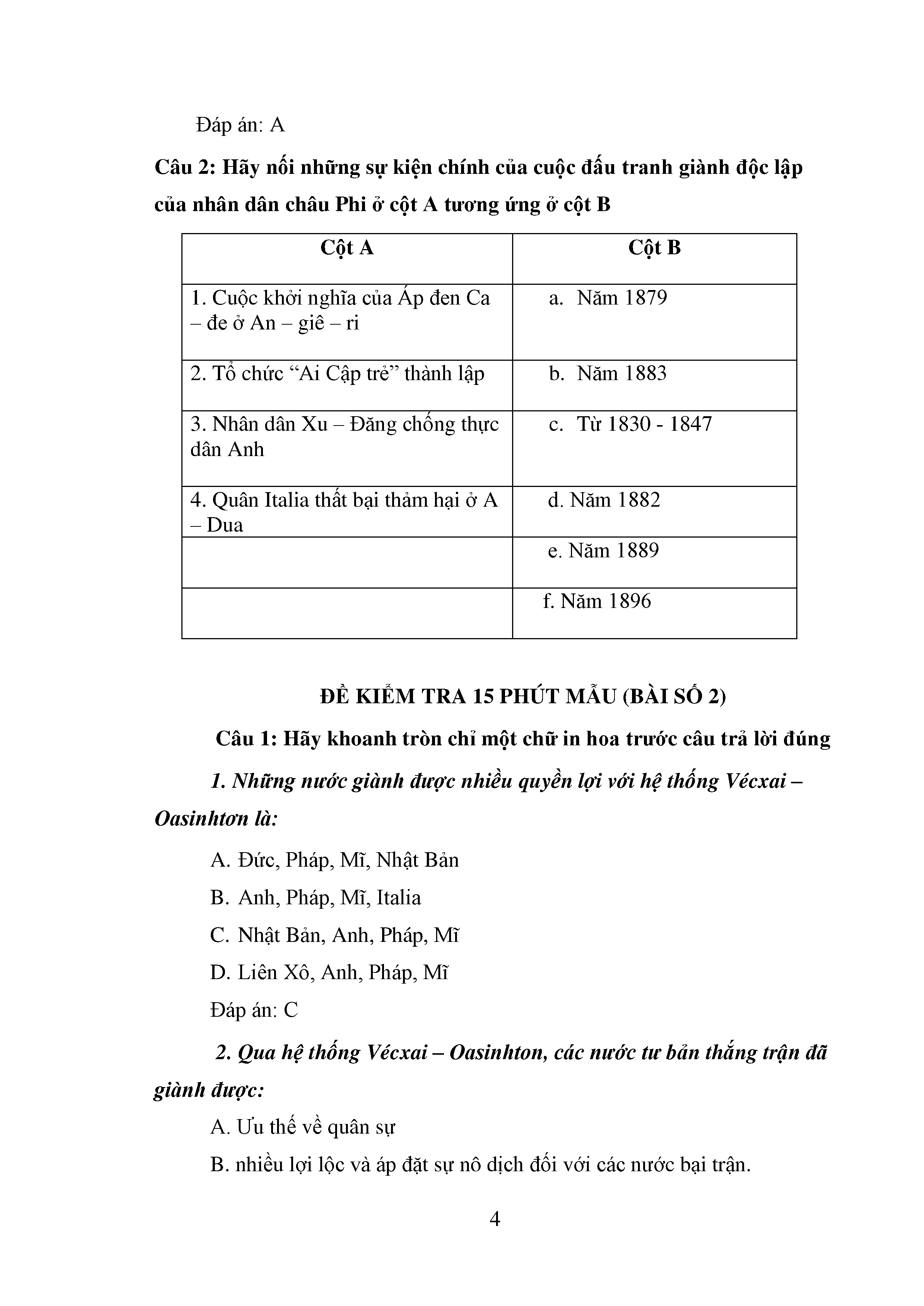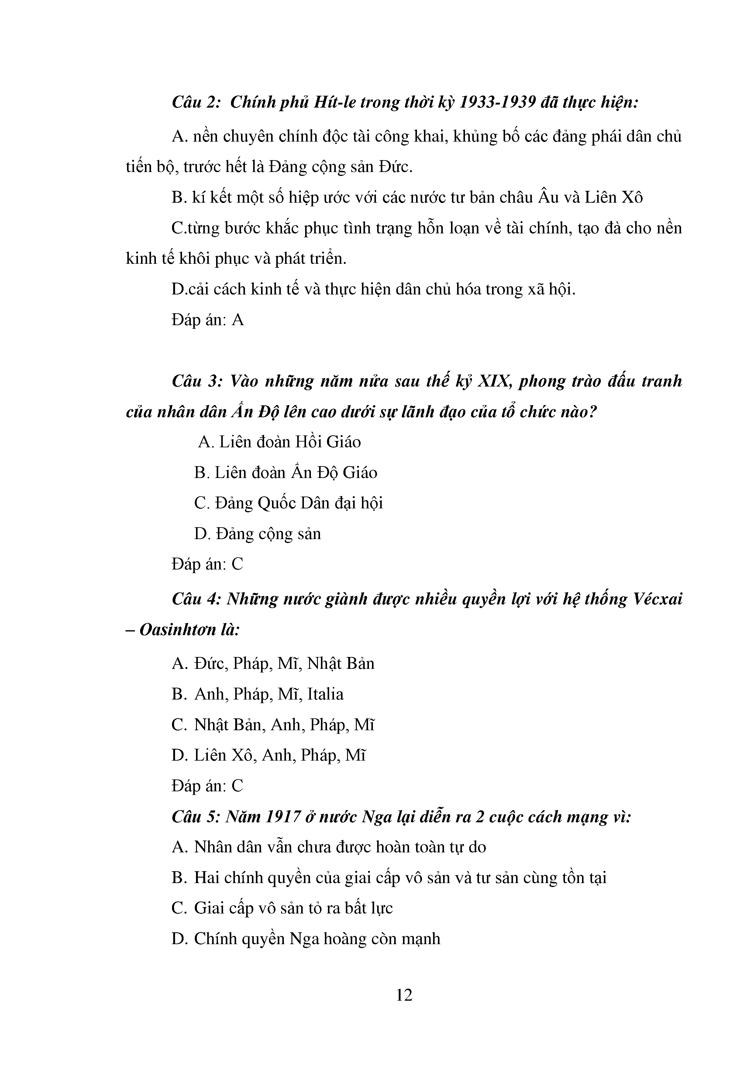 Bộ câu hỏi trắc nghiệm 3 cấp độ - Lịch sử - Lớp 11