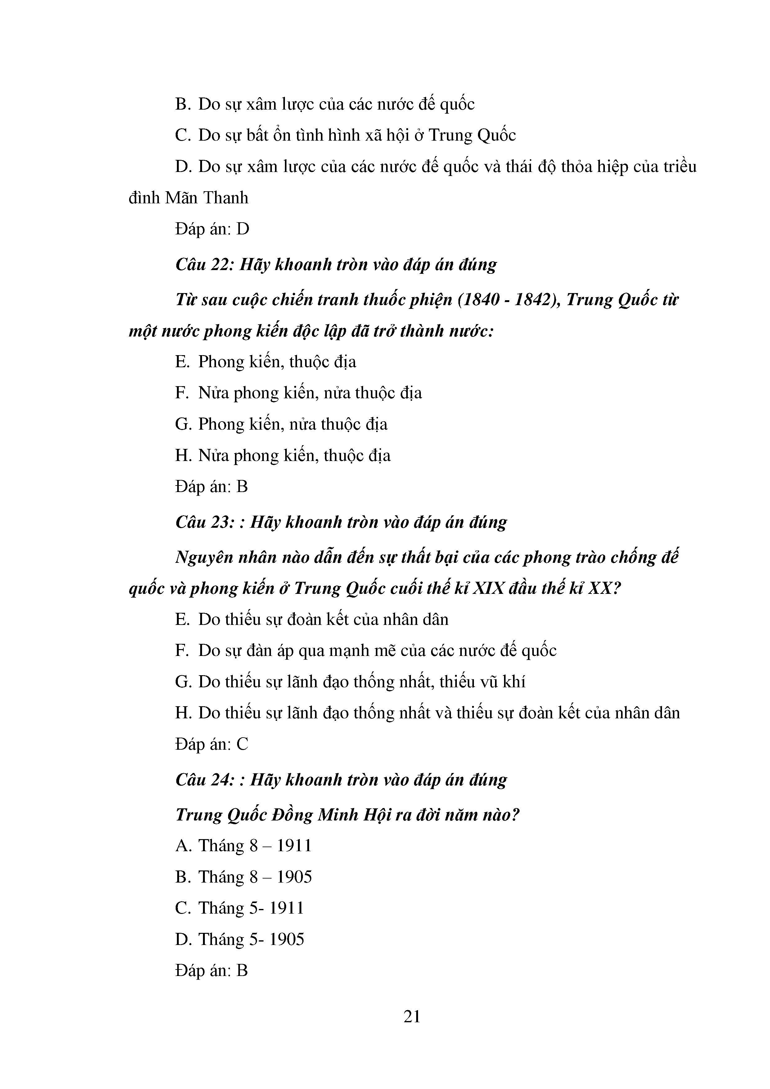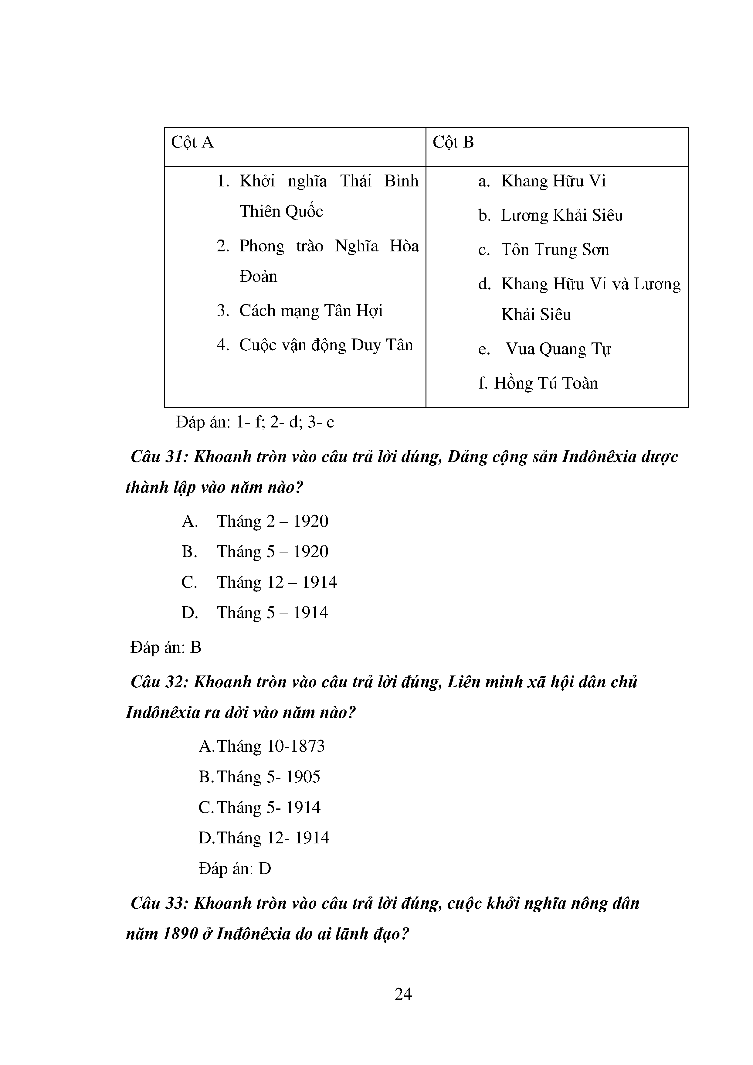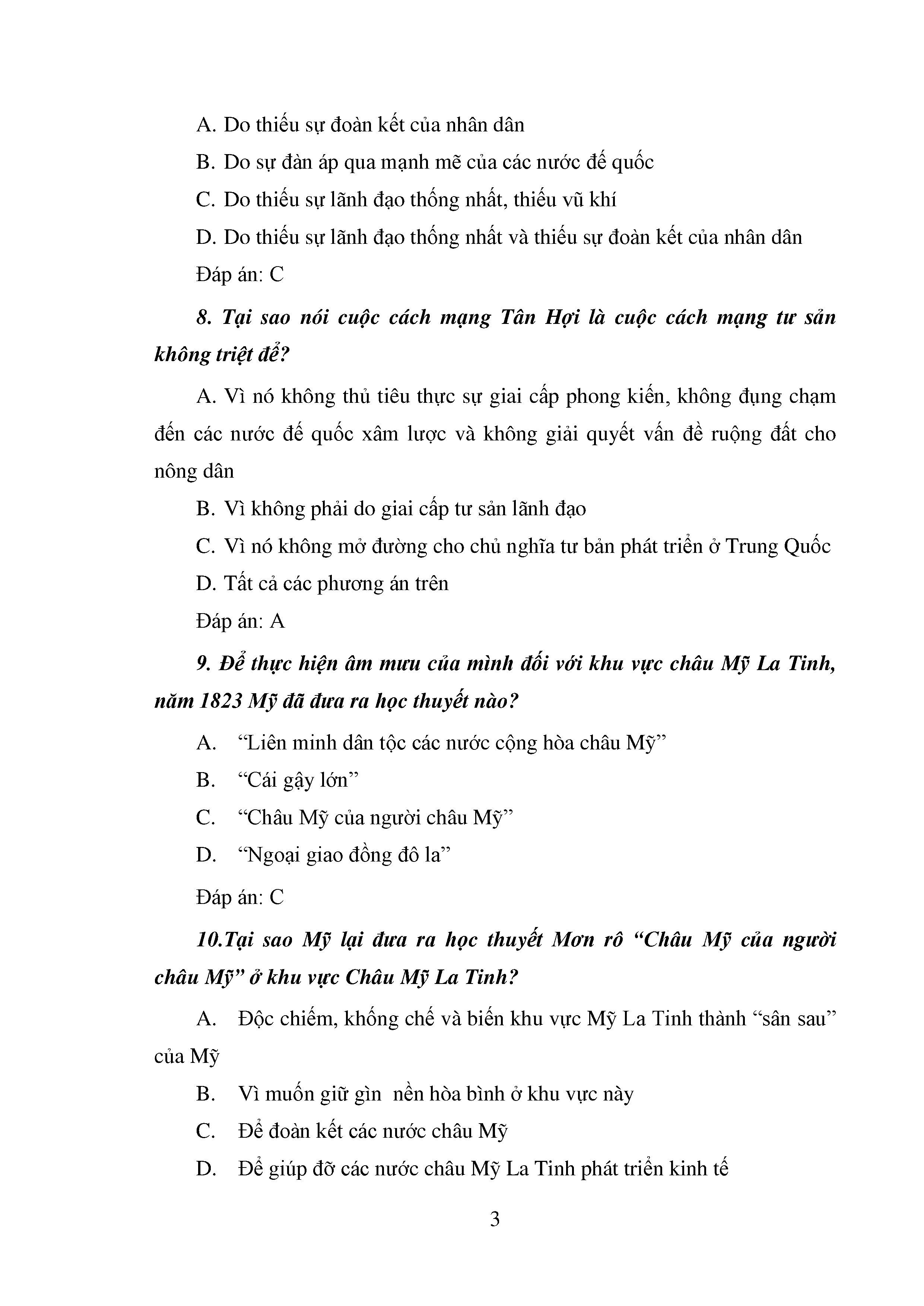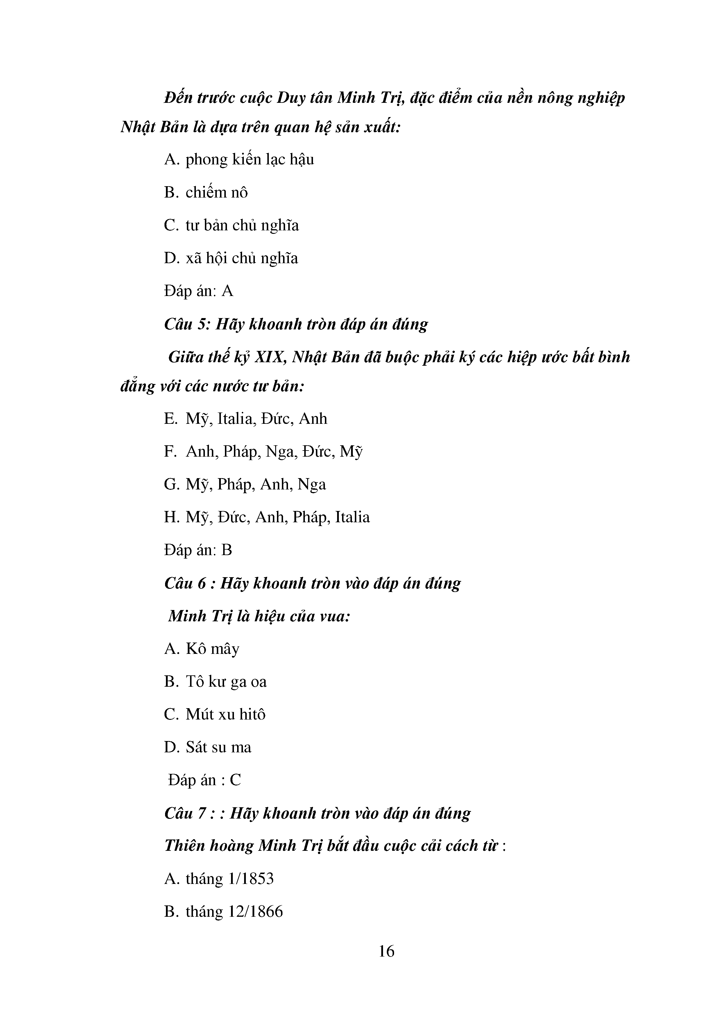 Bộ câu hỏi trắc nghiệm 3 cấp độ - Lịch sử - Lớp 11
