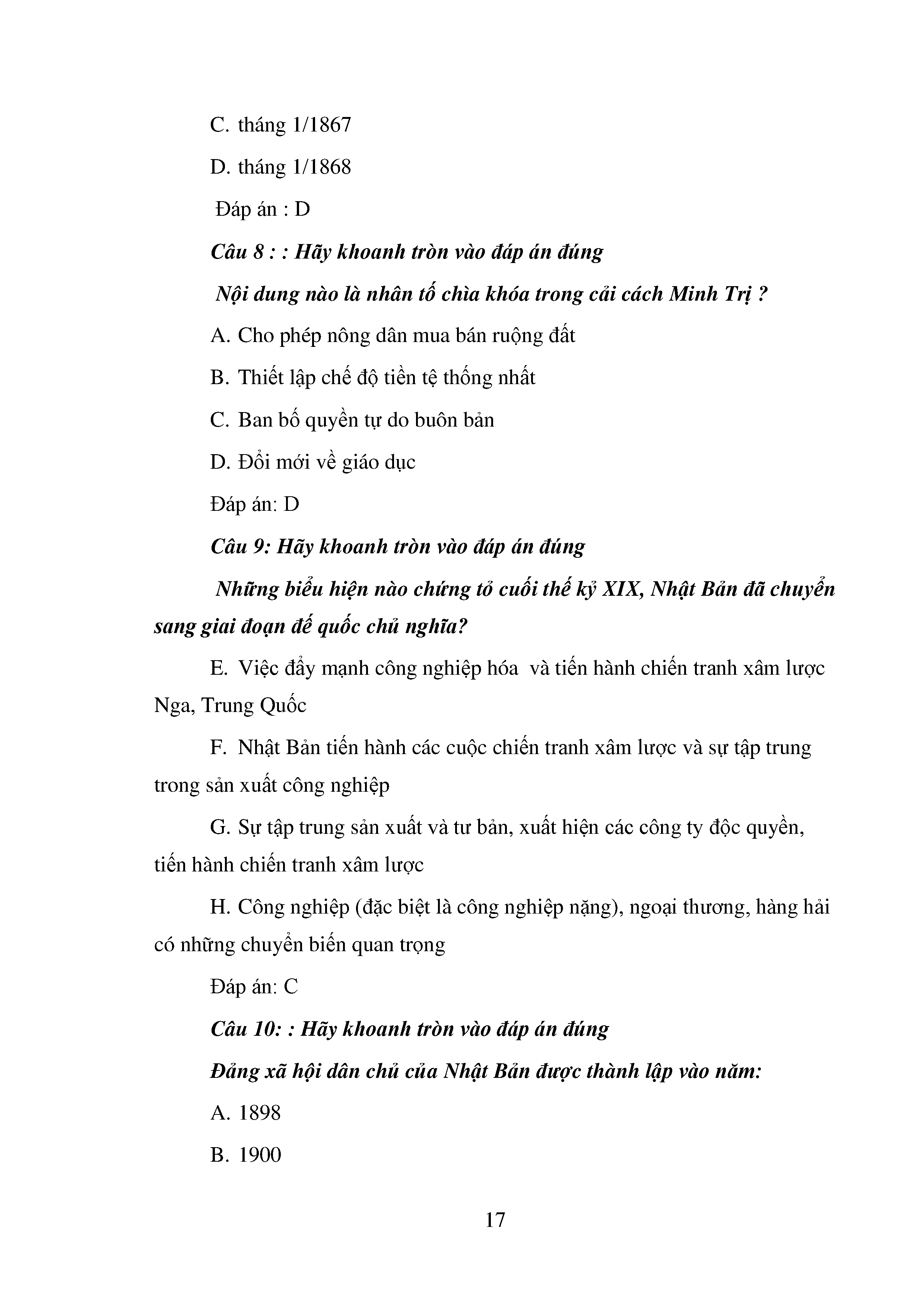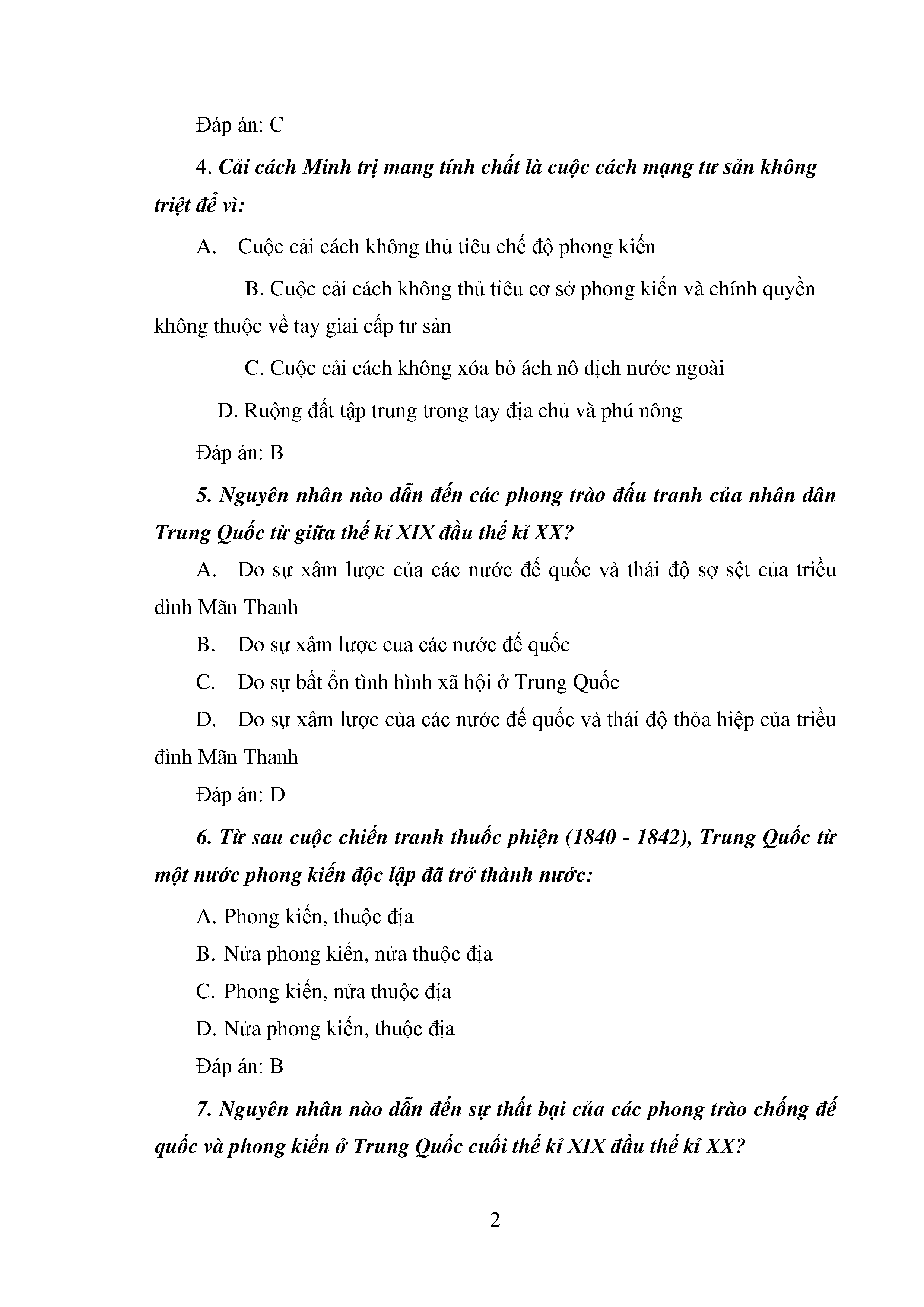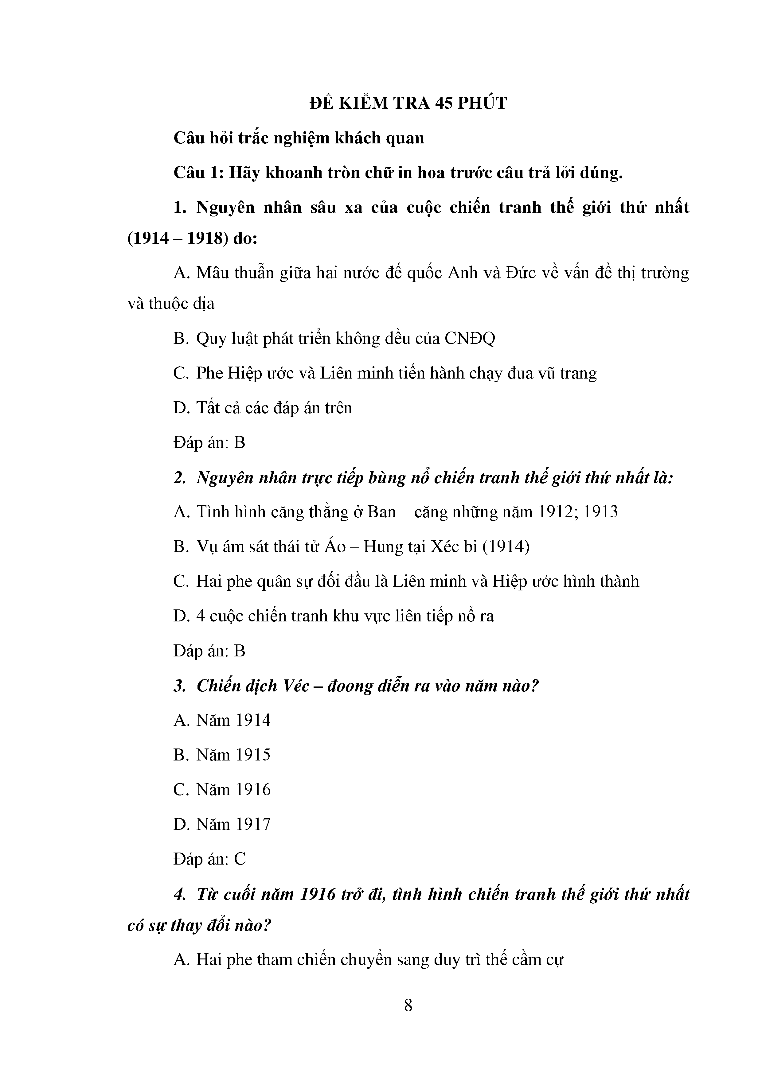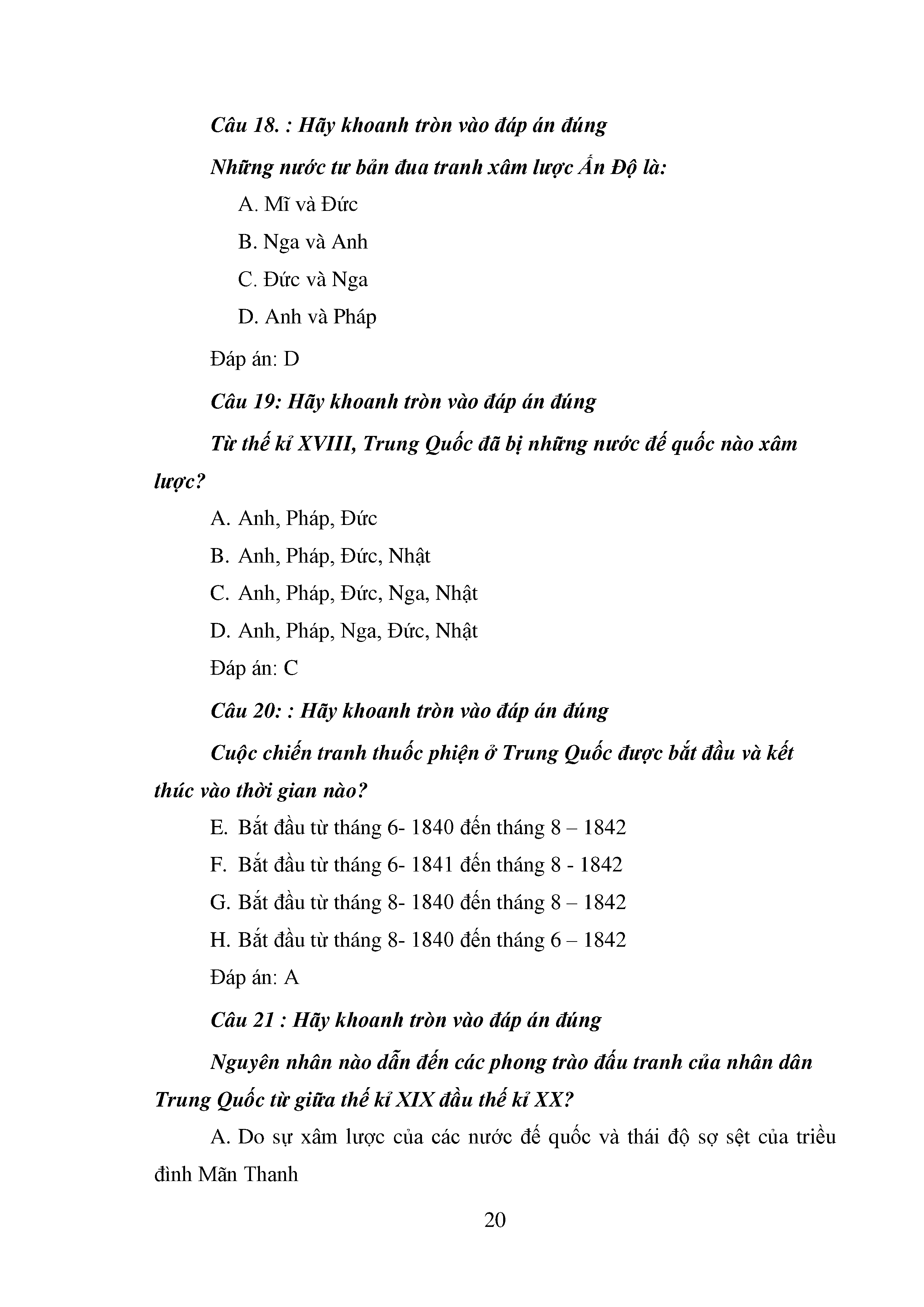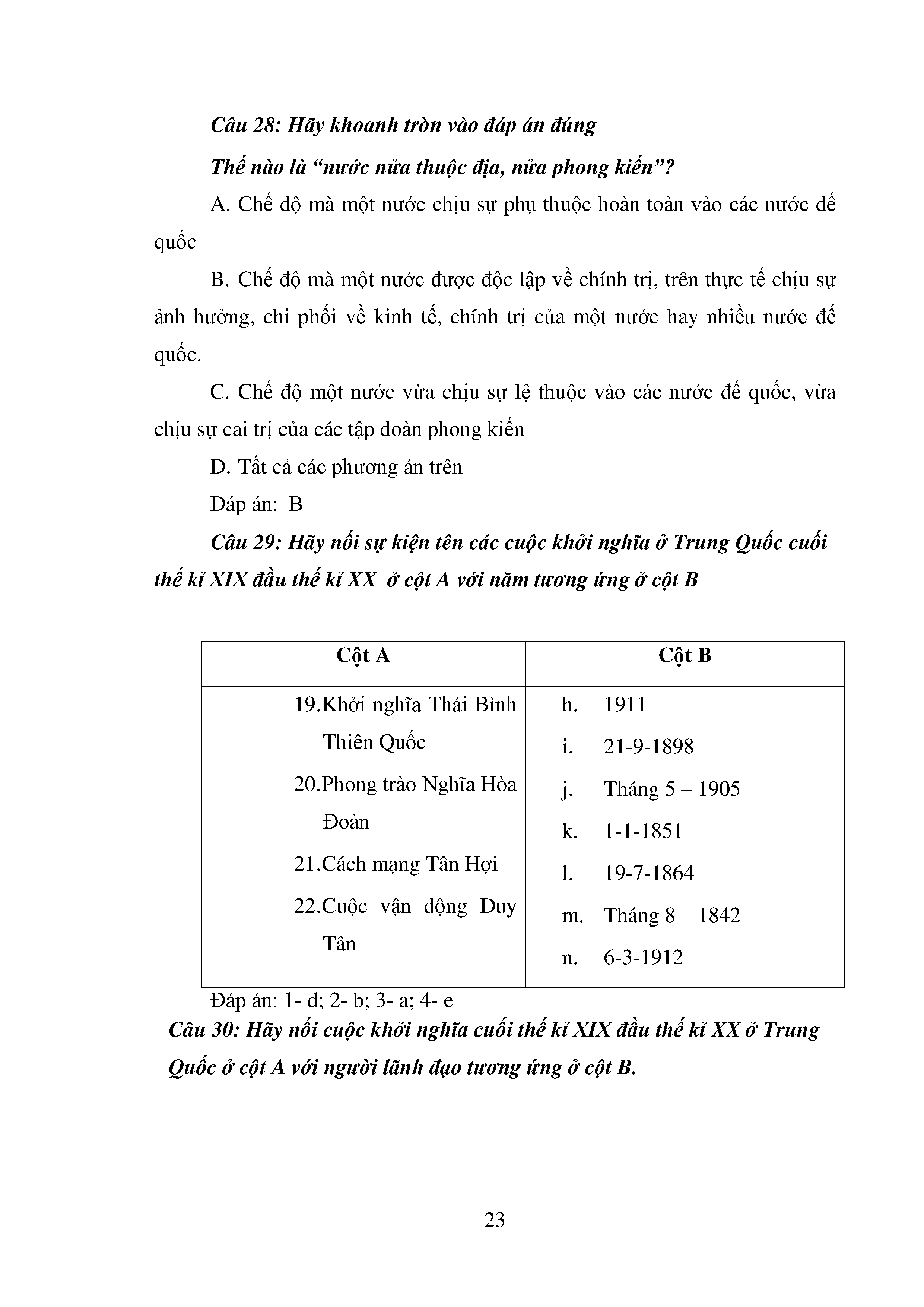 Bộ câu hỏi trắc nghiệm 3 cấp độ - Lịch sử - Lớp 11