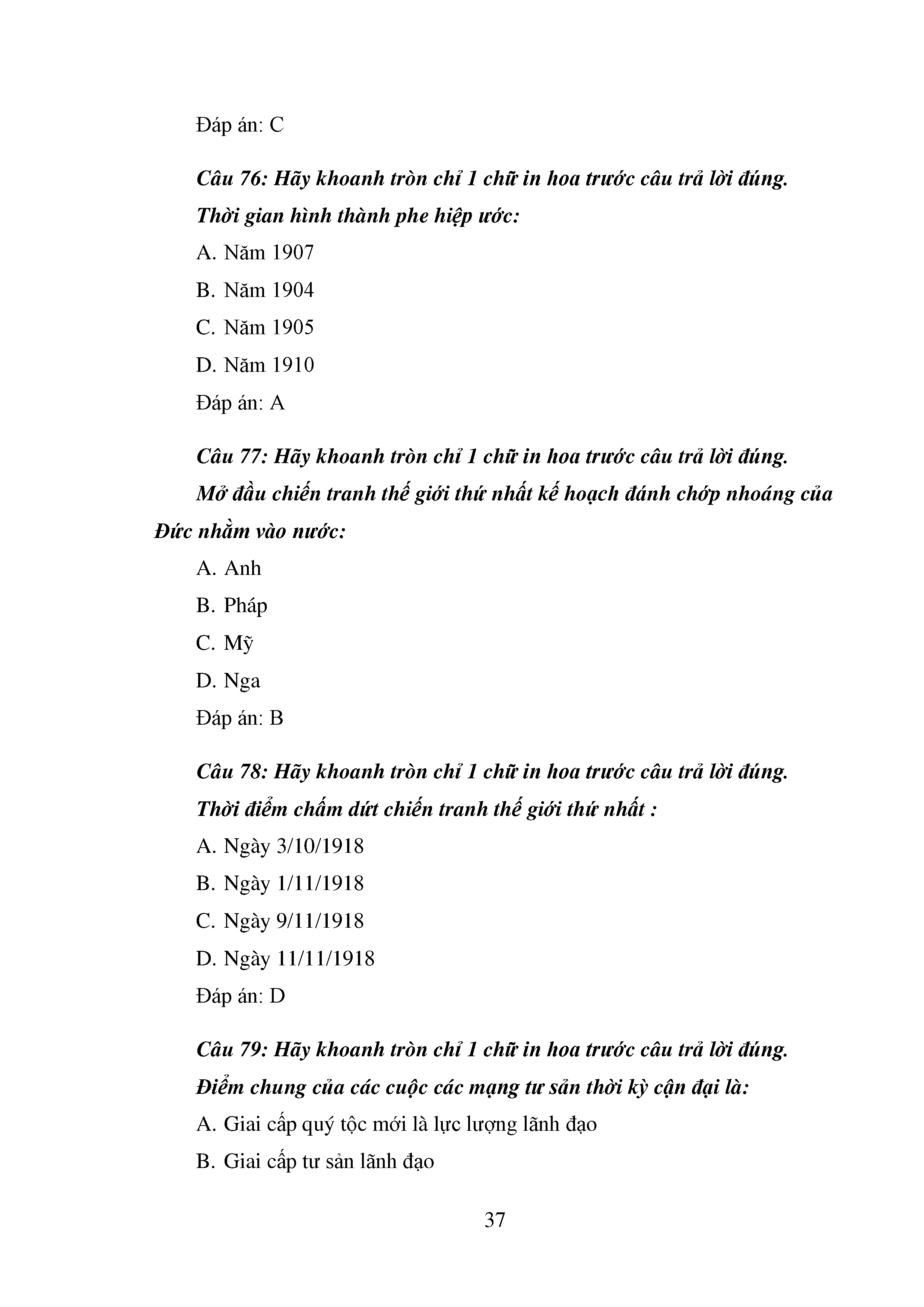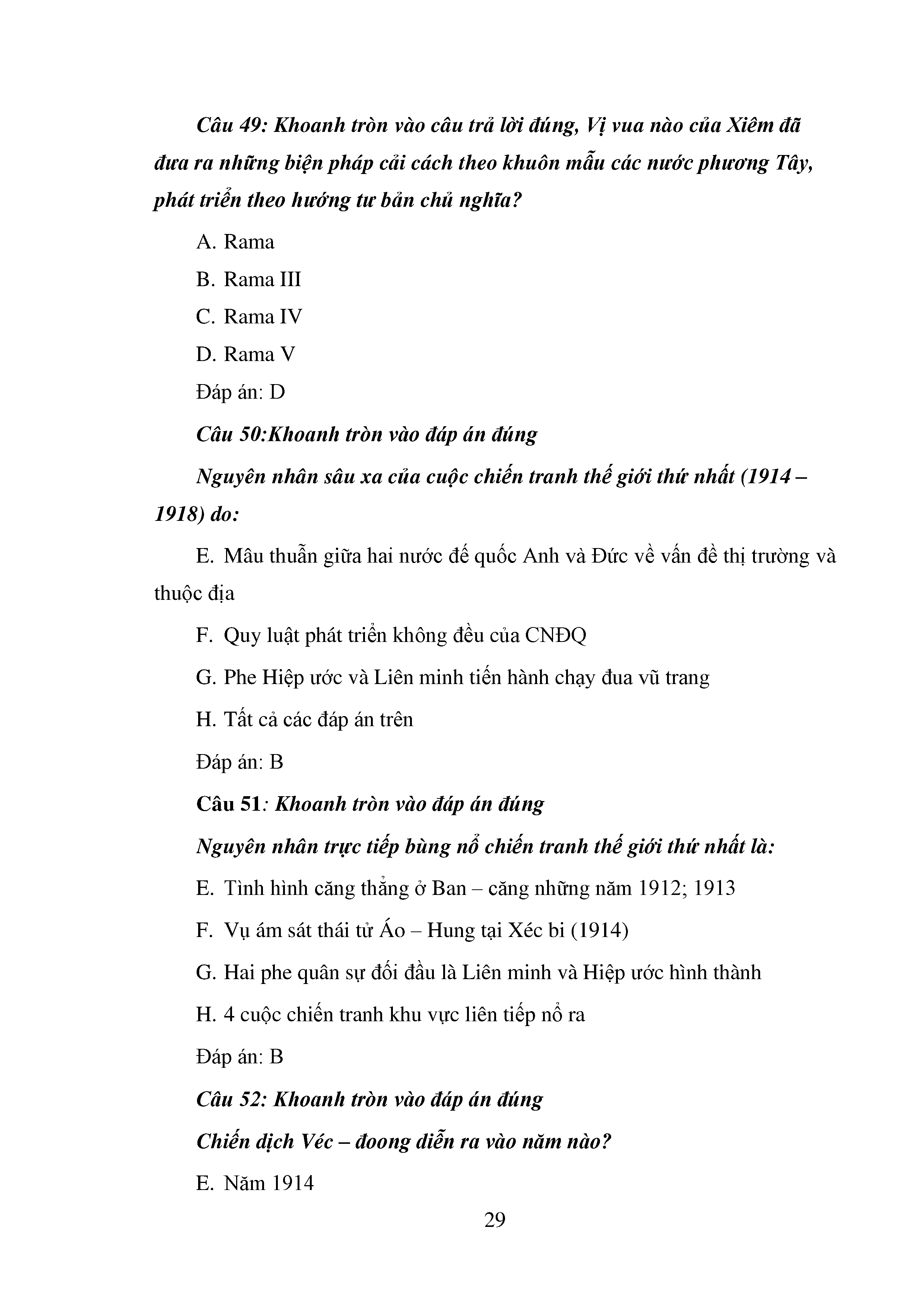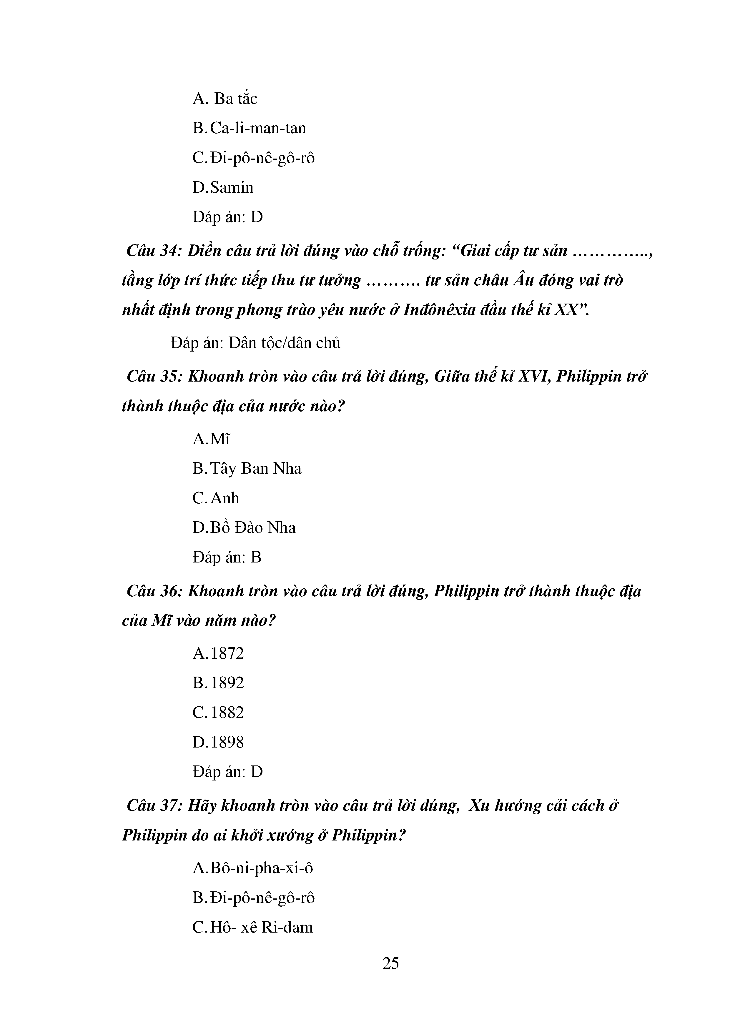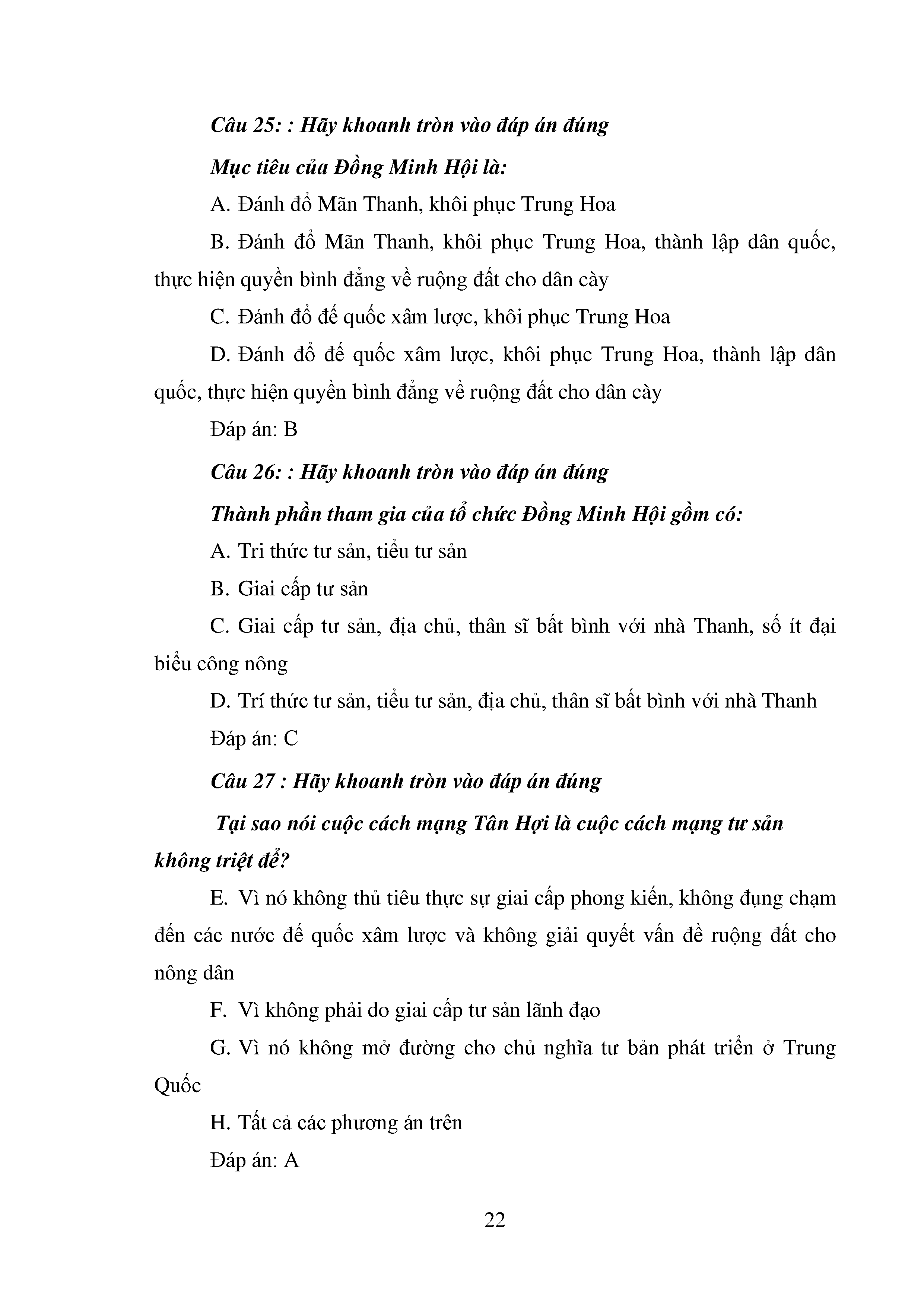 Bộ câu hỏi trắc nghiệm 3 cấp độ - Lịch sử - Lớp 11