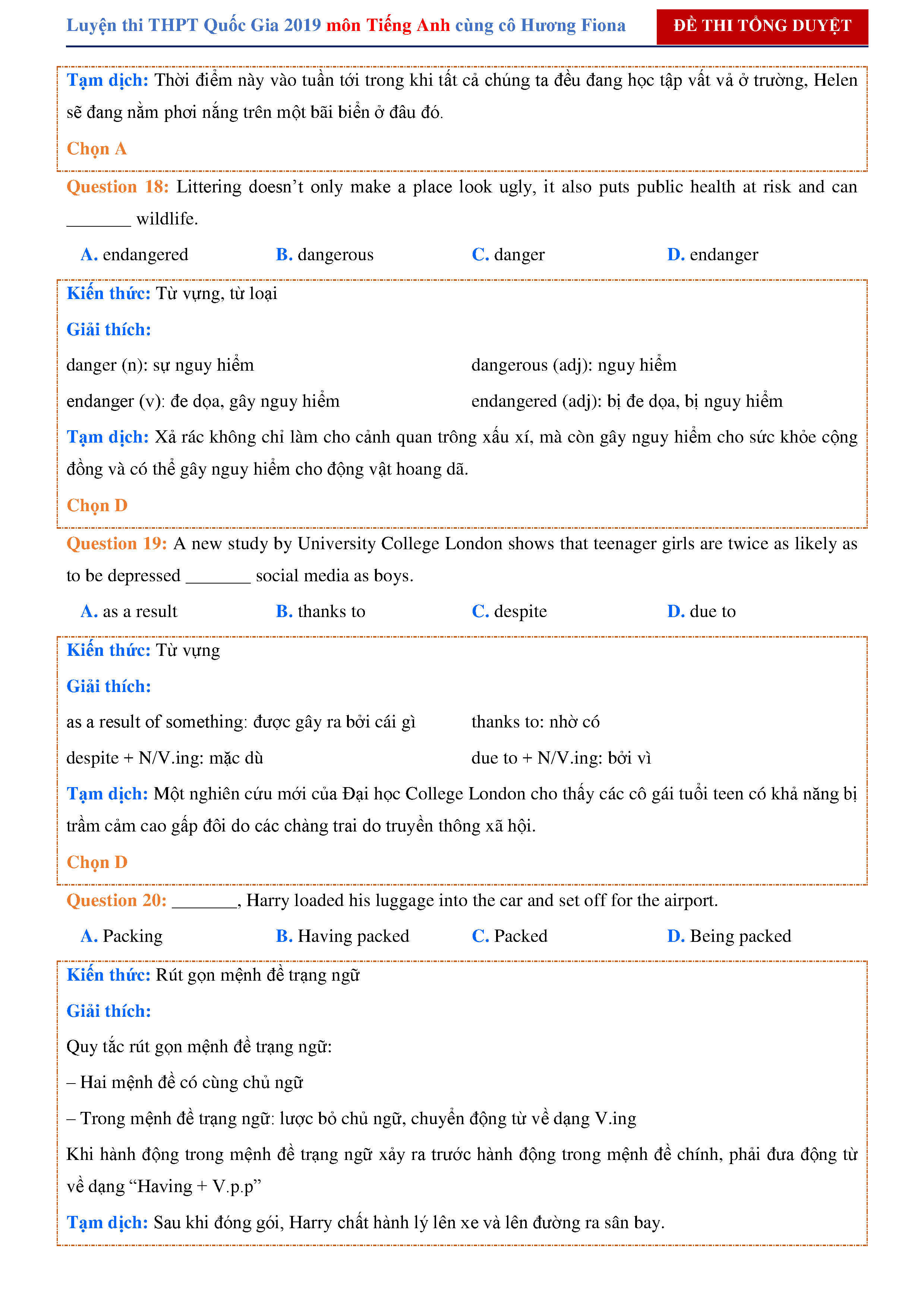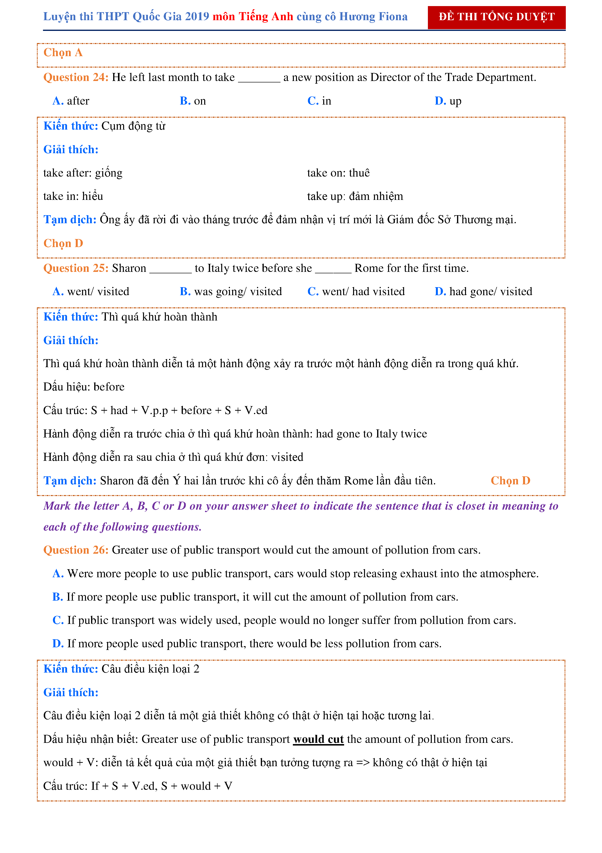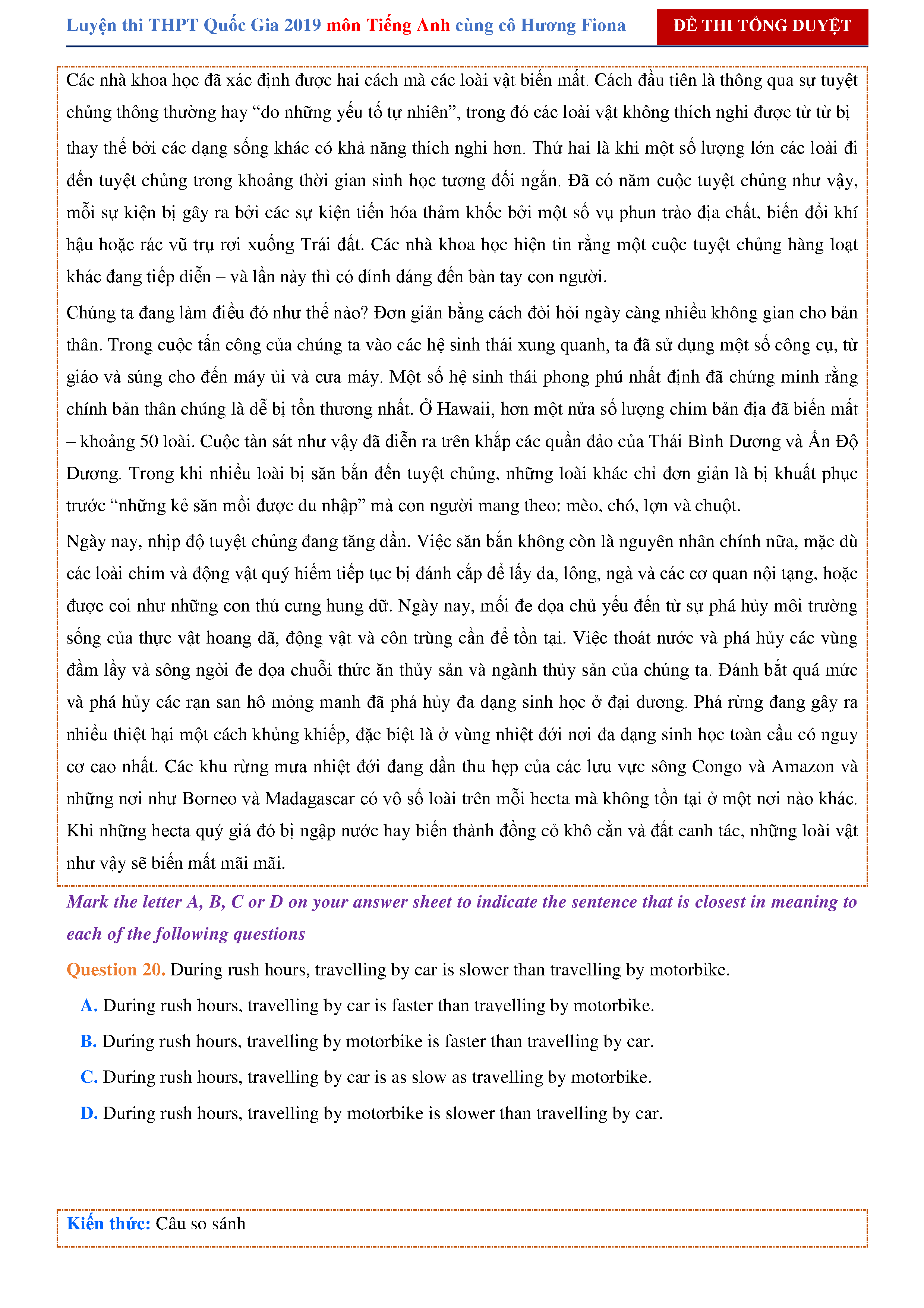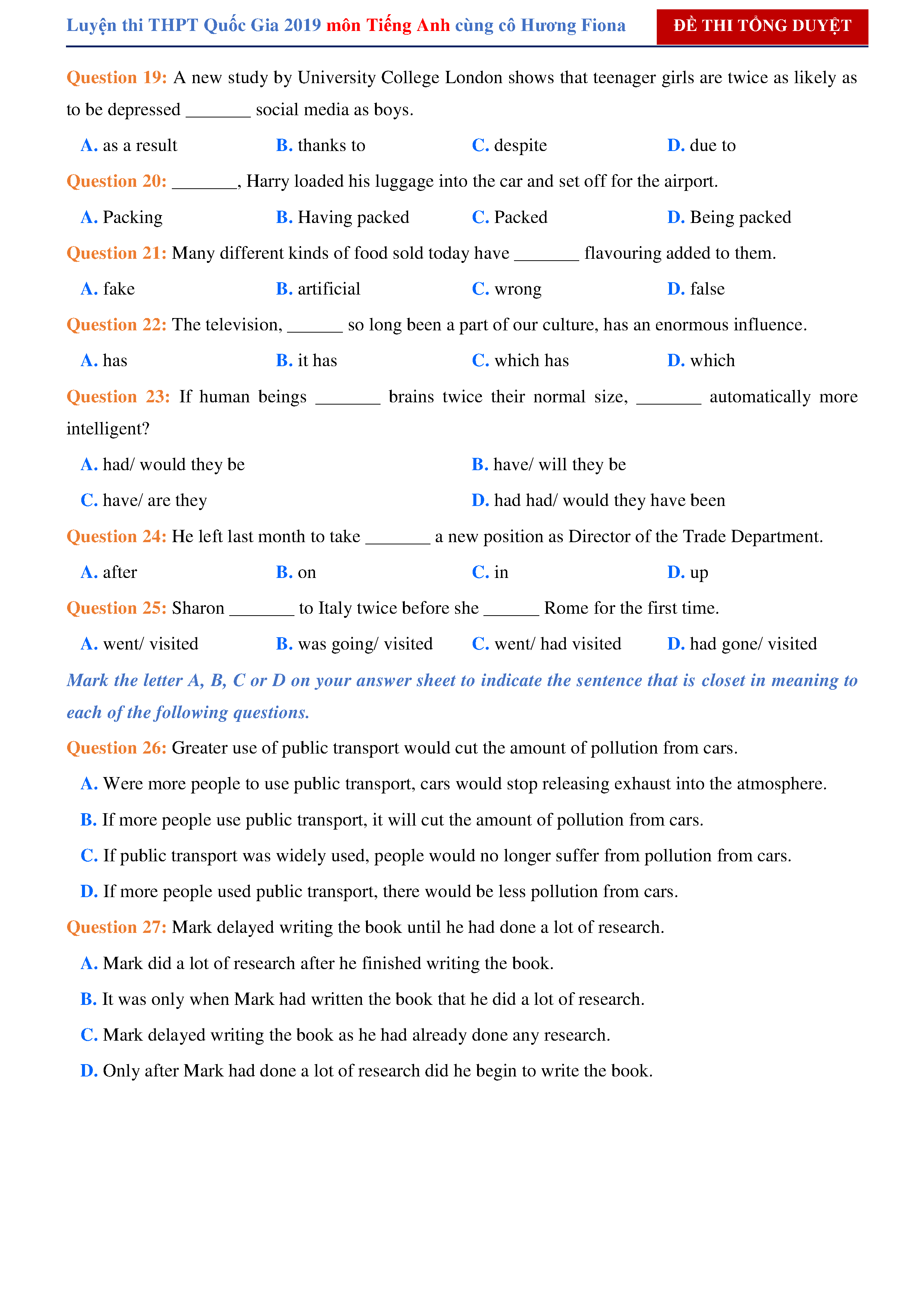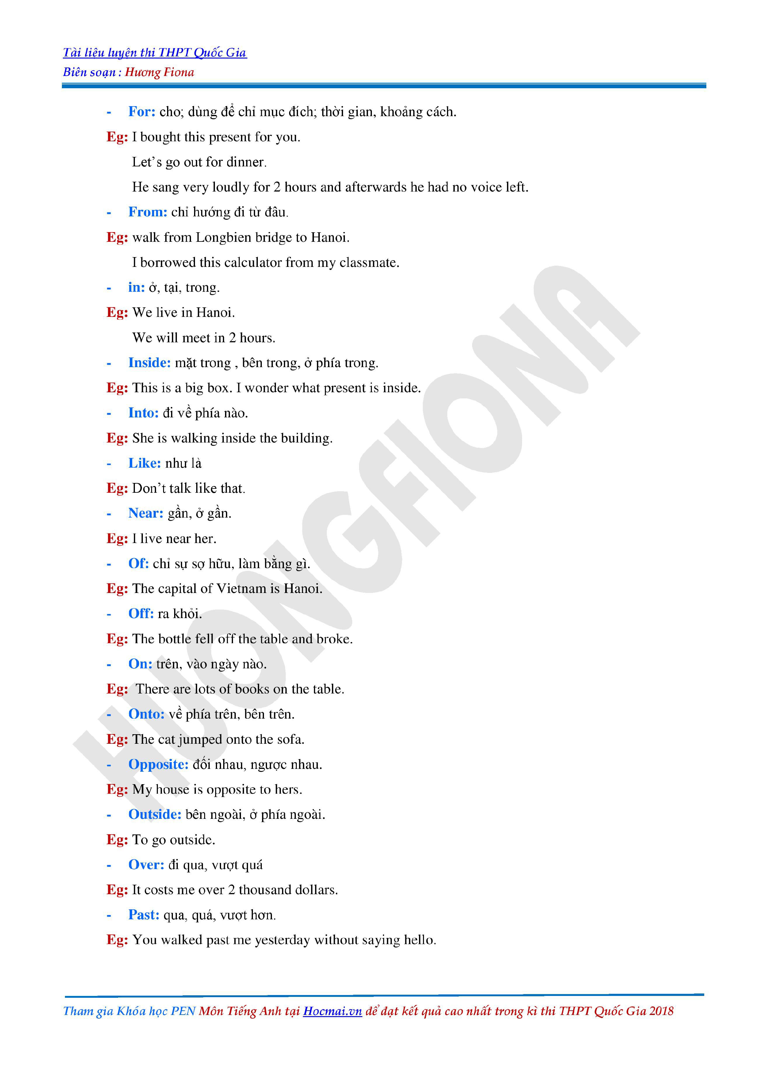 Tài liệu tổng duyệt kiến thức Tiếng Anh trước kỳ thi THPT QG 2019