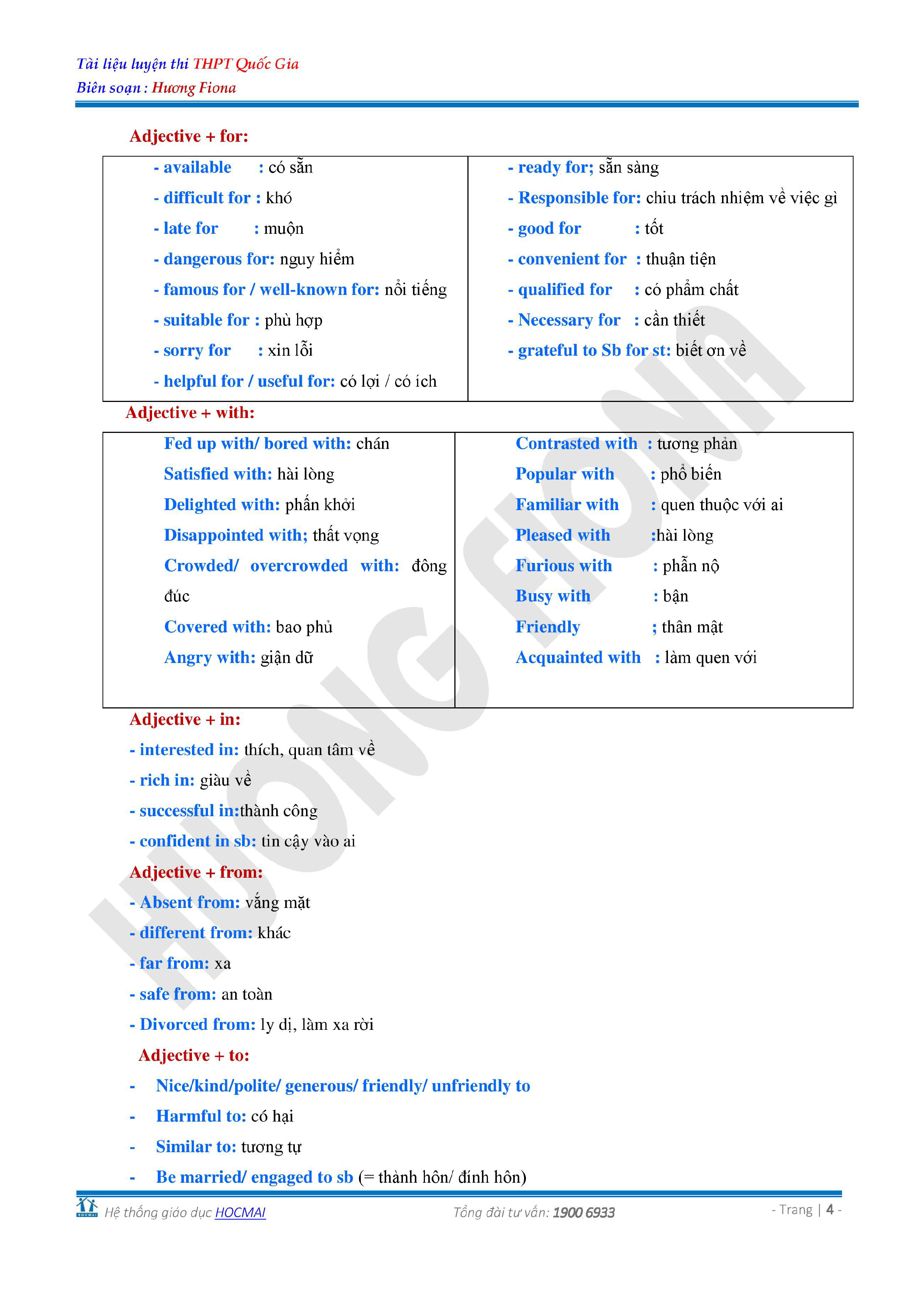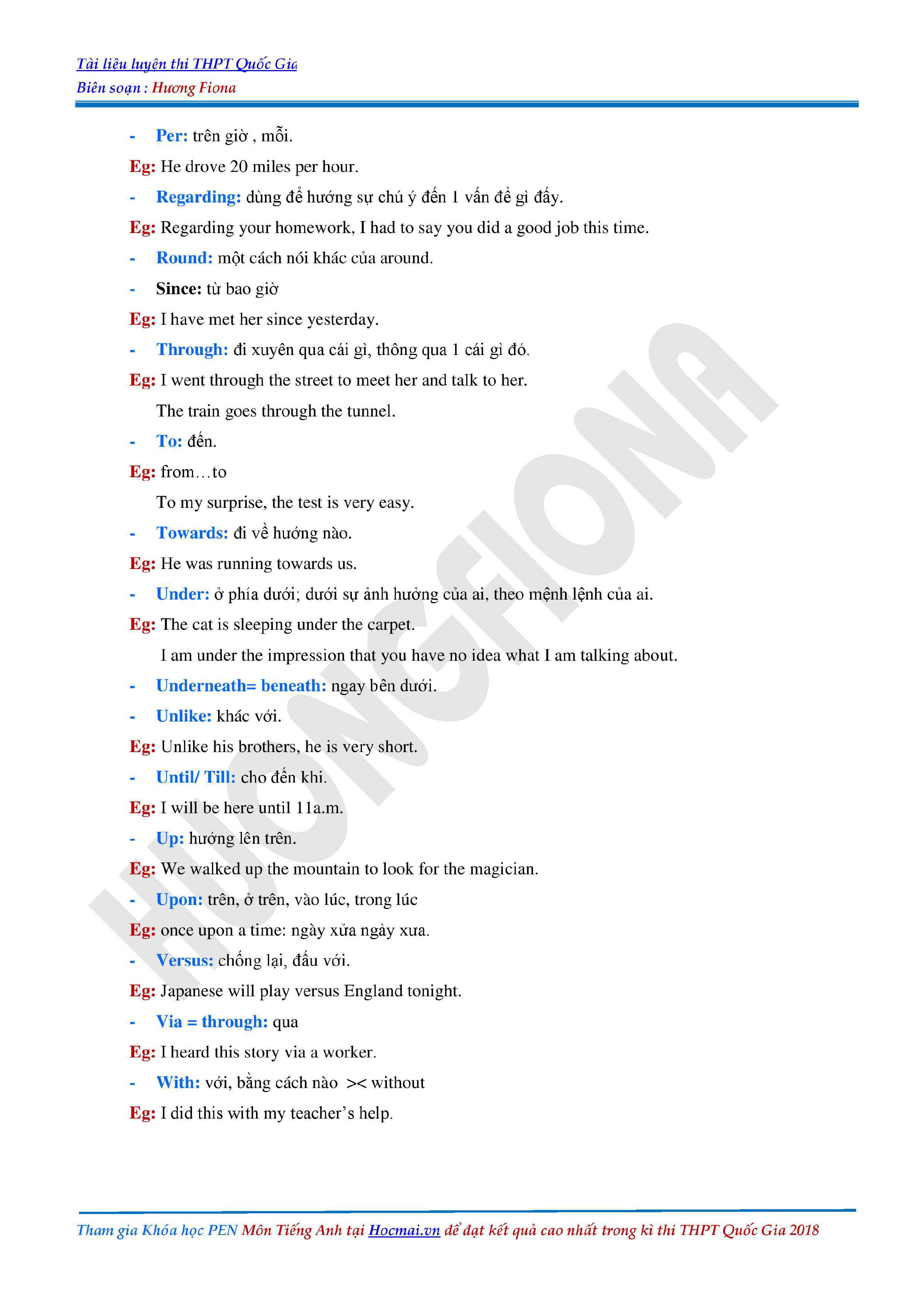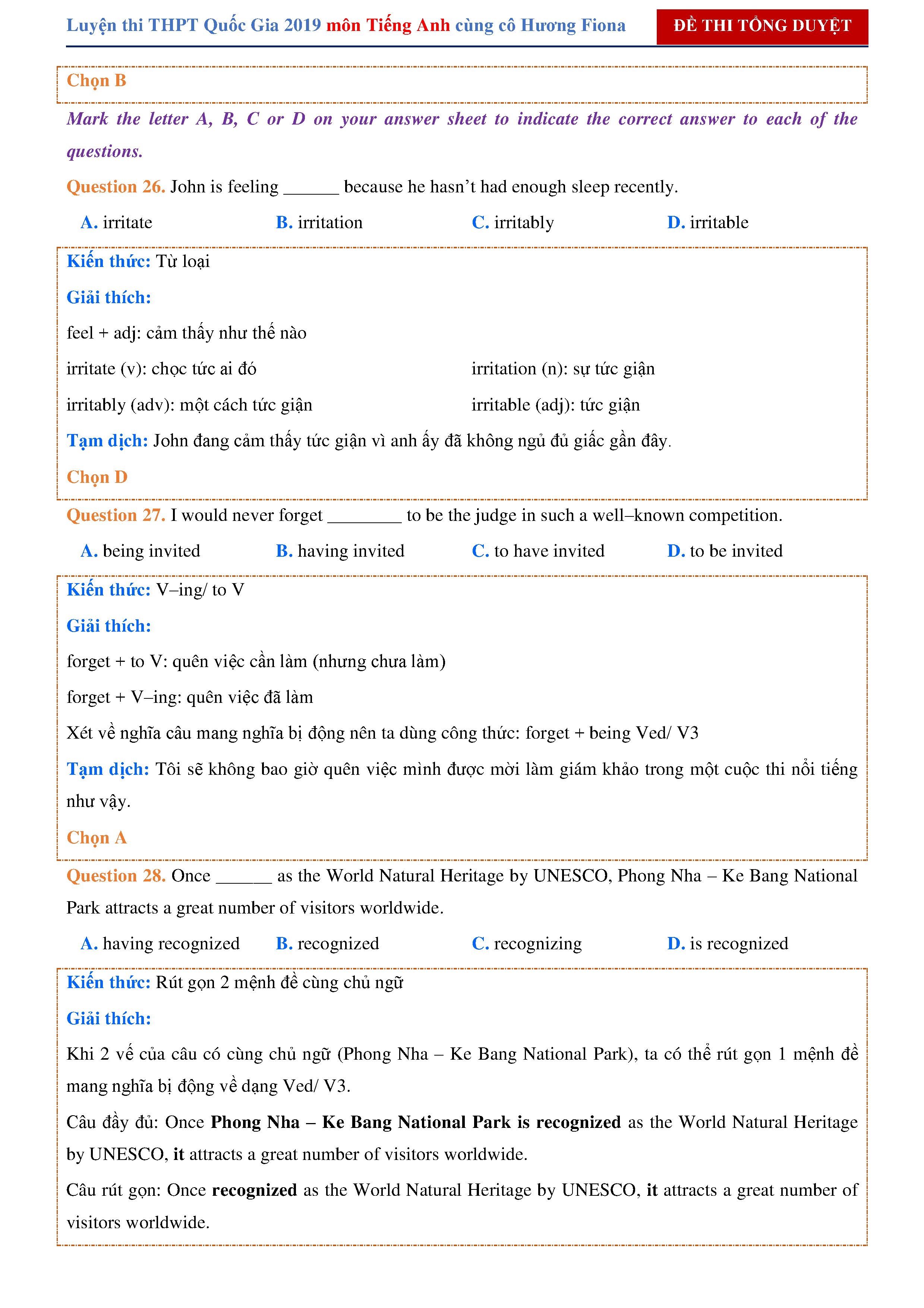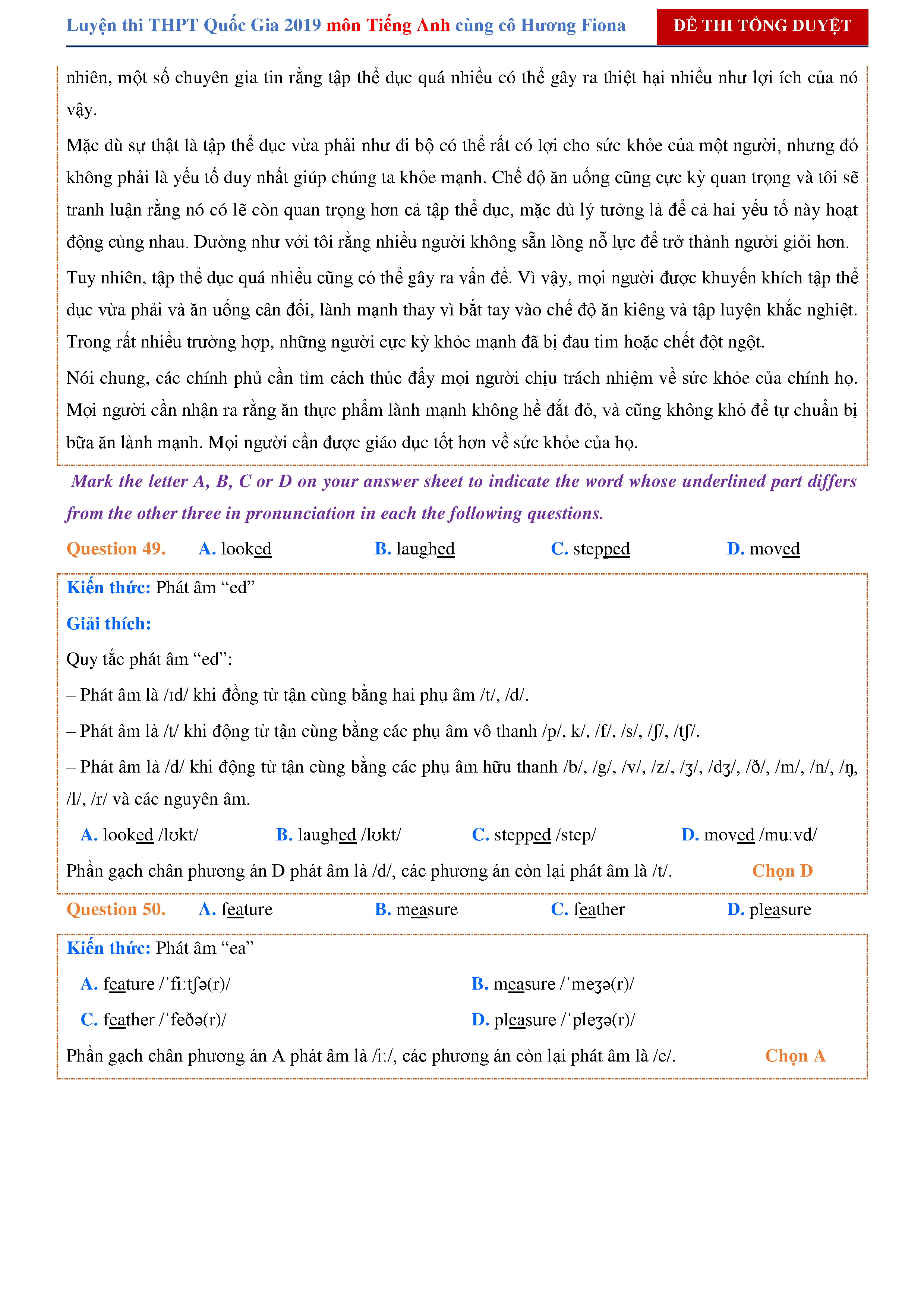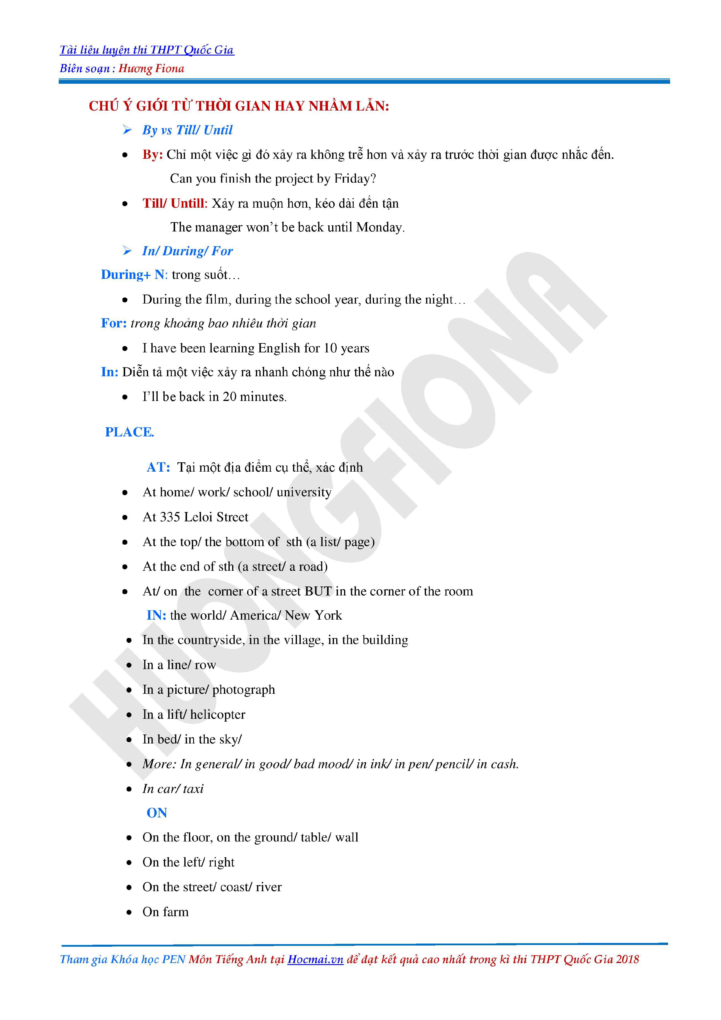 Tài liệu tổng duyệt kiến thức Tiếng Anh trước kỳ thi THPT QG 2019