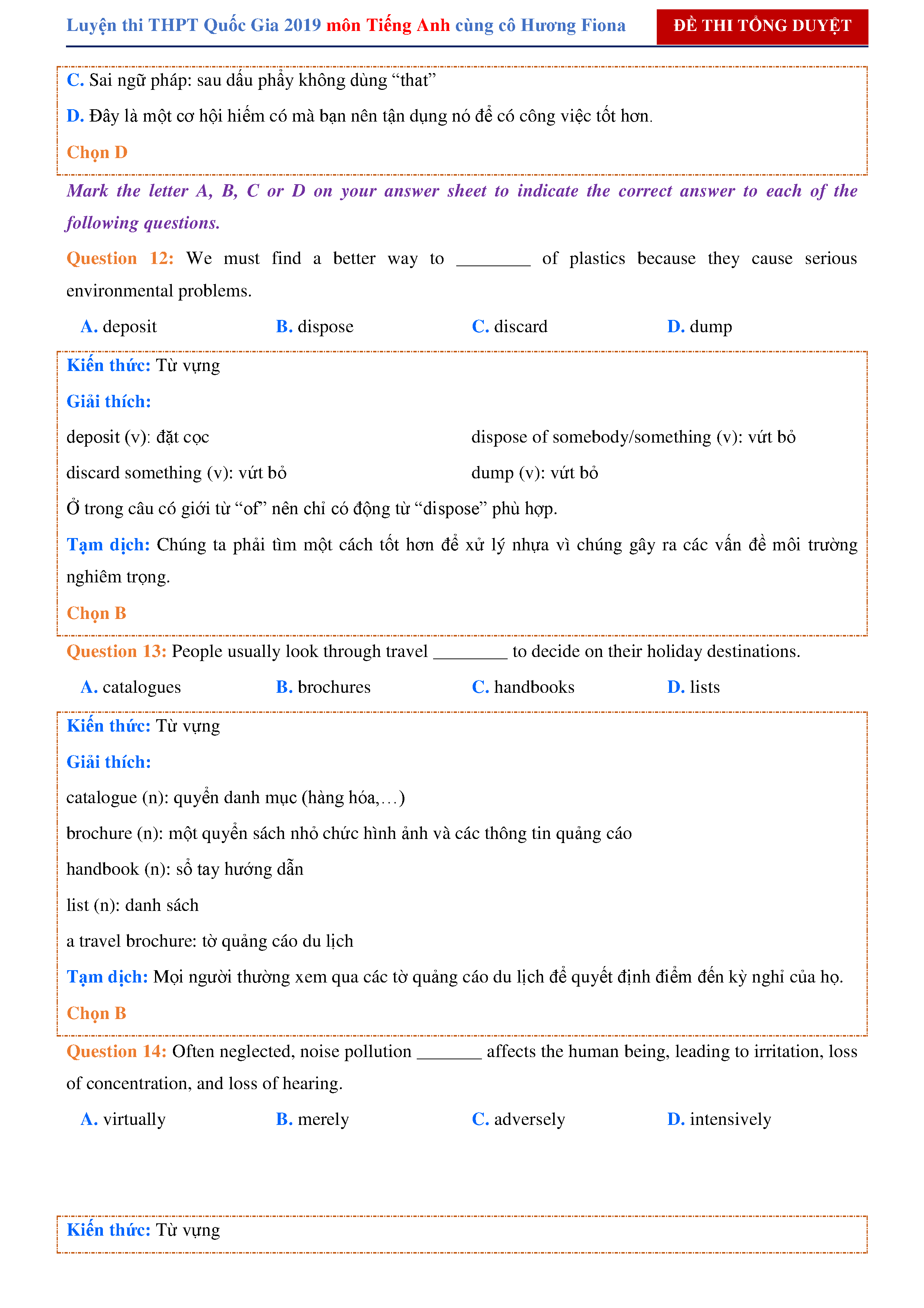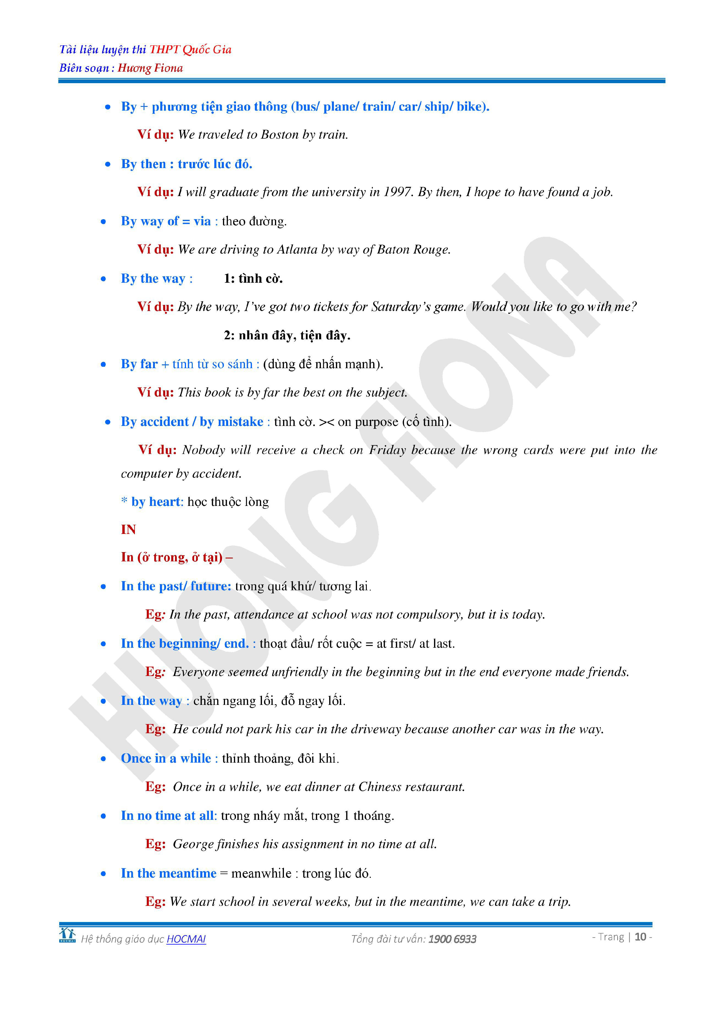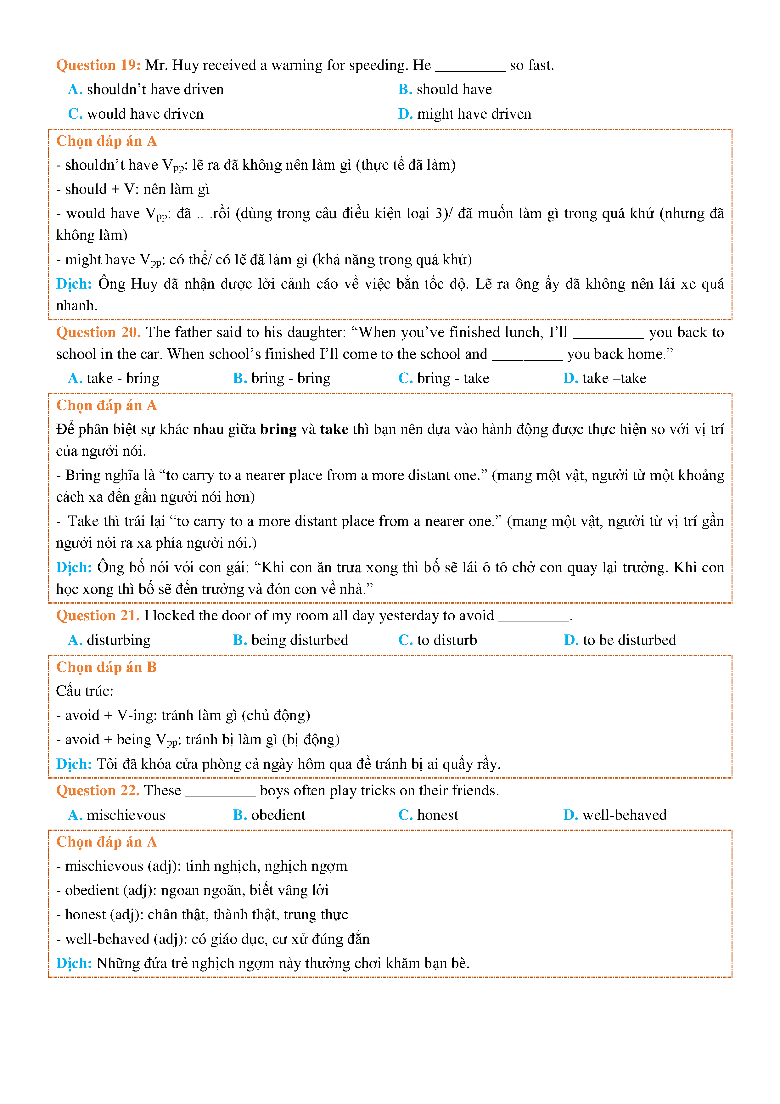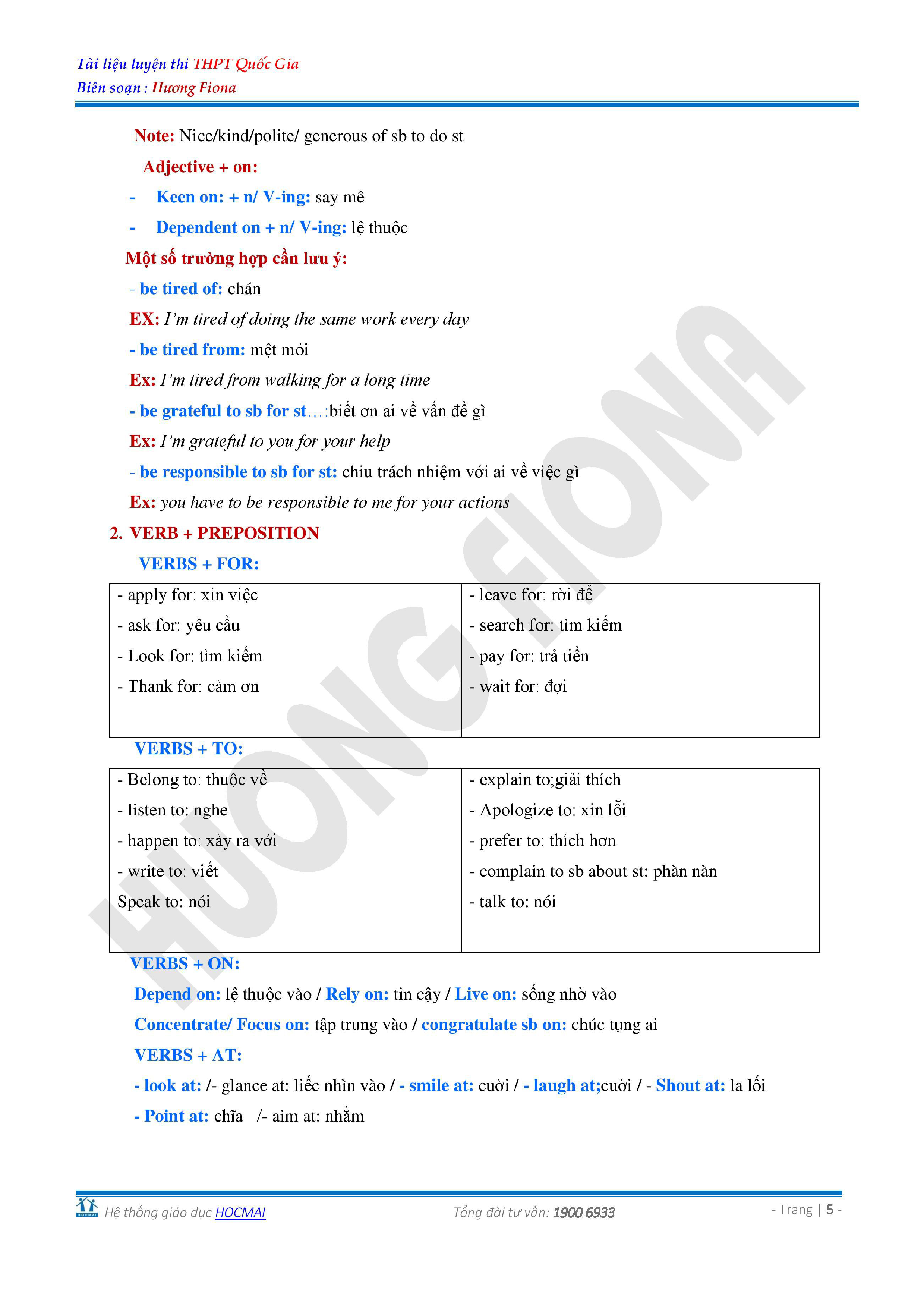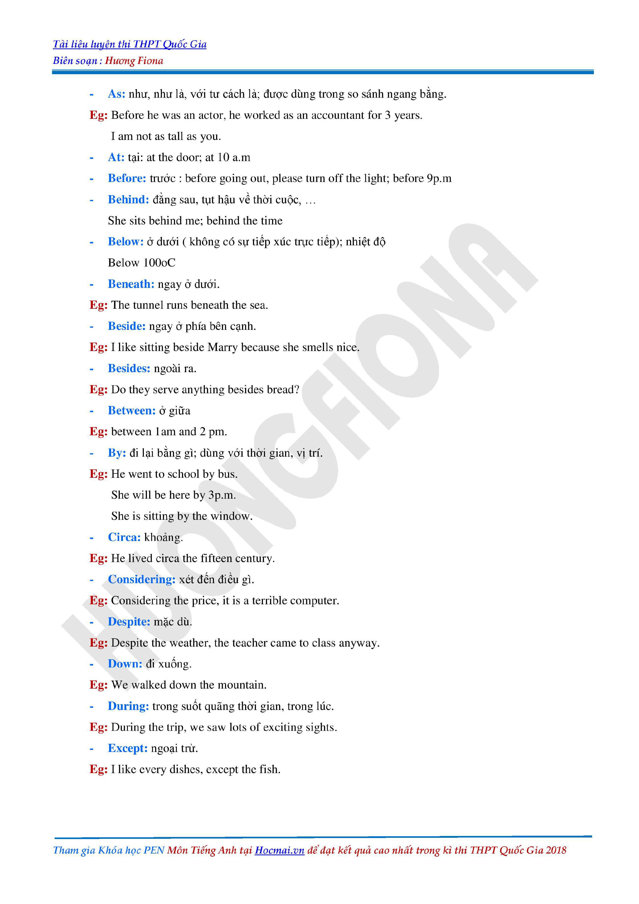 Tài liệu tổng duyệt kiến thức Tiếng Anh trước kỳ thi THPT QG 2019