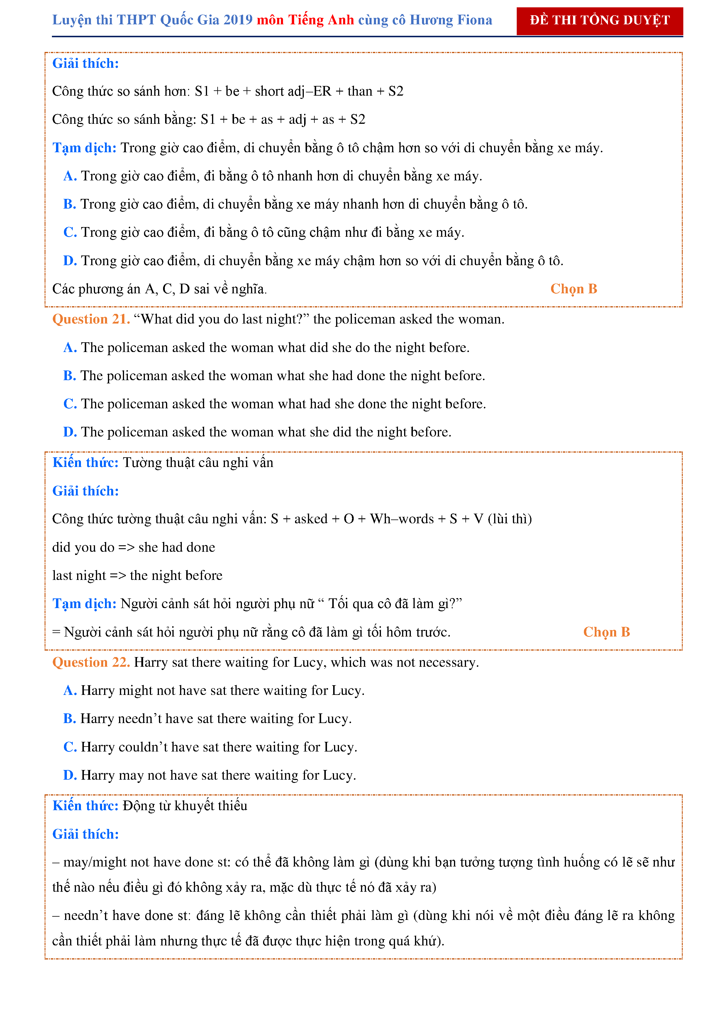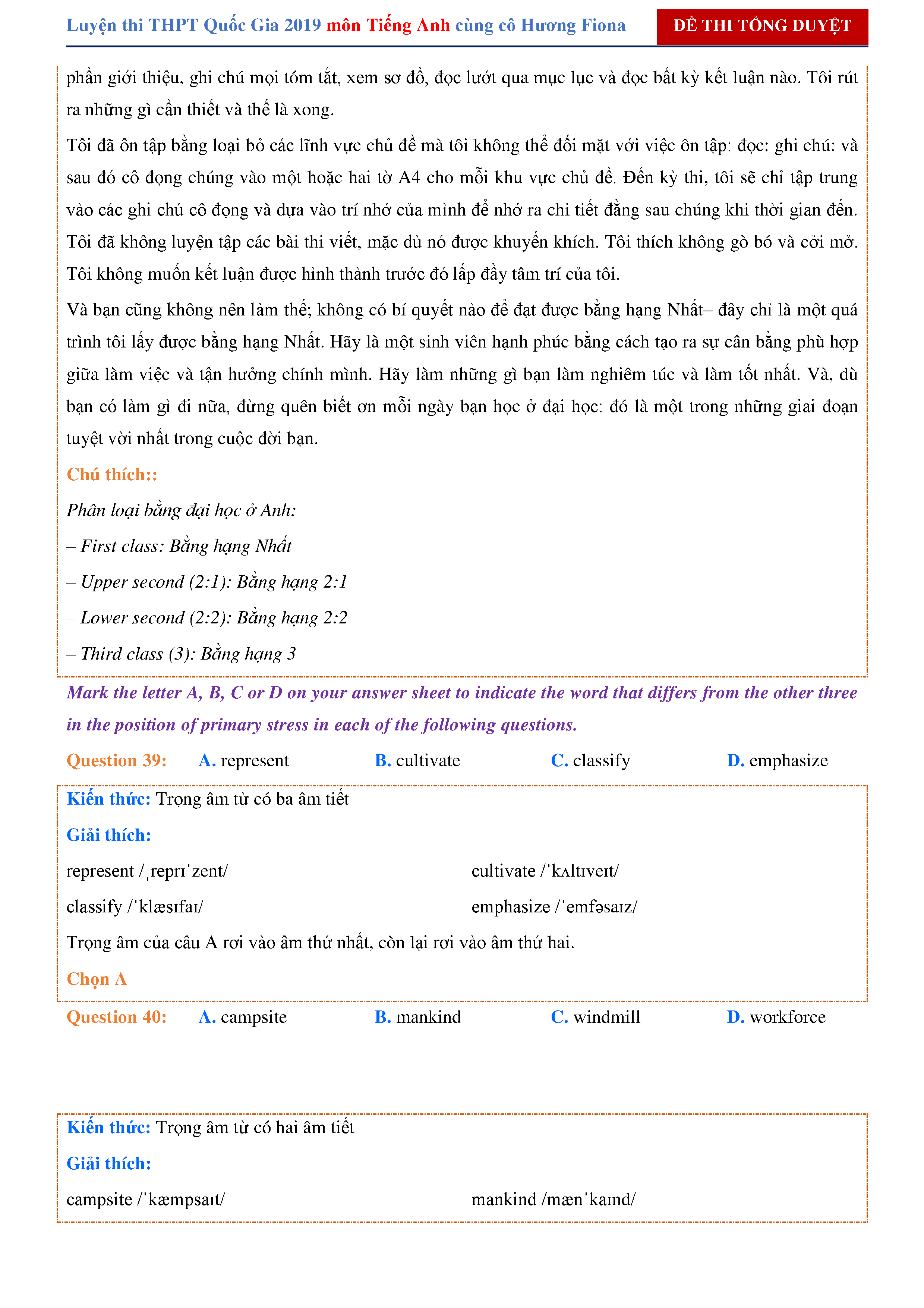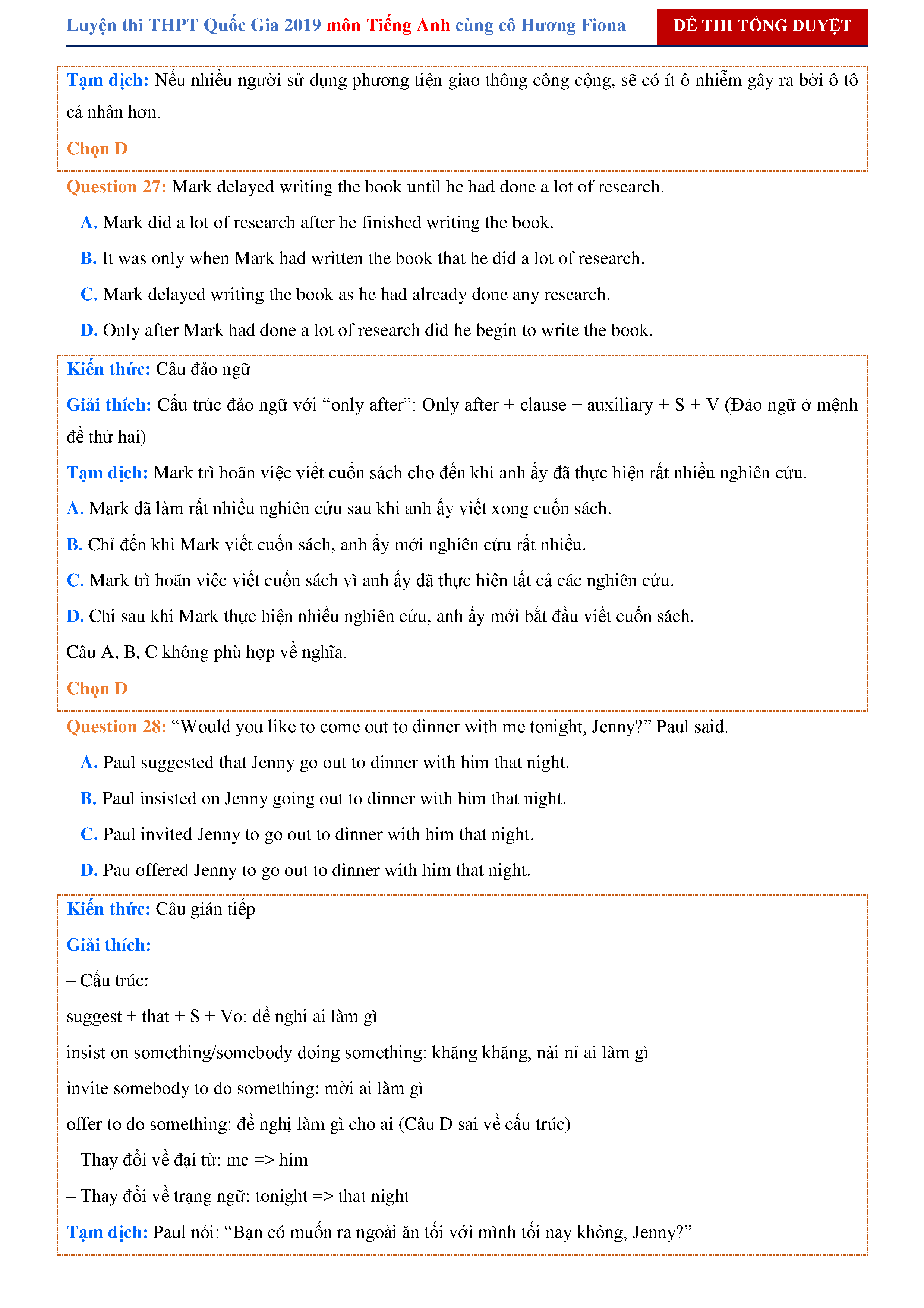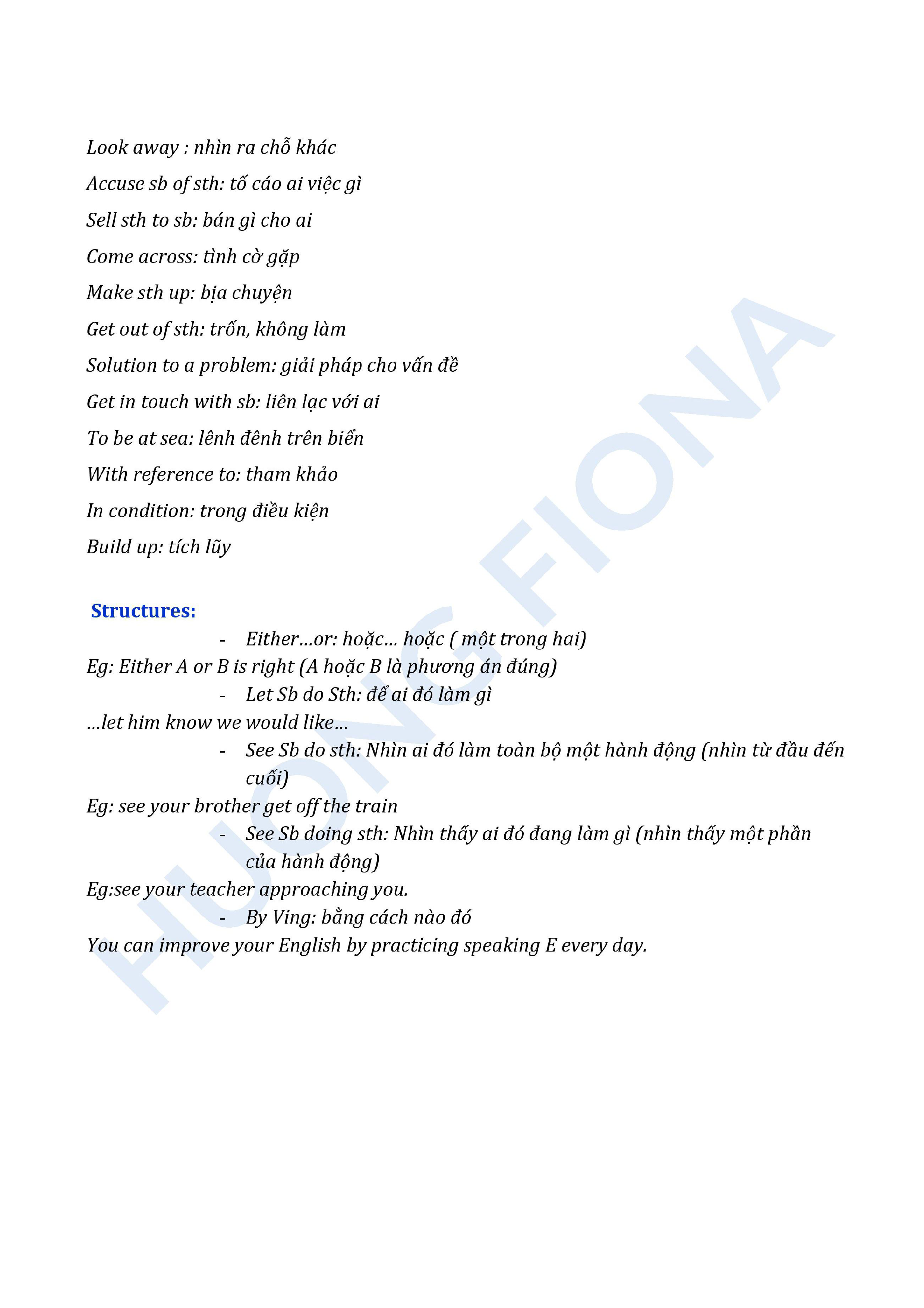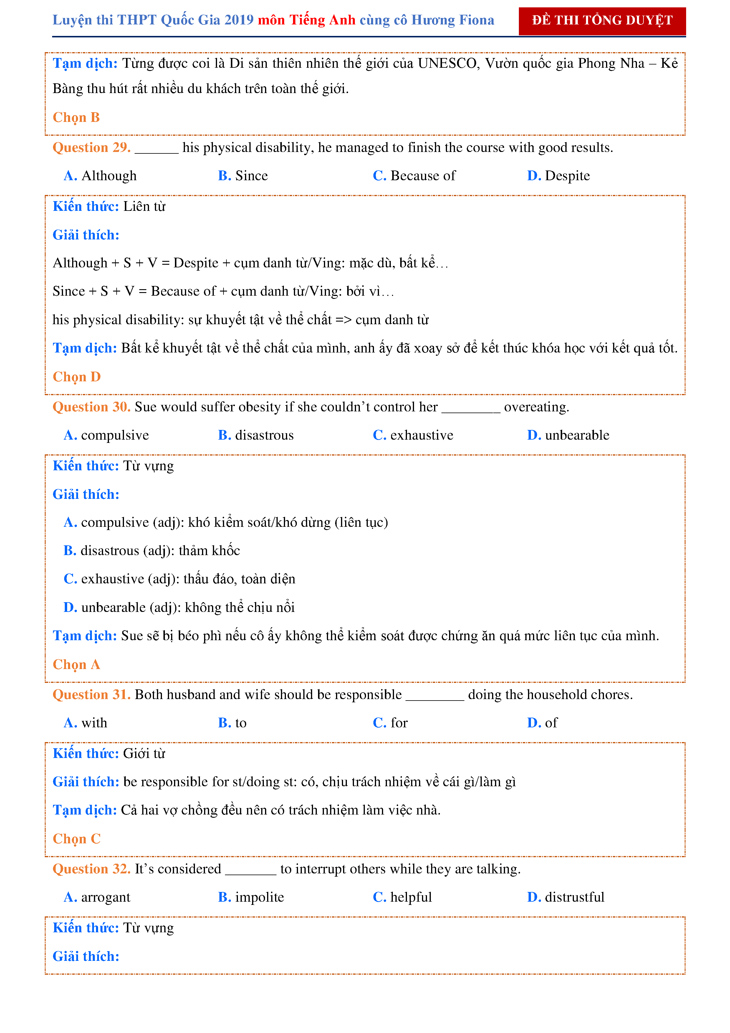 Tài liệu tổng duyệt kiến thức Tiếng Anh trước kỳ thi THPT QG 2019