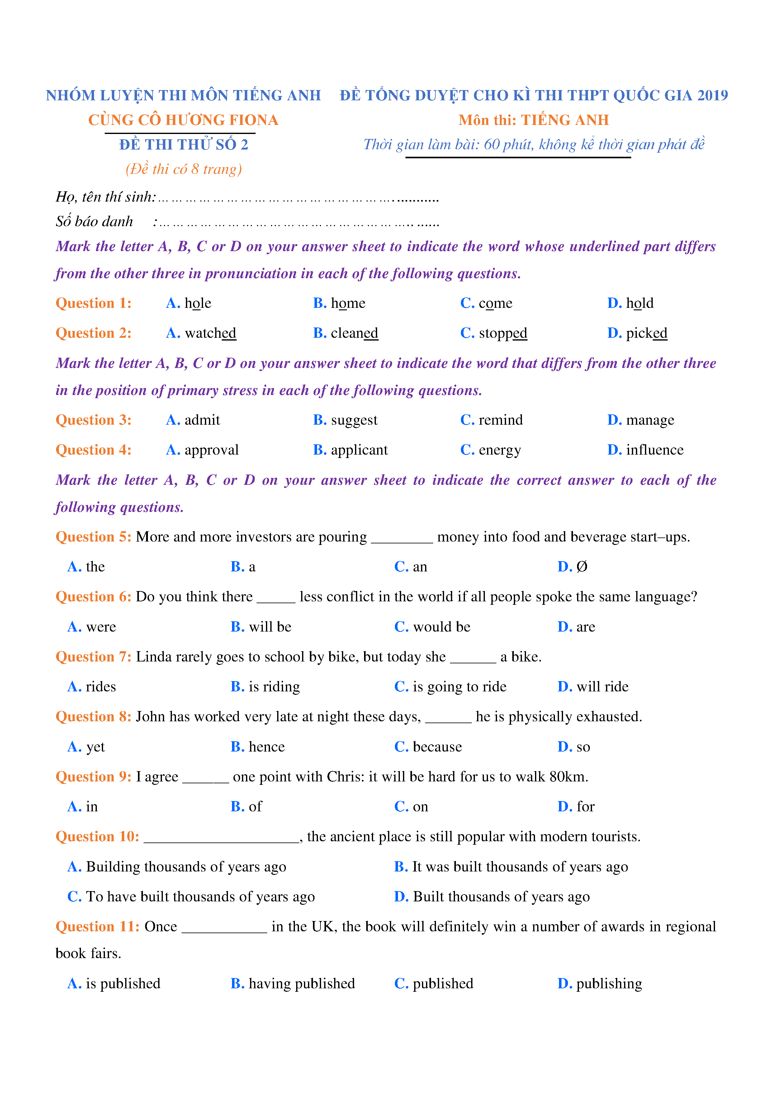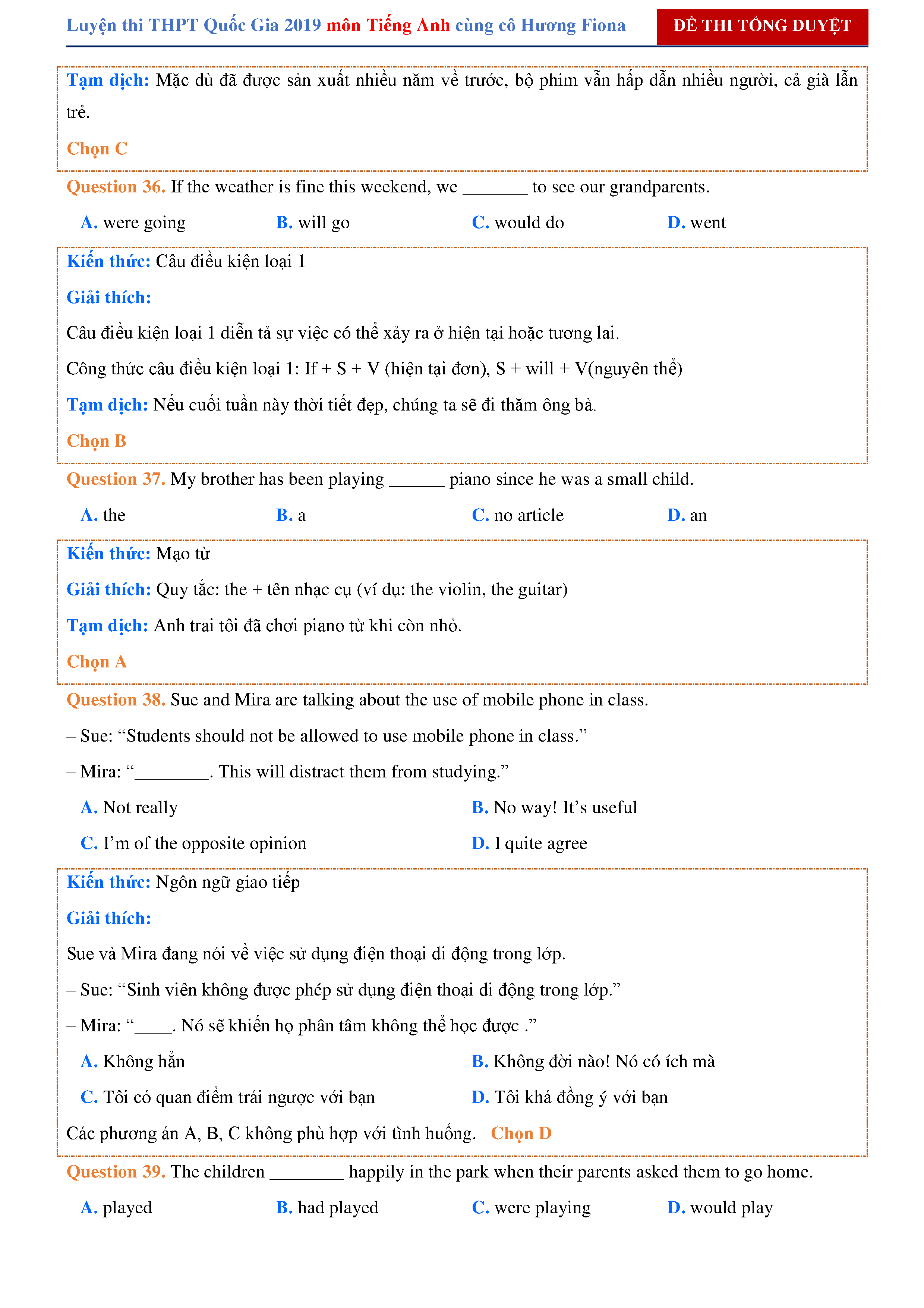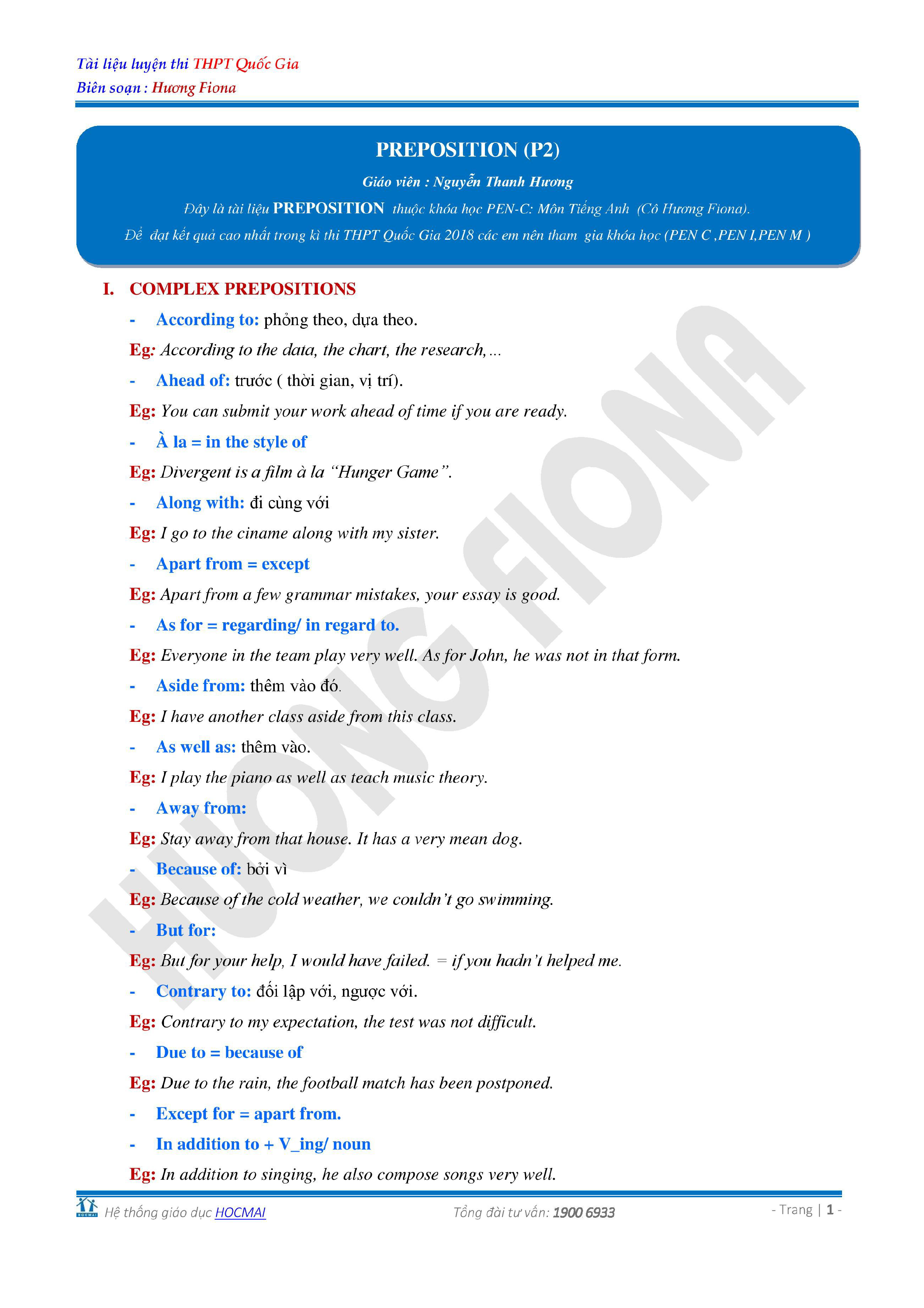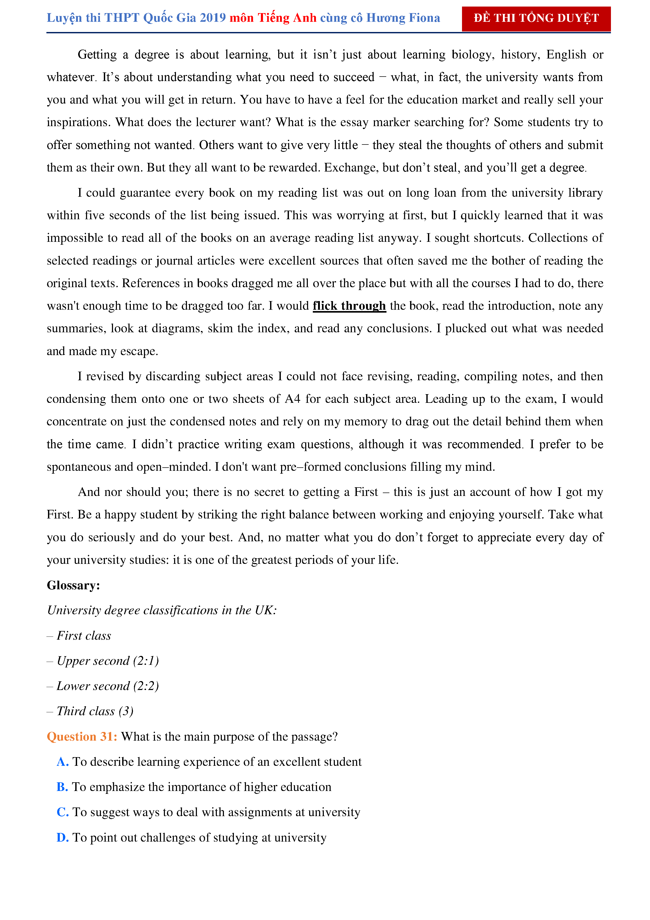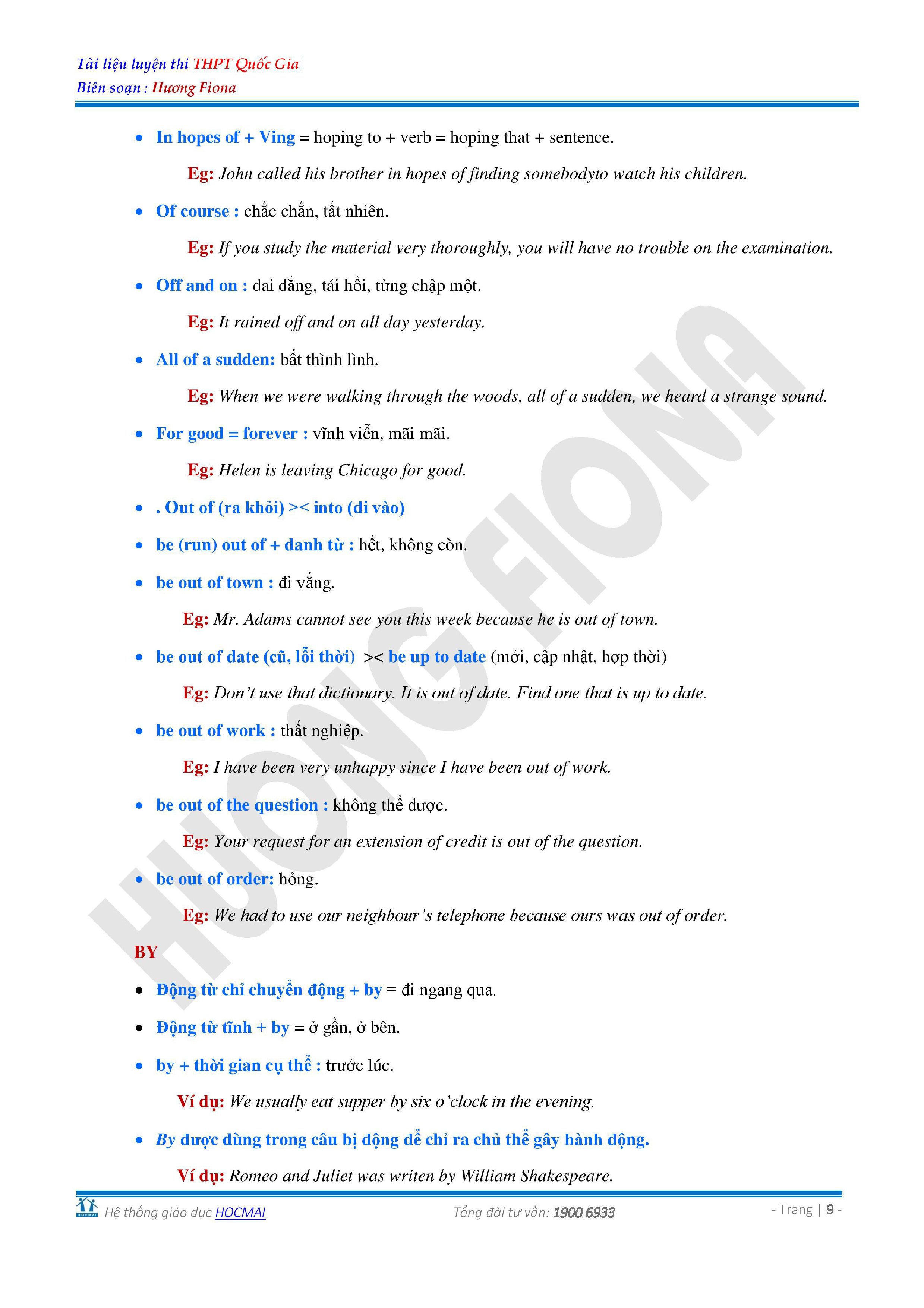 Tài liệu tổng duyệt kiến thức Tiếng Anh trước kỳ thi THPT QG 2019