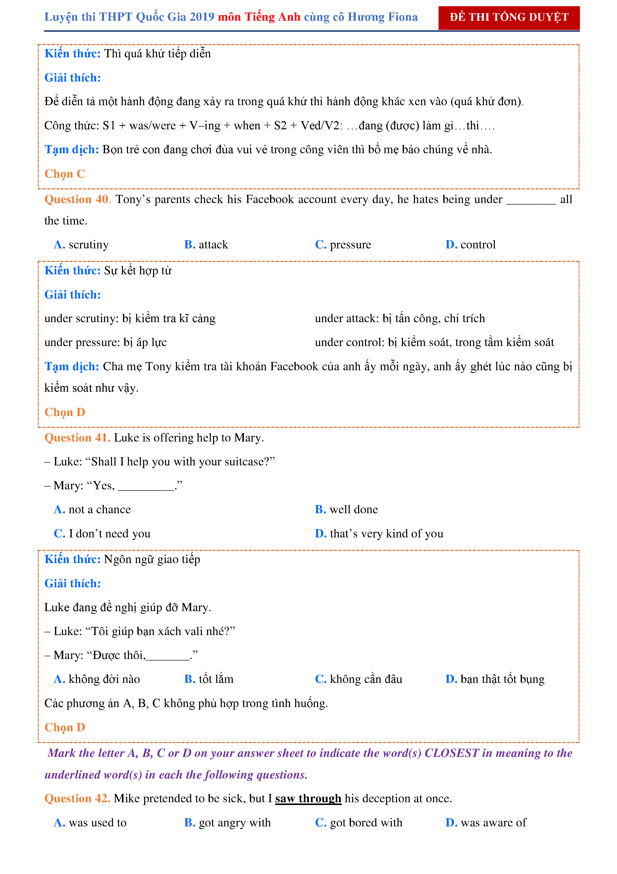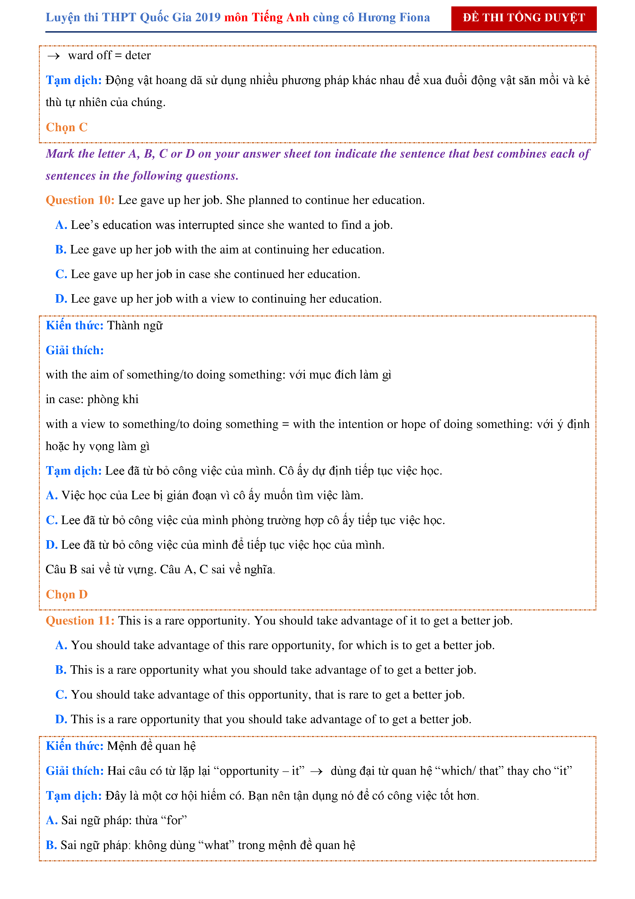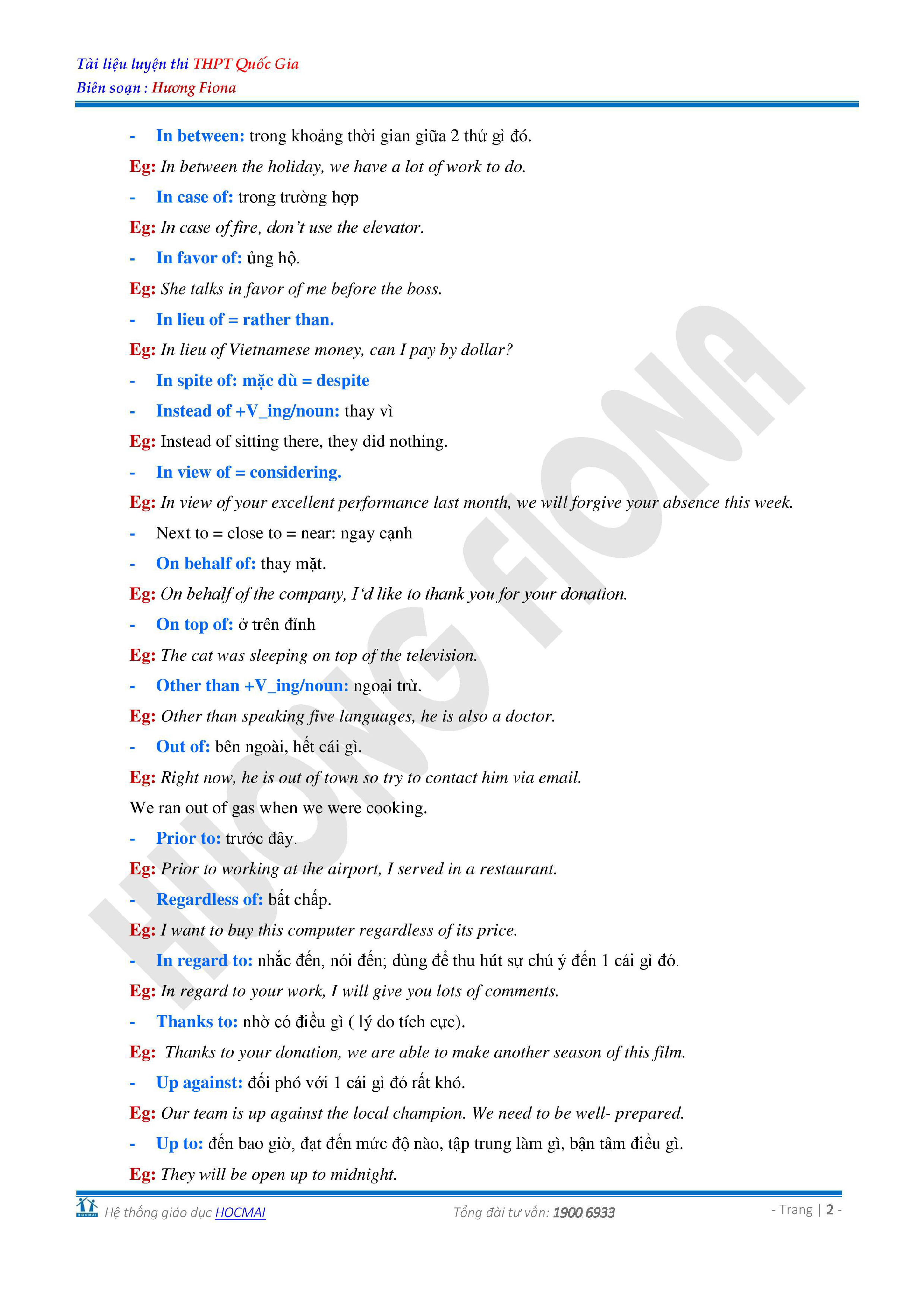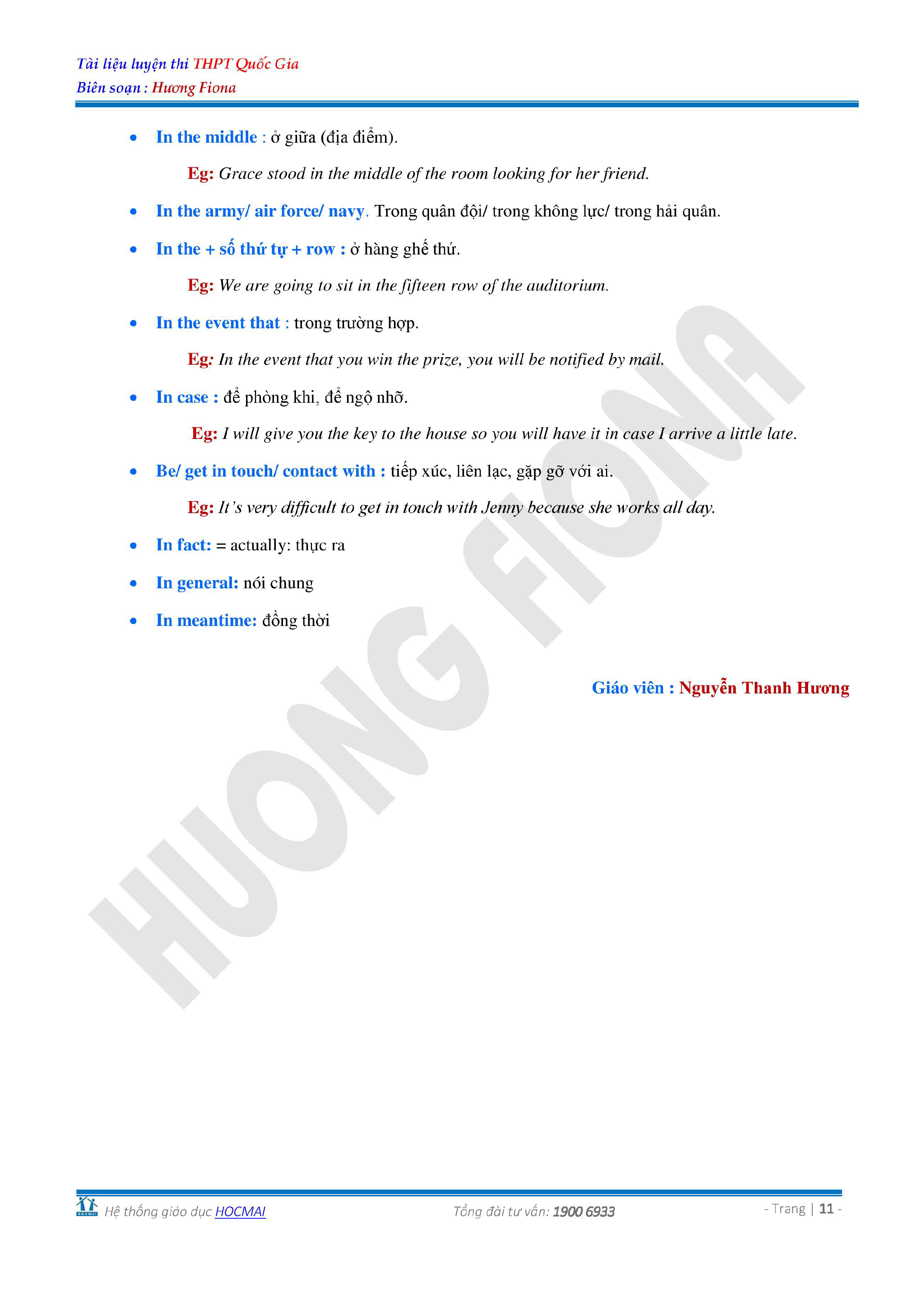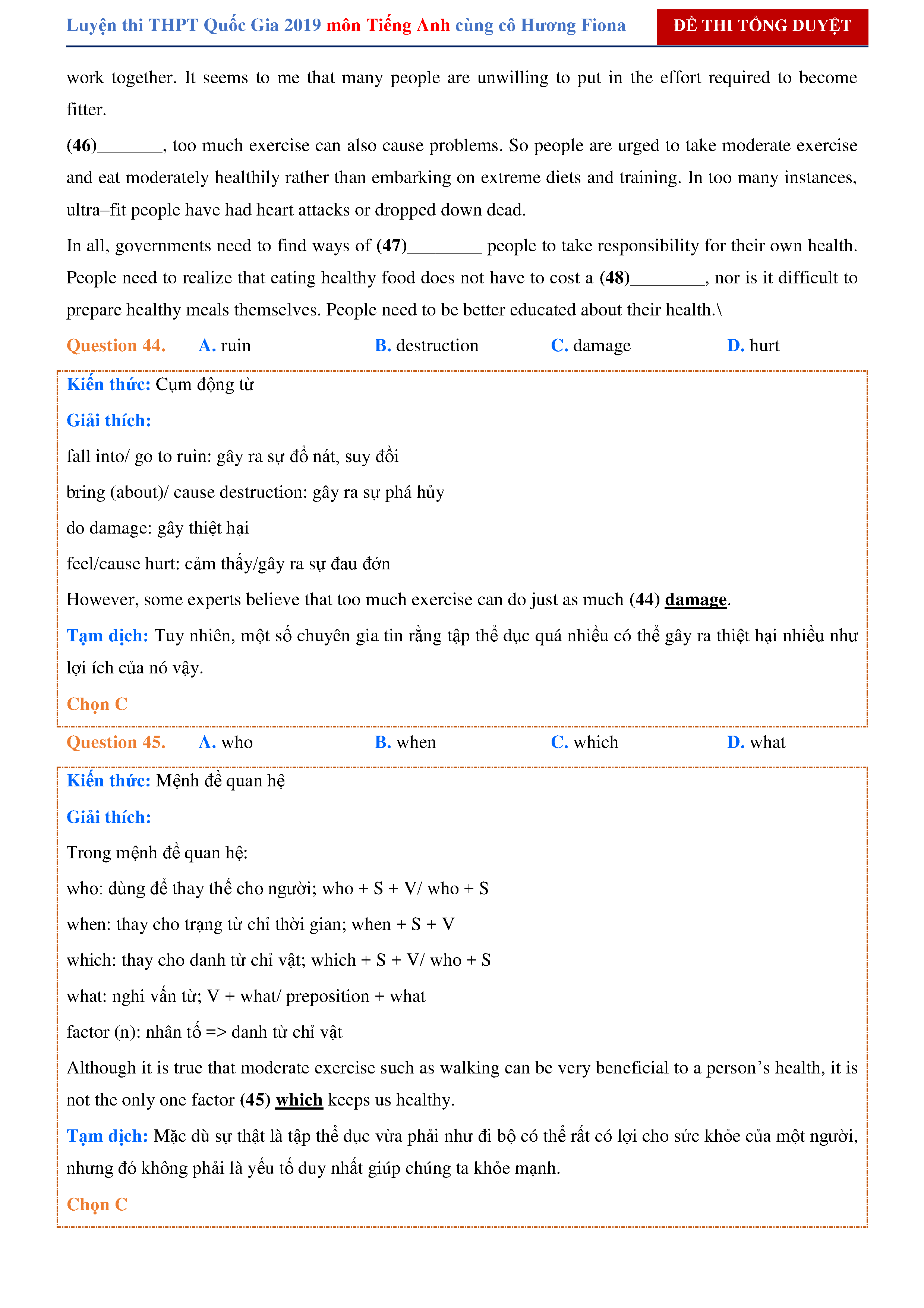 Tài liệu tổng duyệt kiến thức Tiếng Anh trước kỳ thi THPT QG 2019