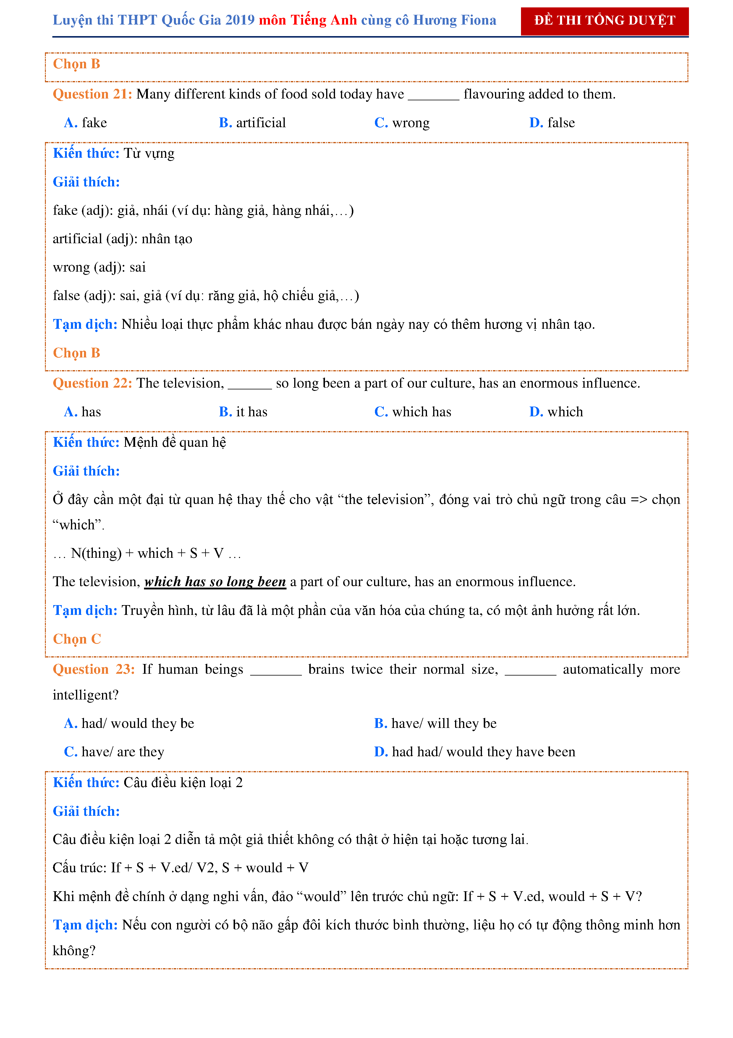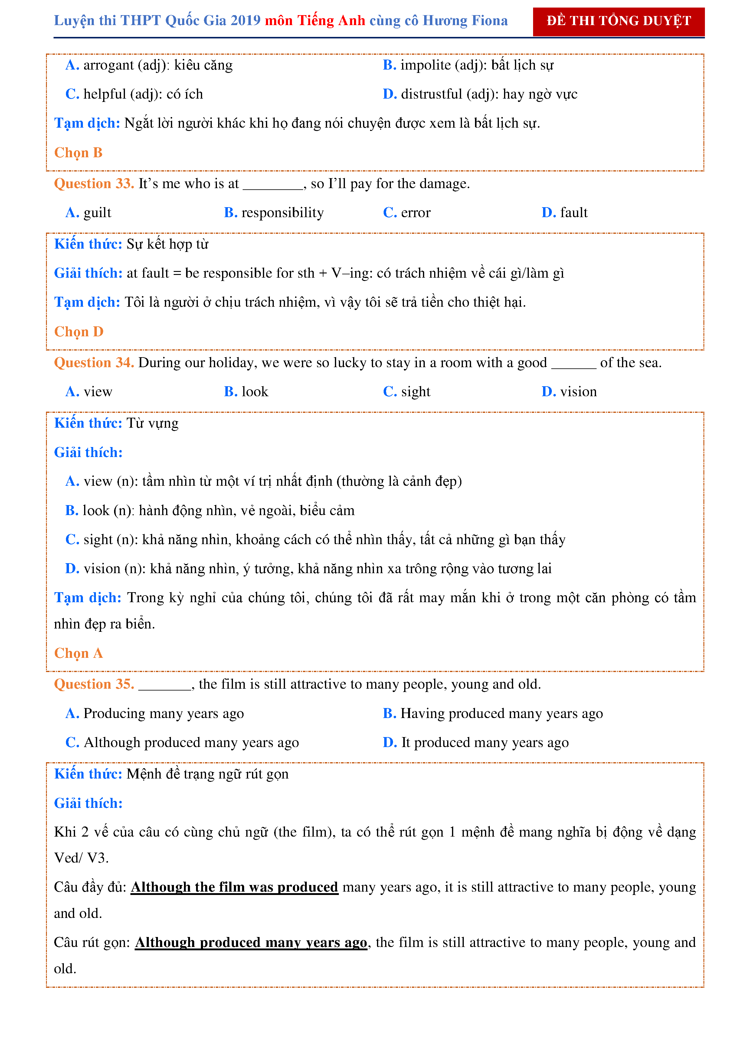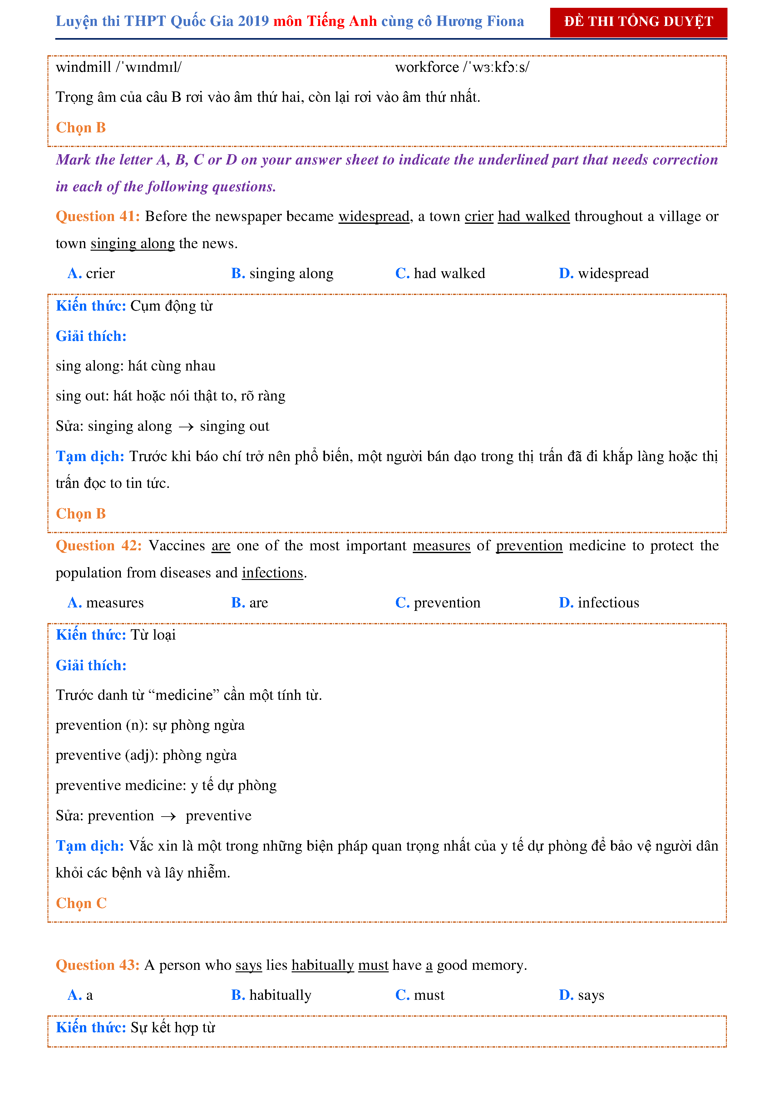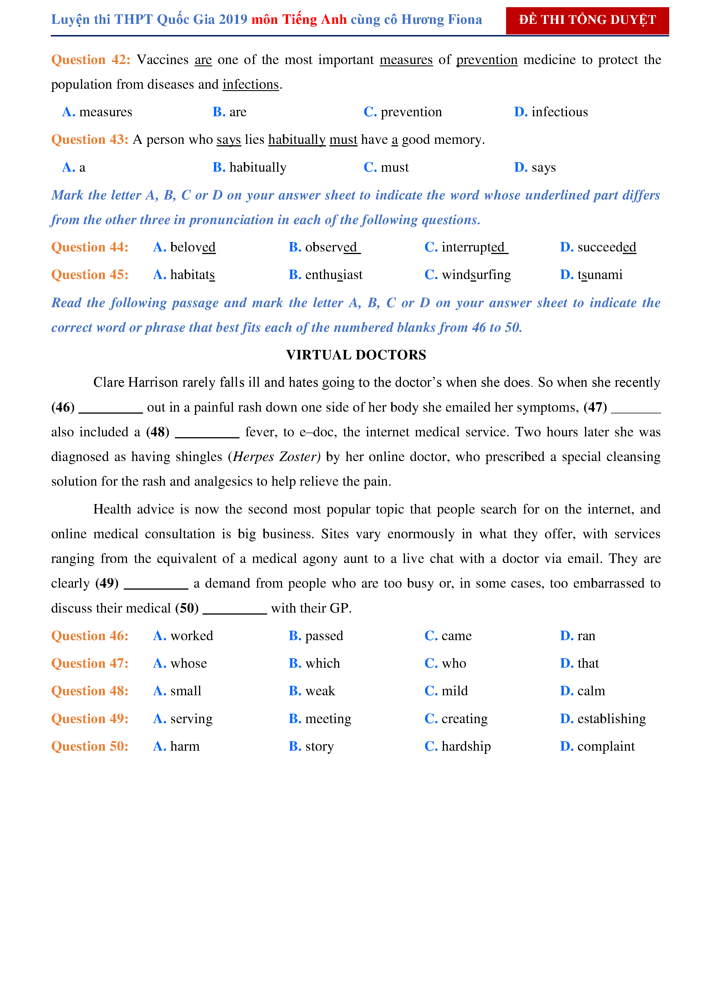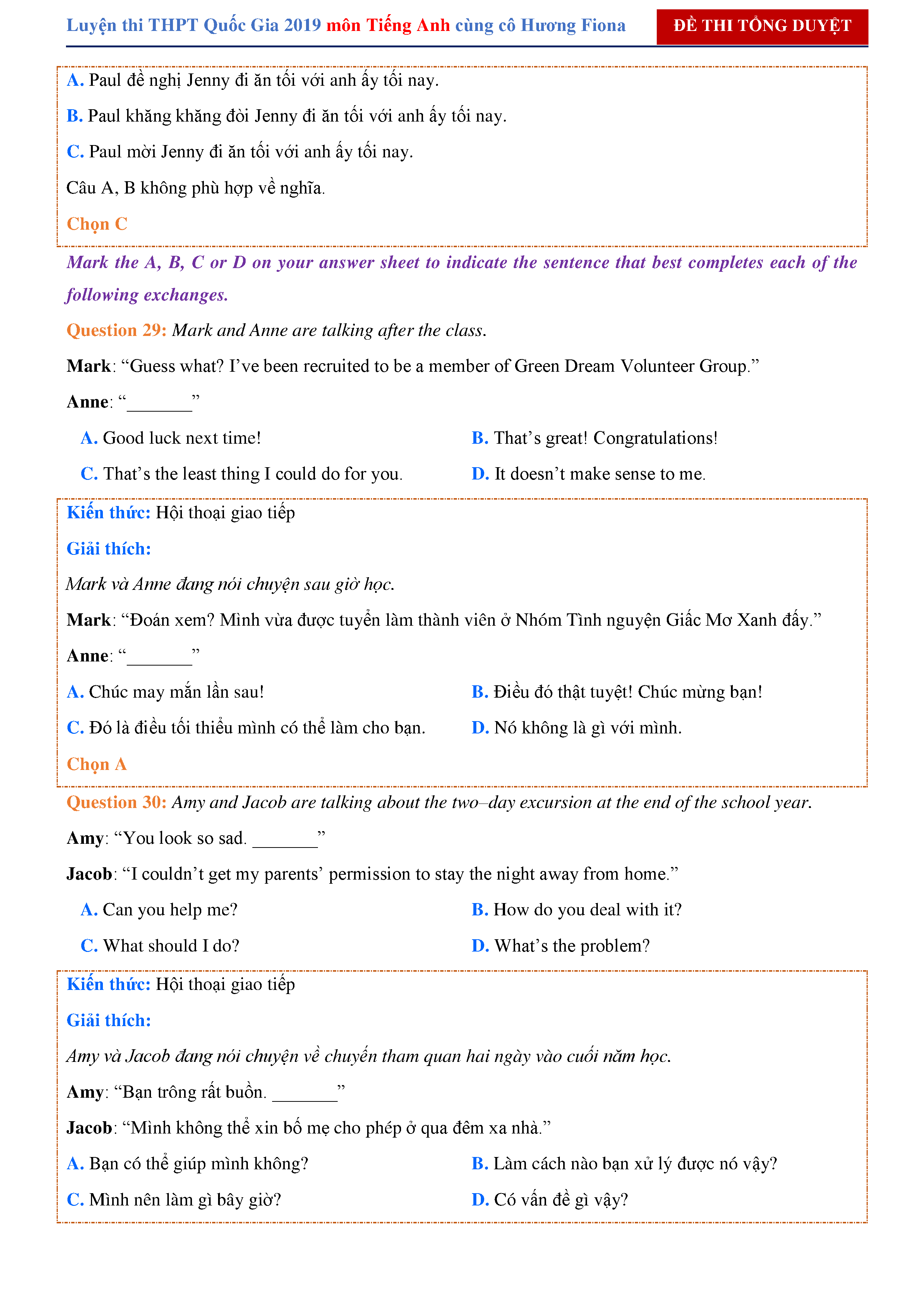 Tài liệu tổng duyệt kiến thức Tiếng Anh trước kỳ thi THPT QG 2019