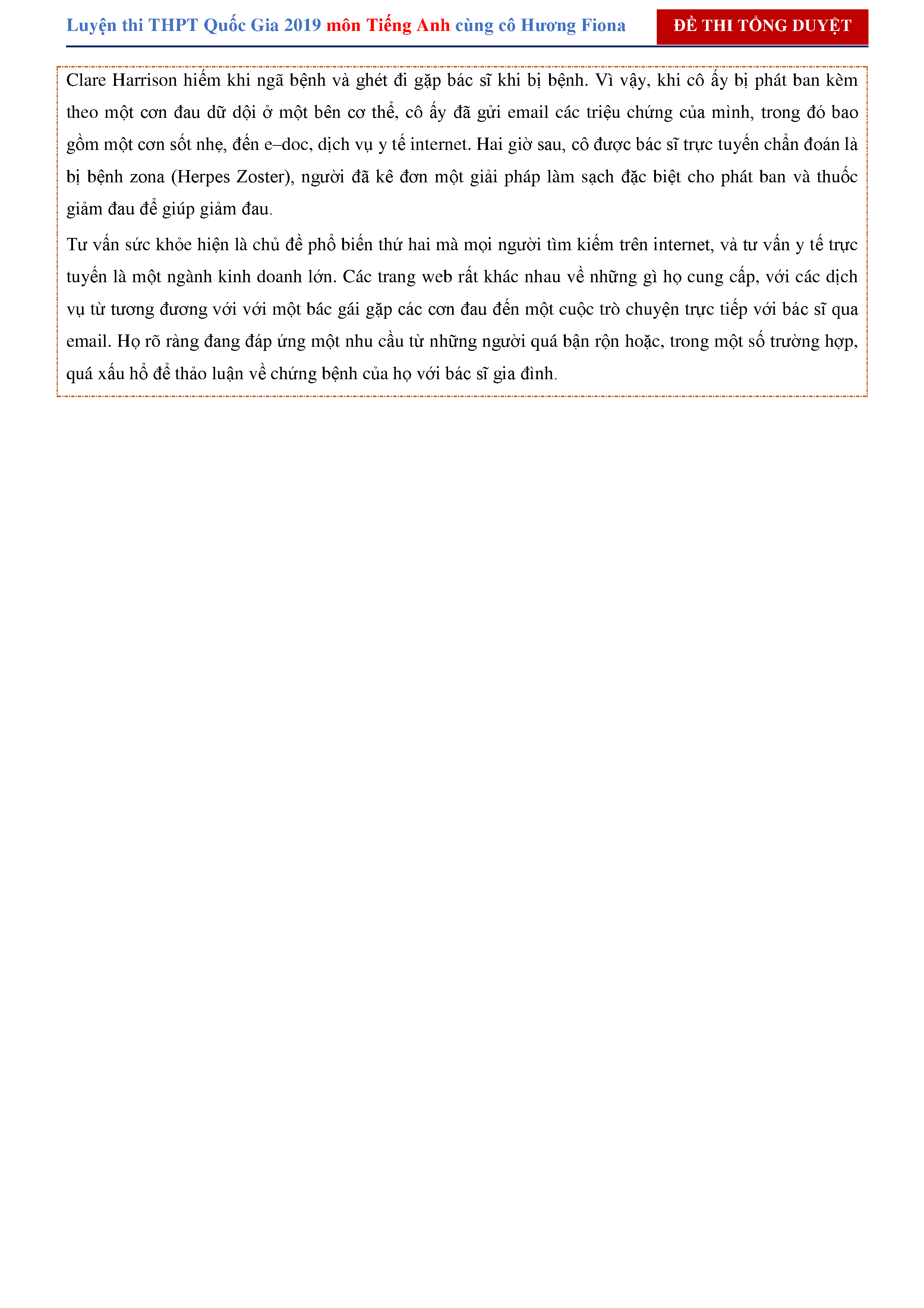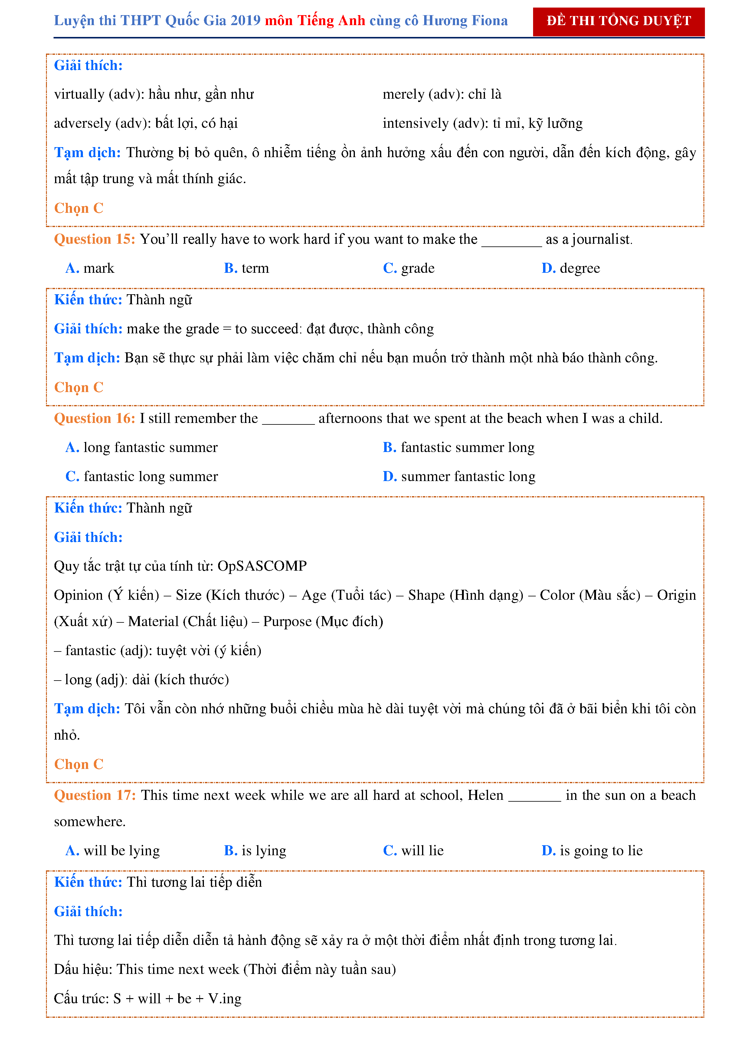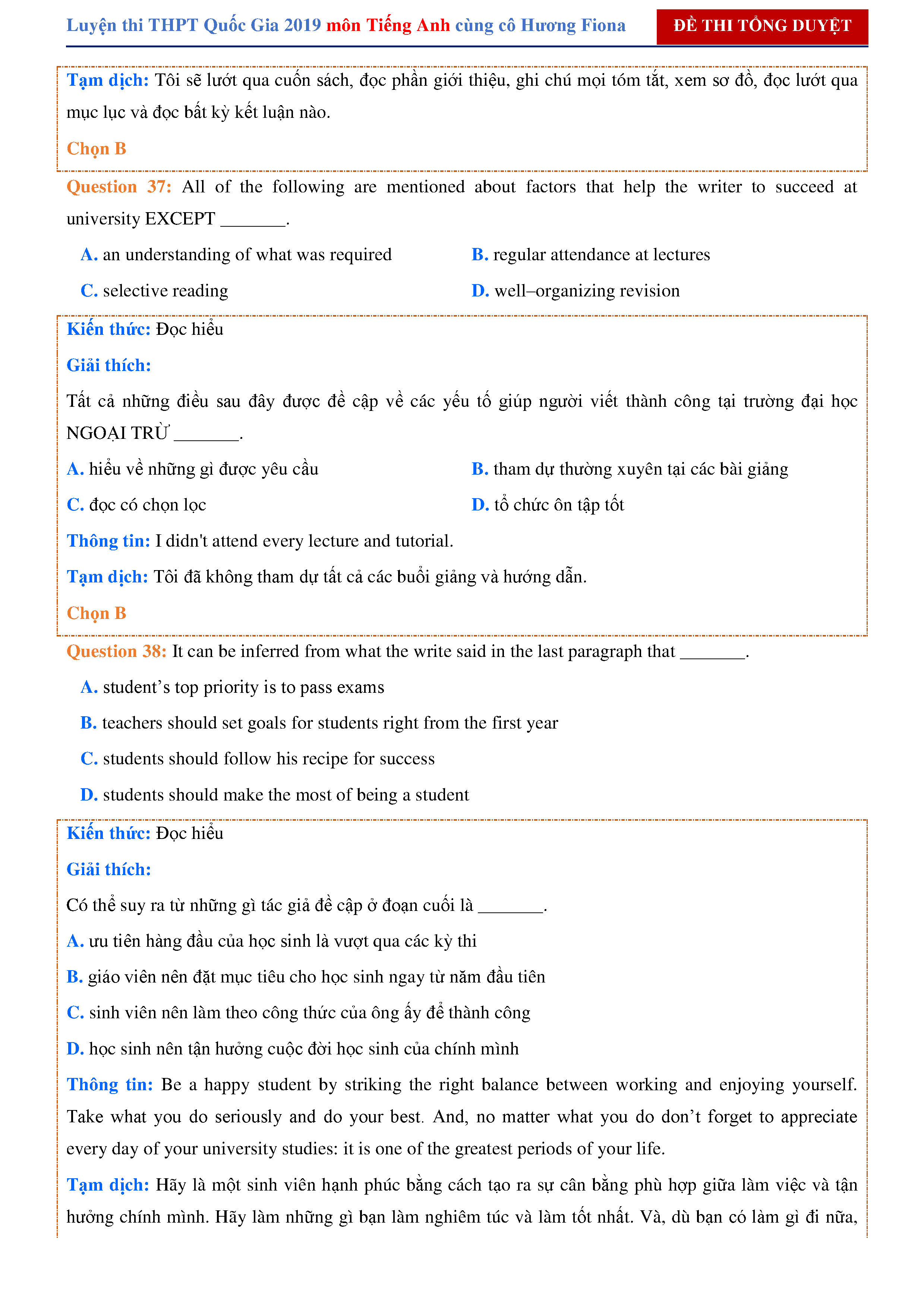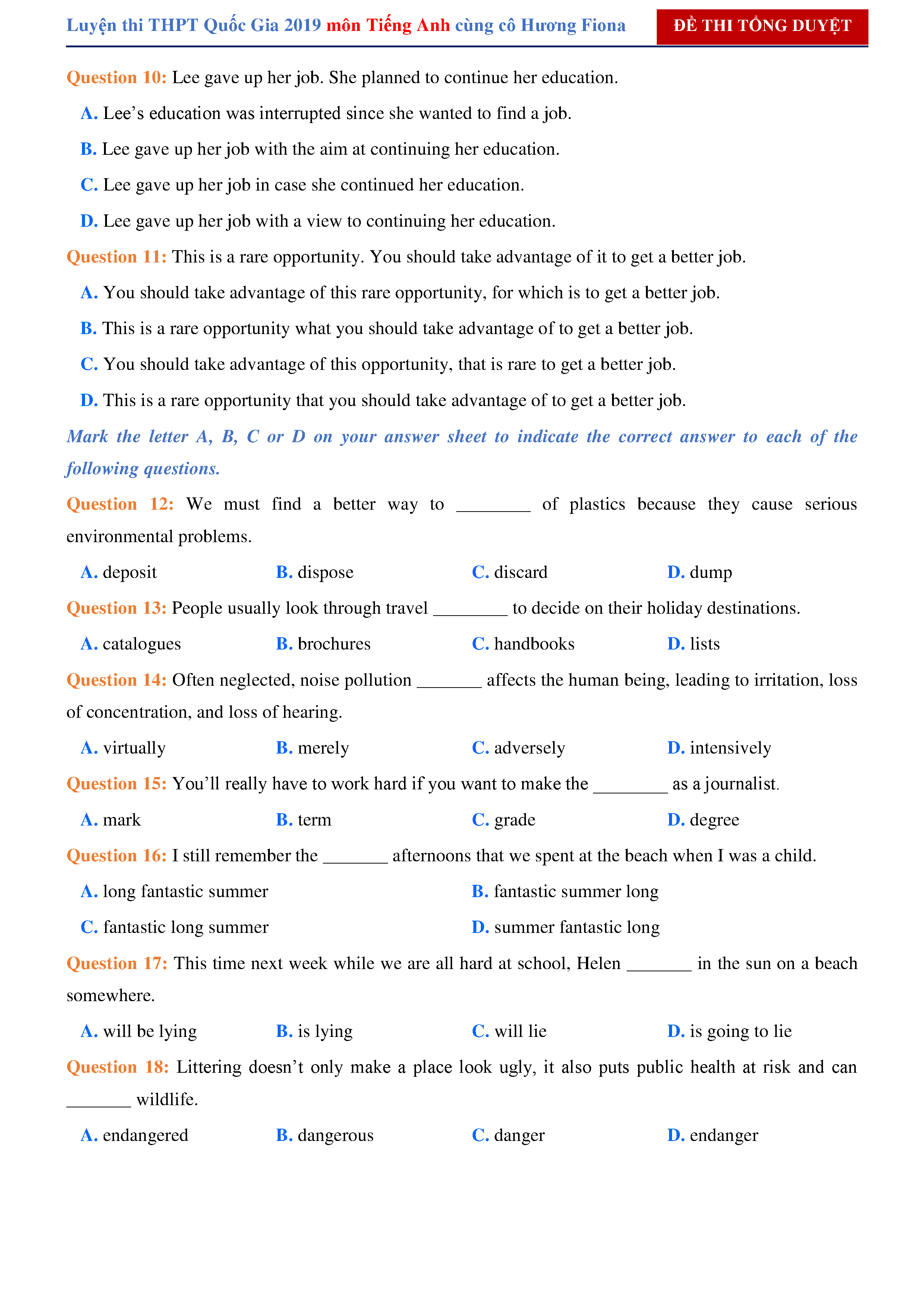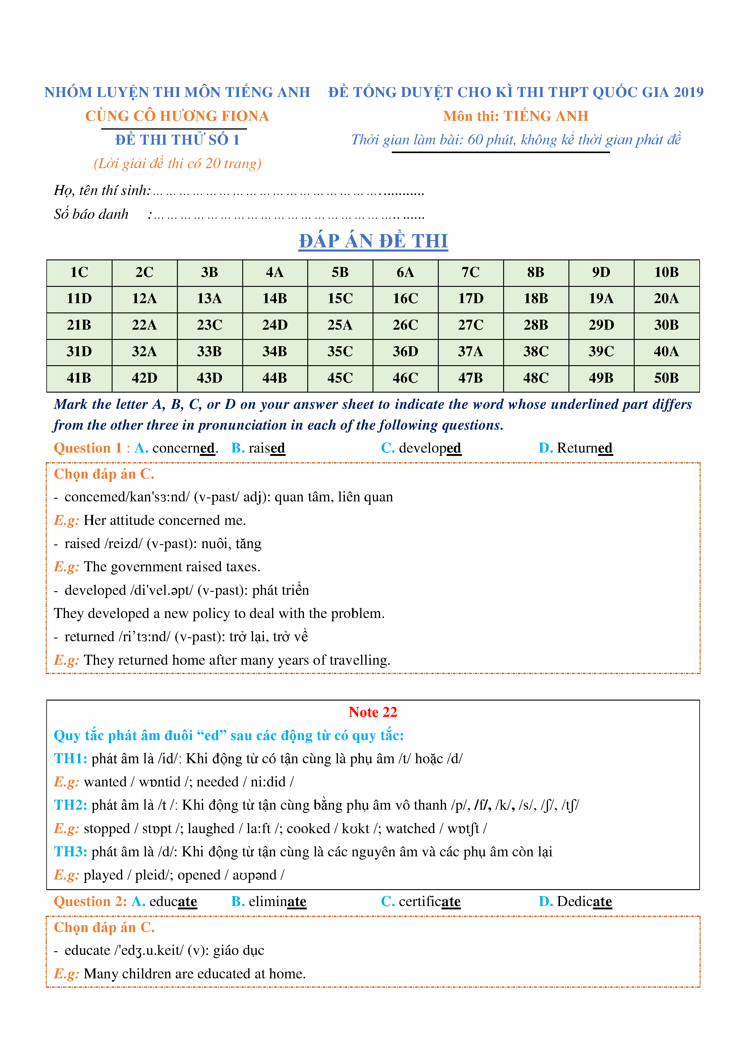 Tài liệu tổng duyệt kiến thức Tiếng Anh trước kỳ thi THPT QG 2019