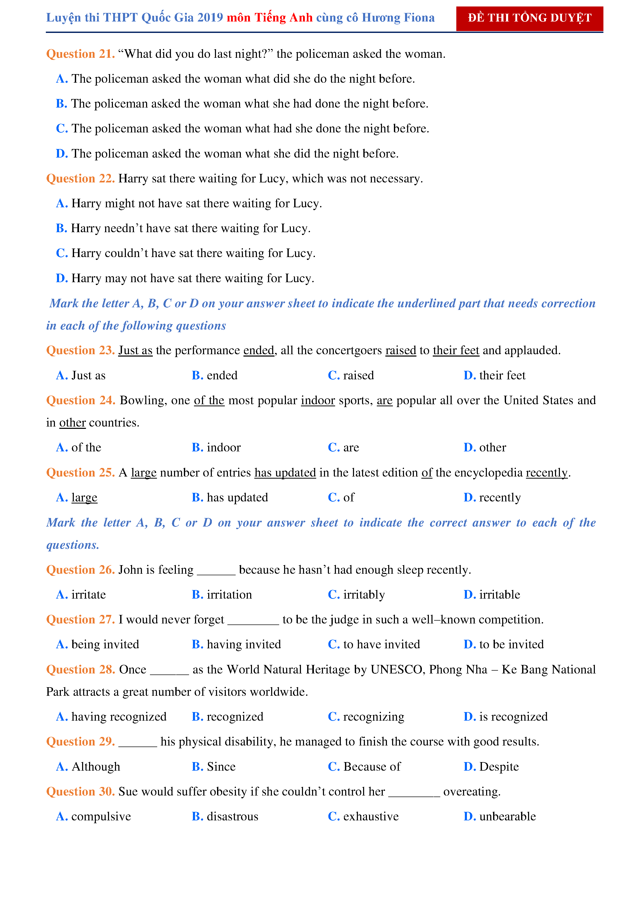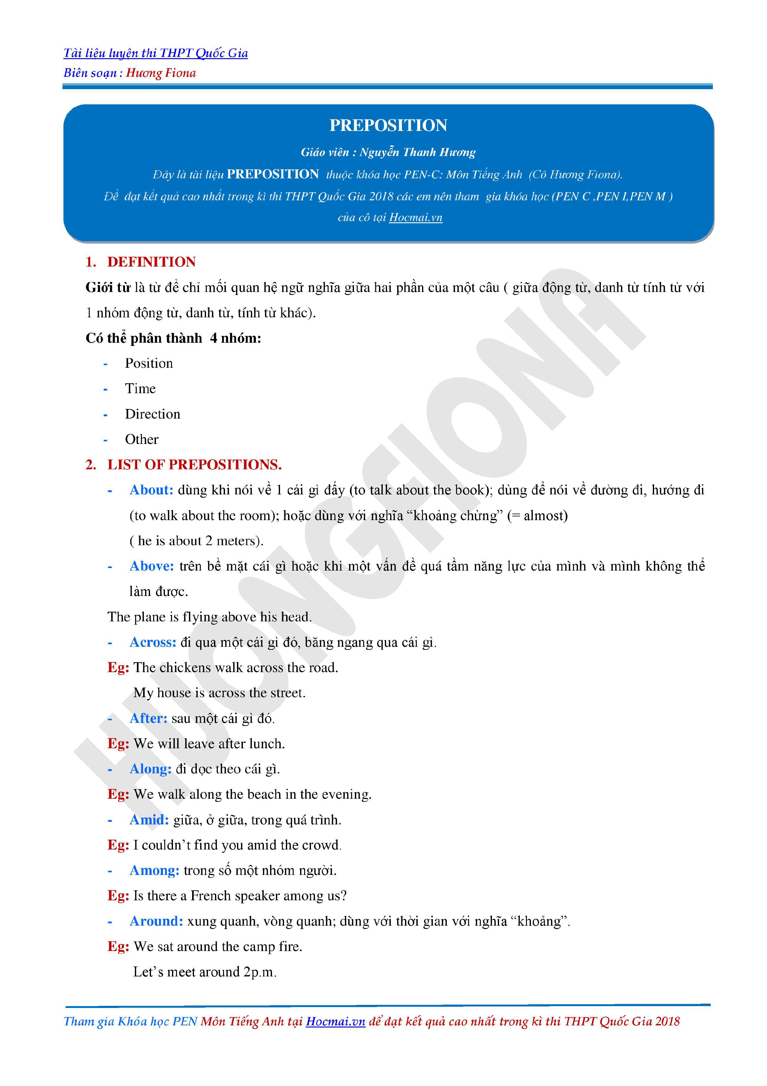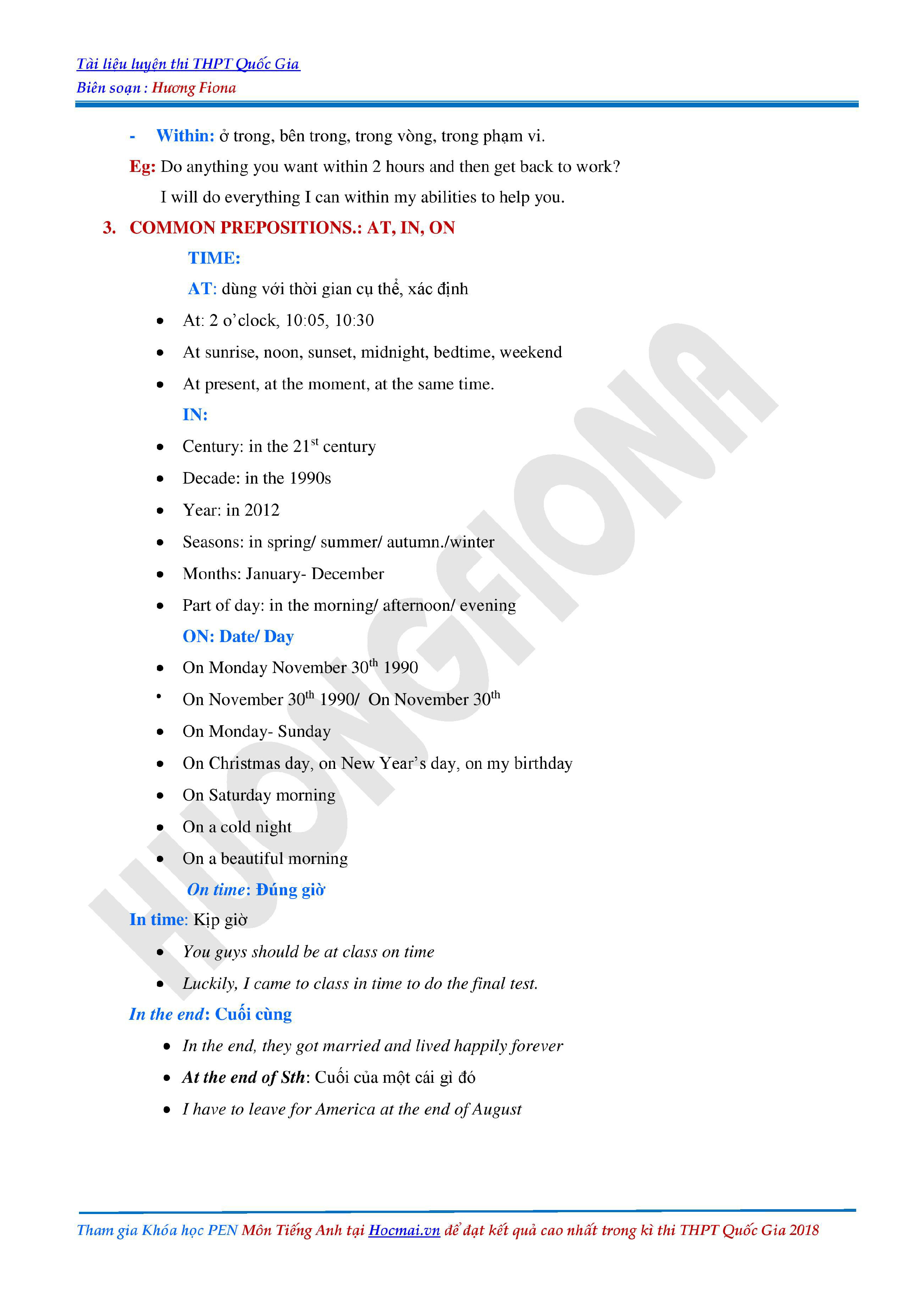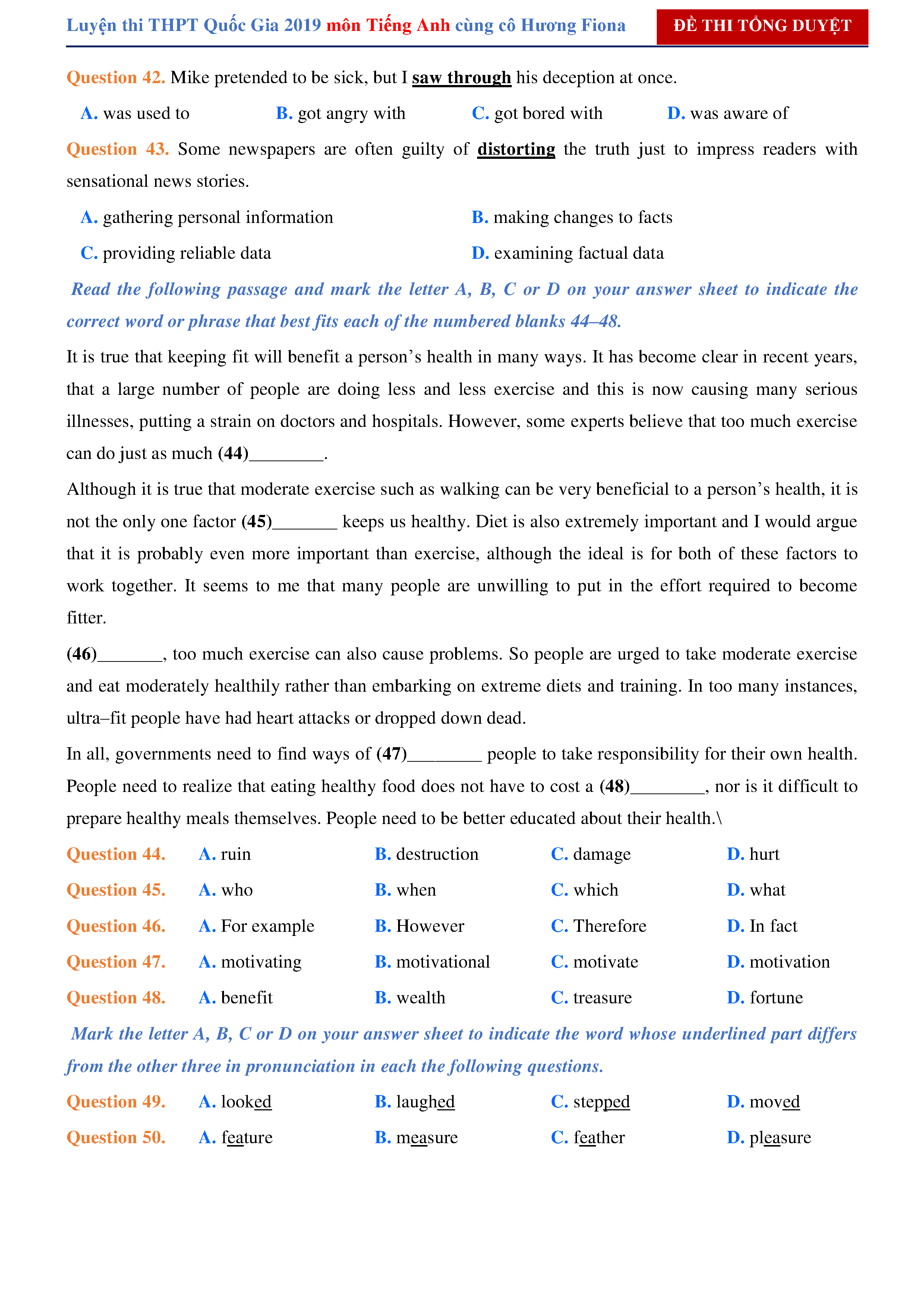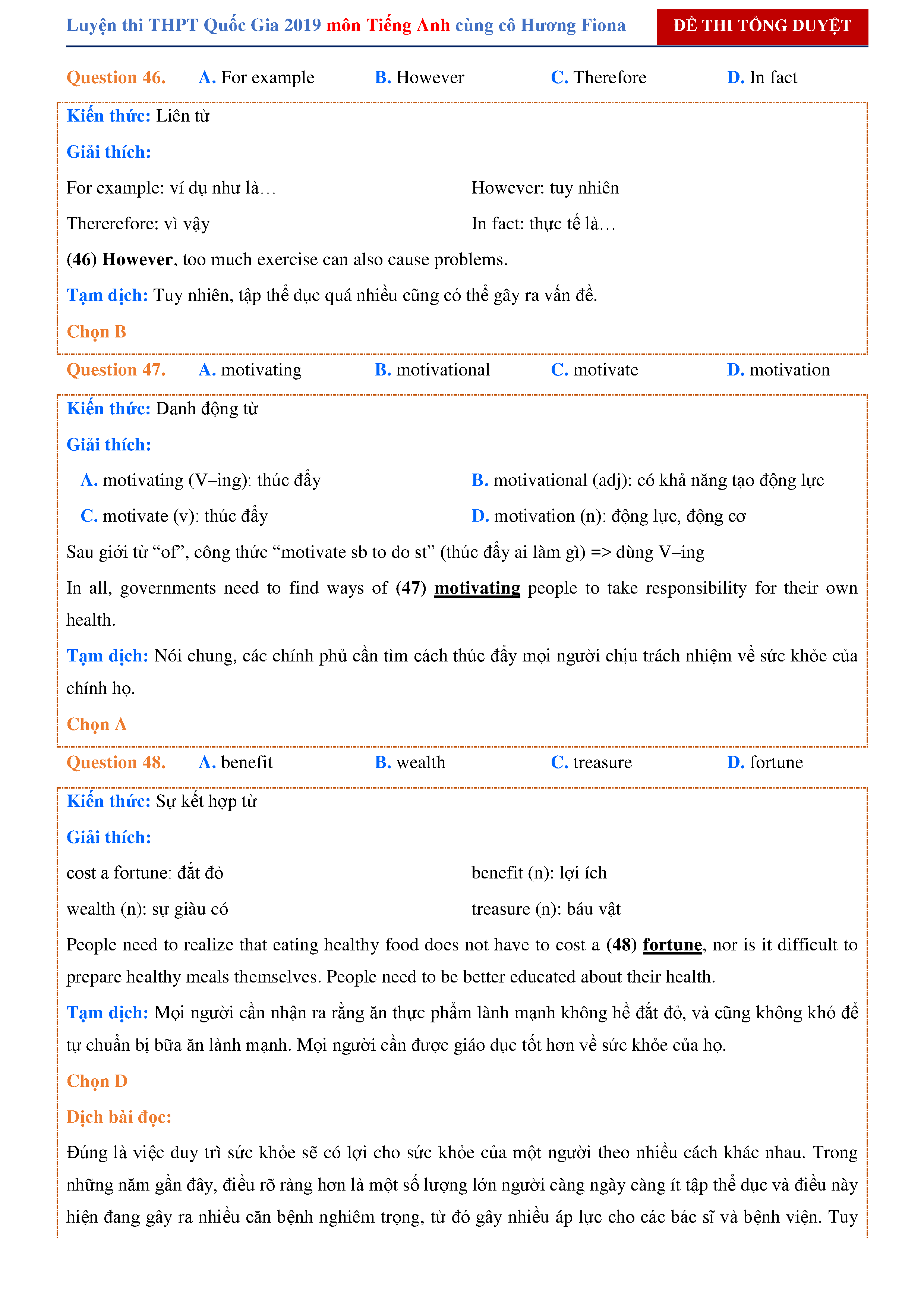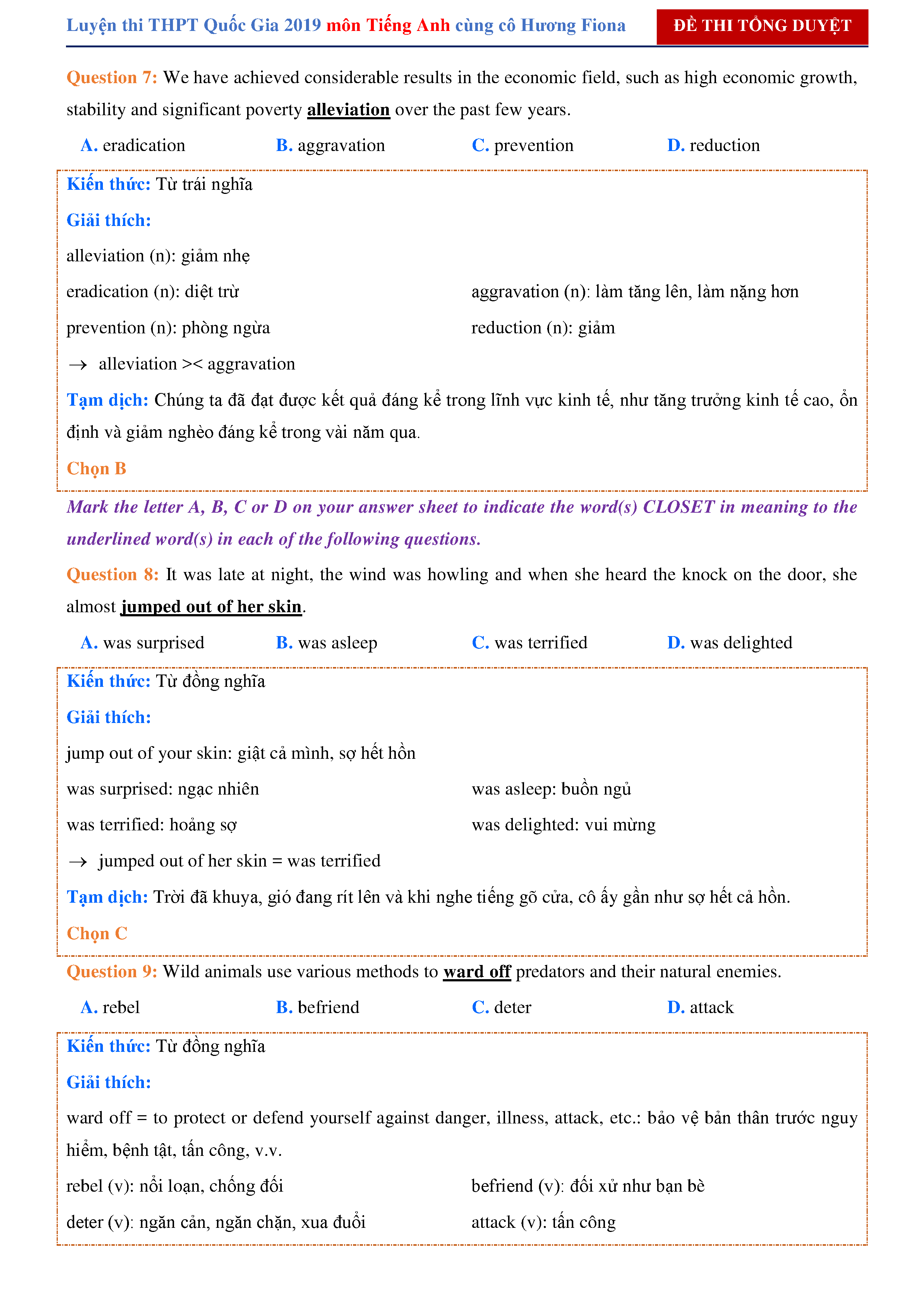 Tài liệu tổng duyệt kiến thức Tiếng Anh trước kỳ thi THPT QG 2019
