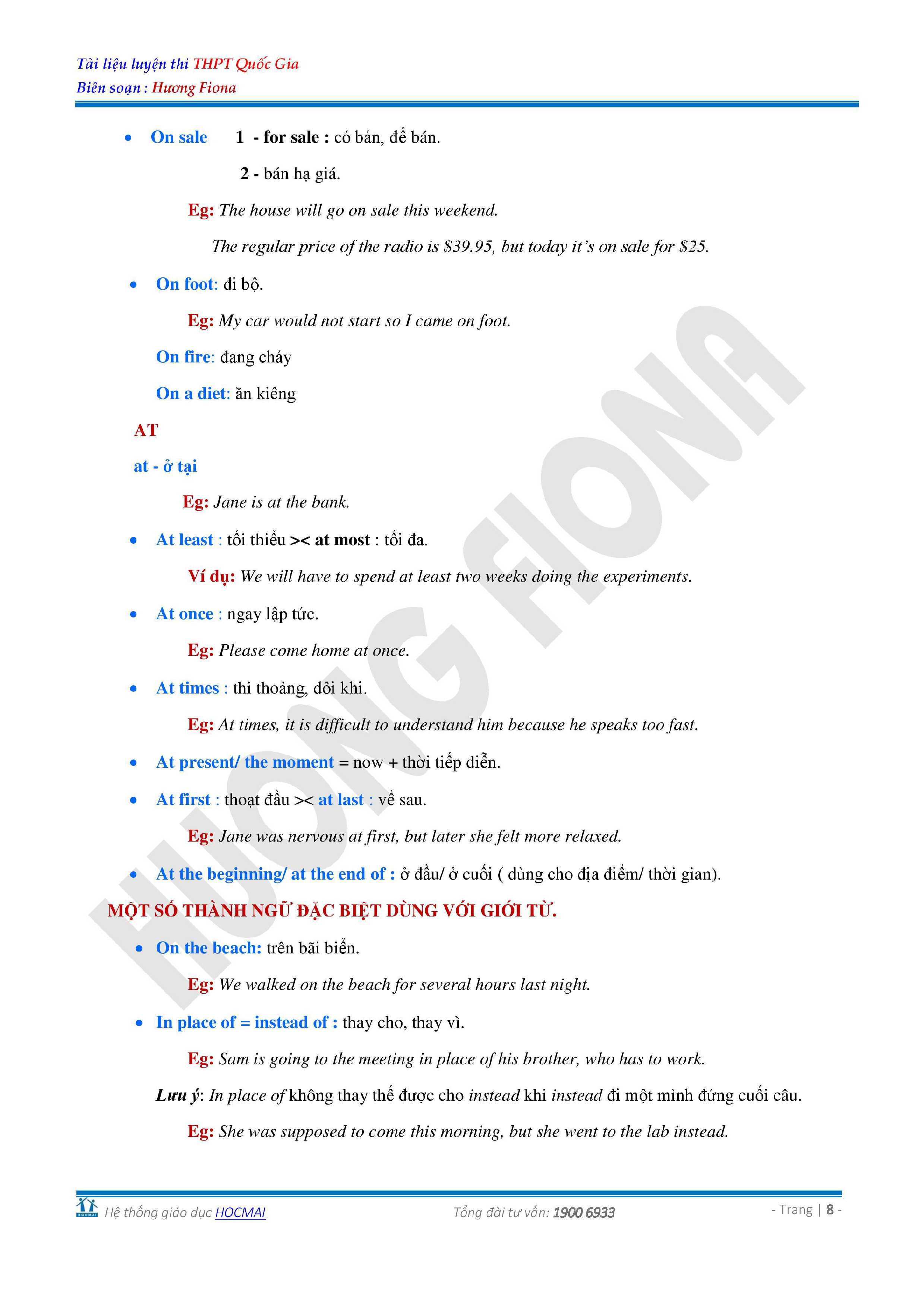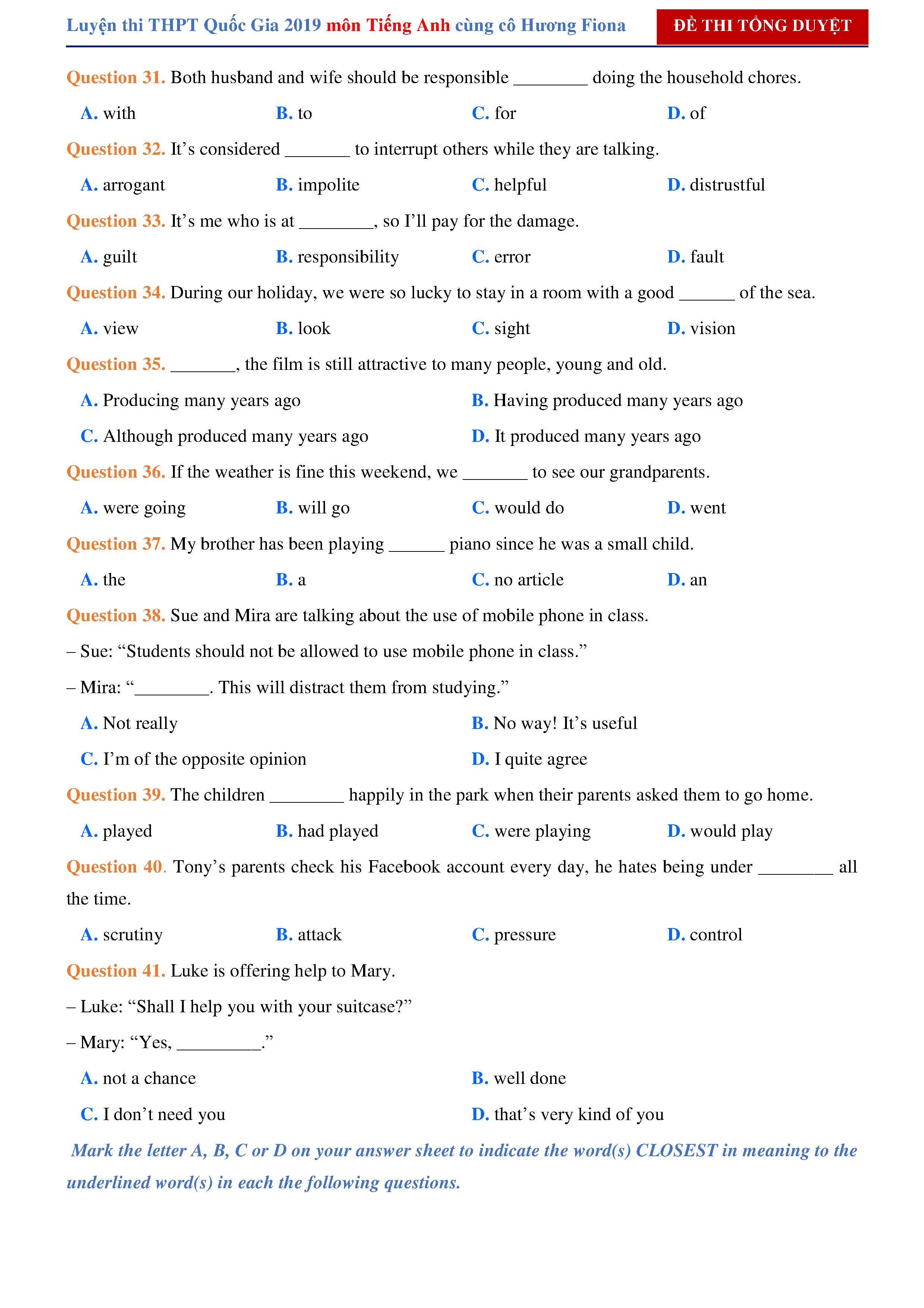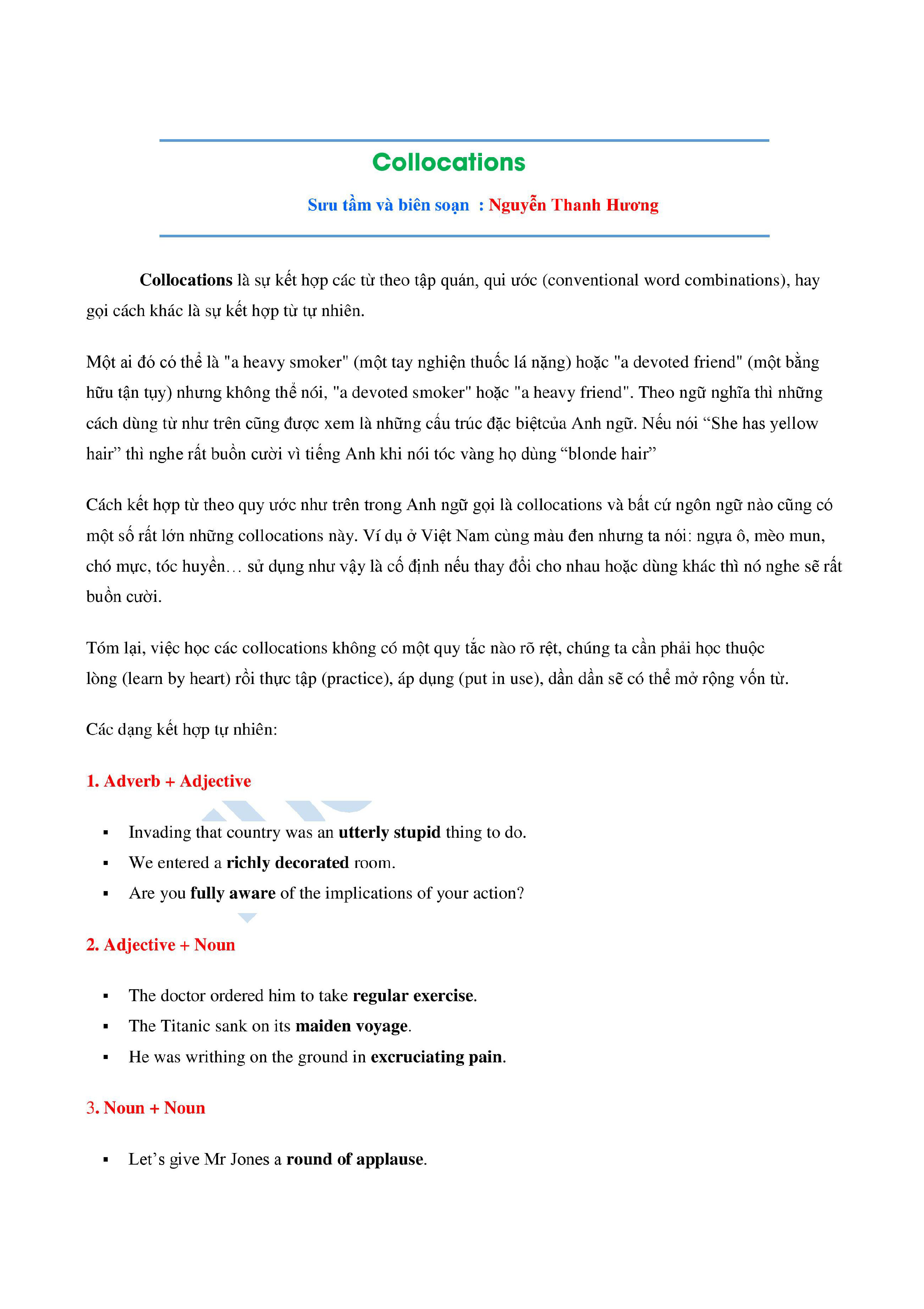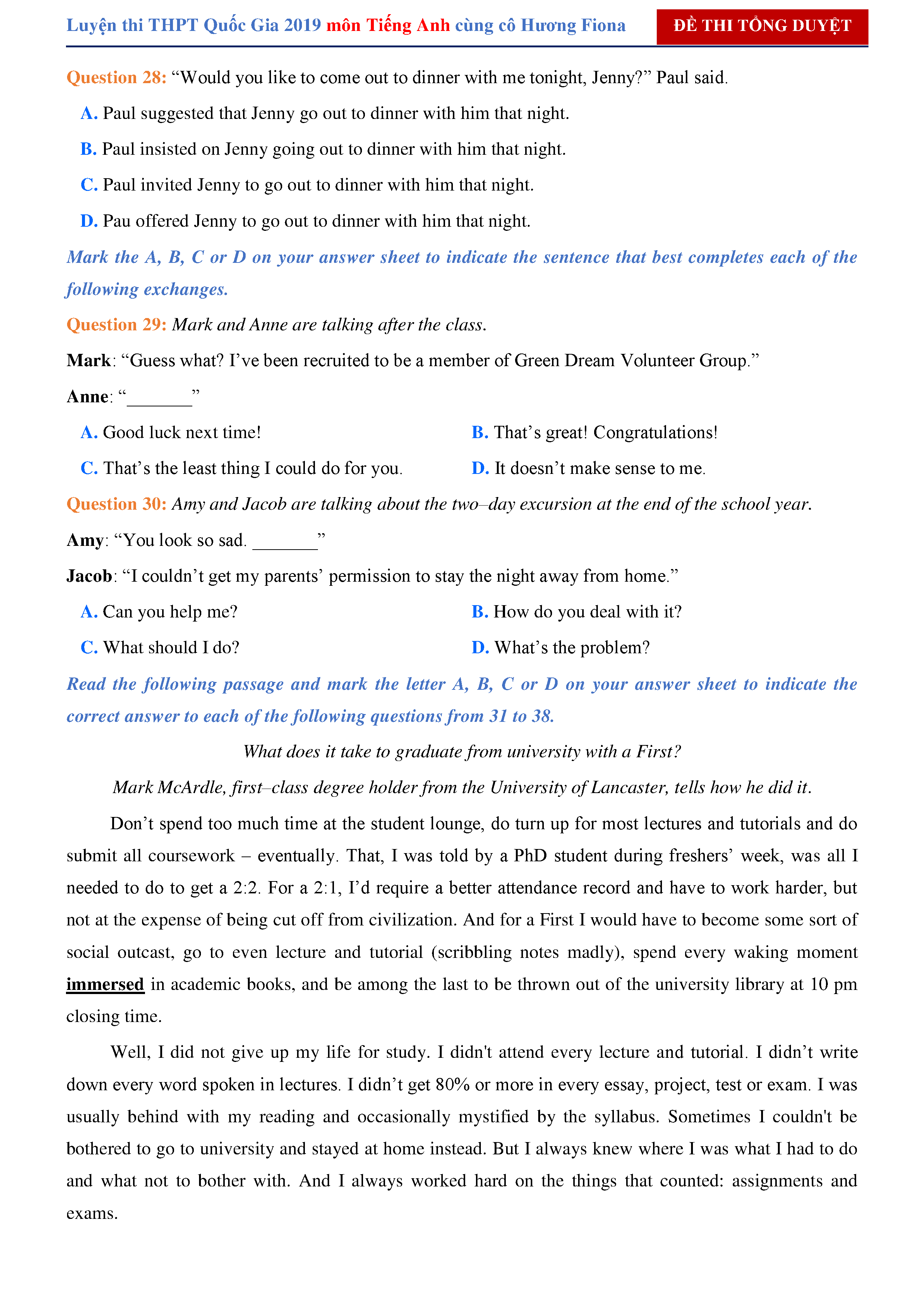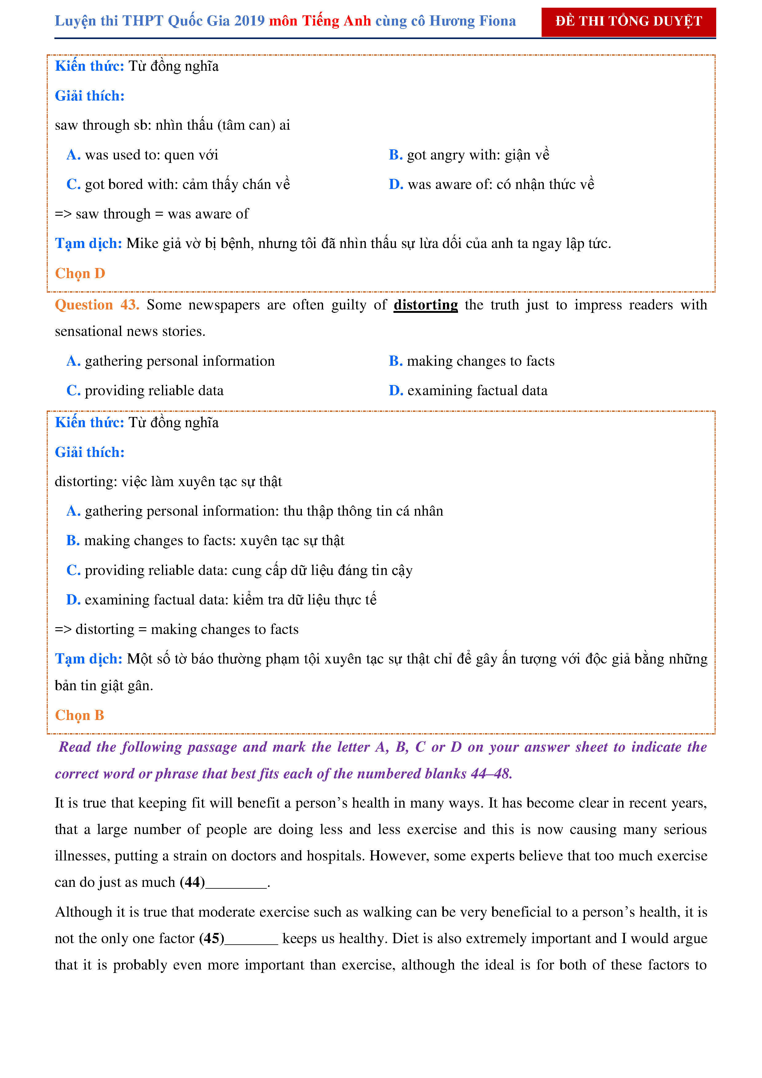 Tài liệu tổng duyệt kiến thức Tiếng Anh trước kỳ thi THPT QG 2019