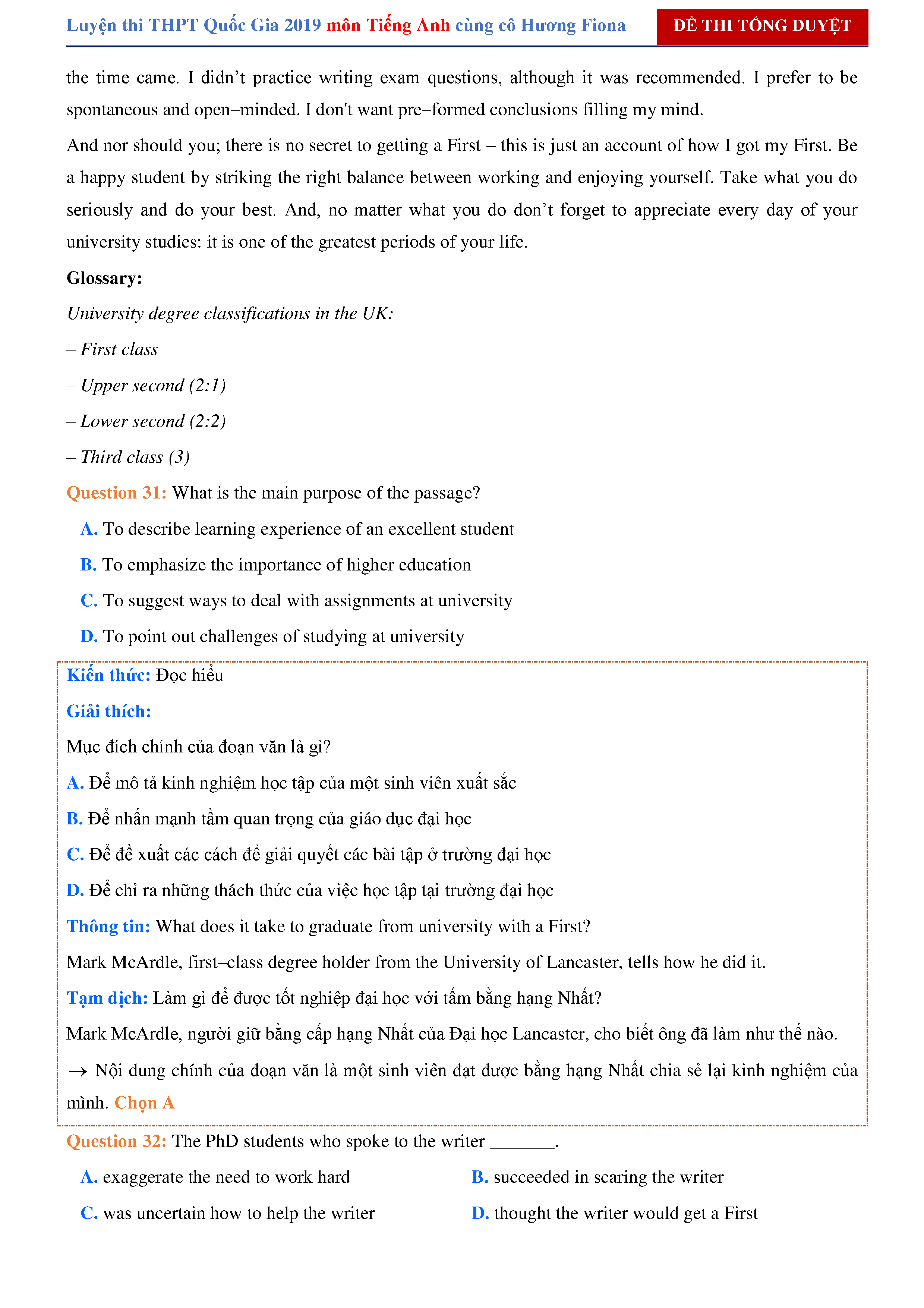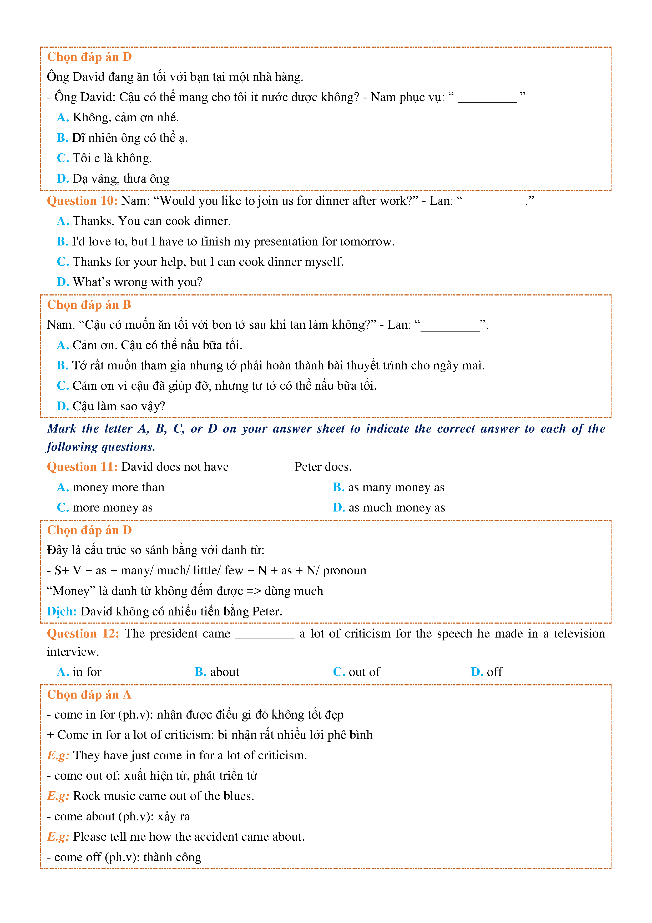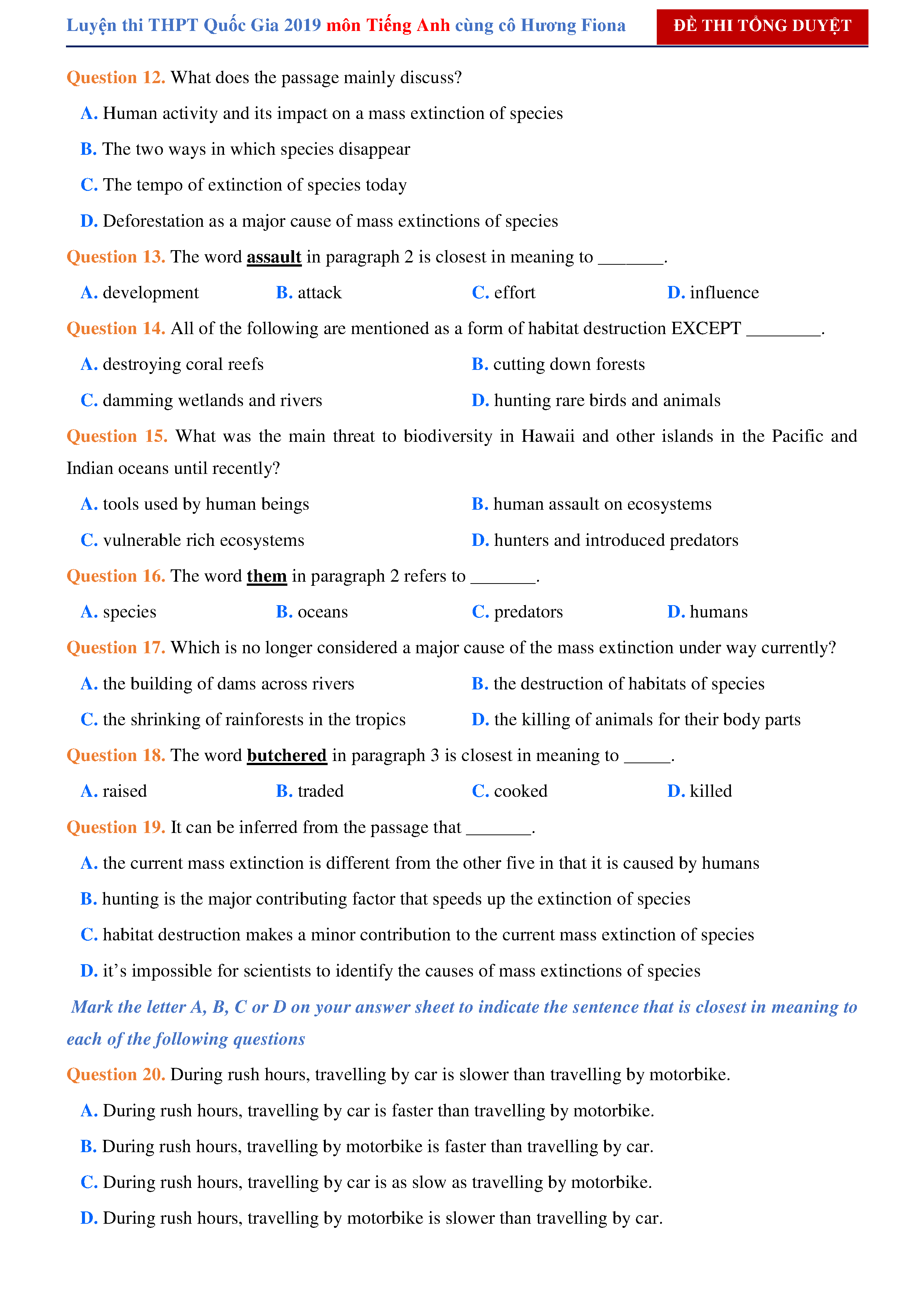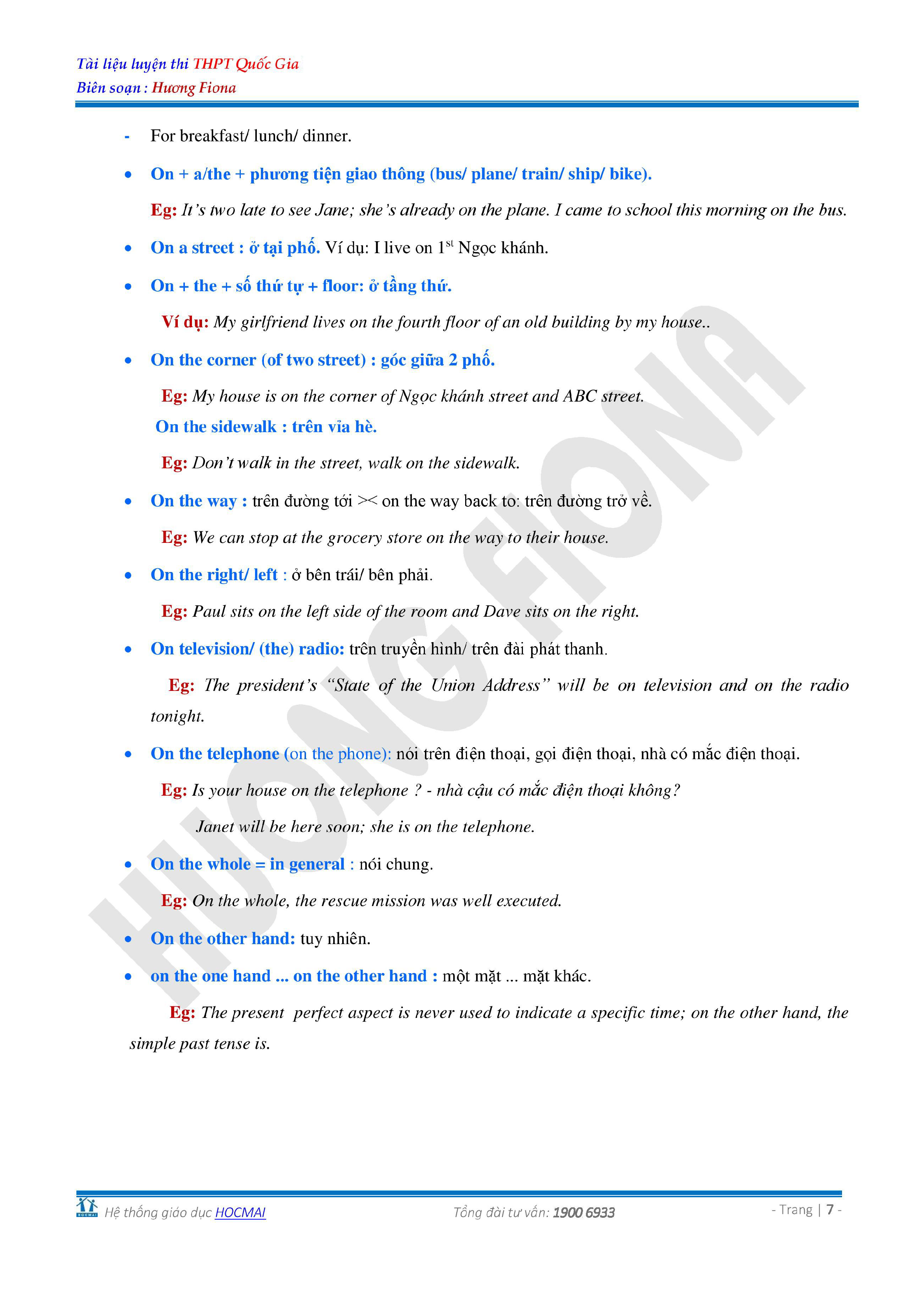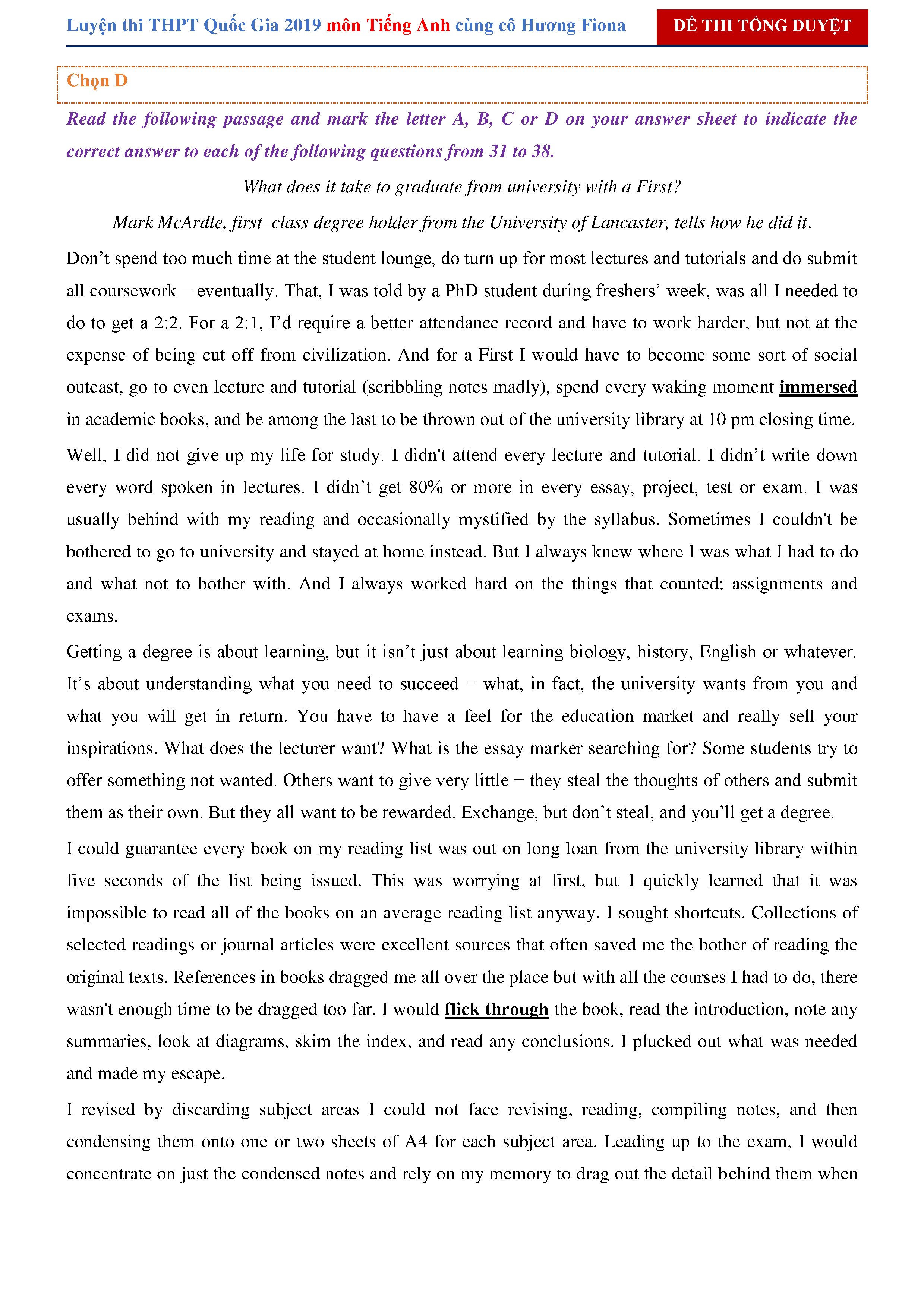 Tài liệu tổng duyệt kiến thức Tiếng Anh trước kỳ thi THPT QG 2019
