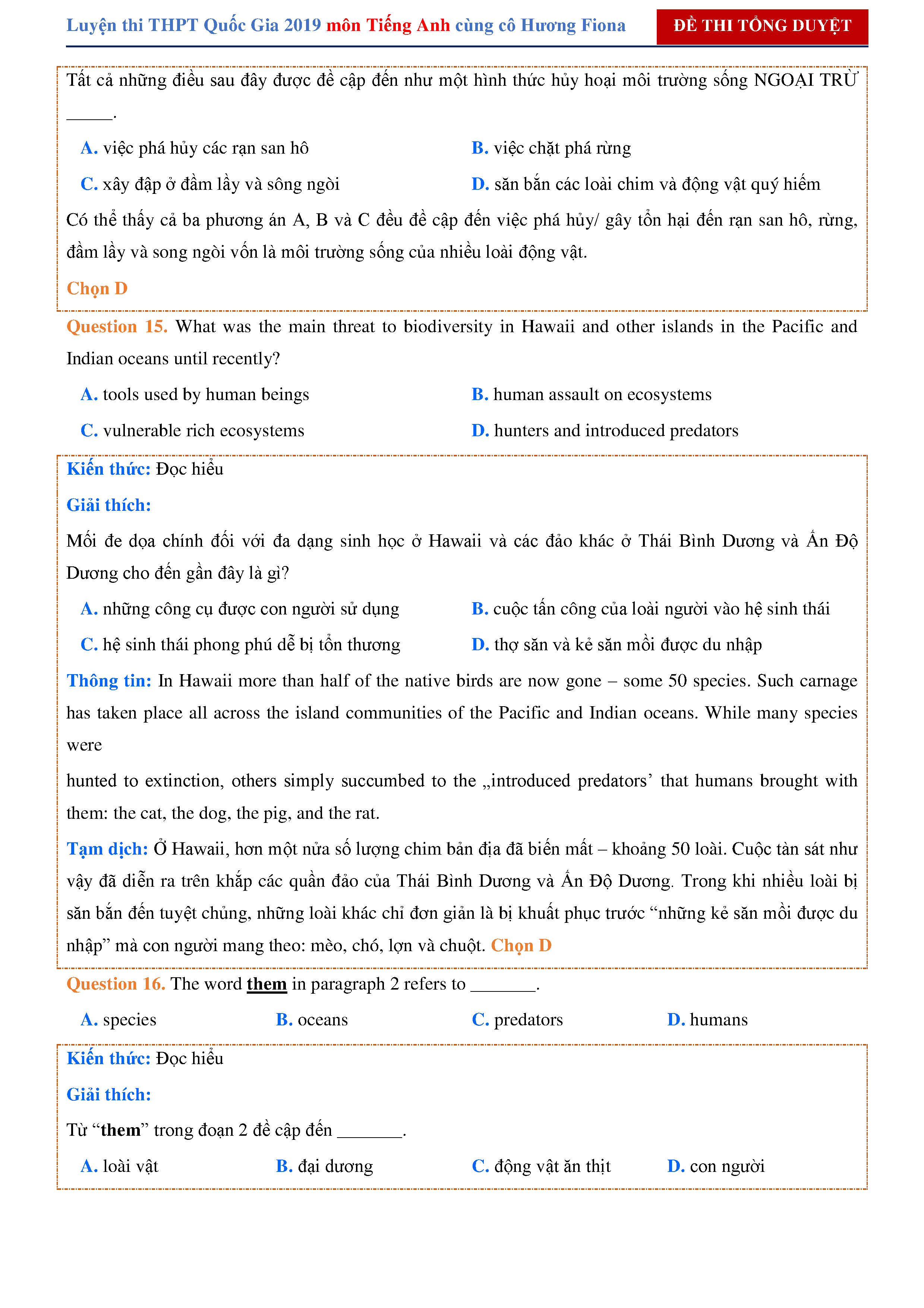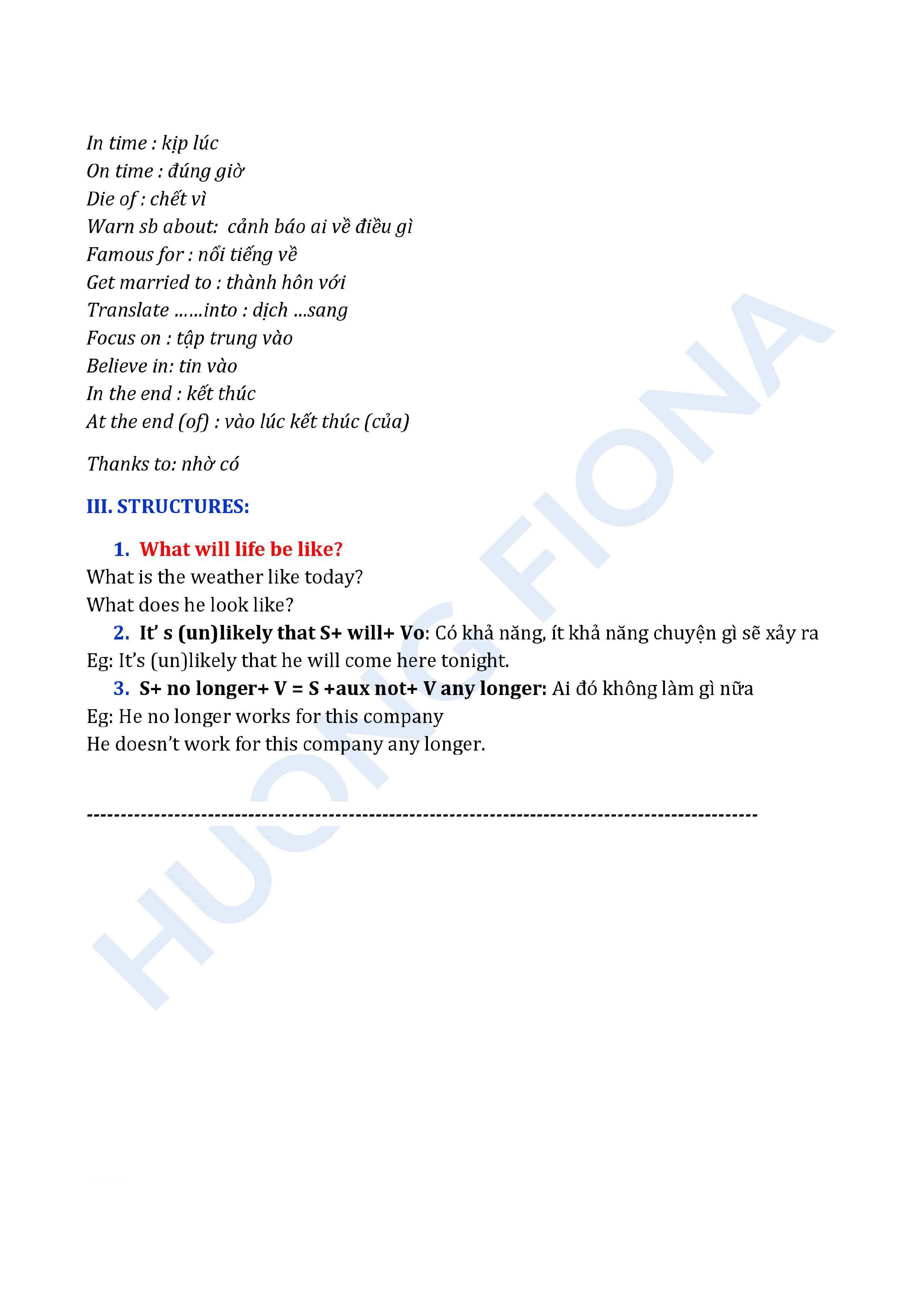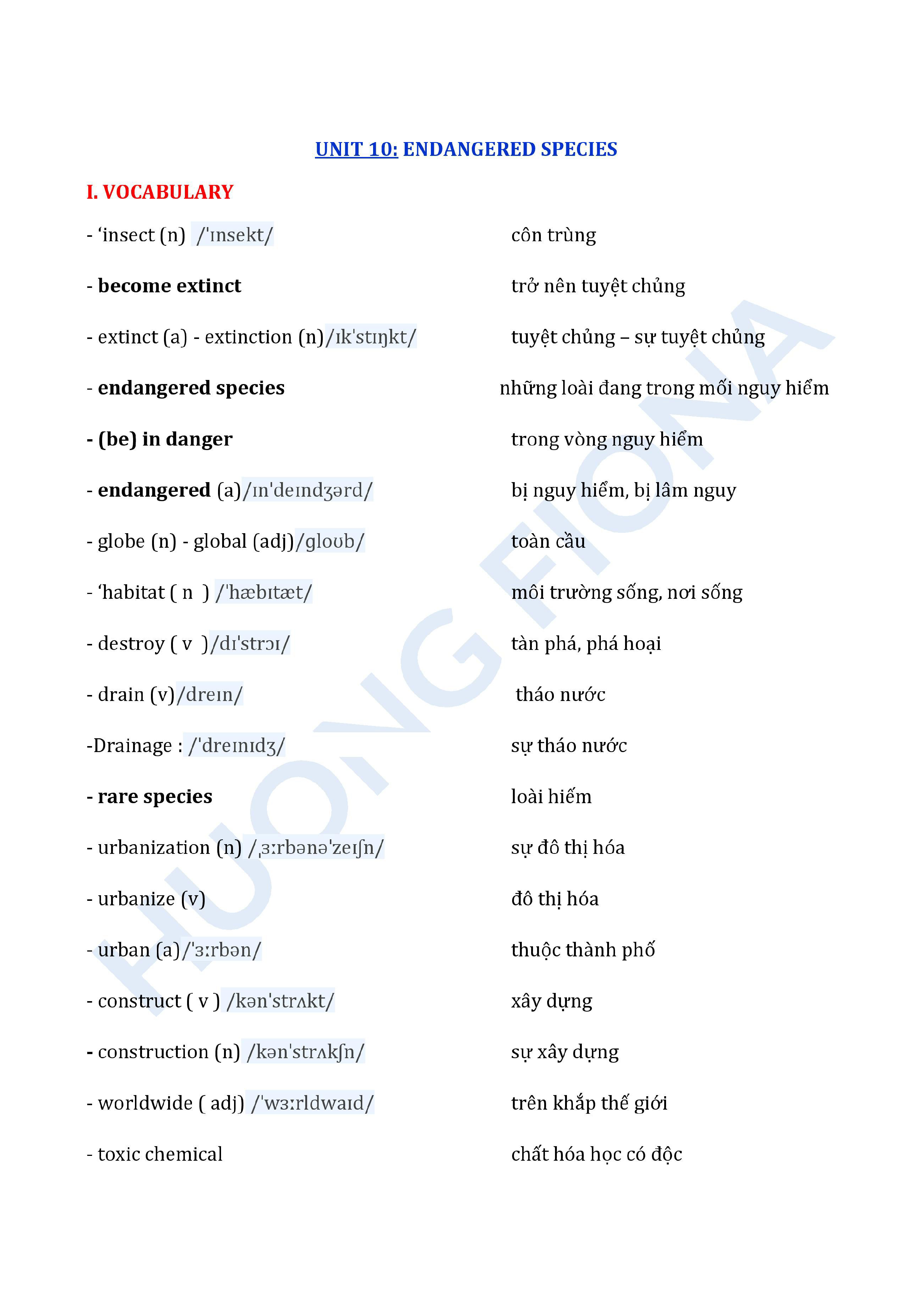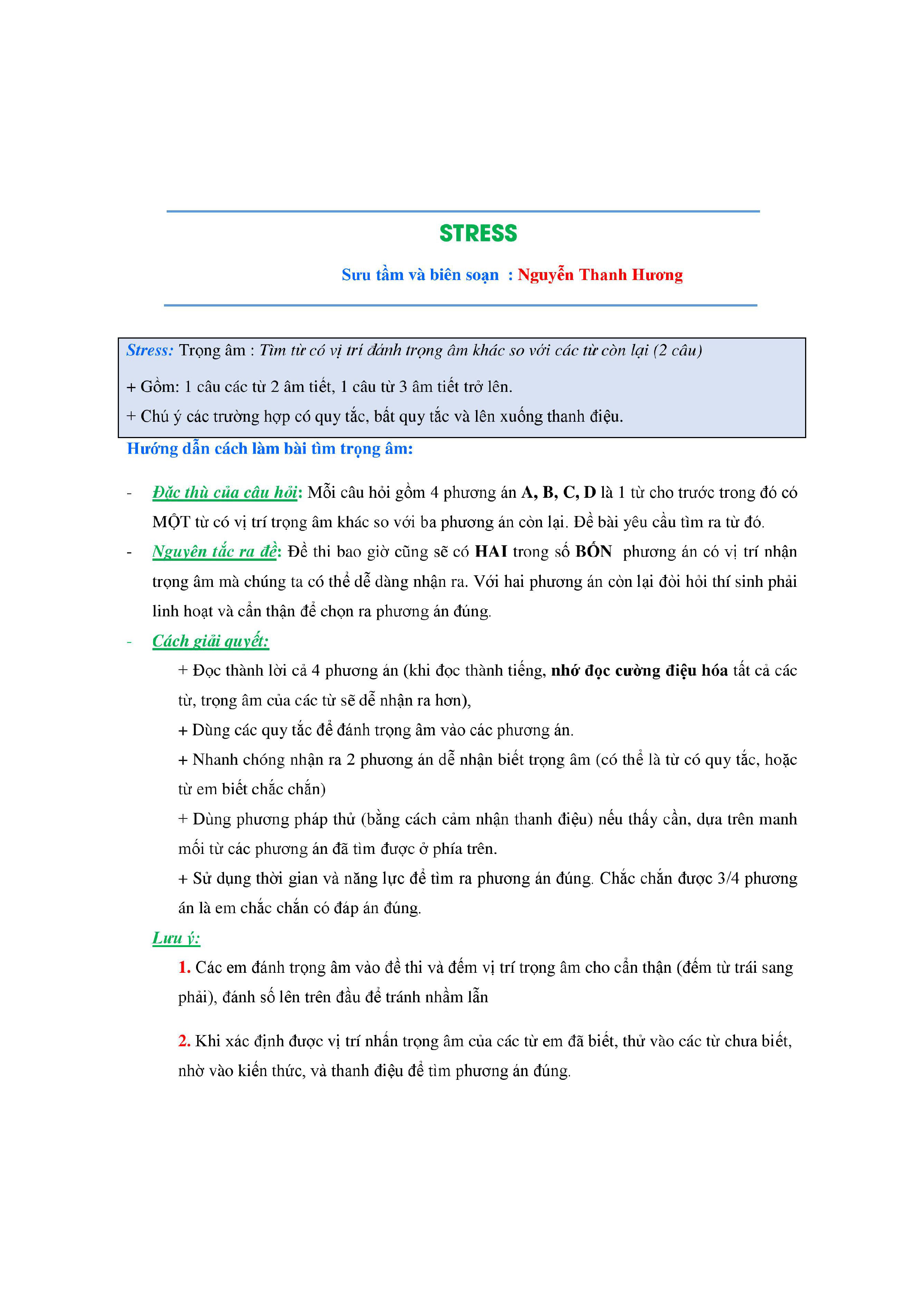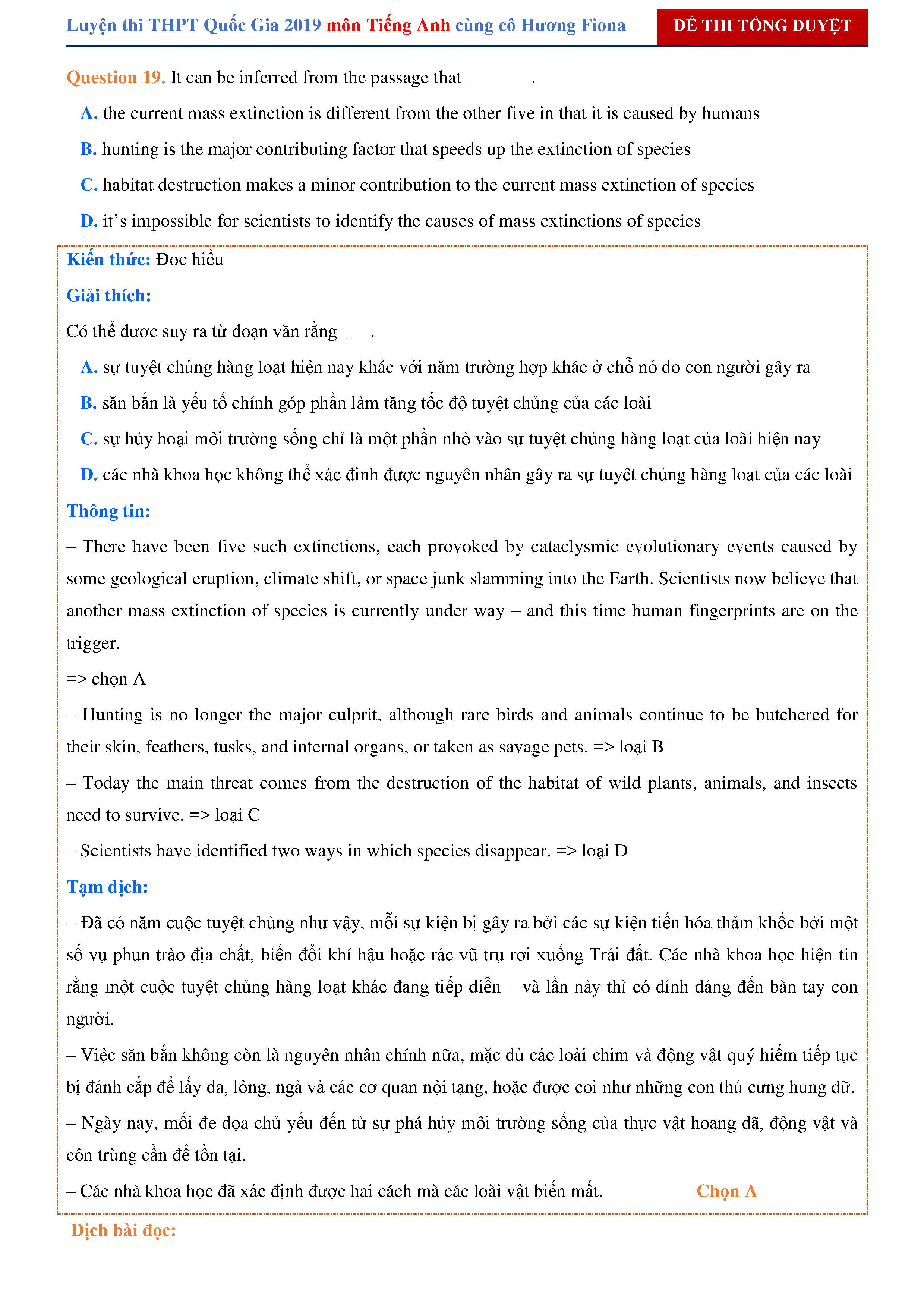 Tài liệu tổng duyệt kiến thức Tiếng Anh trước kỳ thi THPT QG 2019