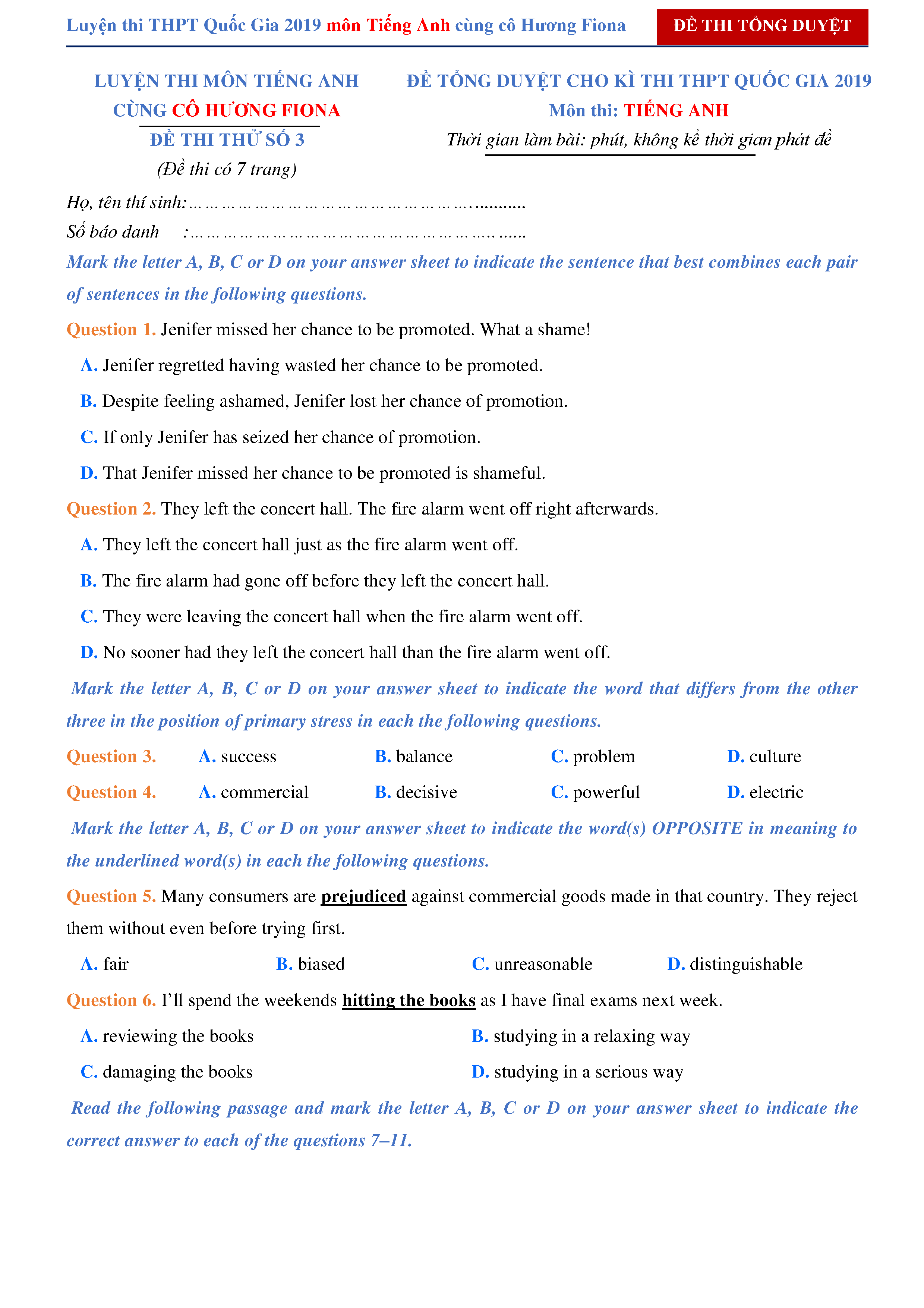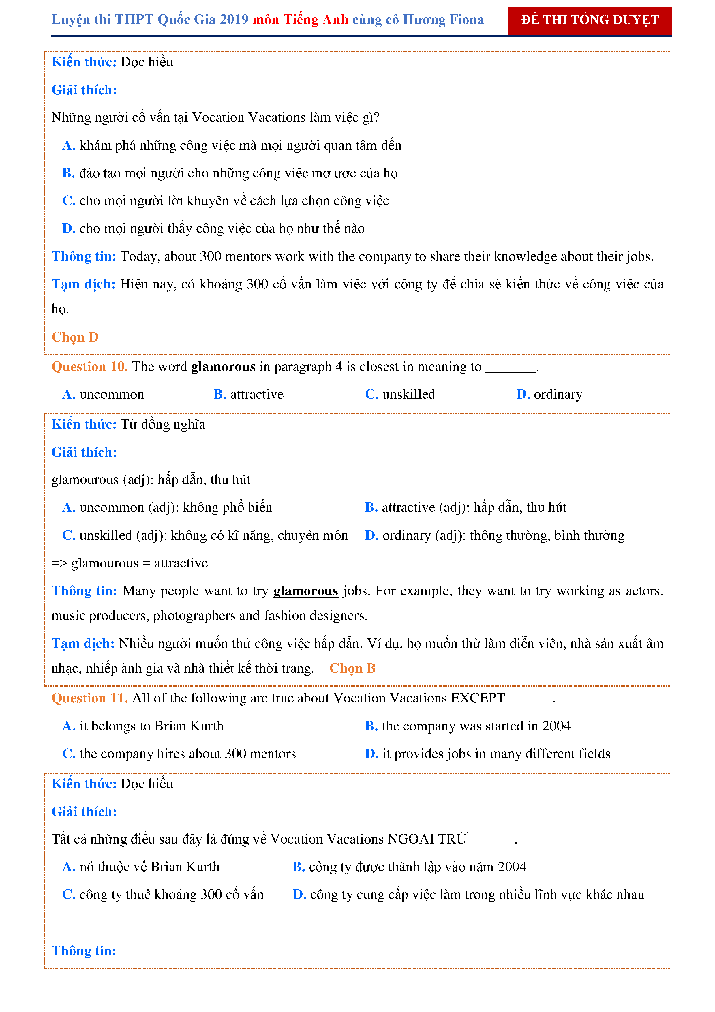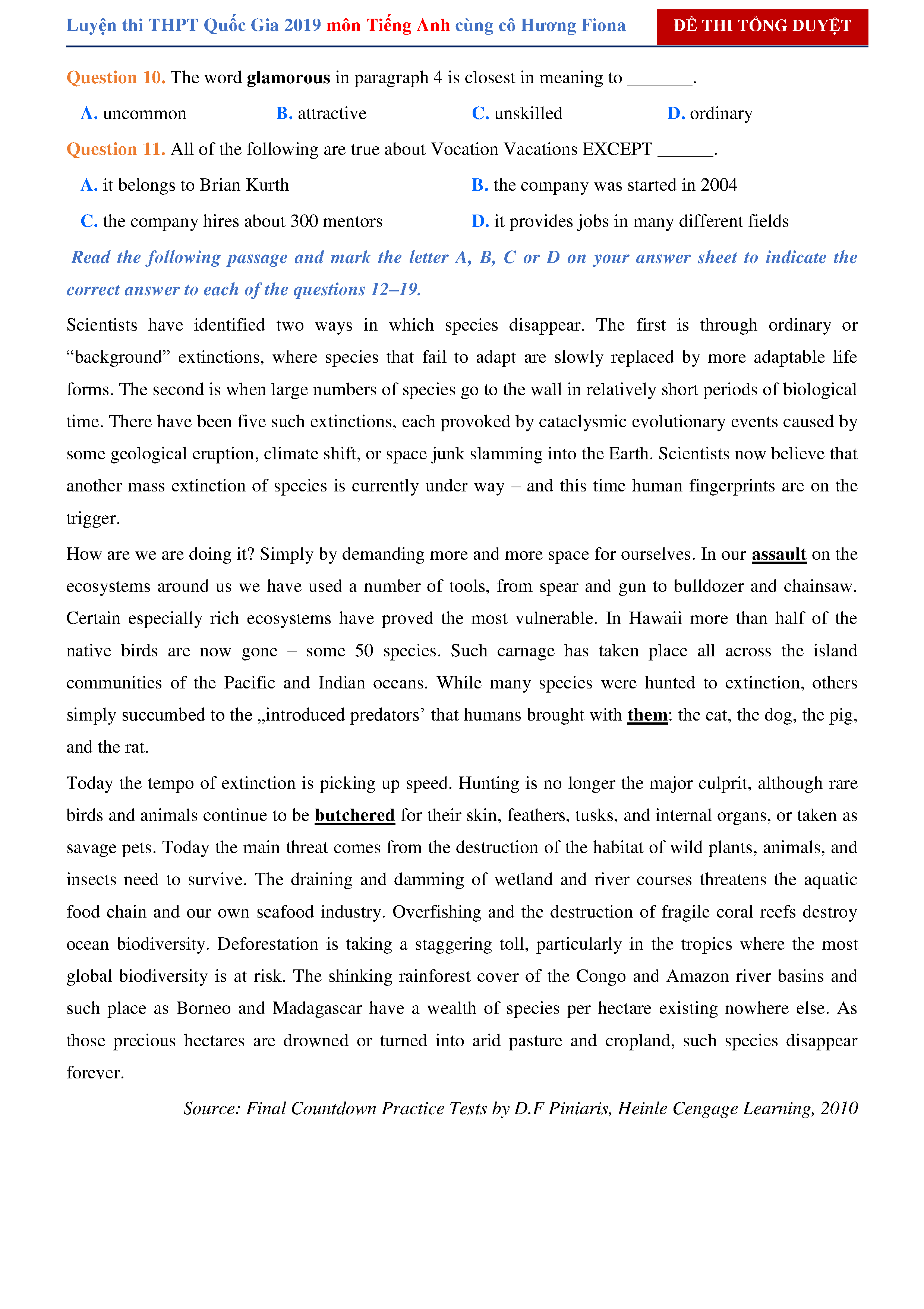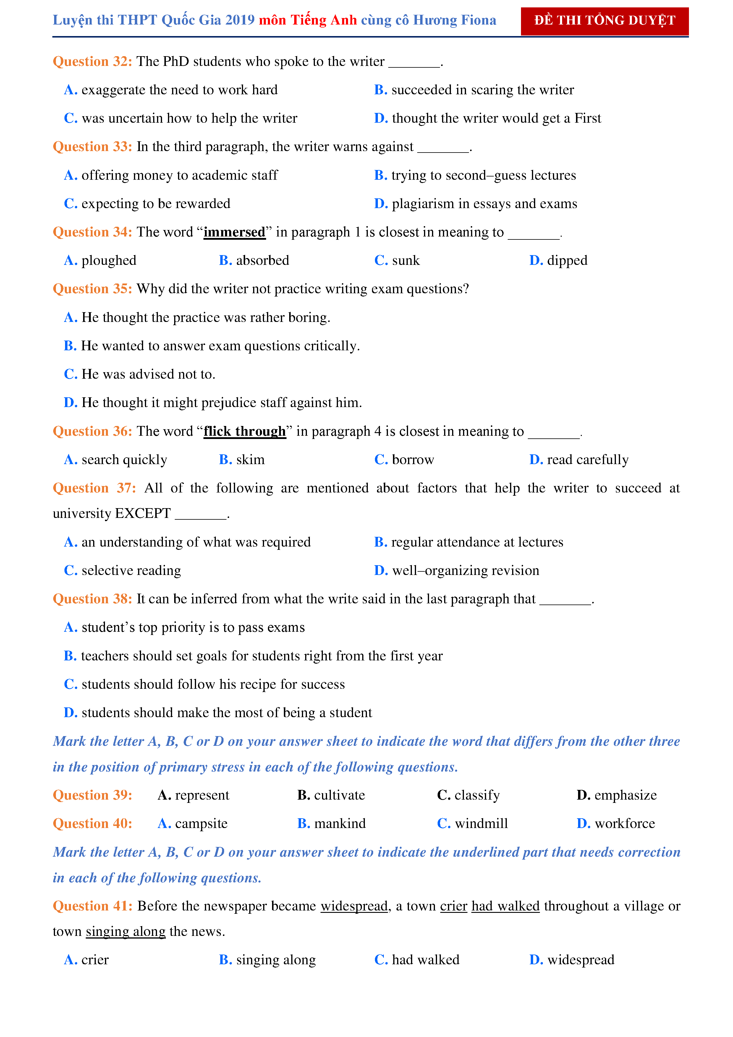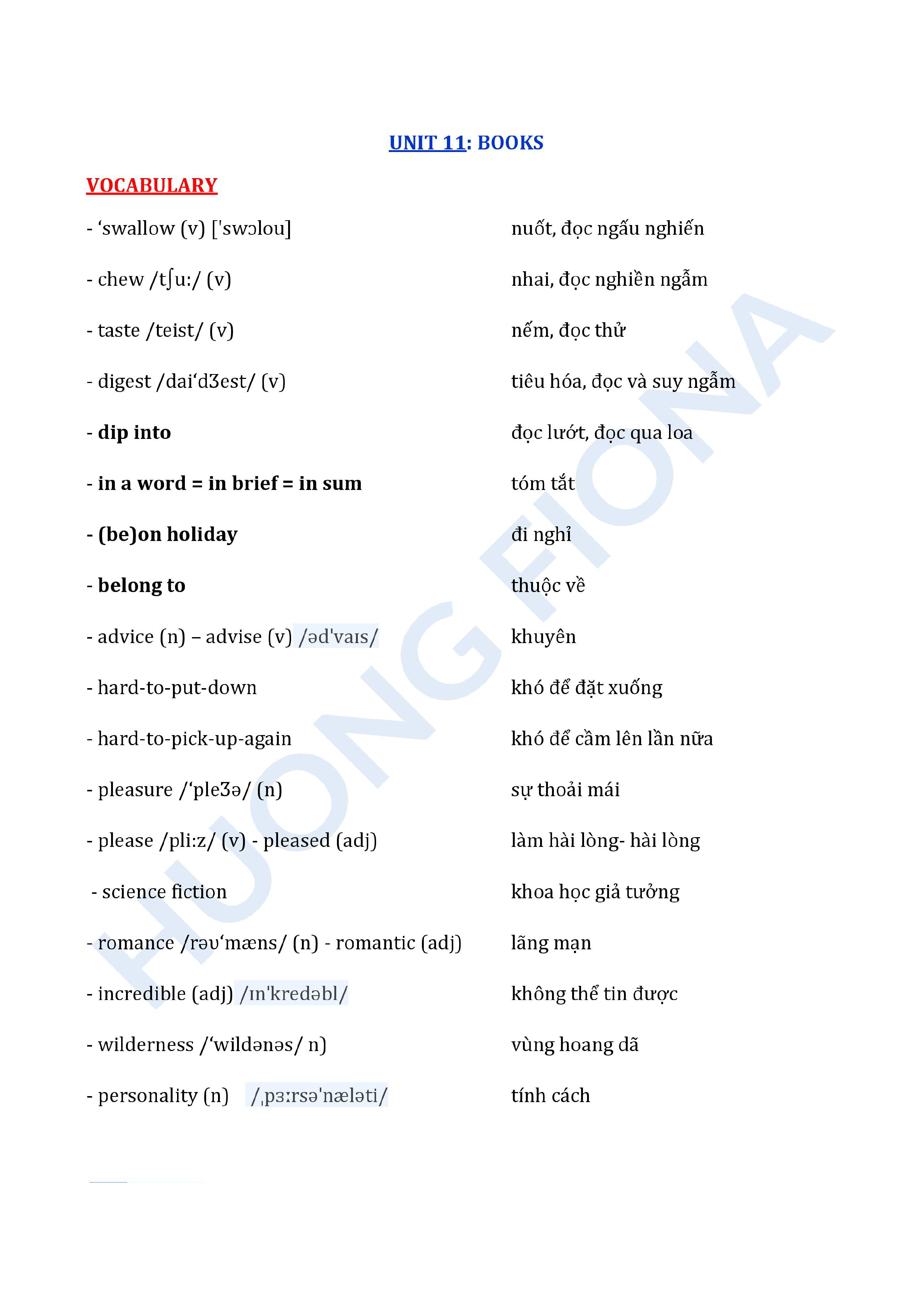 Tài liệu tổng duyệt kiến thức Tiếng Anh trước kỳ thi THPT QG 2019