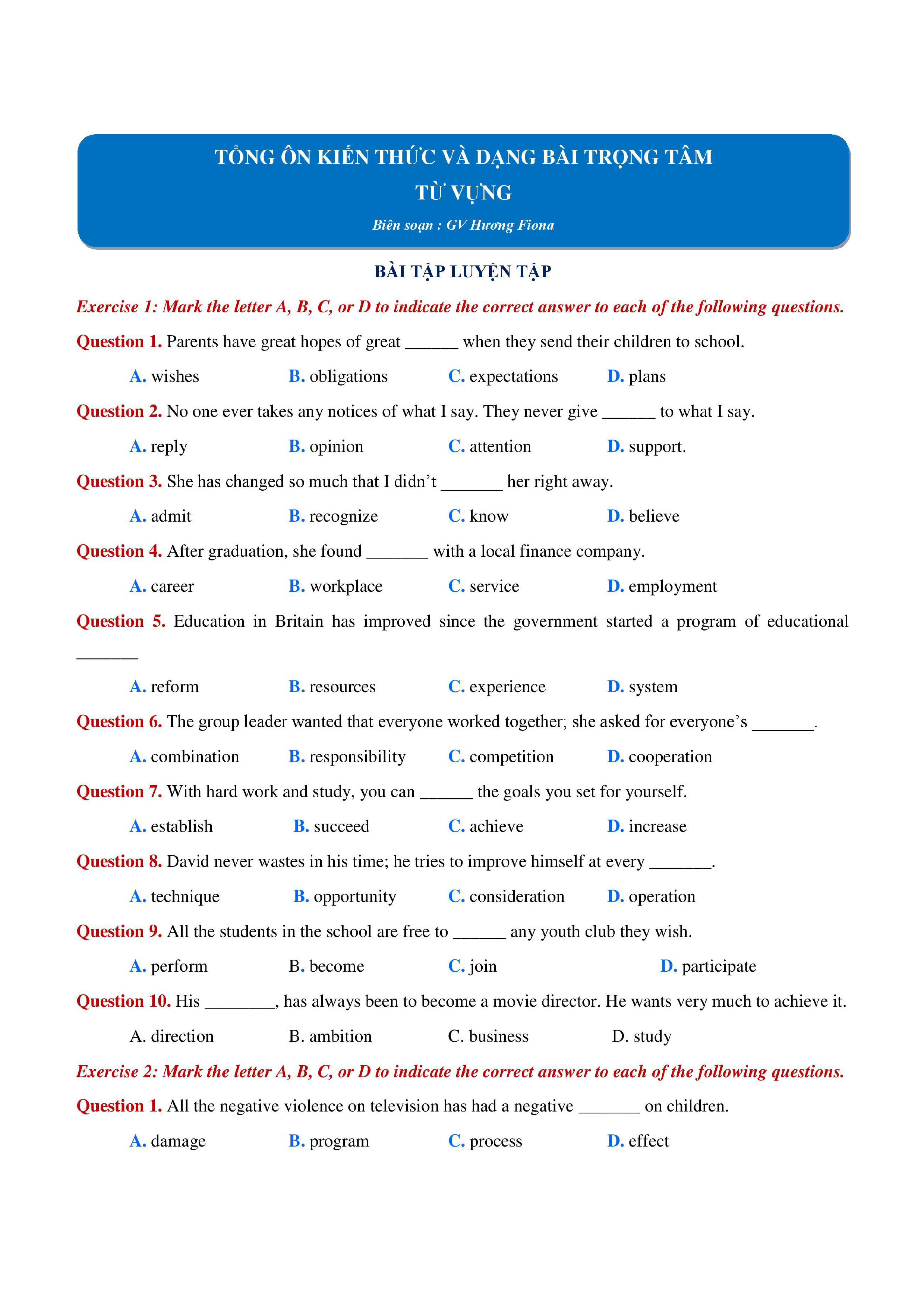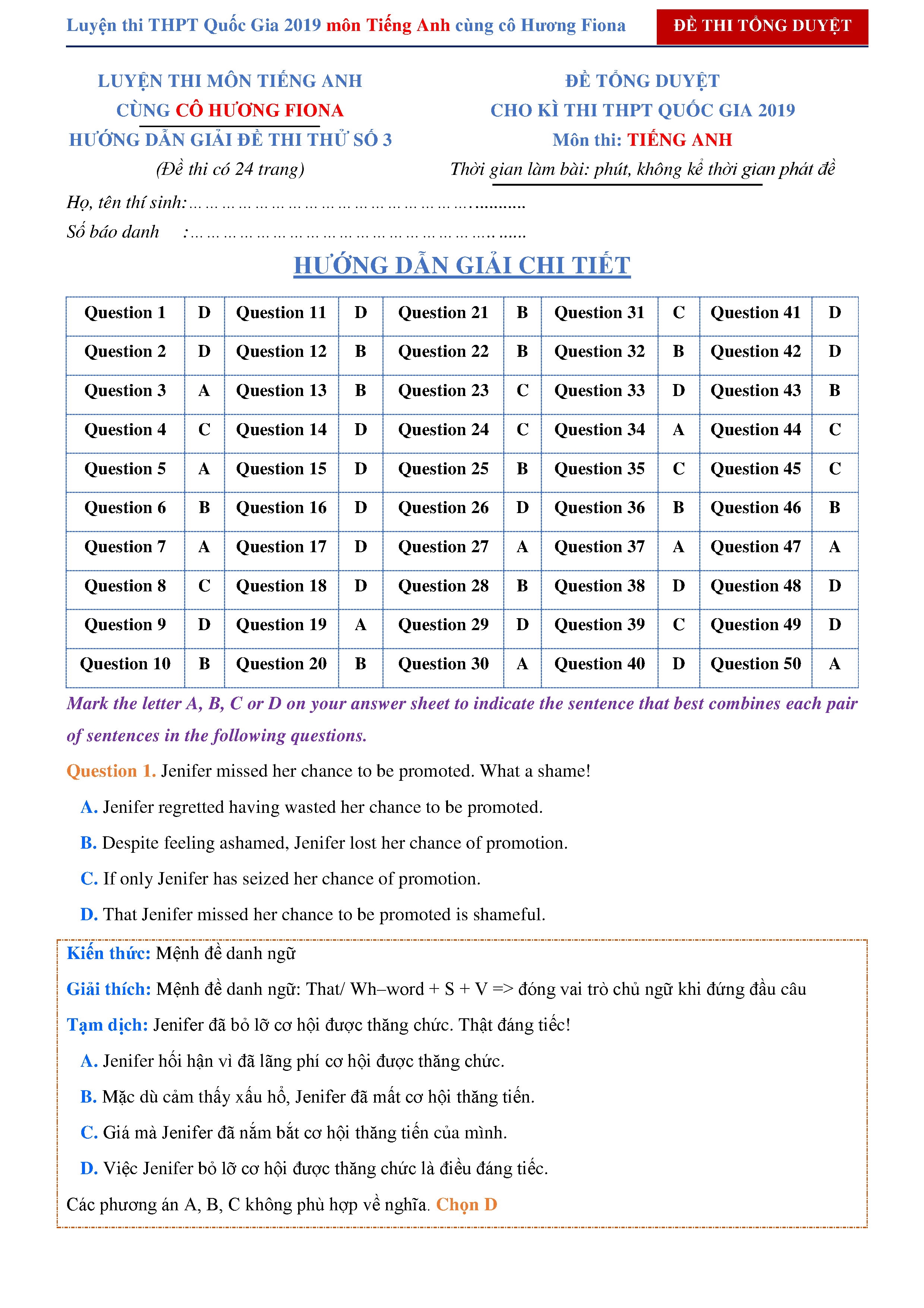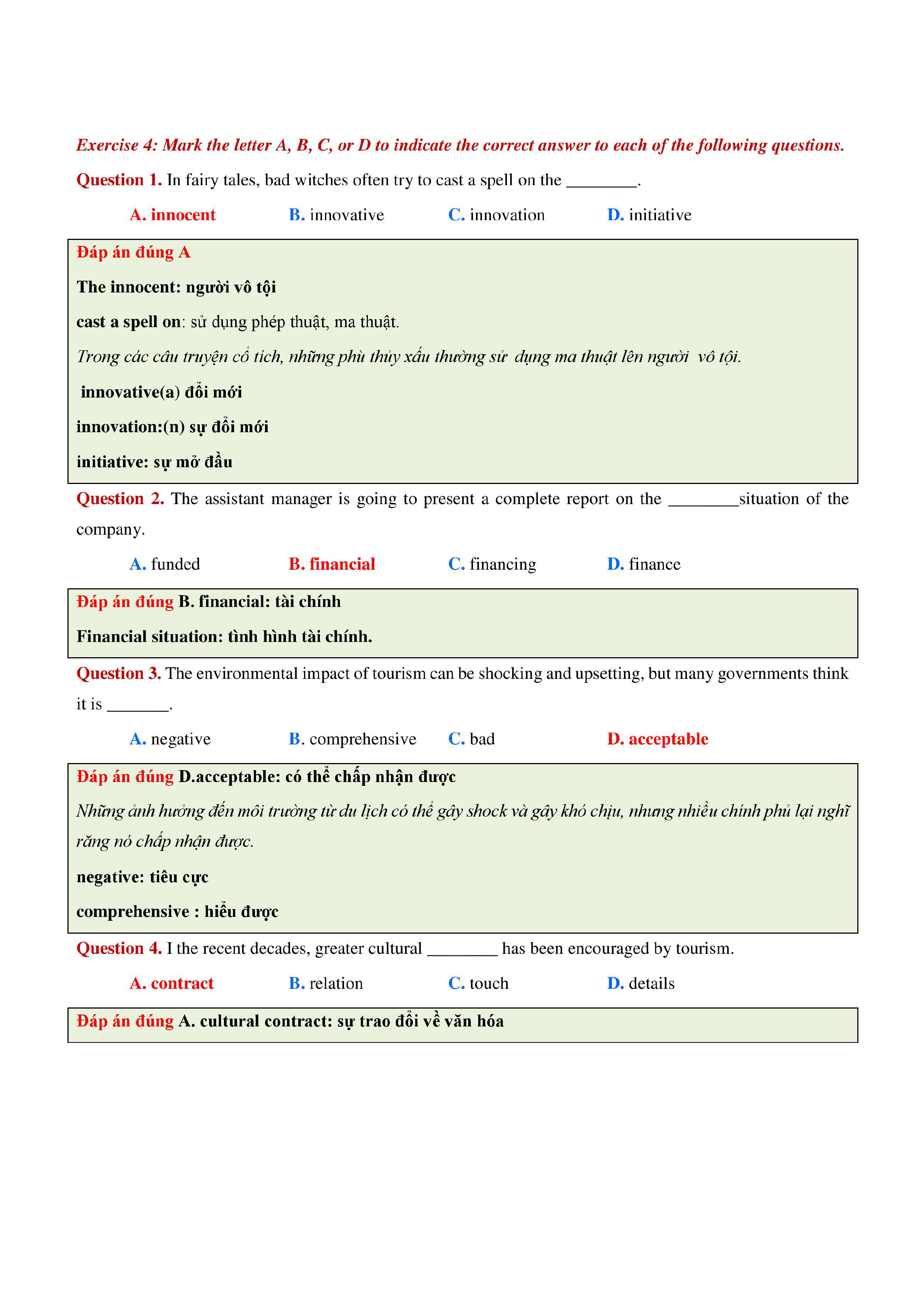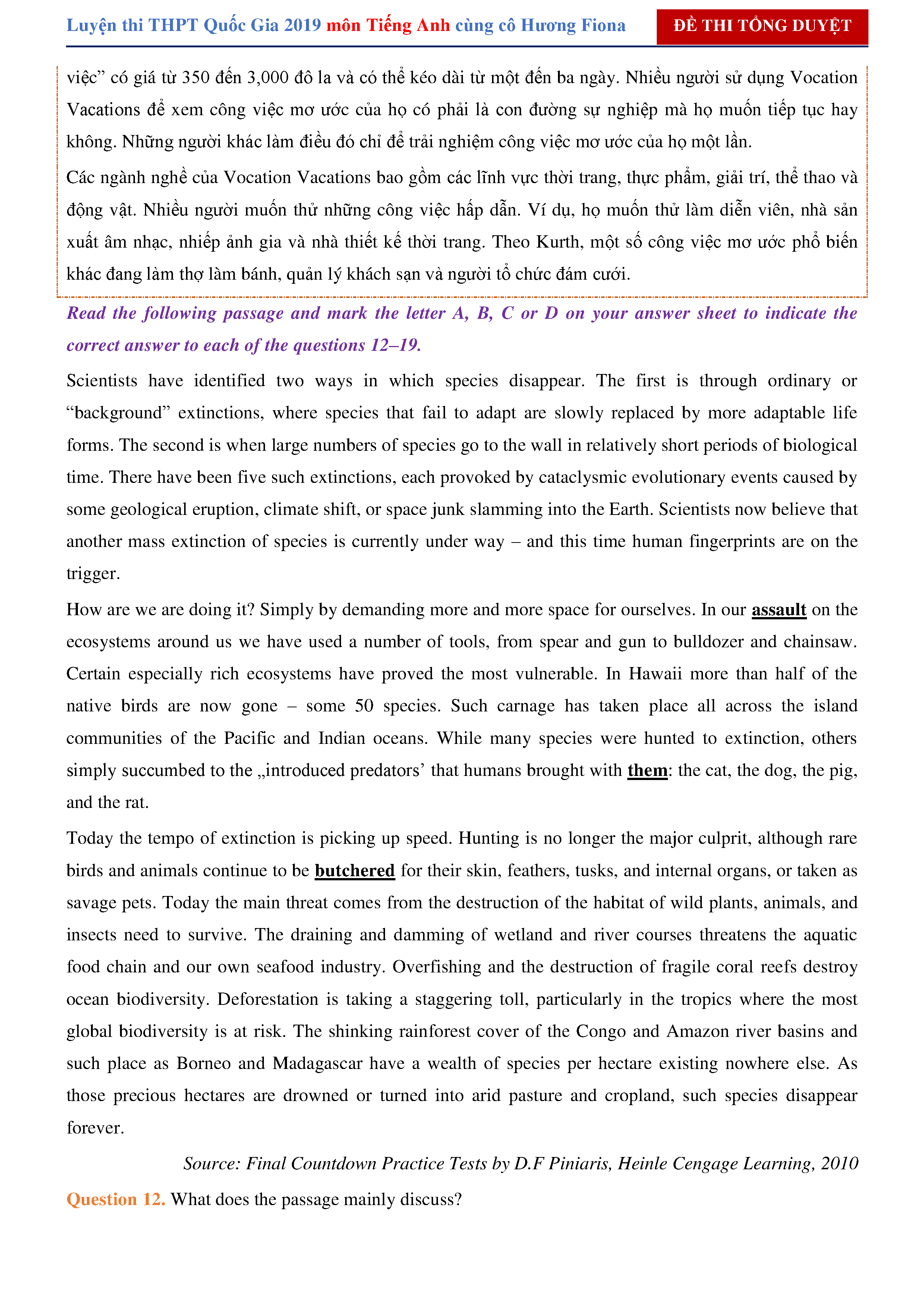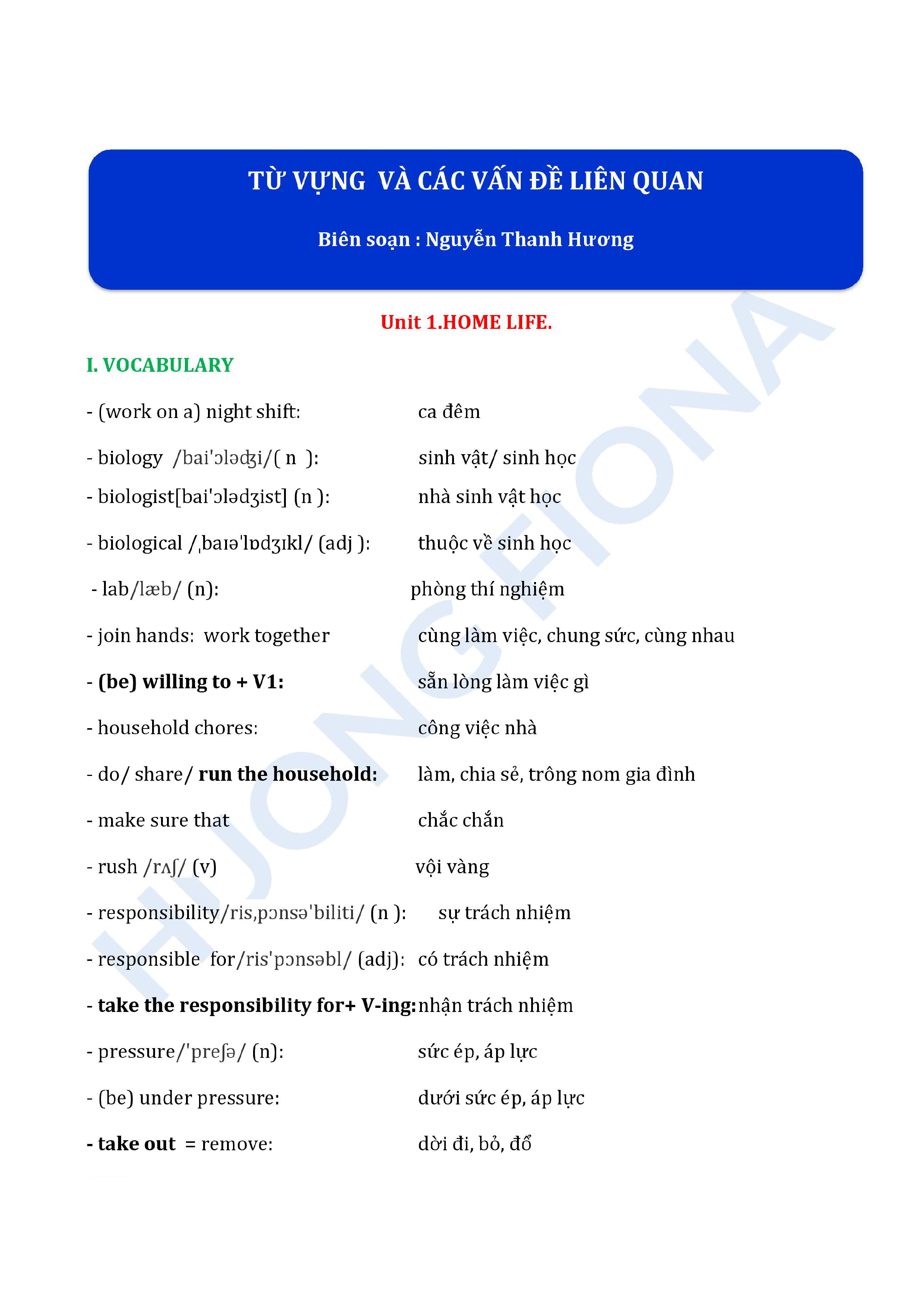 Tài liệu tổng duyệt kiến thức Tiếng Anh trước kỳ thi THPT QG 2019