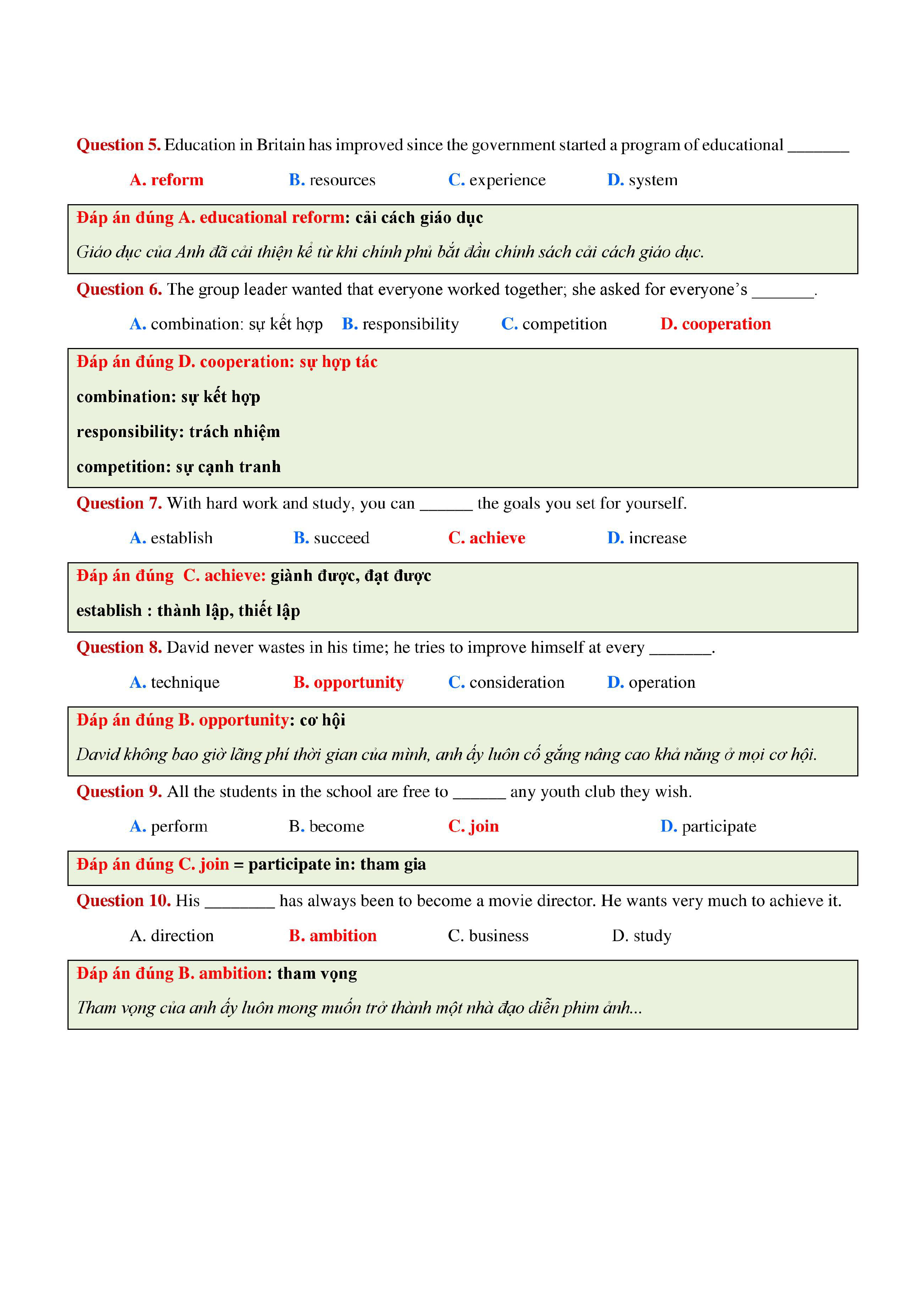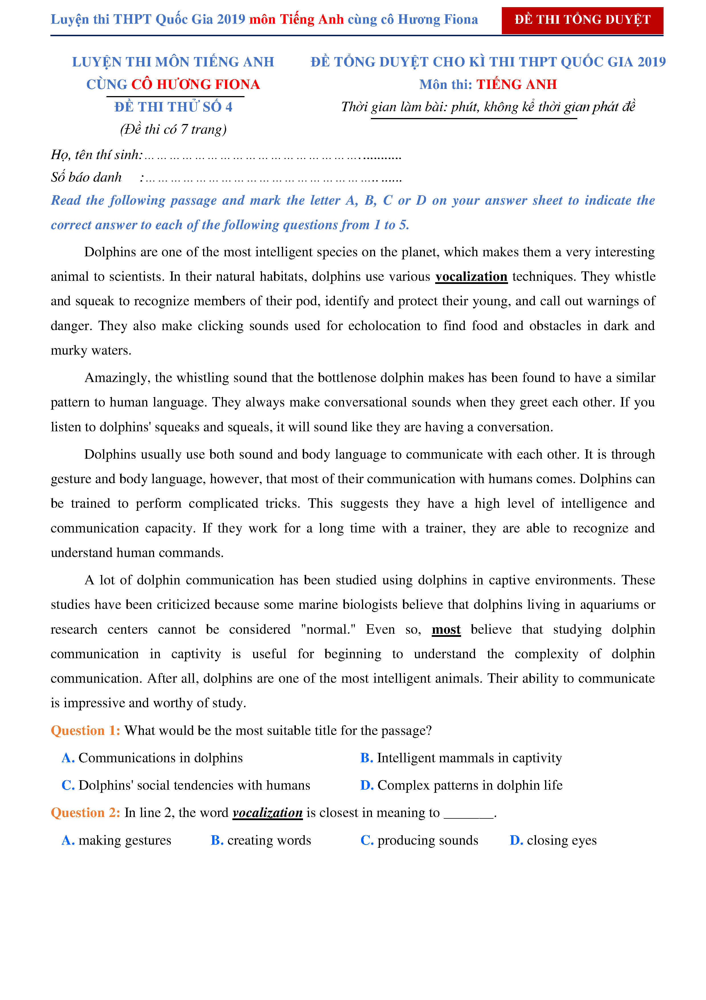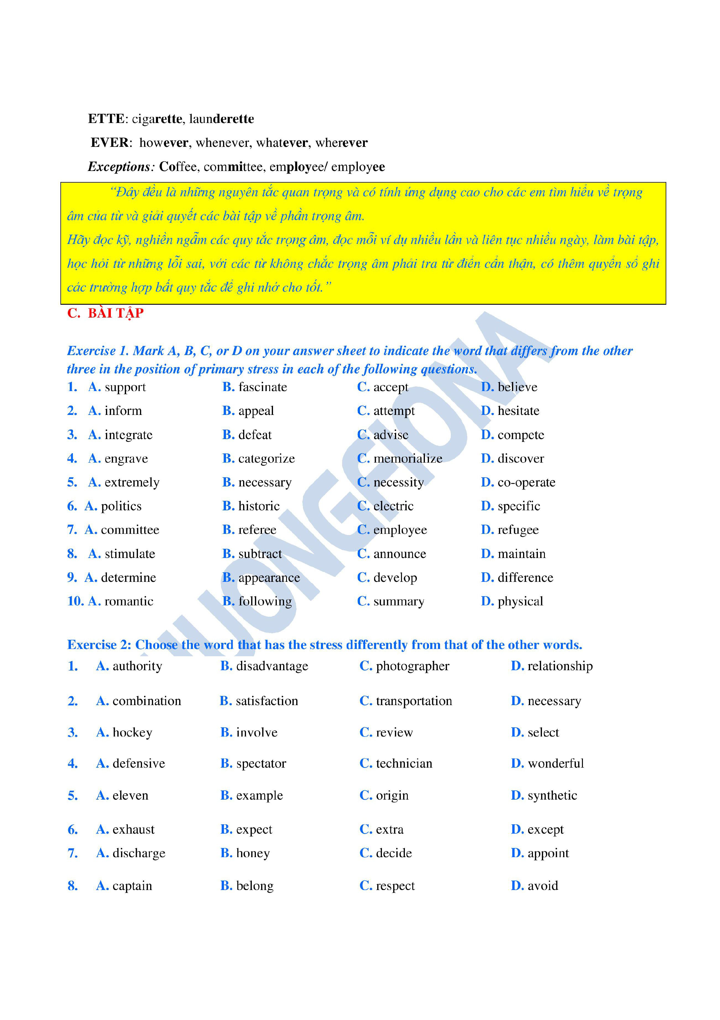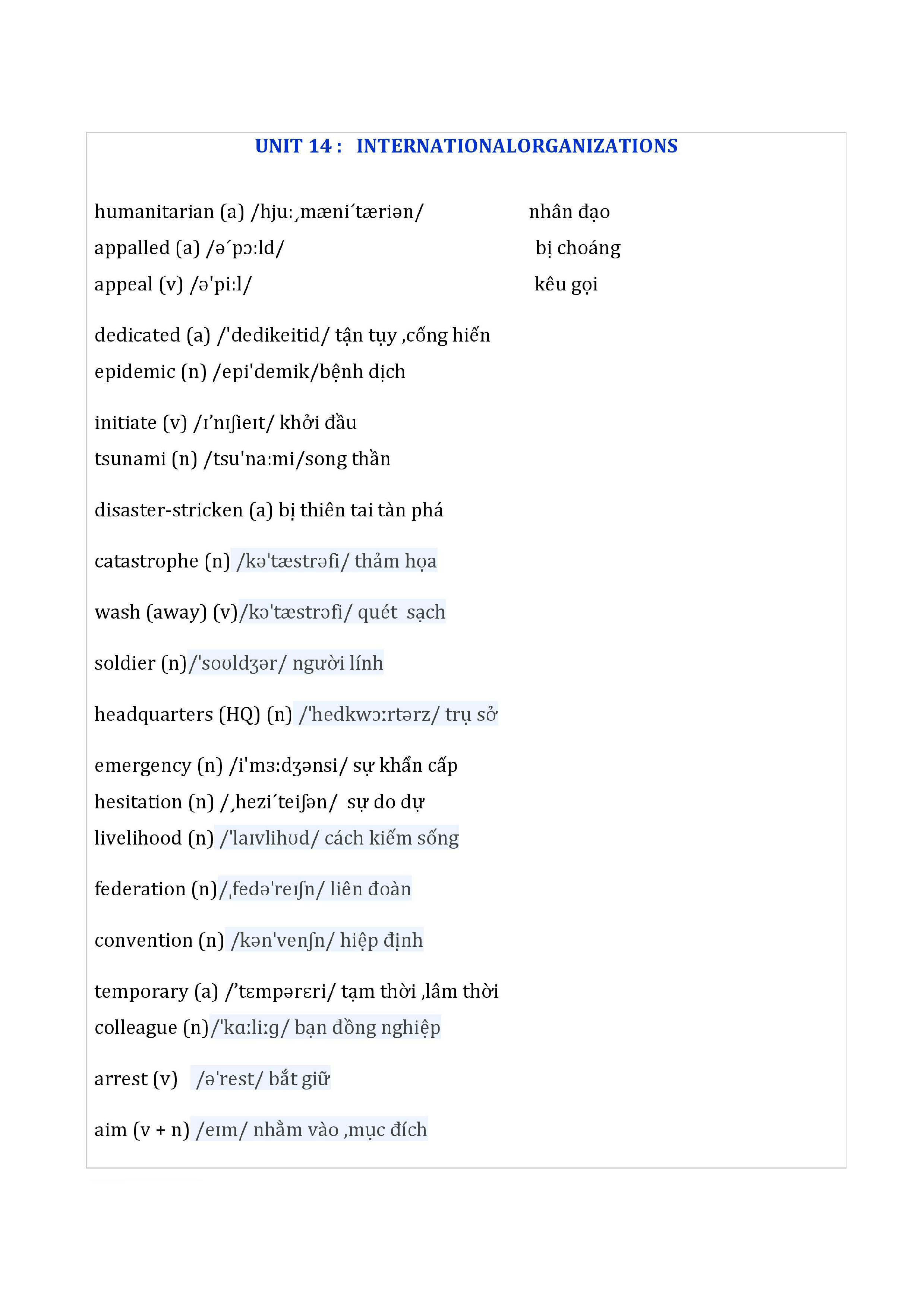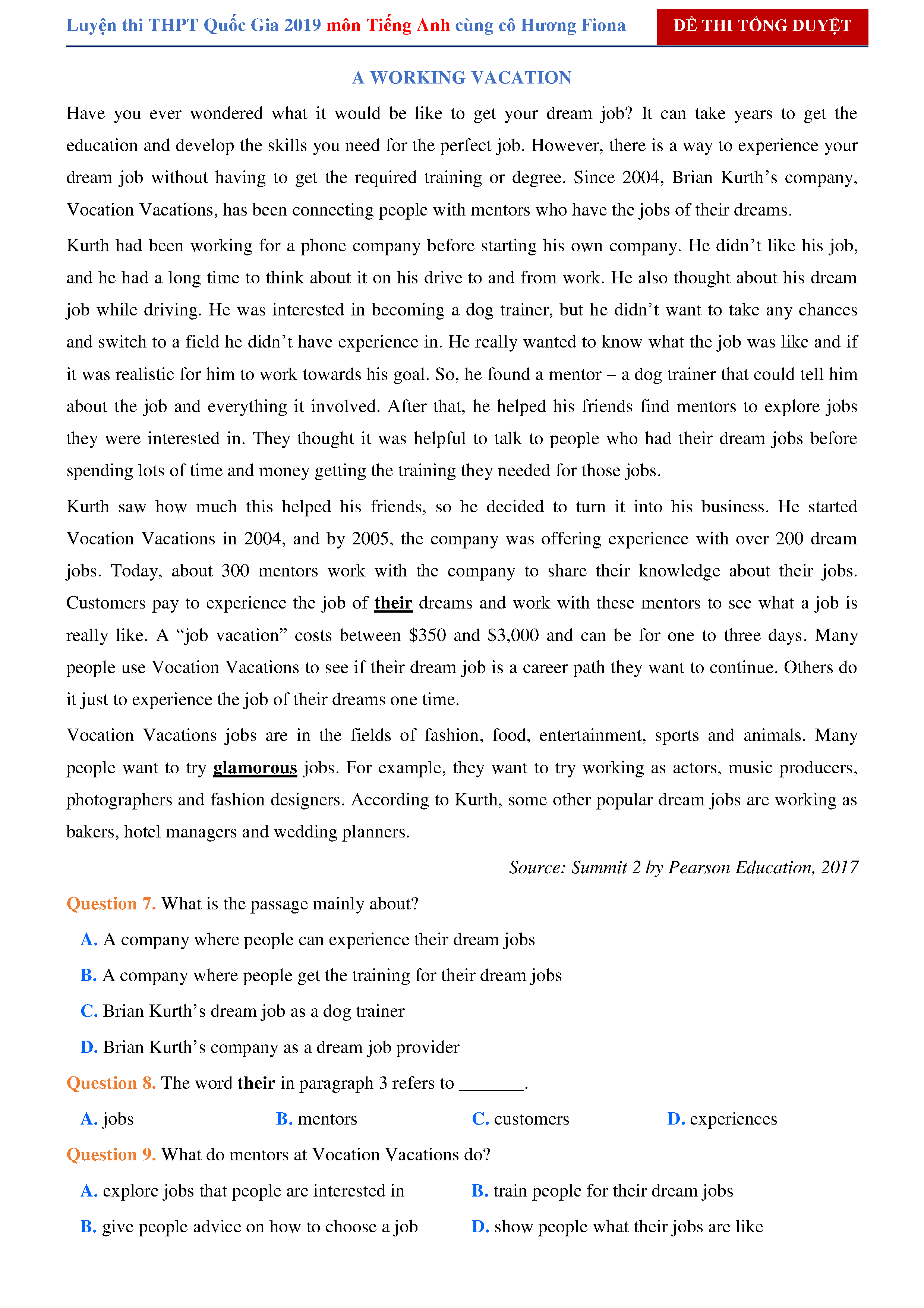 Tài liệu tổng duyệt kiến thức Tiếng Anh trước kỳ thi THPT QG 2019
