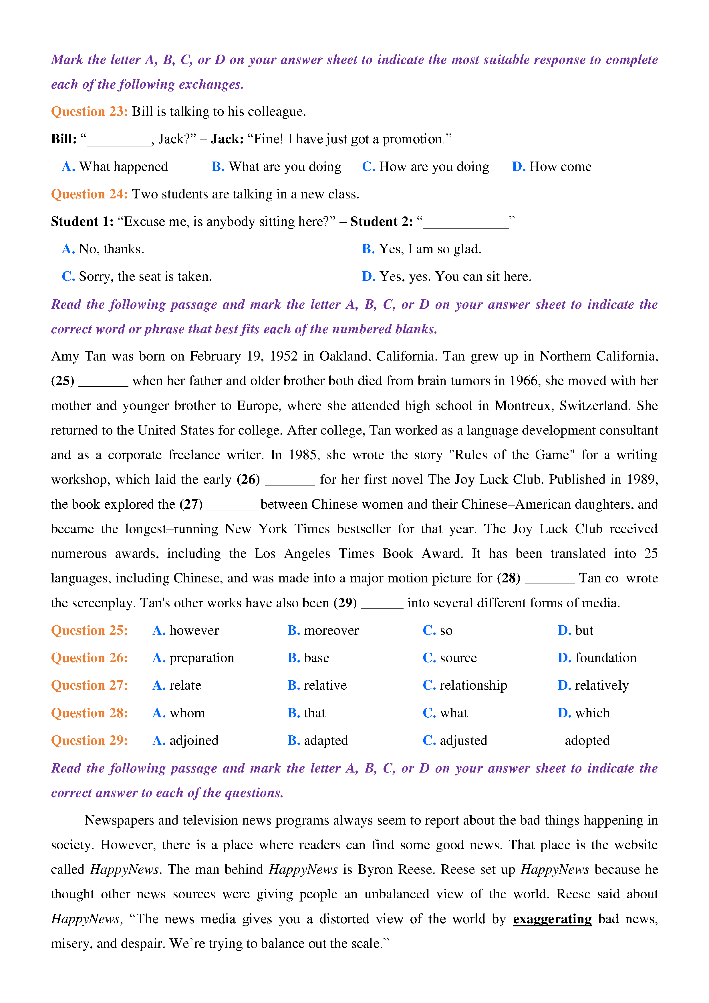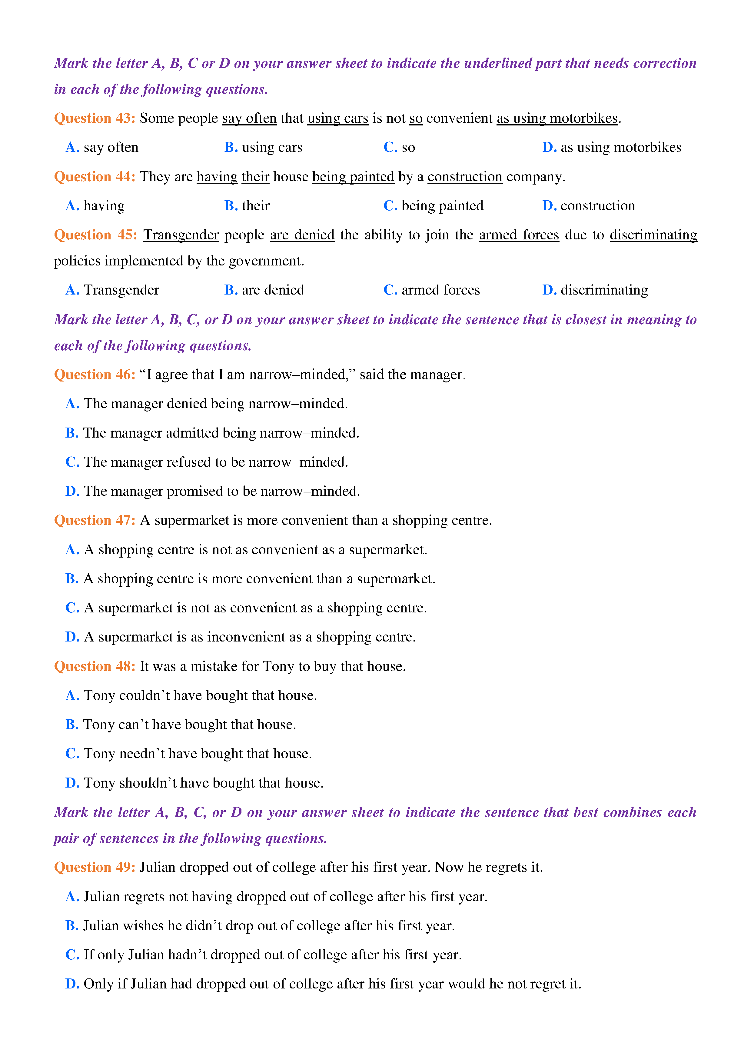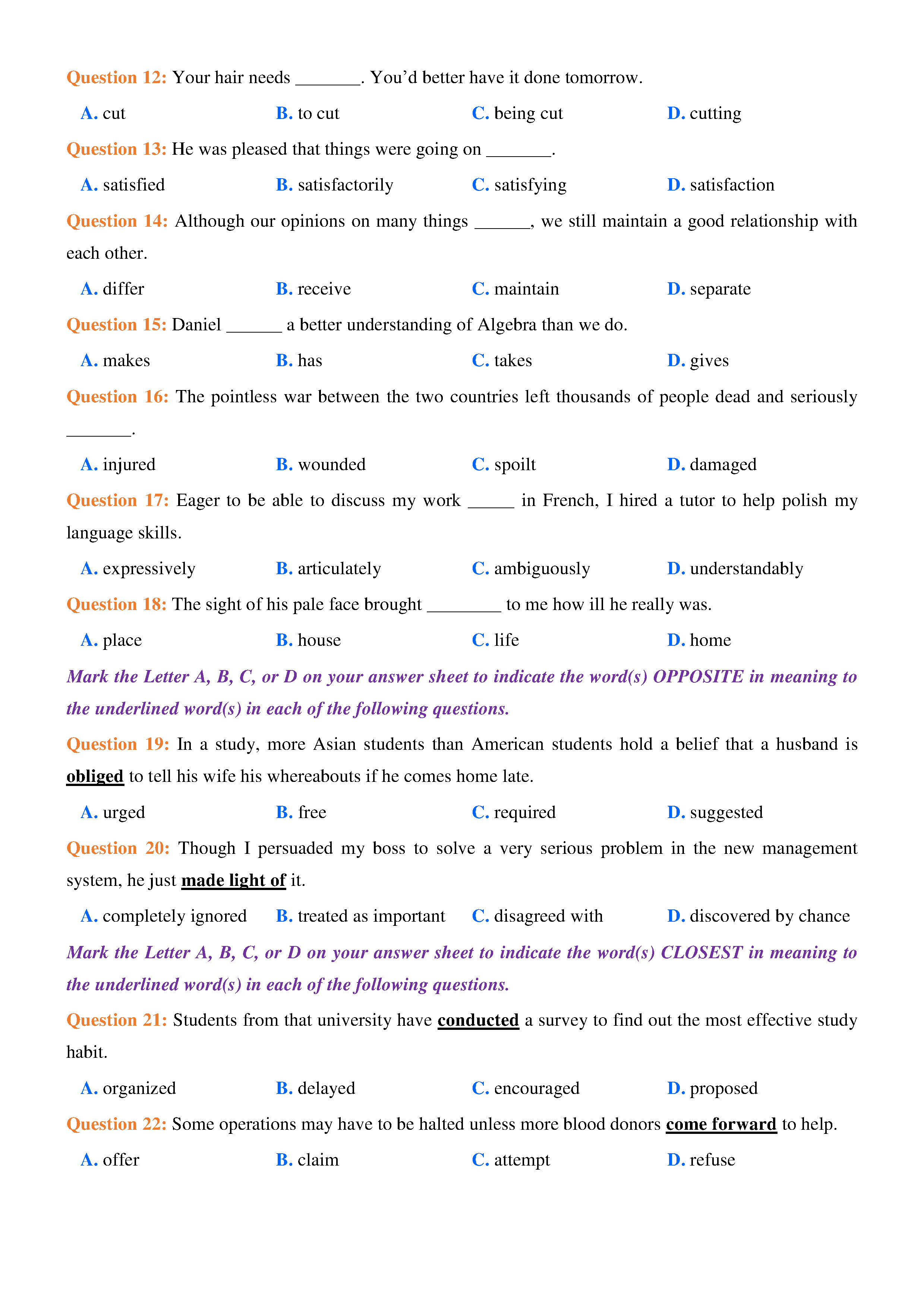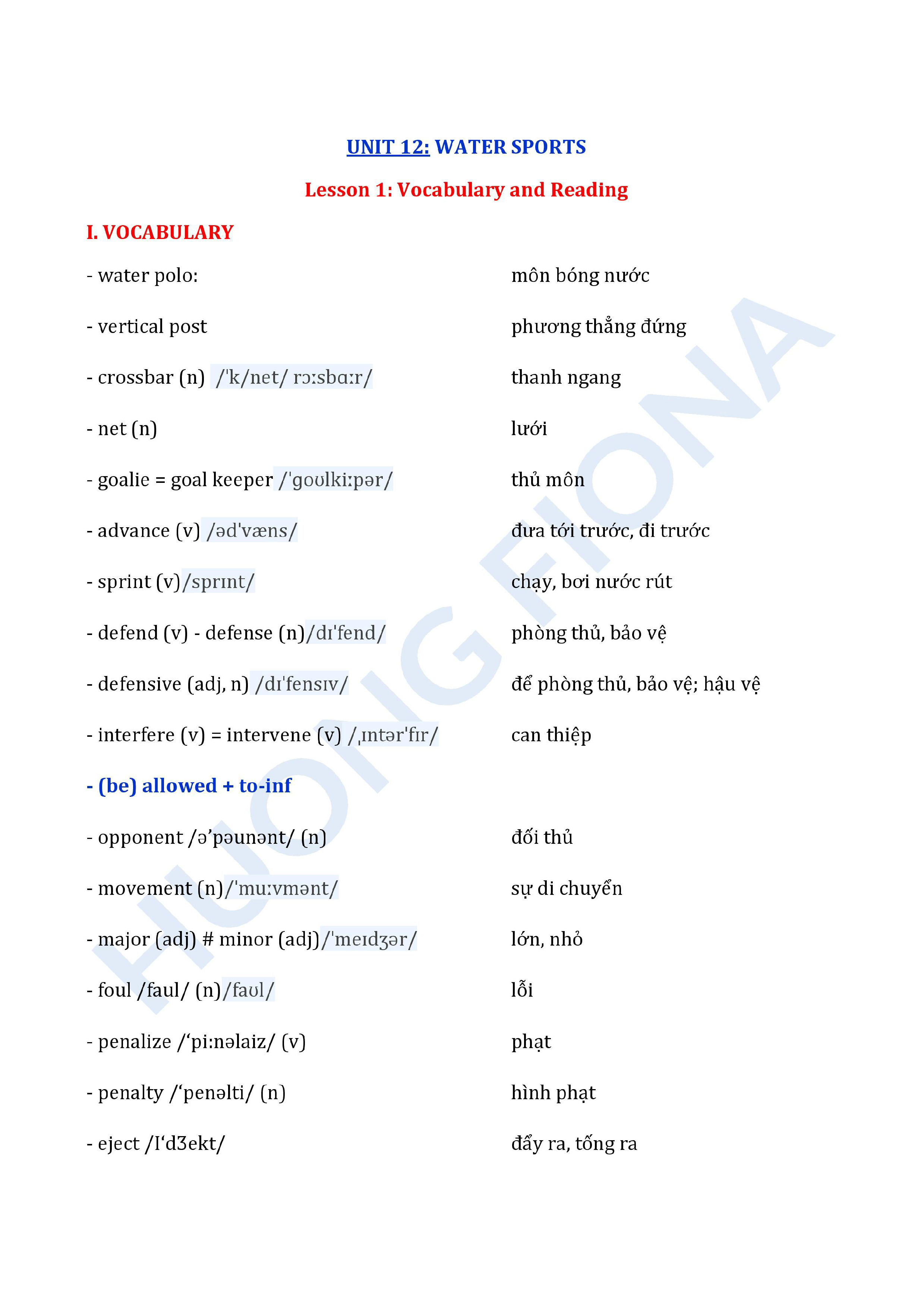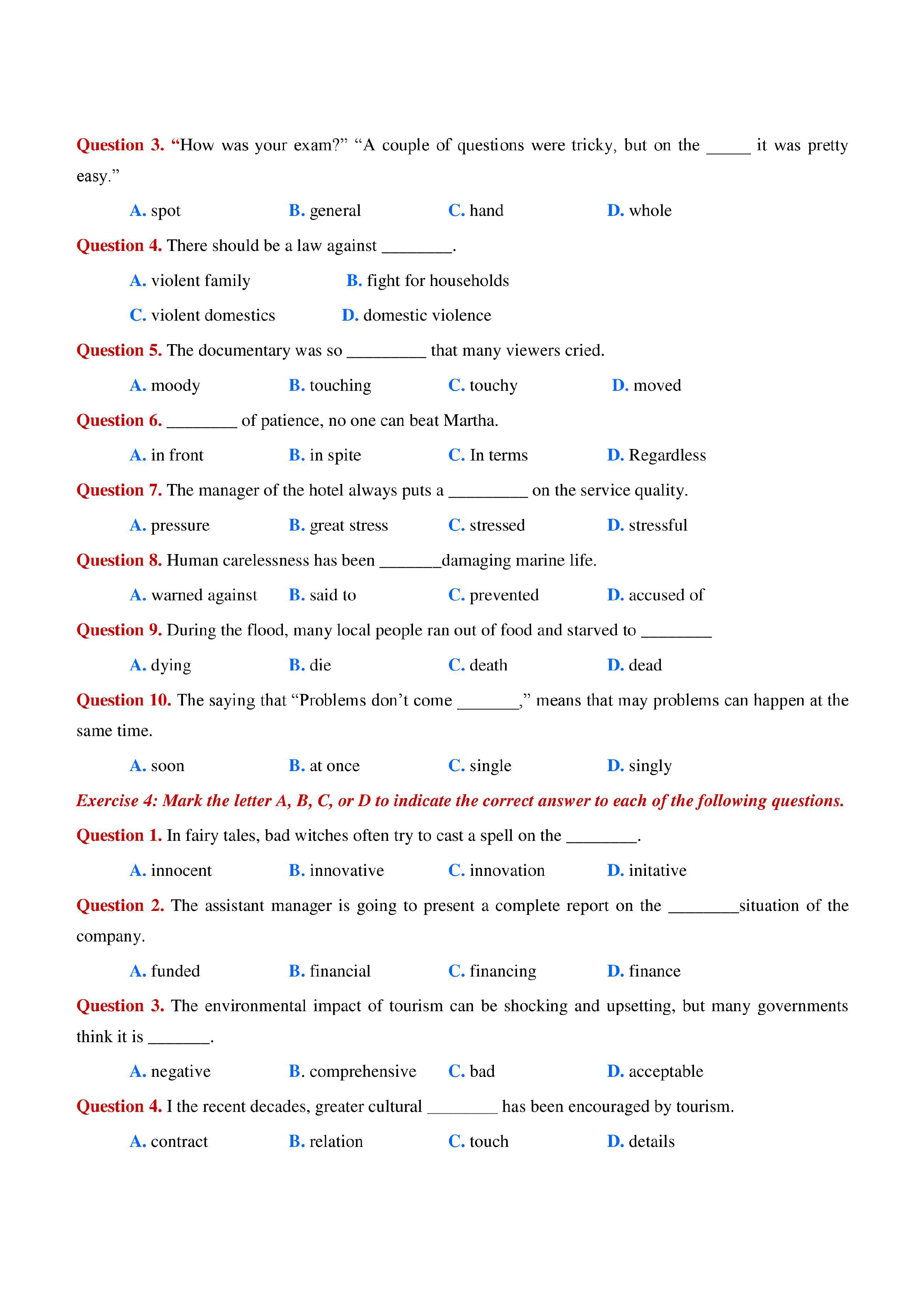Tài liệu tổng duyệt kiến thức Tiếng Anh trước kỳ thi THPT QG 2019